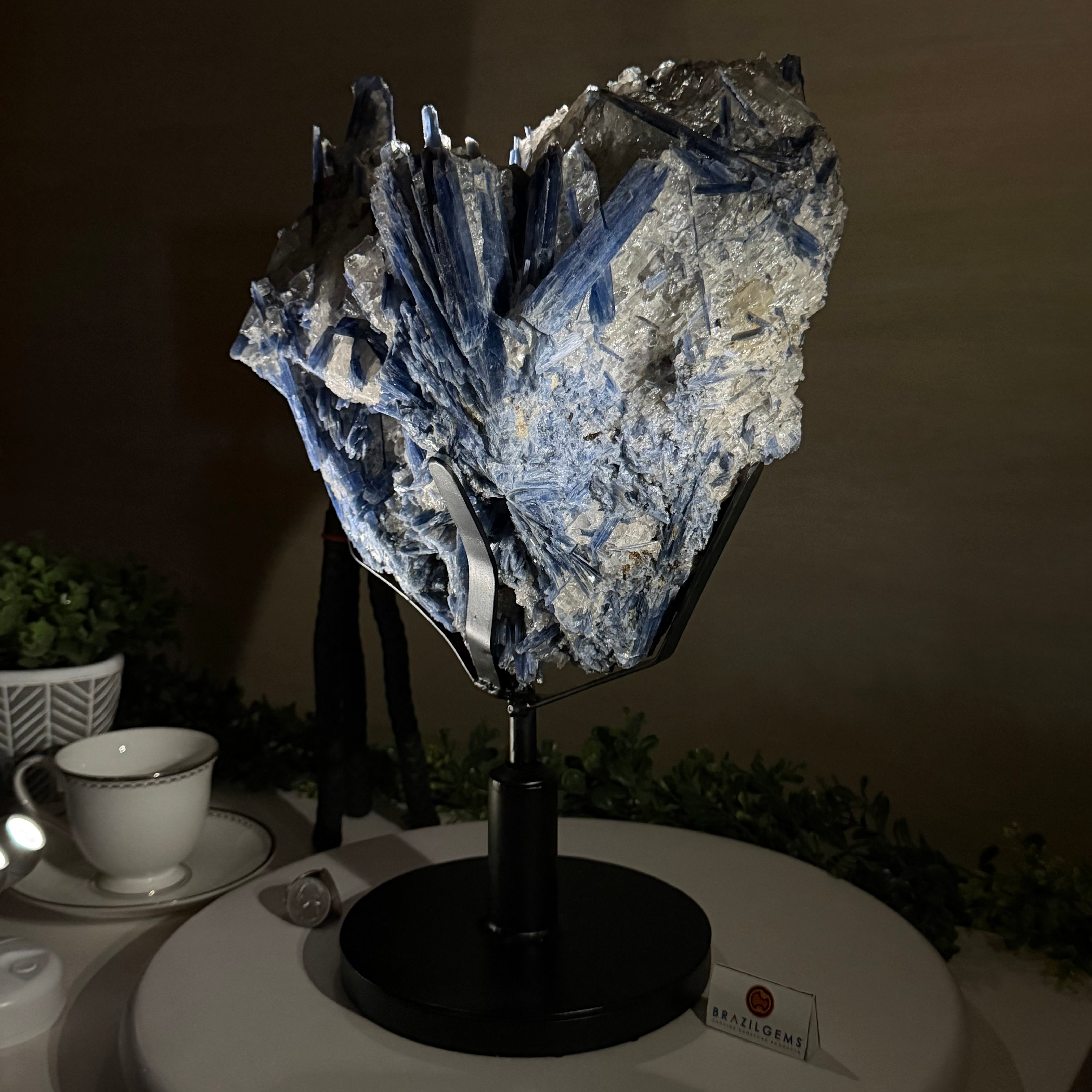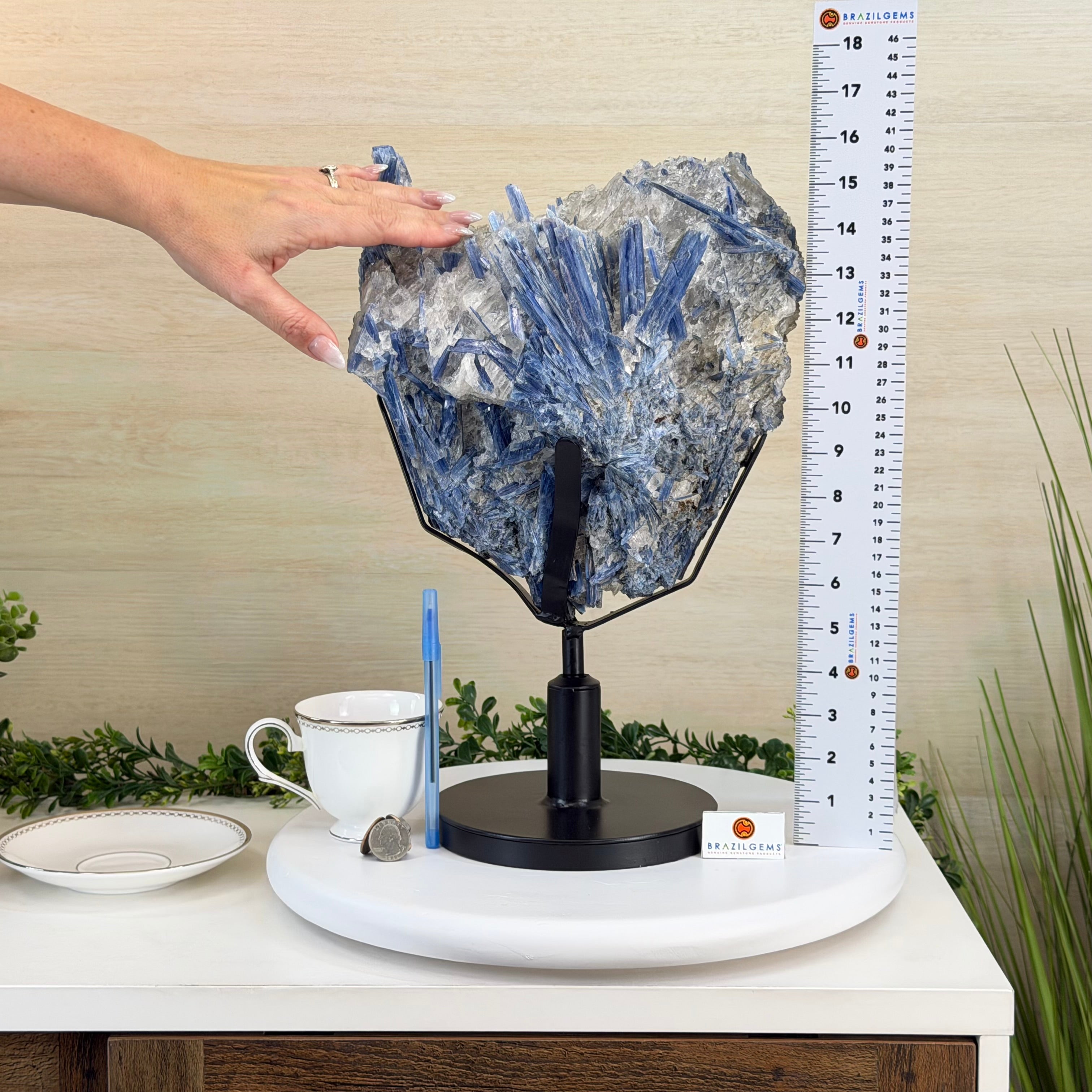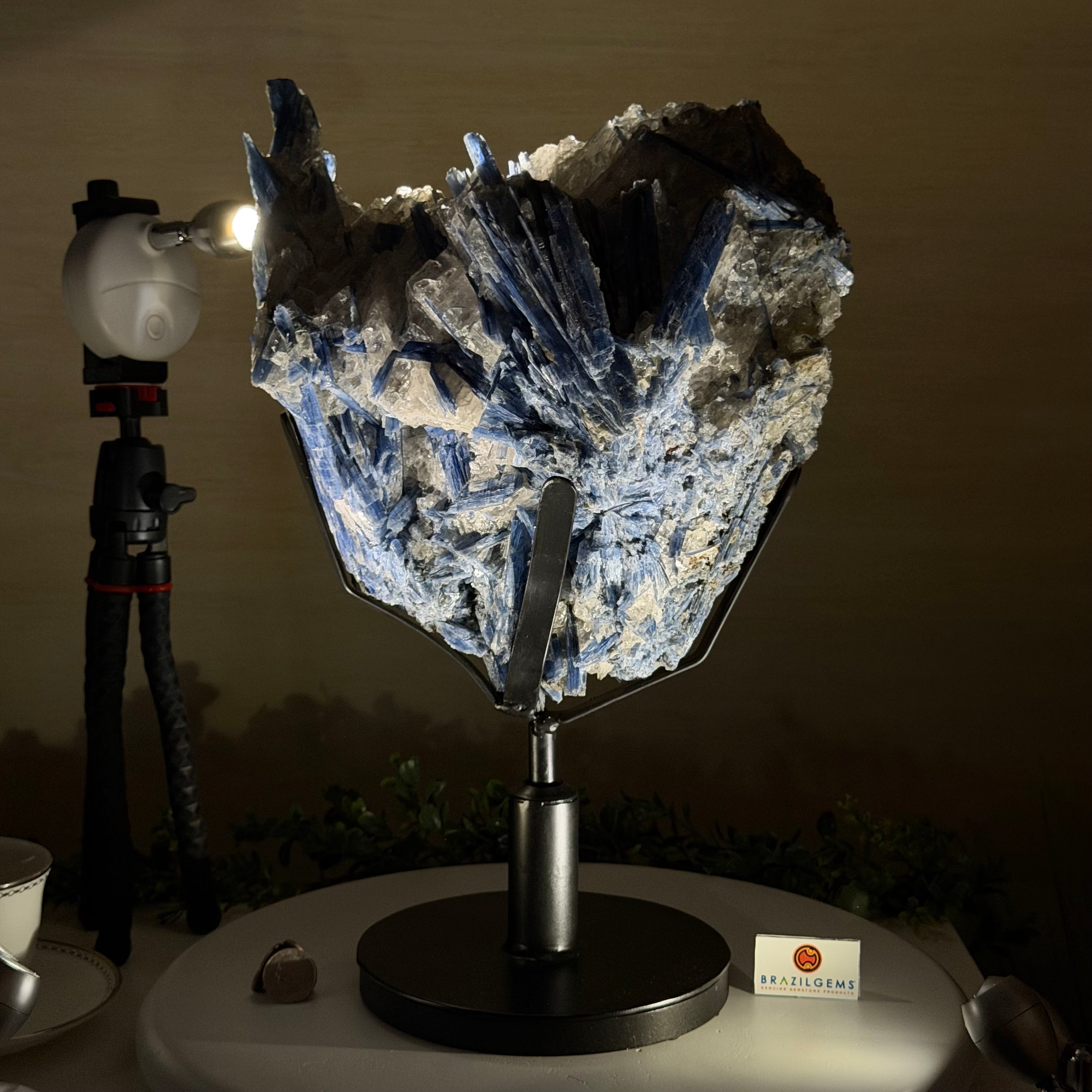 Add a touch of natural elegance to your collection with this stunning large Kyanite specimen, beautifully showcased on a sleek metal rotating stand by Brazil Gems®.