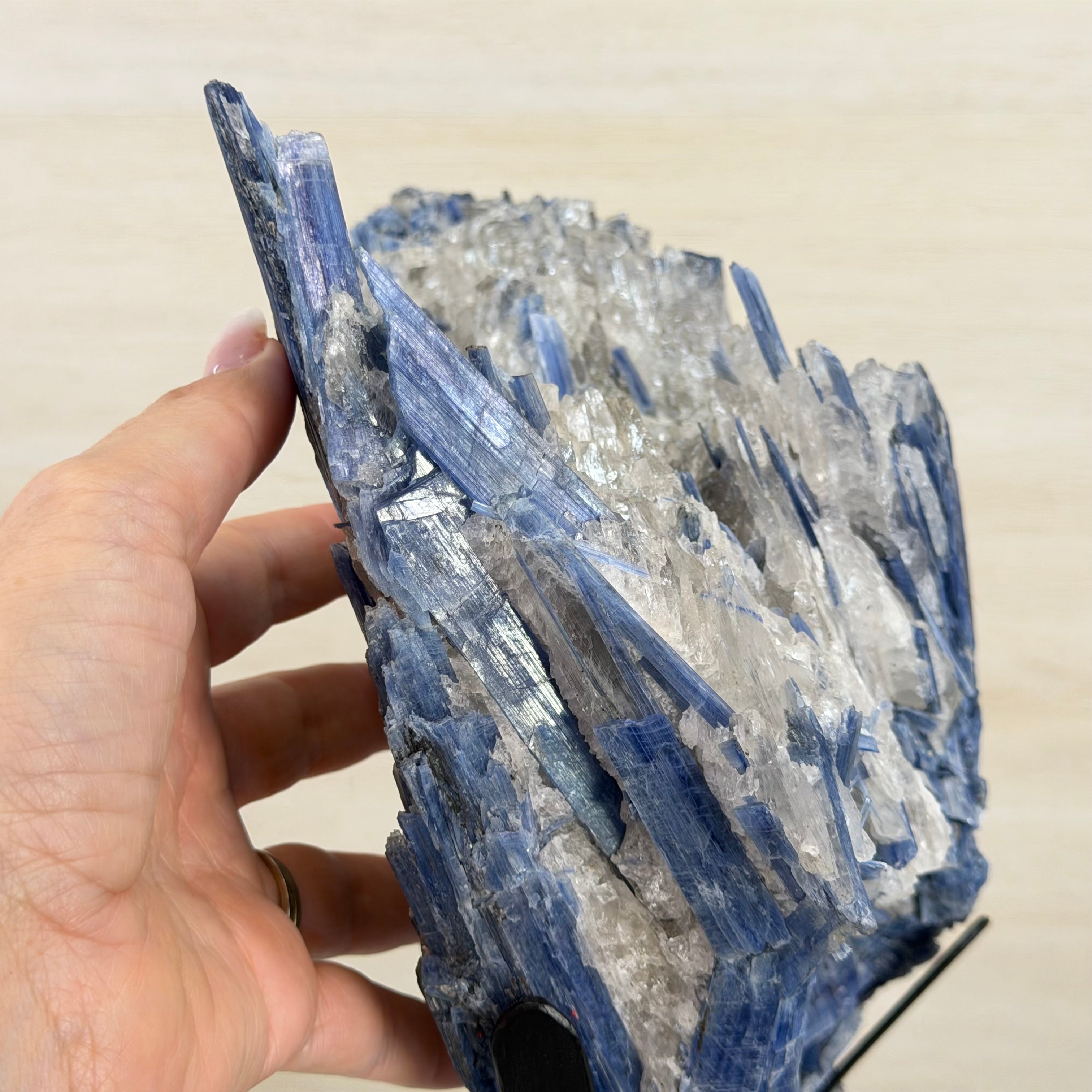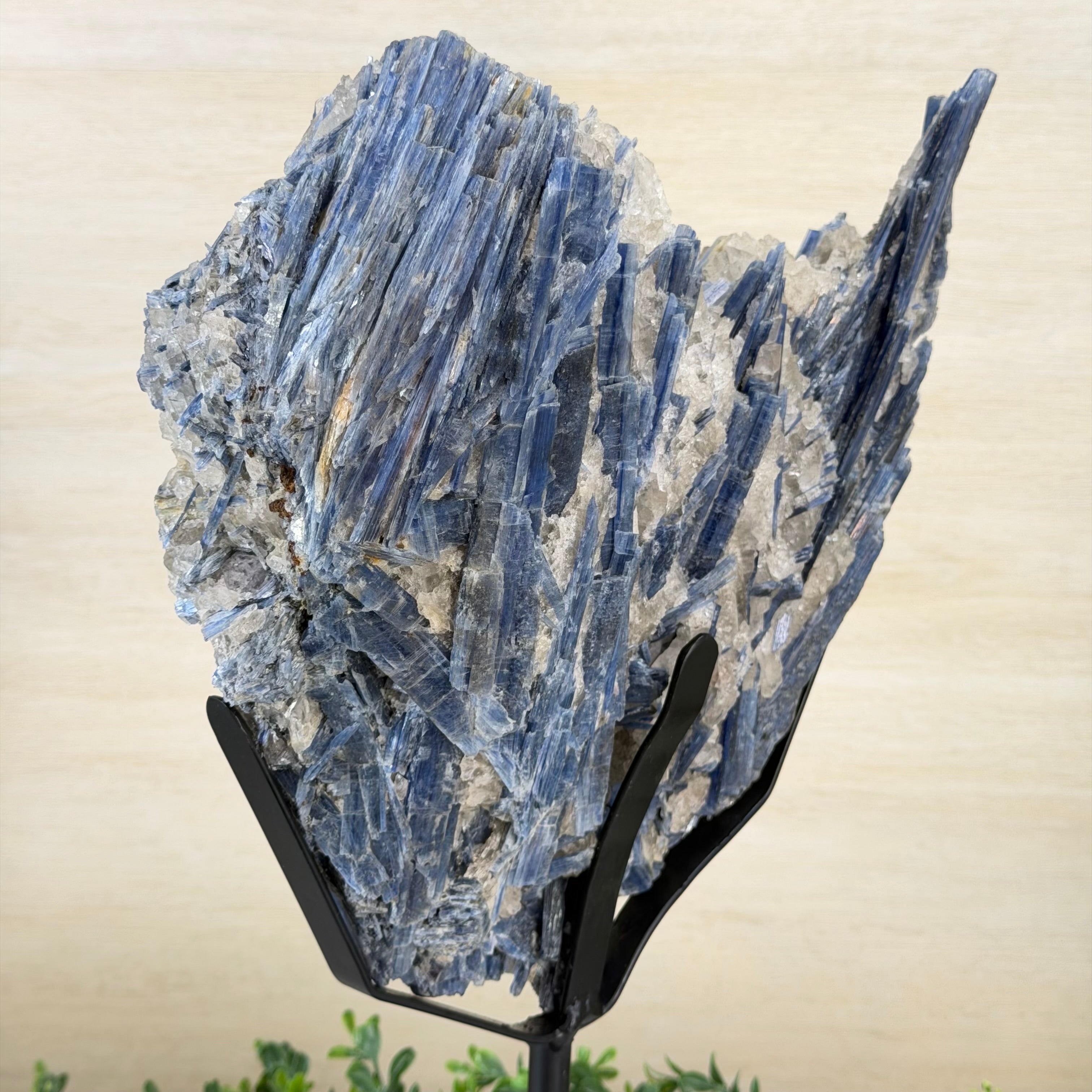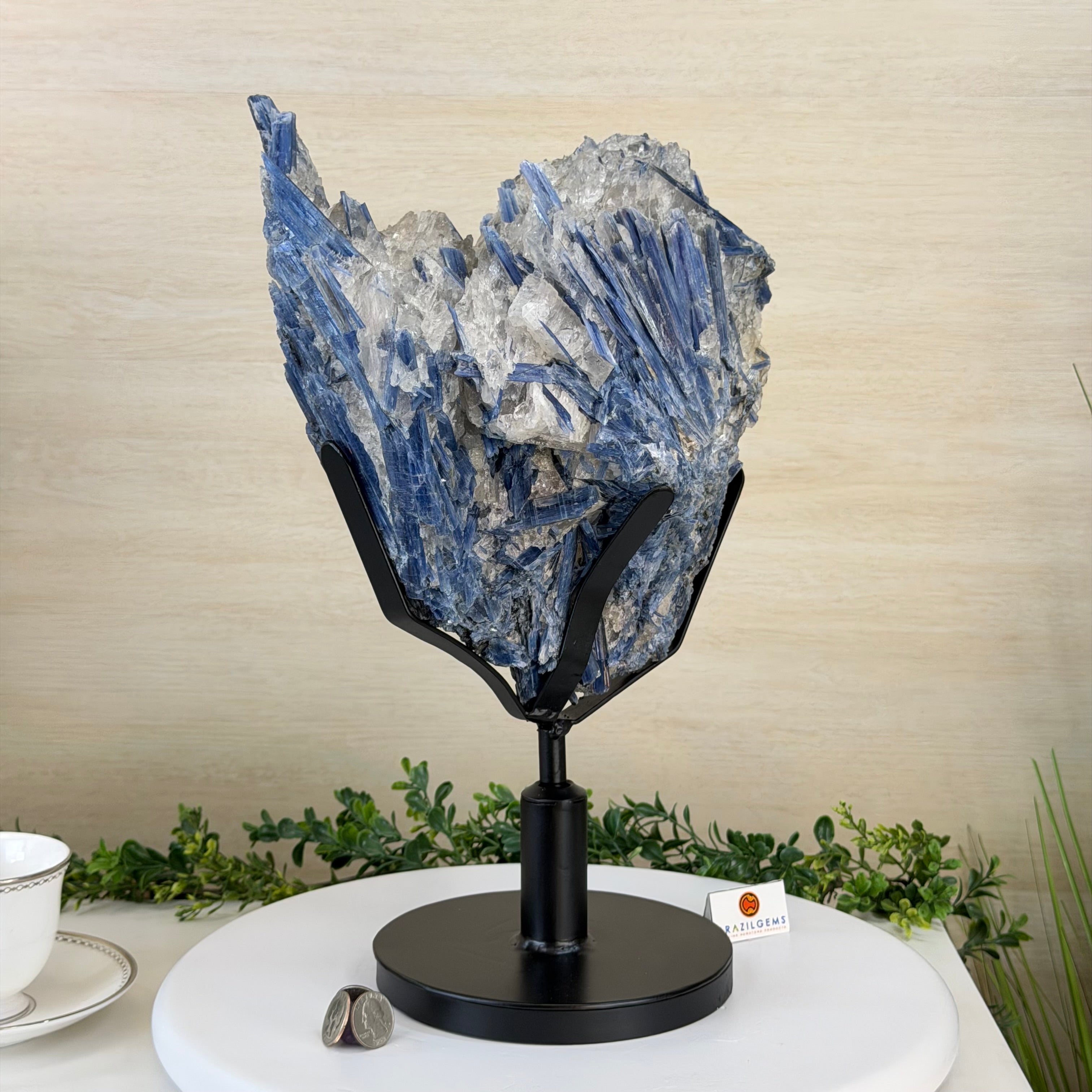 Add a touch of natural elegance to your collection with this stunning large Kyanite specimen, beautifully showcased on a sleek metal rotating stand by Brazil Gems®.
