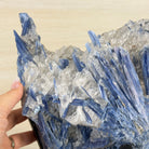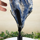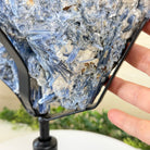 This is a natural gemstone crystal sold by Brazil Gems® as is and as you see it in its images and video. It is the exact one you will receive. It may contain natural imperfections and/or imperfections, broken edges and repairs from the extraction, mounting and prepping processes. The stand is custom made to fit this piece and was painted black. Kyanite is a very delicate and brittle gemstone with delicate crystal blades jutting out and handling the piece can inevitably cause its points/blades to break off in small pieces. It's best to handle it as little as possible. At Brazil Gems® we make every effort to get measurements as exact as possible but they are done by human hands and eyes and therefore may have minor discrepancies.