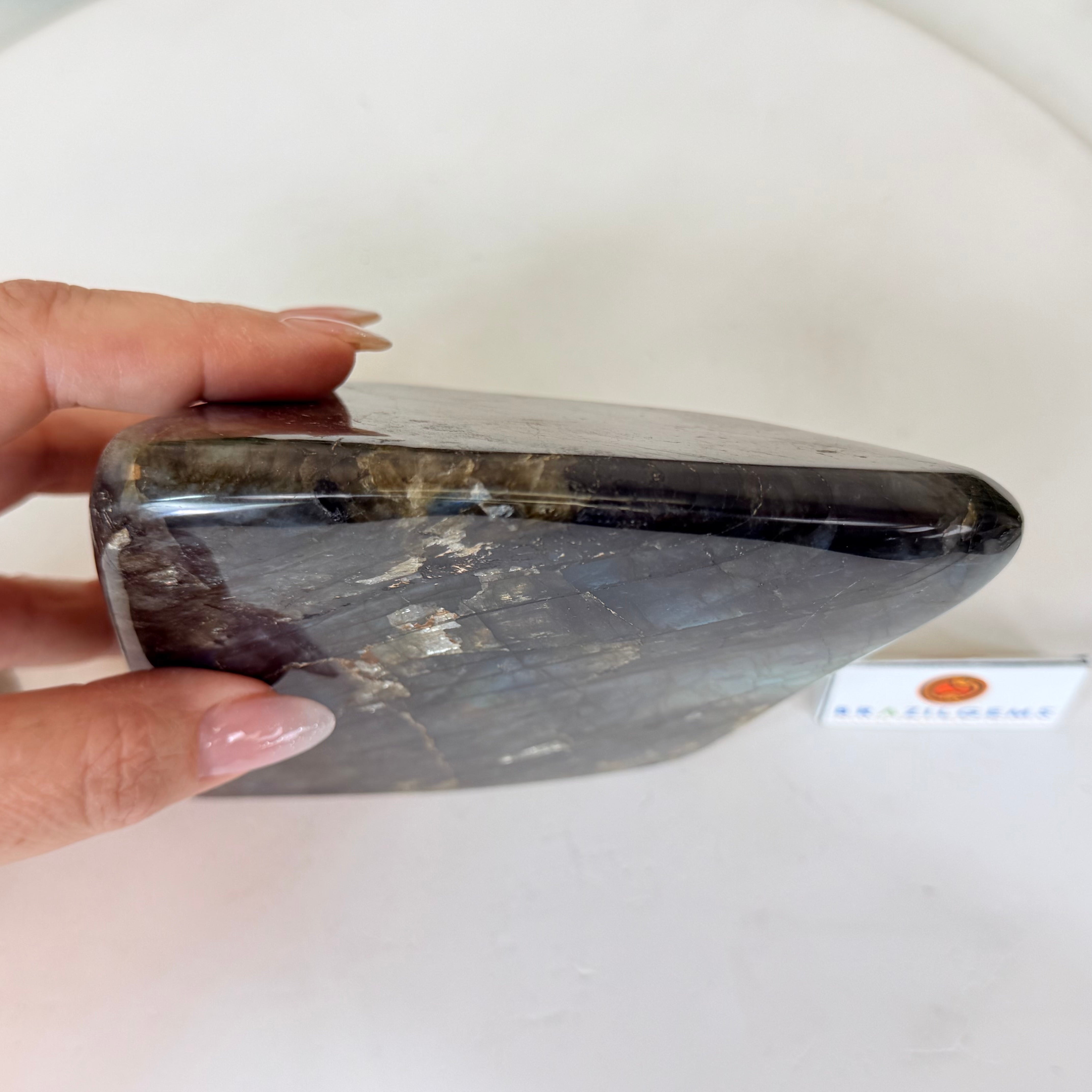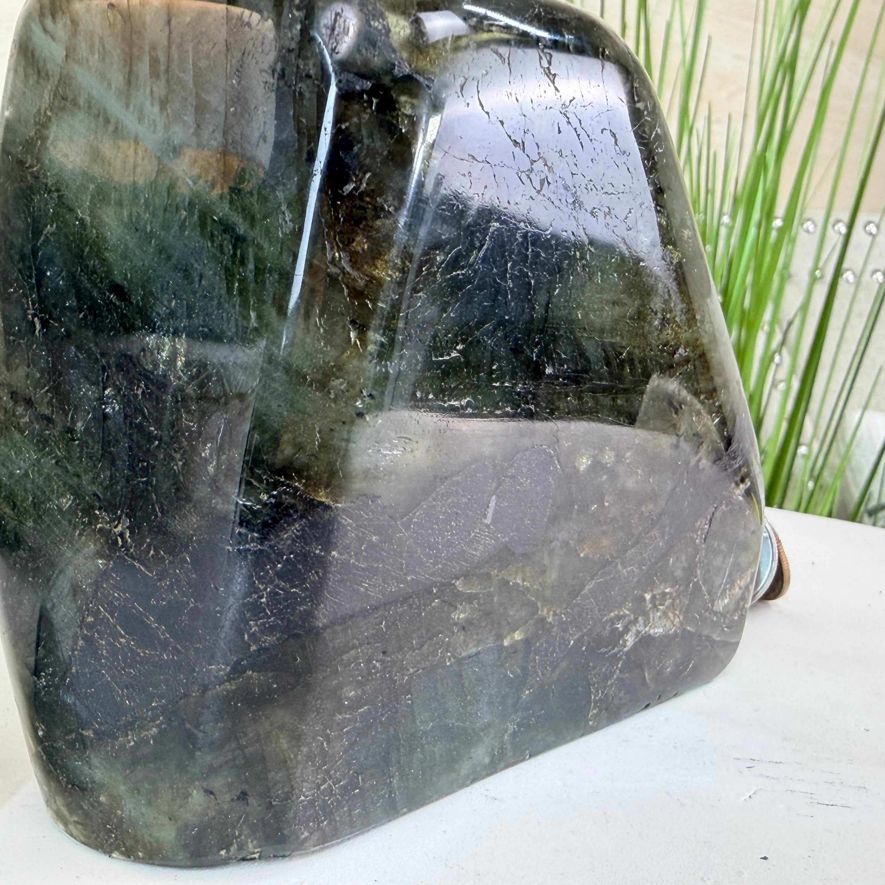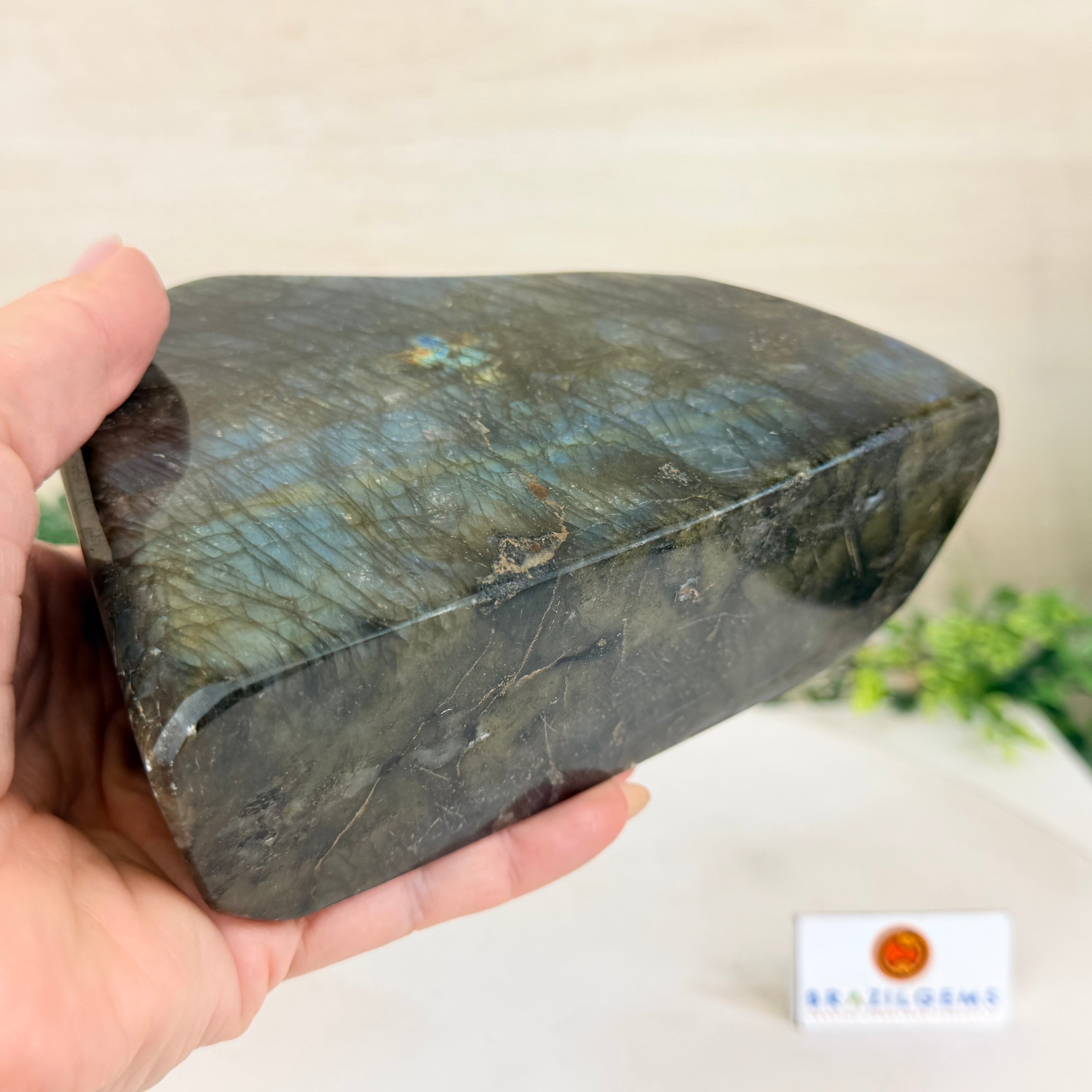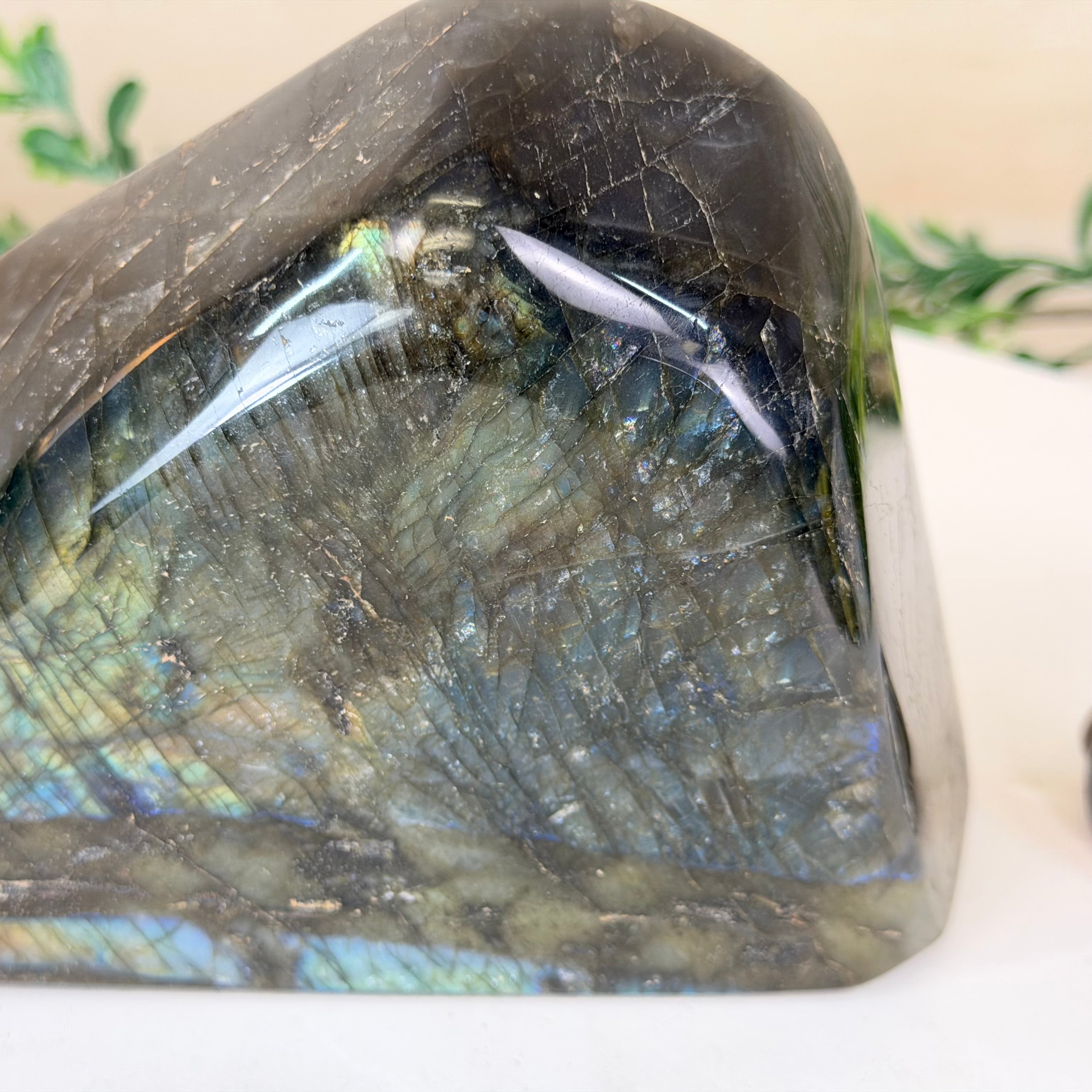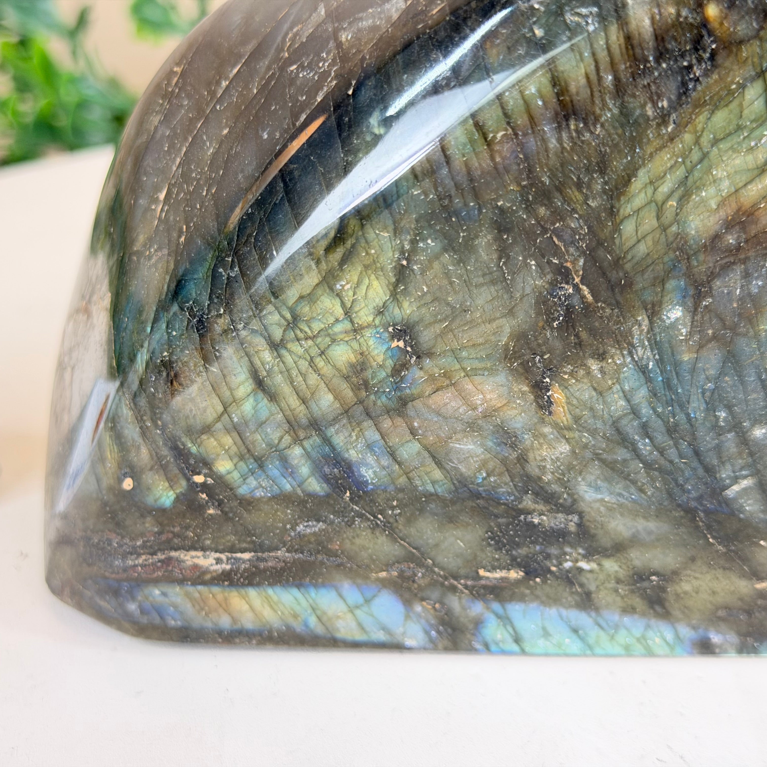 Moreover, Labradorite's appeal extends beyond the world of jewelry. It is also used for decorative purposes, as polished slabs or cabochons are sometimes employed in home decor, such as countertops, tabletops, and accent pieces. Its presence in living spaces adds a touch of mystique and elegance, making it a popular choice for interior designers and crystal enthusiasts seeking to infuse their surroundings with a sense of wonder.