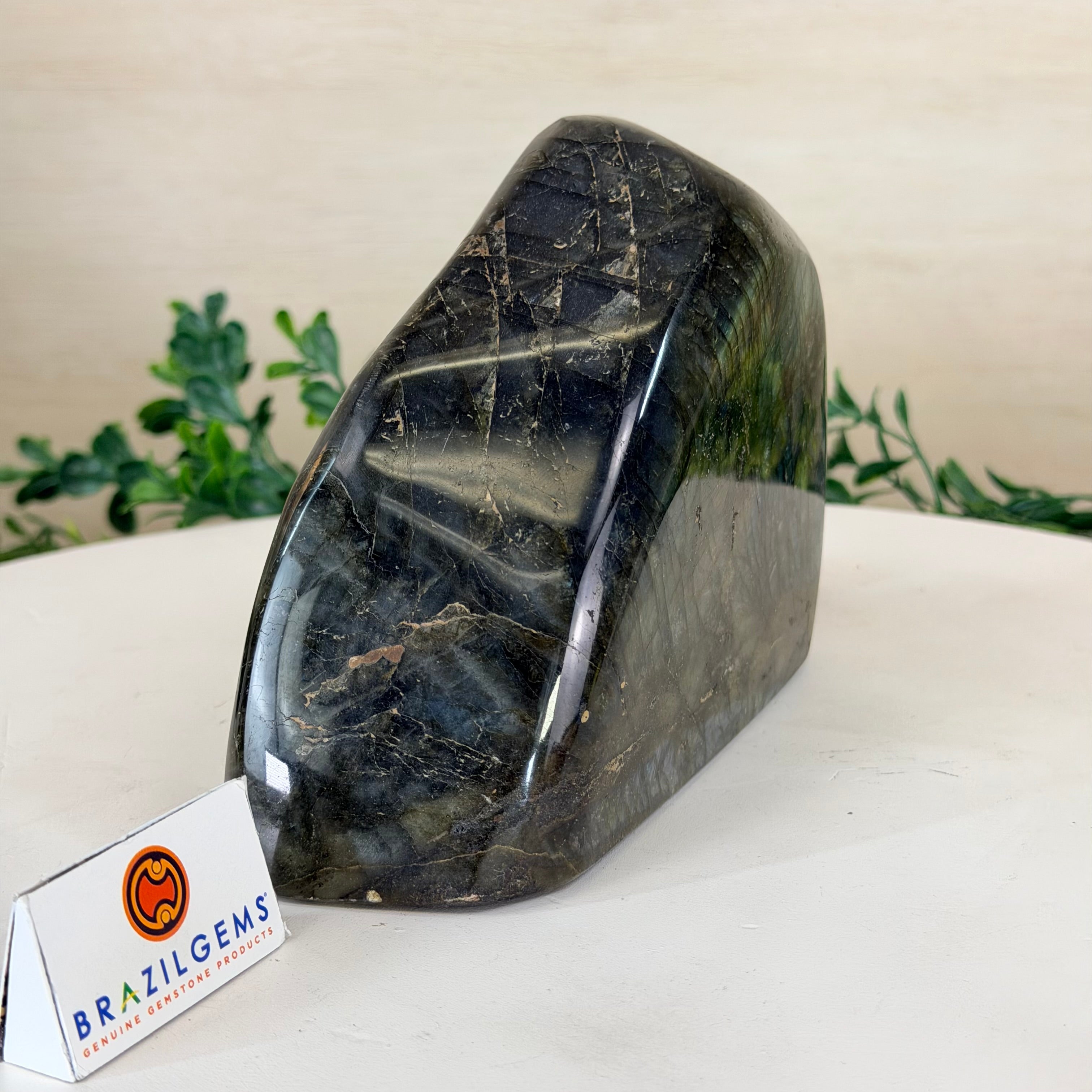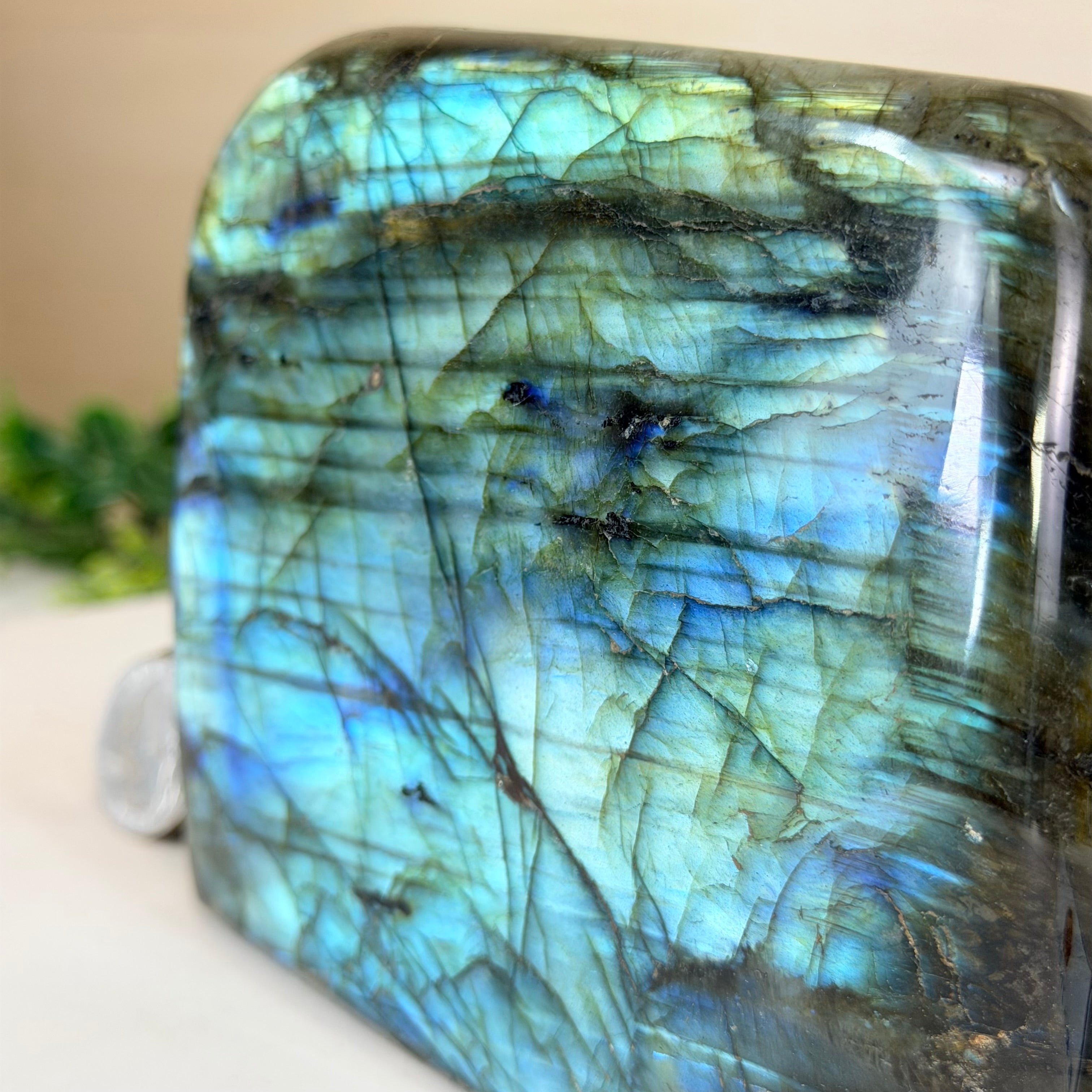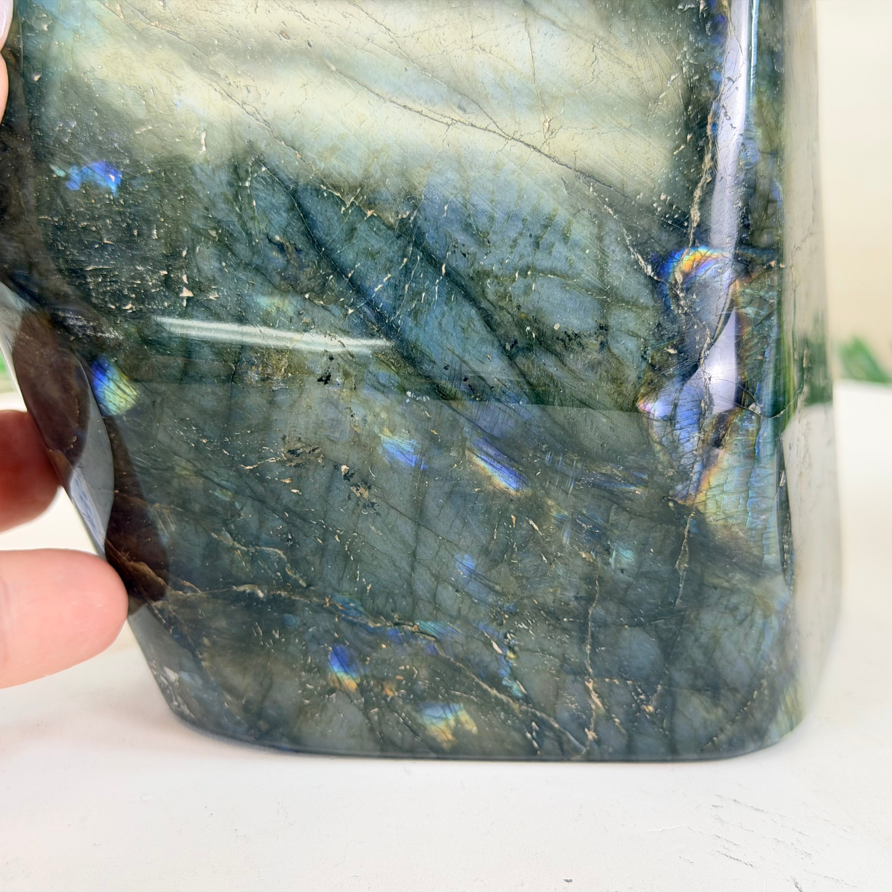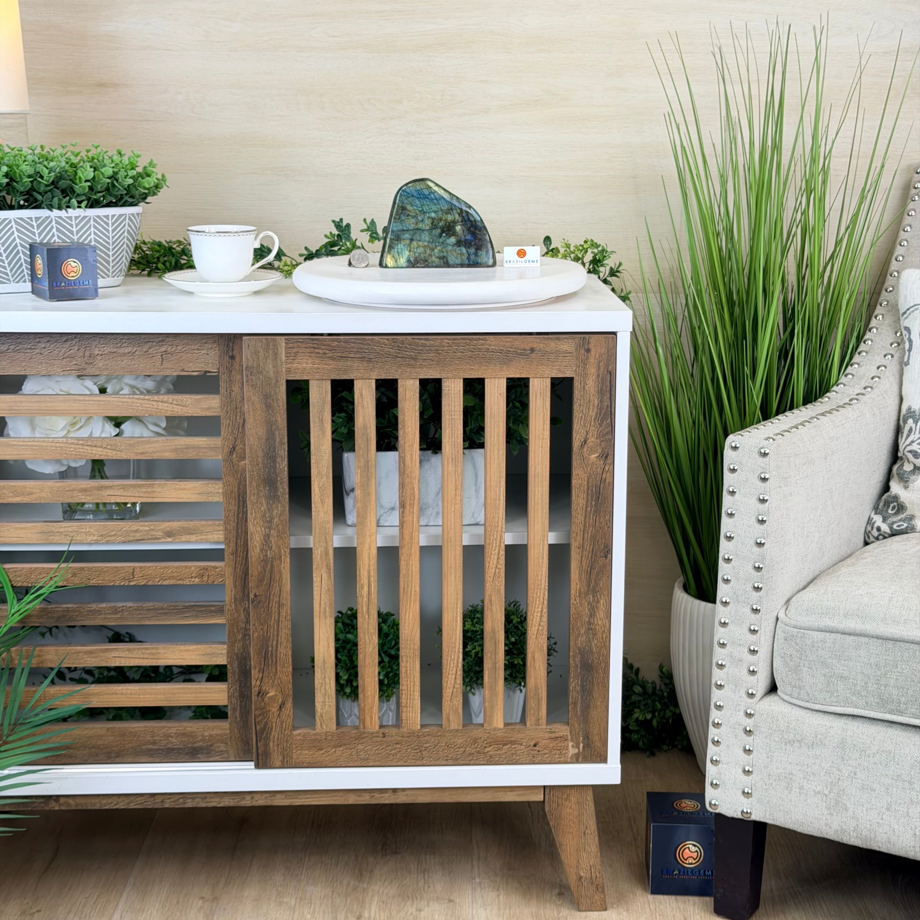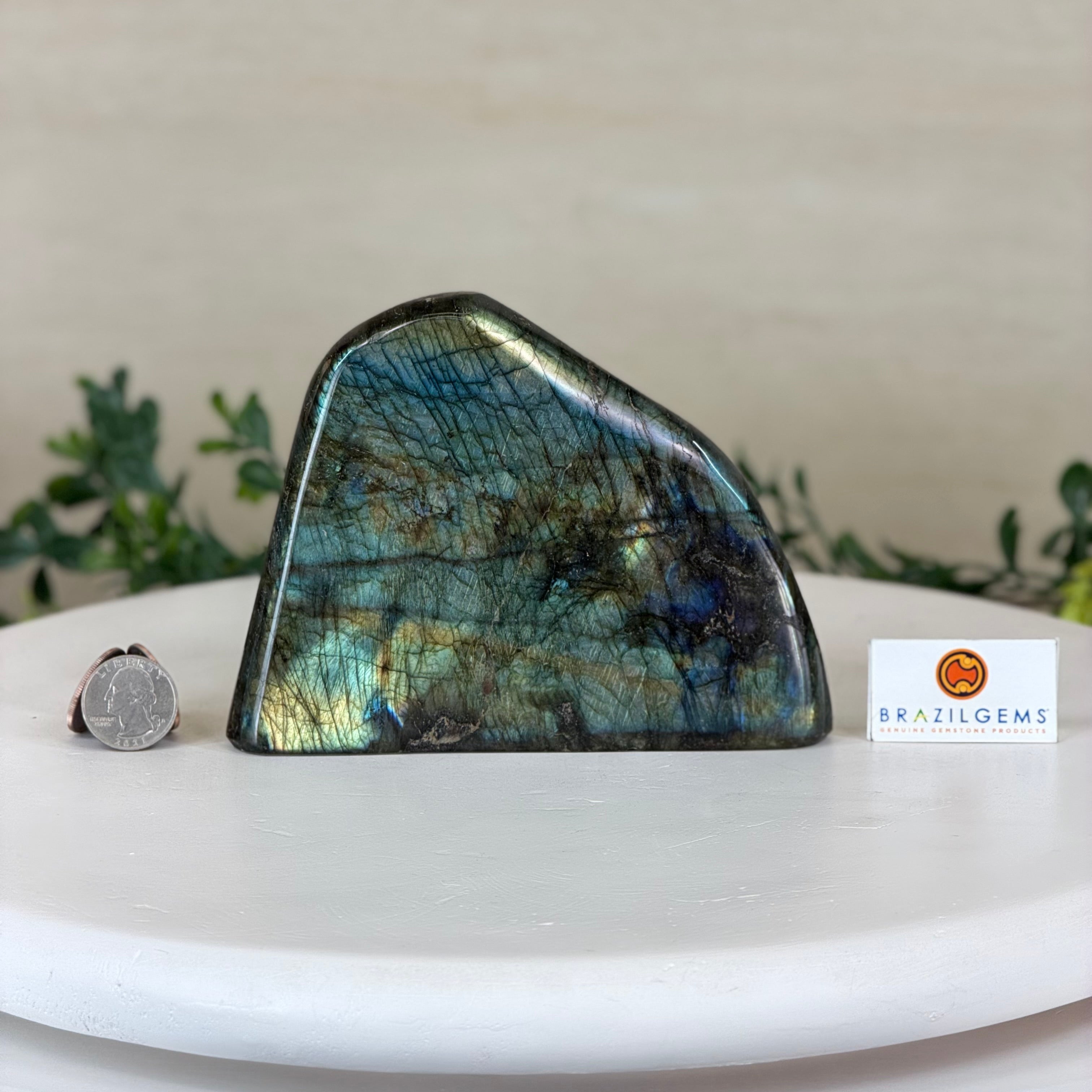 Moreover, Labradorite's appeal extends beyond the world of jewelry. It is also used for decorative purposes, as polished slabs or cabochons are sometimes employed in home decor, such as countertops, tabletops, and accent pieces. Its presence in living spaces adds a touch of mystique and elegance, making it a popular choice for interior designers and crystal enthusiasts seeking to infuse their surroundings with a sense of wonder.