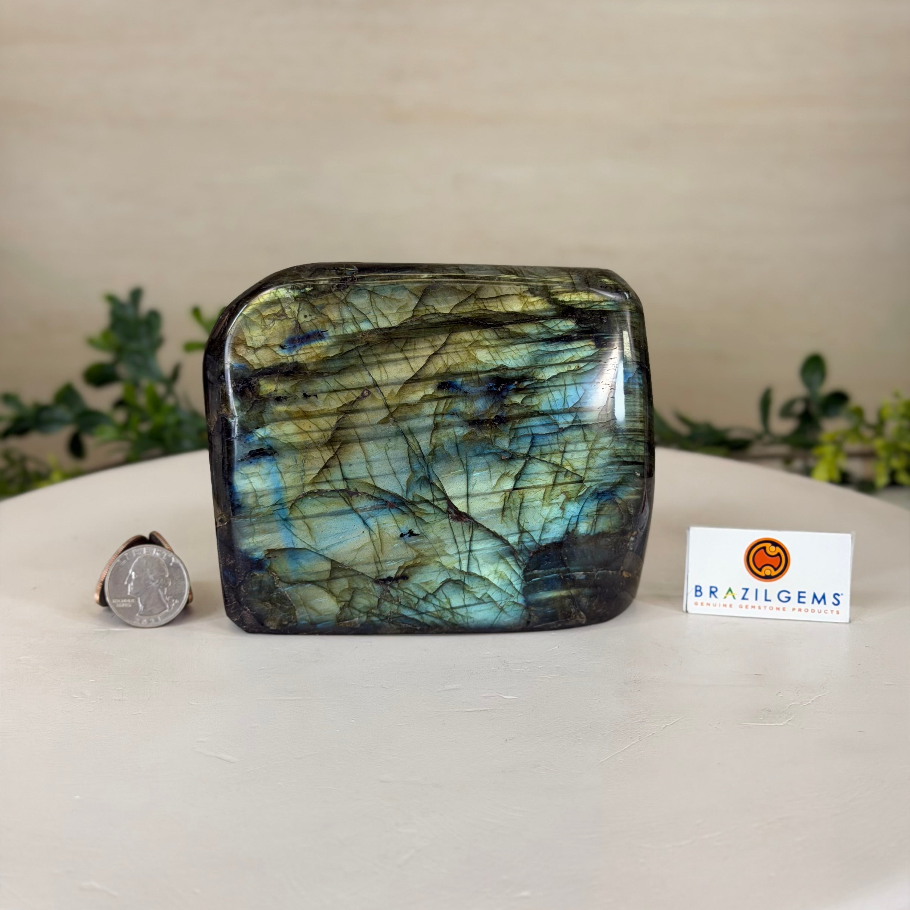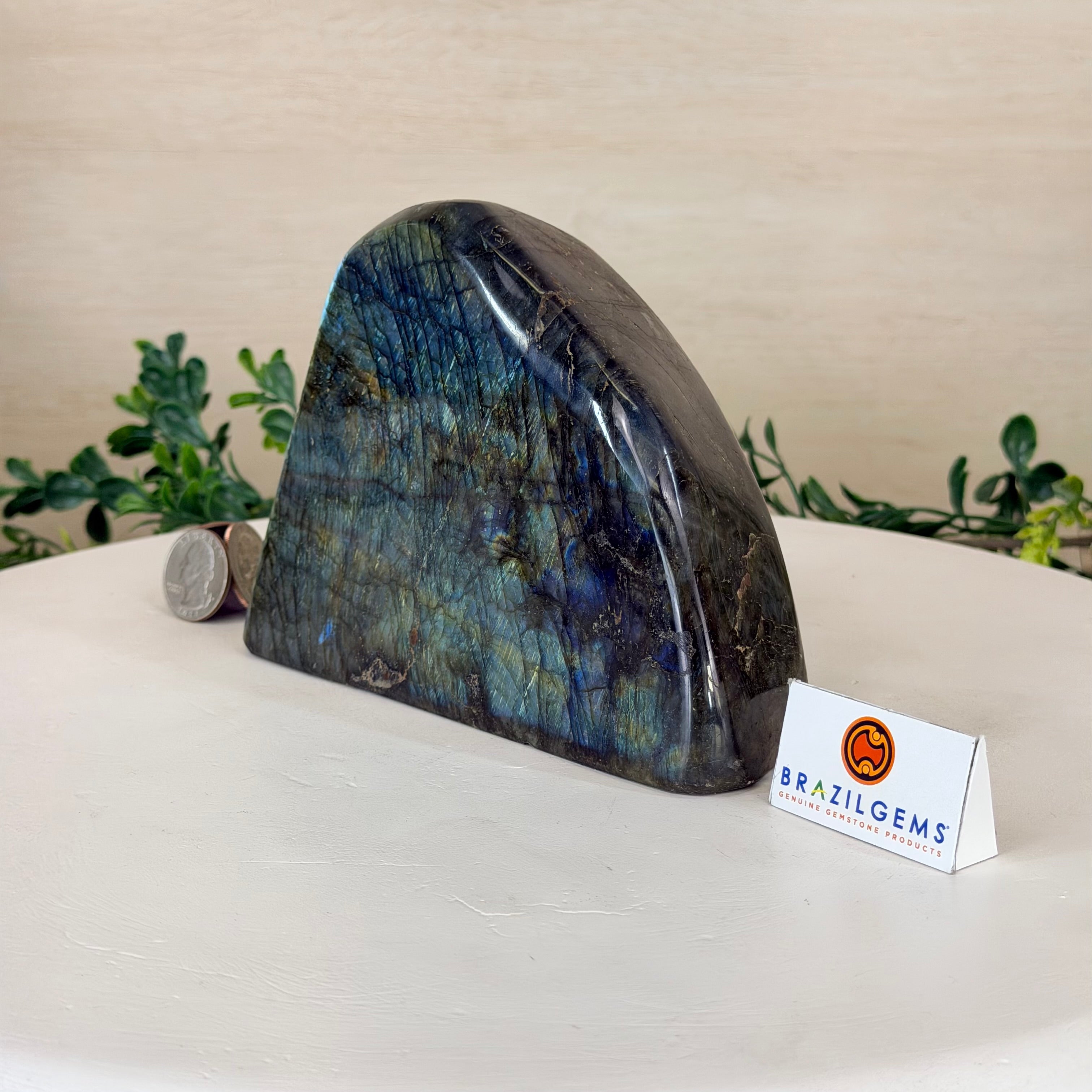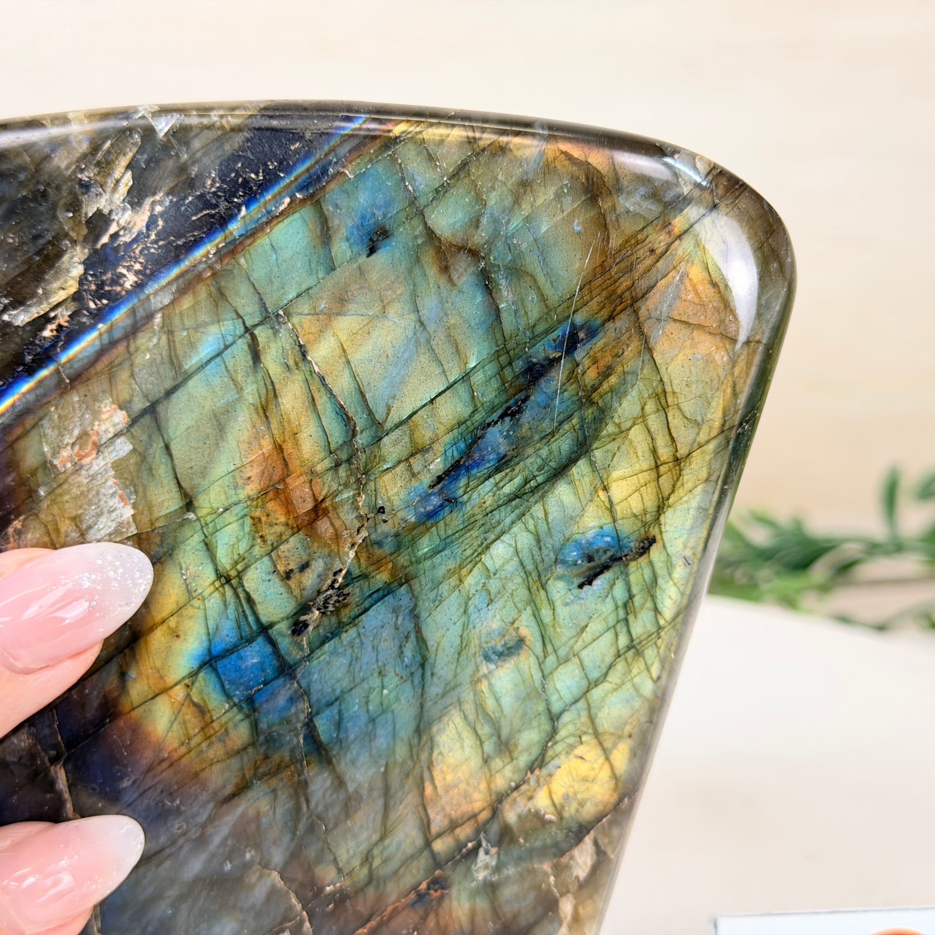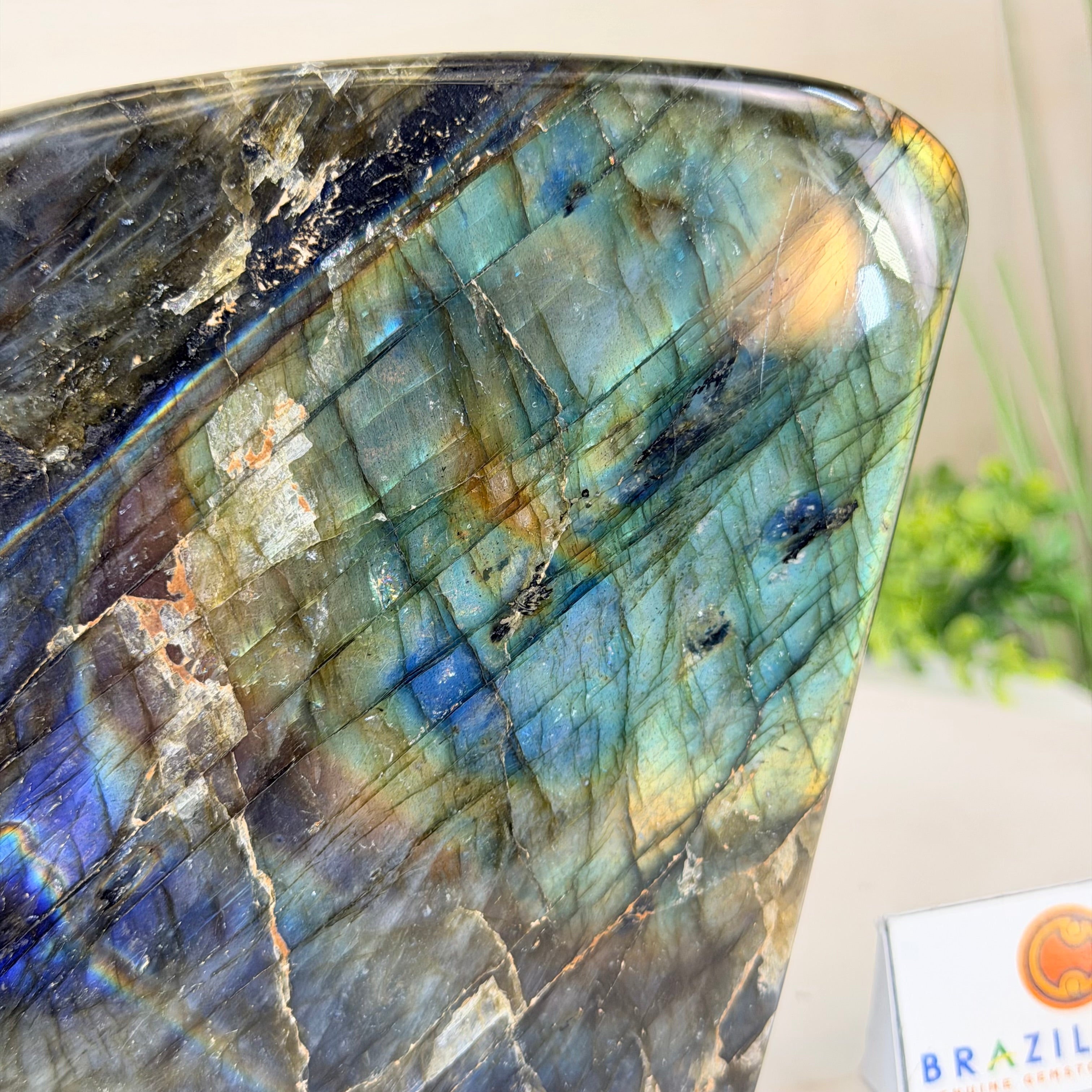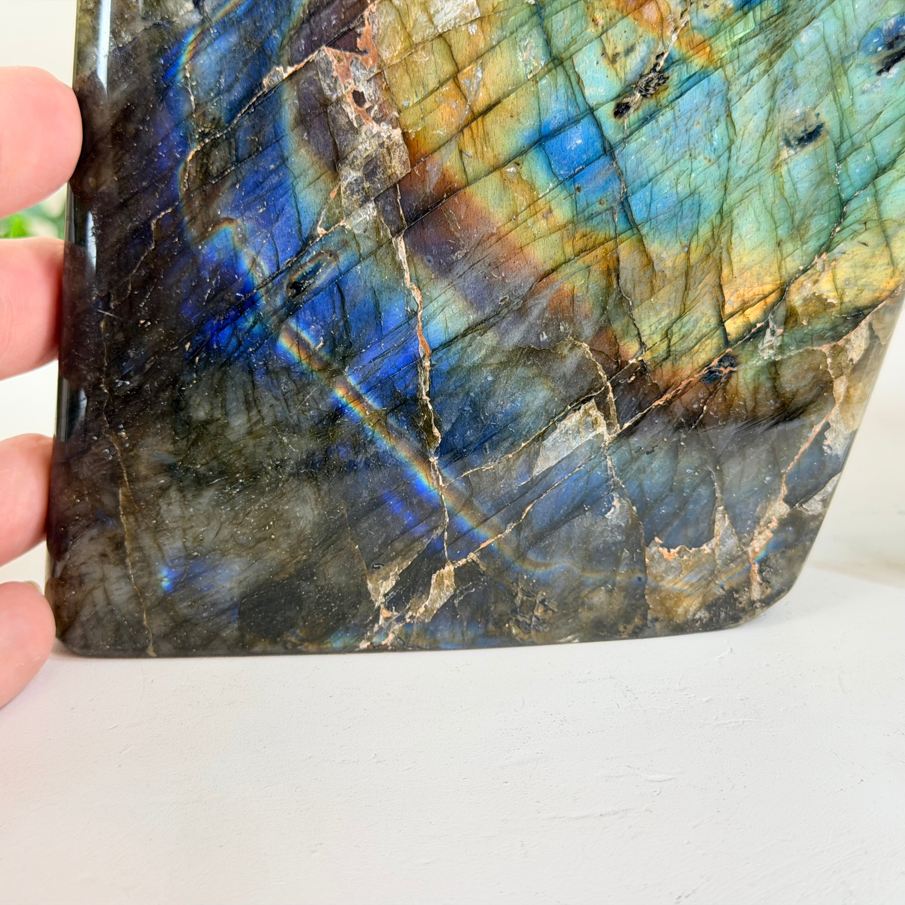 Moreover, Labradorite's appeal extends beyond the world of jewelry. It is also used for decorative purposes, as polished slabs or cabochons are sometimes employed in home decor, such as countertops, tabletops, and accent pieces. Its presence in living spaces adds a touch of mystique and elegance, making it a popular choice for interior designers and crystal enthusiasts seeking to infuse their surroundings with a sense of wonder.