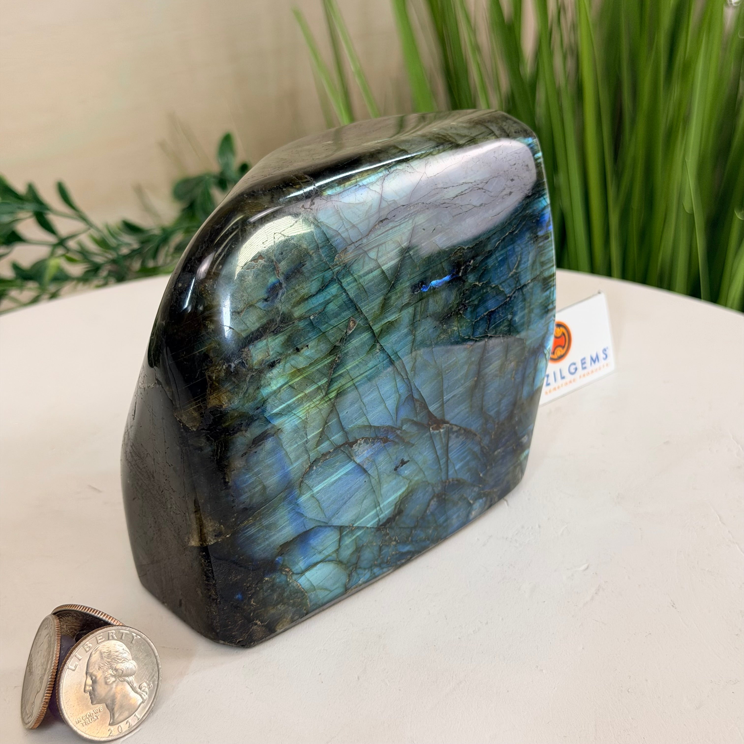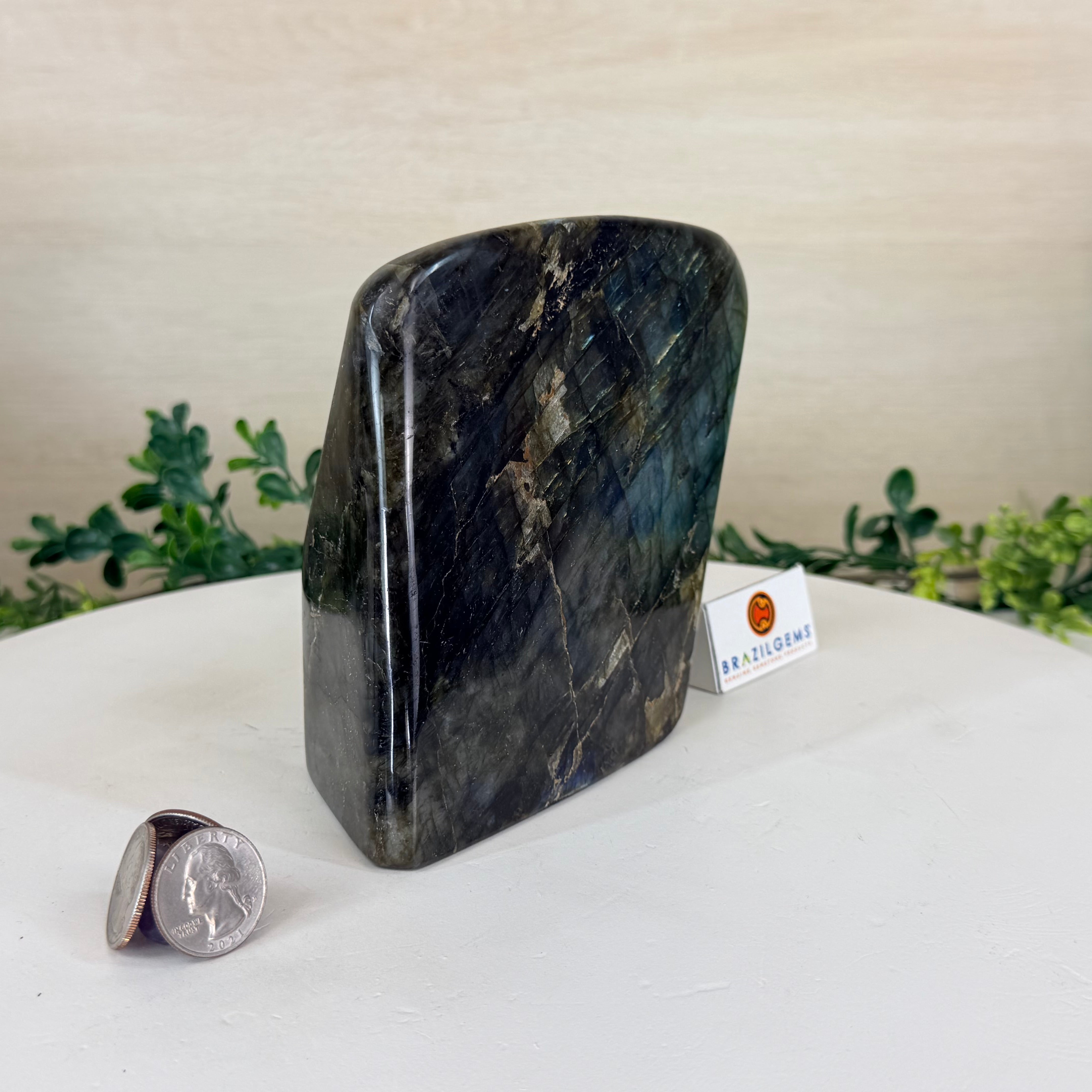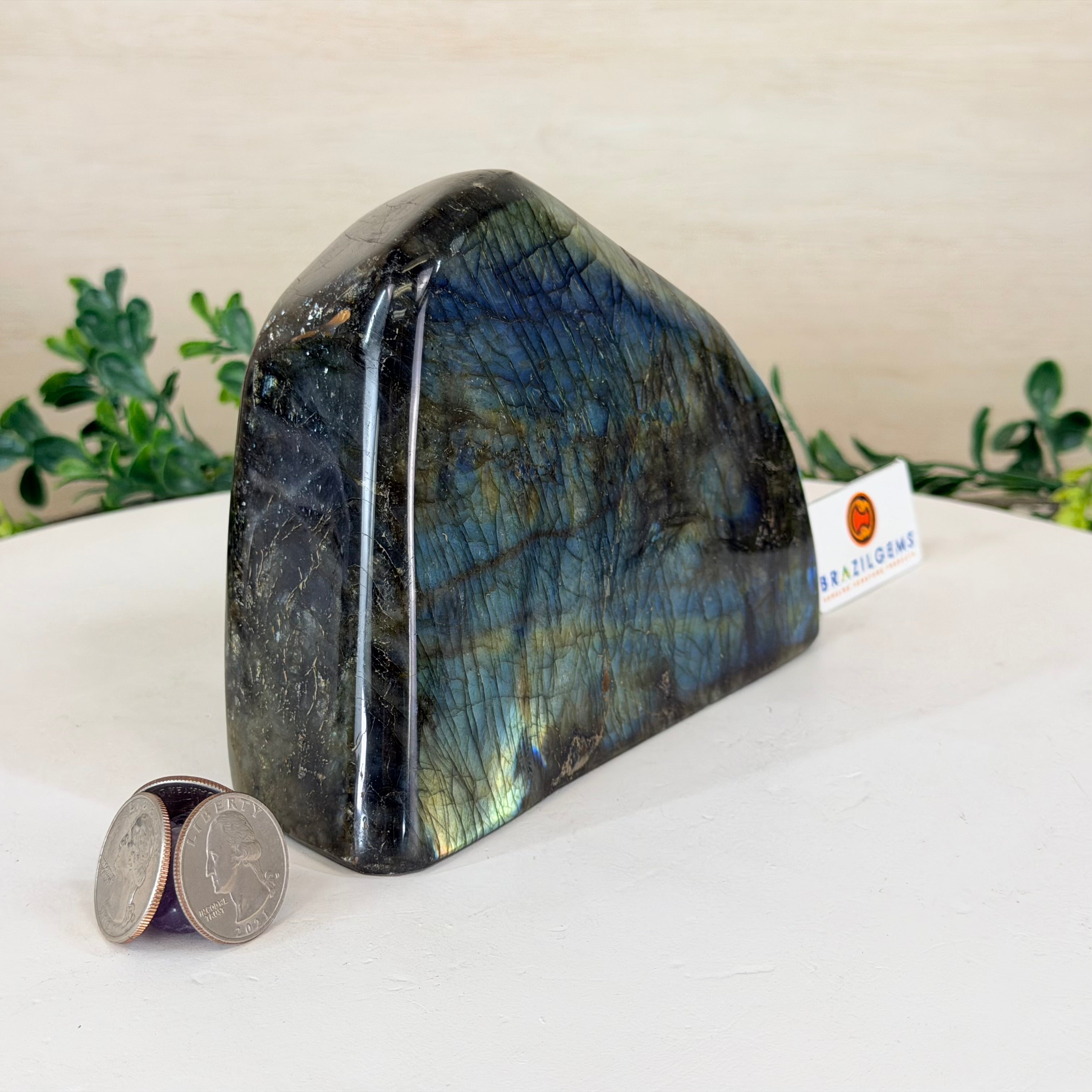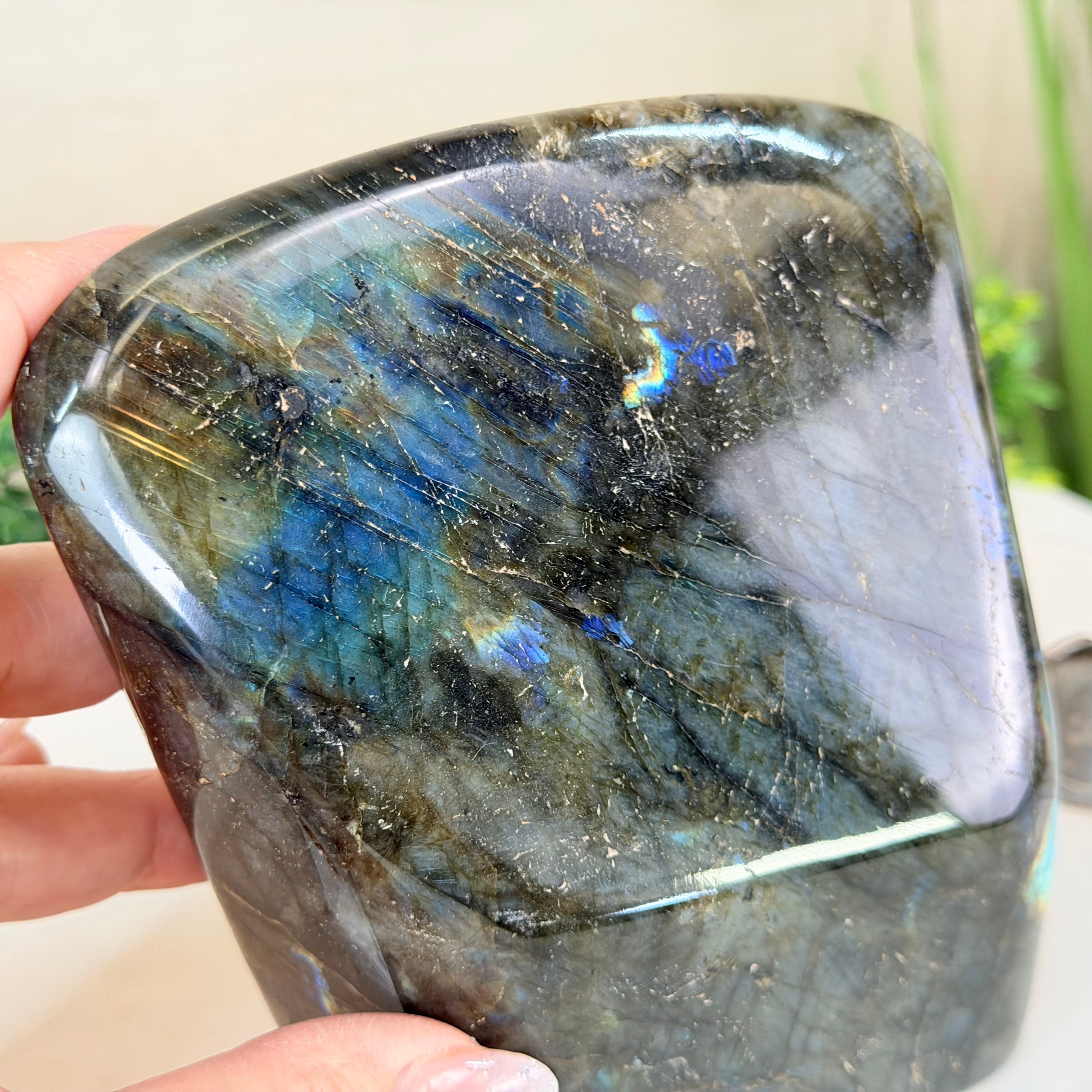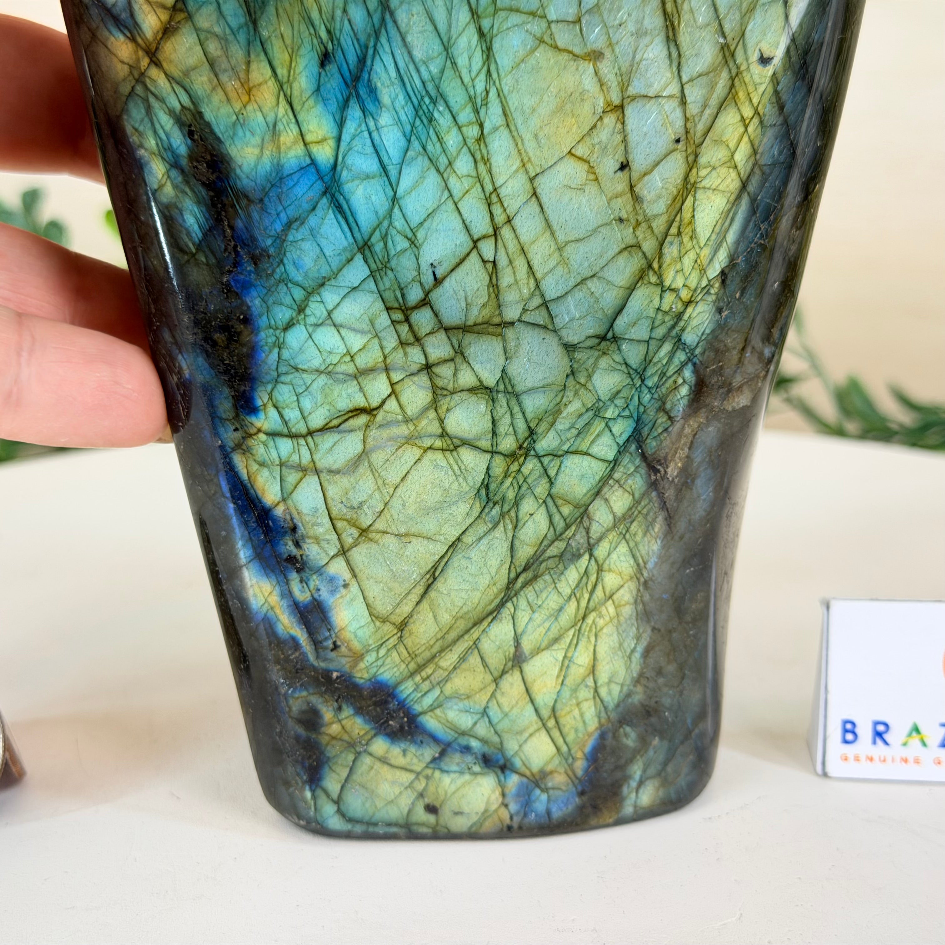 Moreover, Labradorite's appeal extends beyond the world of jewelry. It is also used for decorative purposes, as polished slabs or cabochons are sometimes employed in home decor, such as countertops, tabletops, and accent pieces. Its presence in living spaces adds a touch of mystique and elegance, making it a popular choice for interior designers and crystal enthusiasts seeking to infuse their surroundings with a sense of wonder.