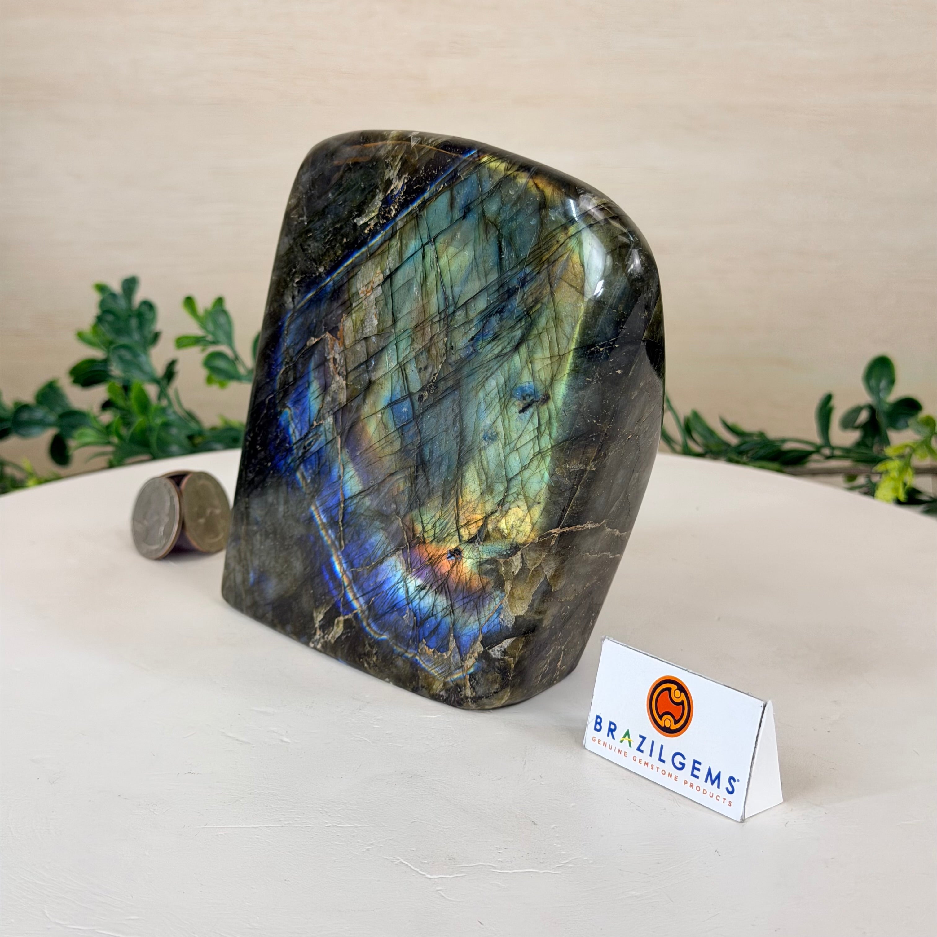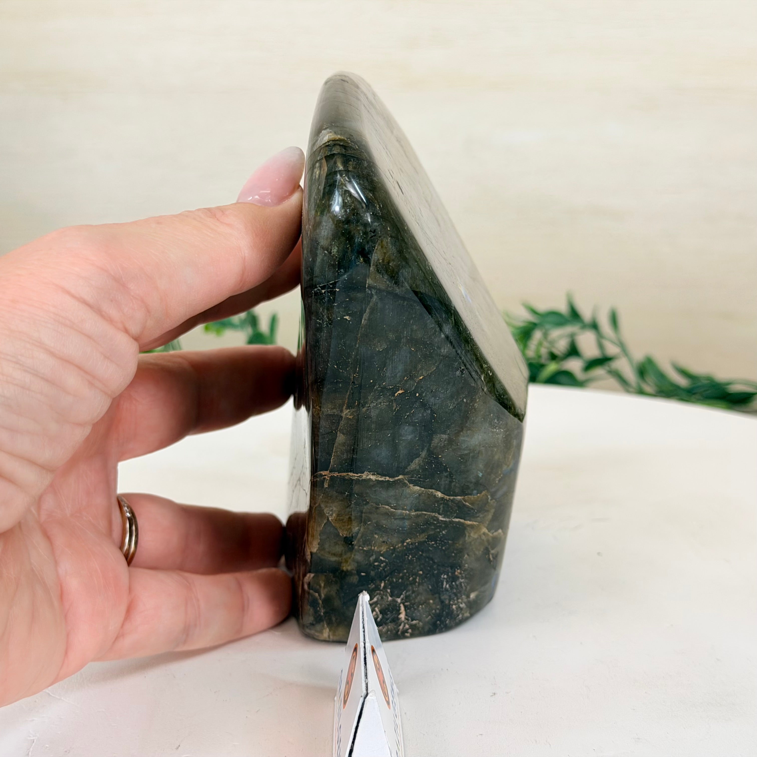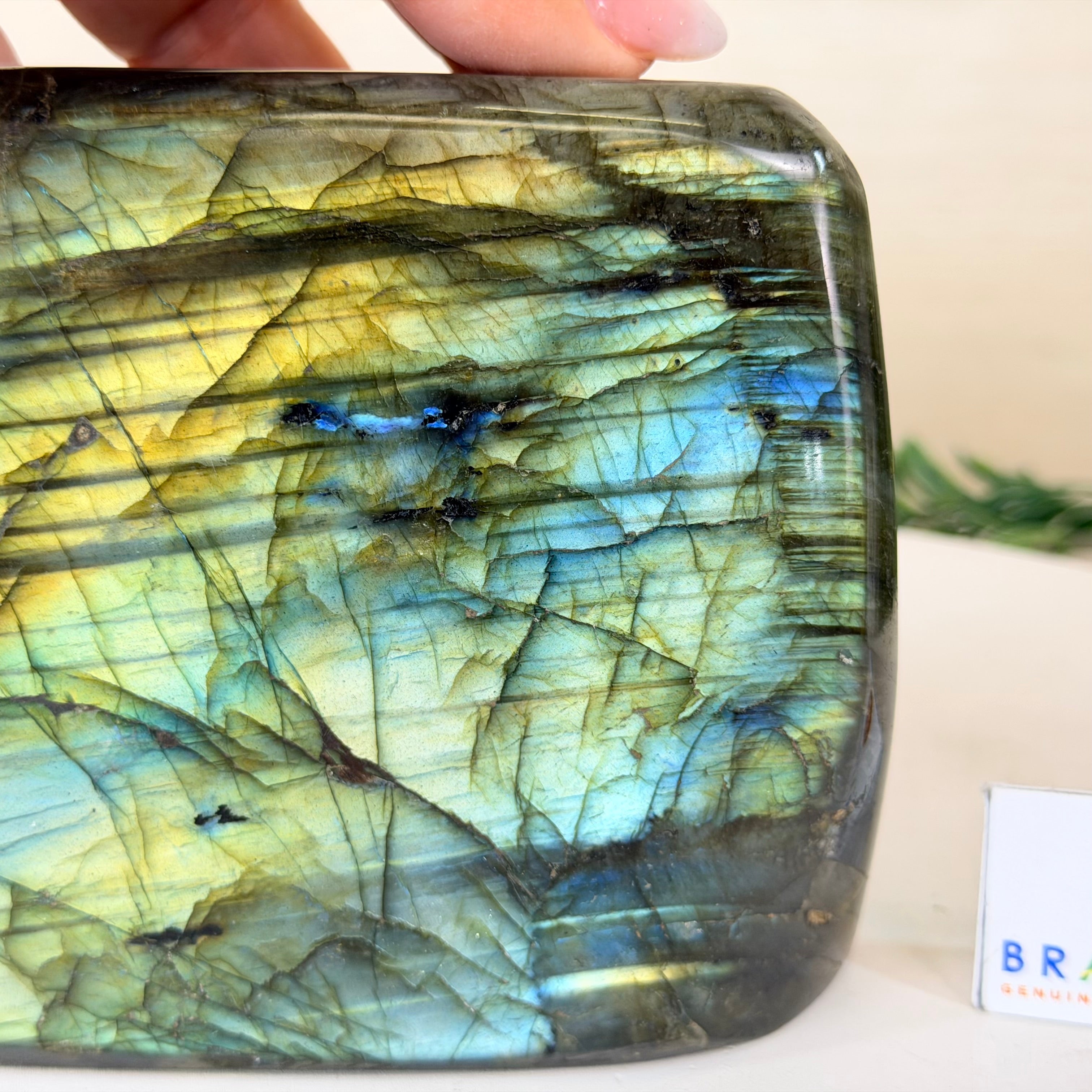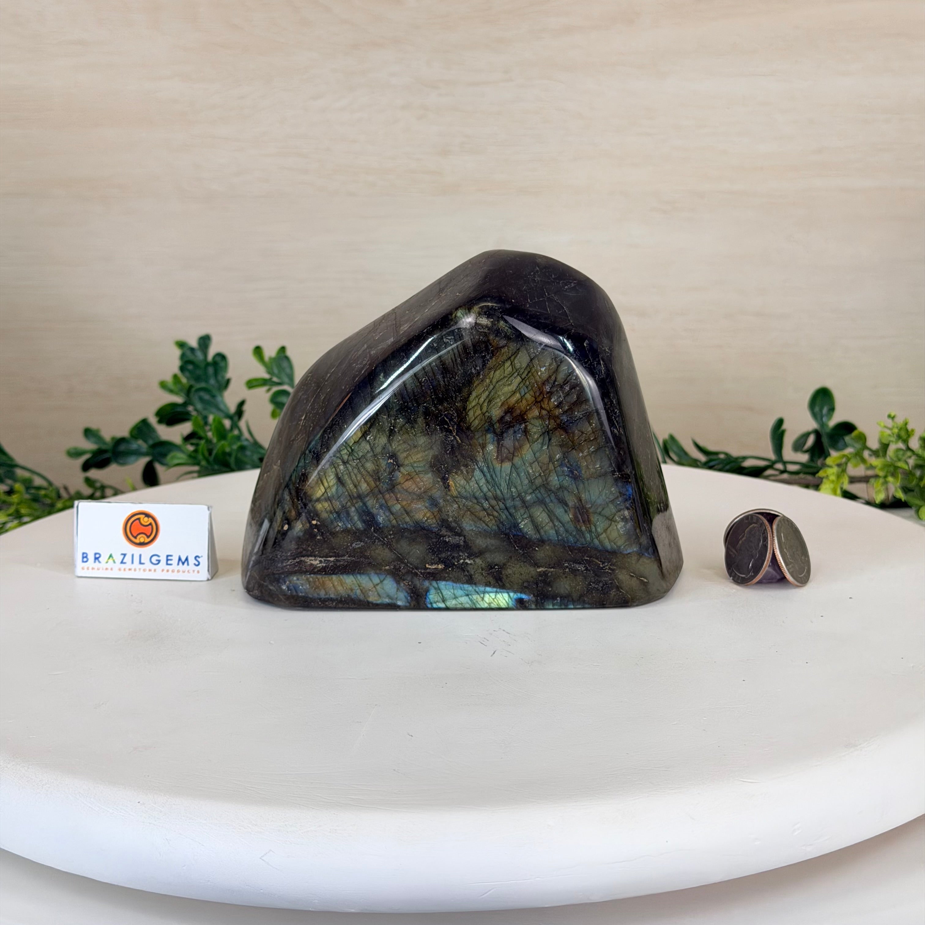 Moreover, Labradorite's appeal extends beyond the world of jewelry. It is also used for decorative purposes, as polished slabs or cabochons are sometimes employed in home decor, such as countertops, tabletops, and accent pieces. Its presence in living spaces adds a touch of mystique and elegance, making it a popular choice for interior designers and crystal enthusiasts seeking to infuse their surroundings with a sense of wonder.