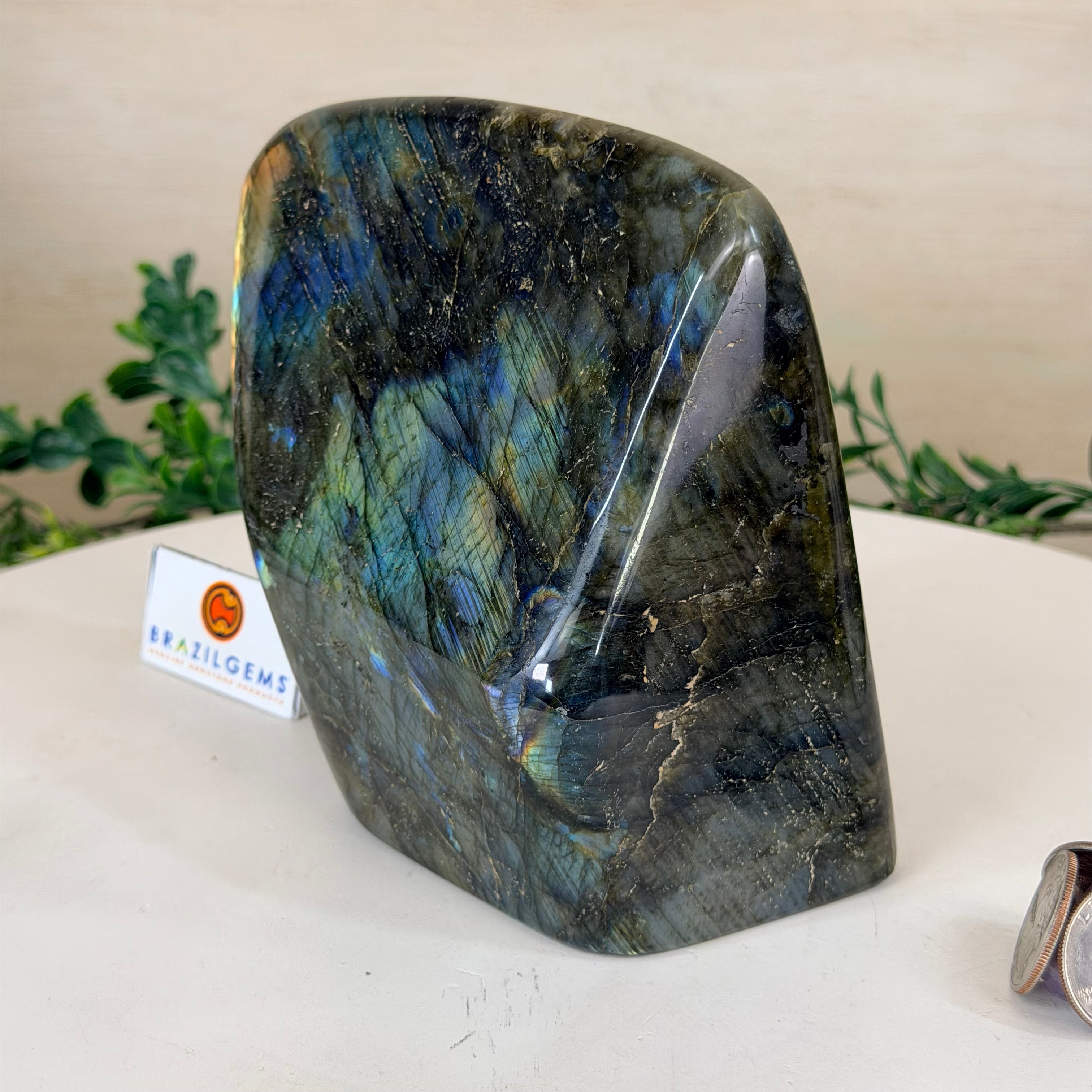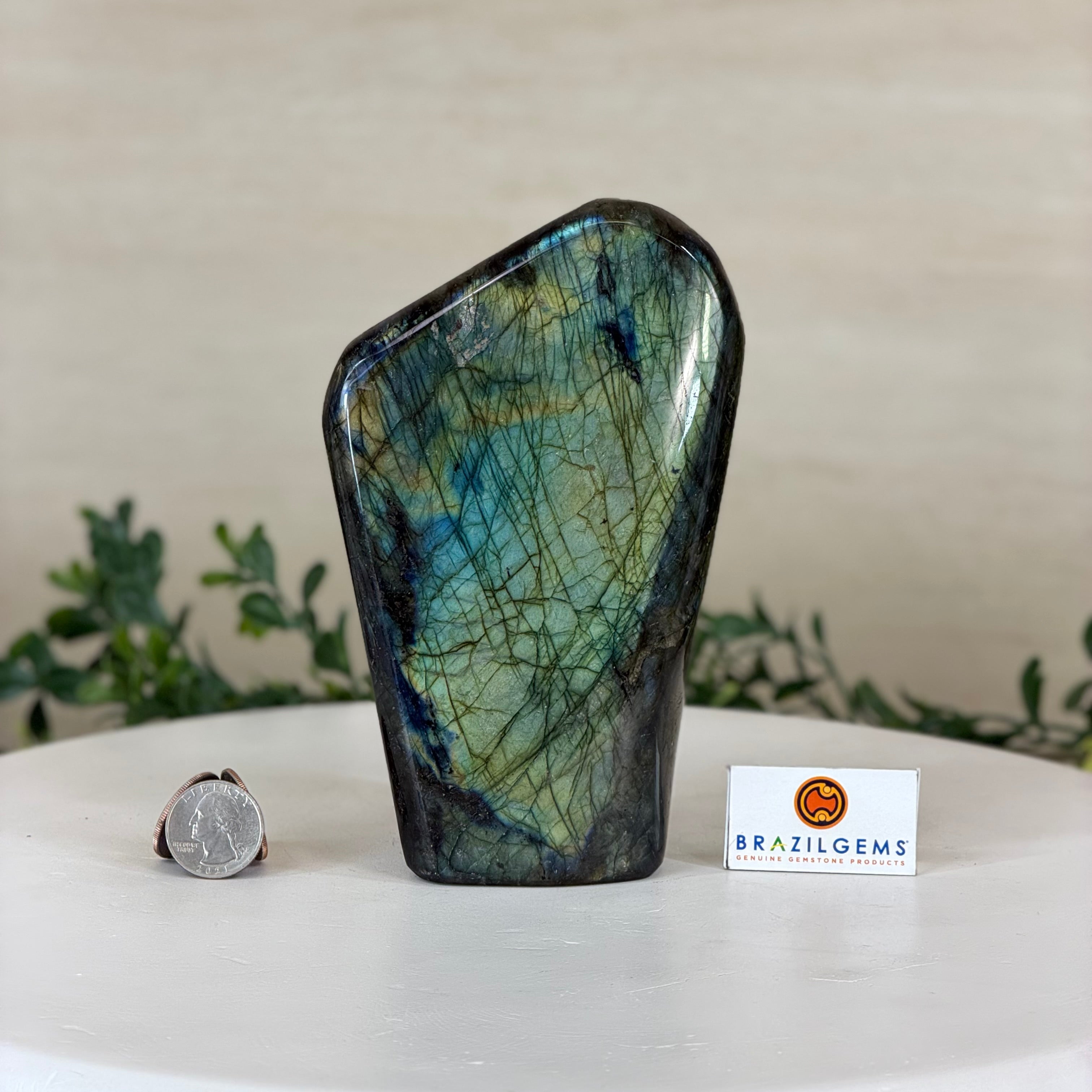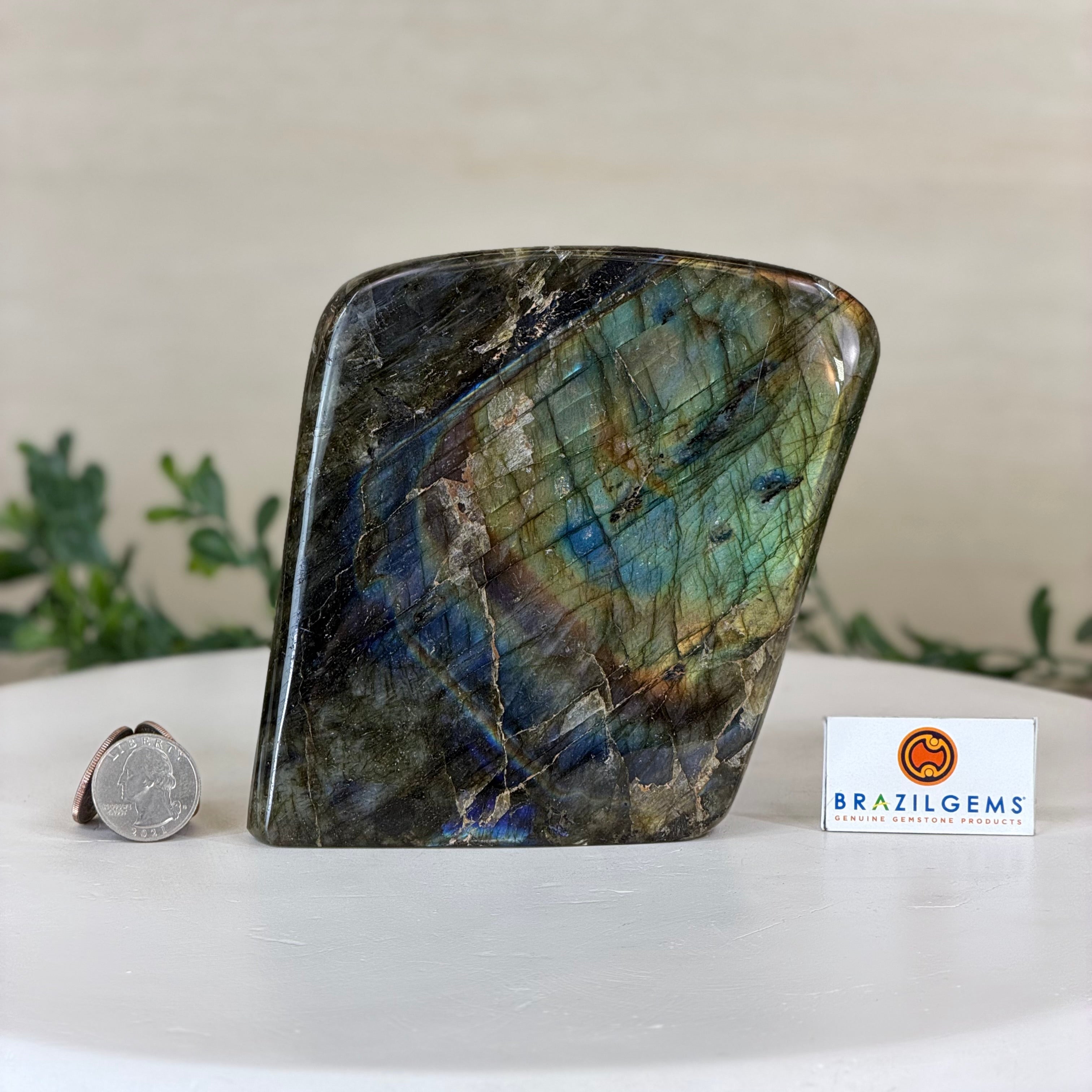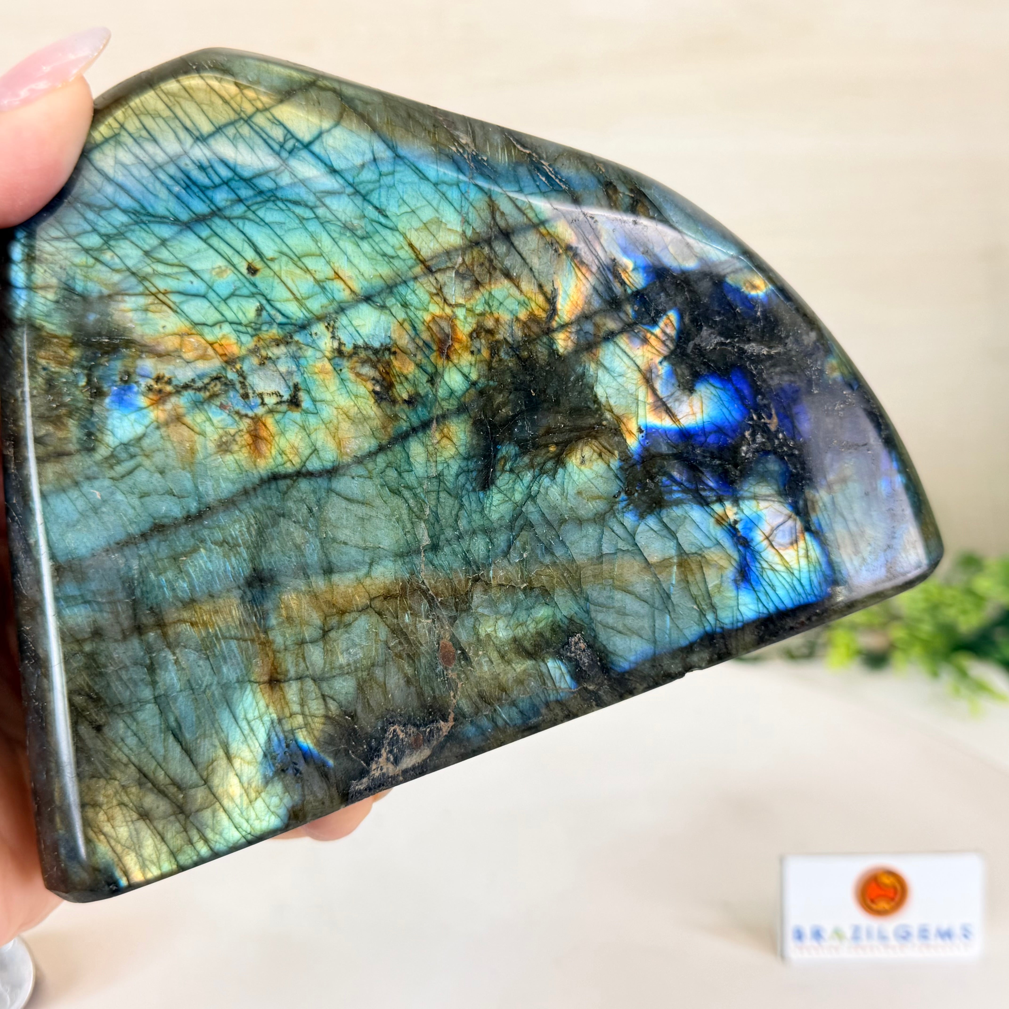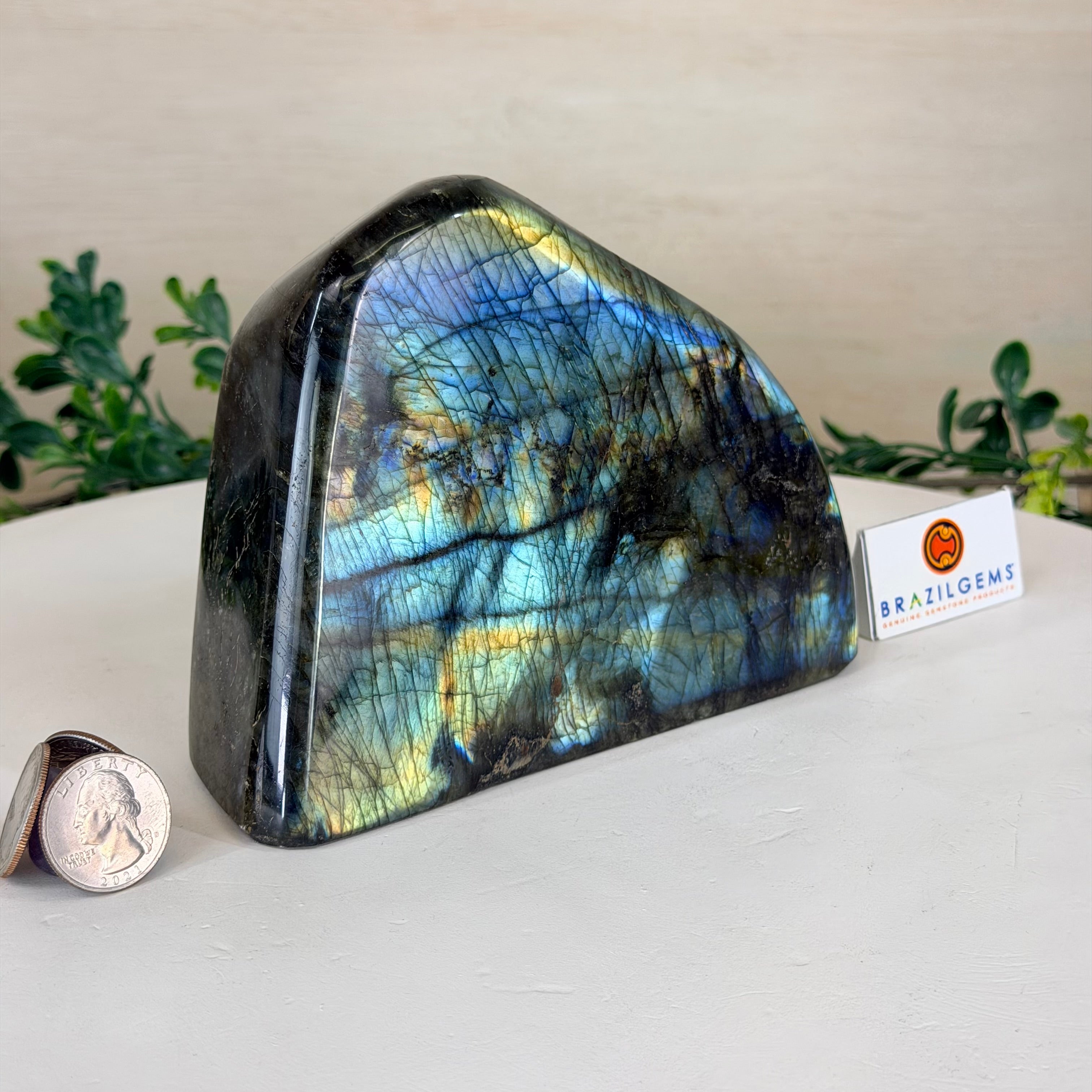 Moreover, Labradorite's appeal extends beyond the world of jewelry. It is also used for decorative purposes, as polished slabs or cabochons are sometimes employed in home decor, such as countertops, tabletops, and accent pieces. Its presence in living spaces adds a touch of mystique and elegance, making it a popular choice for interior designers and crystal enthusiasts seeking to infuse their surroundings with a sense of wonder.