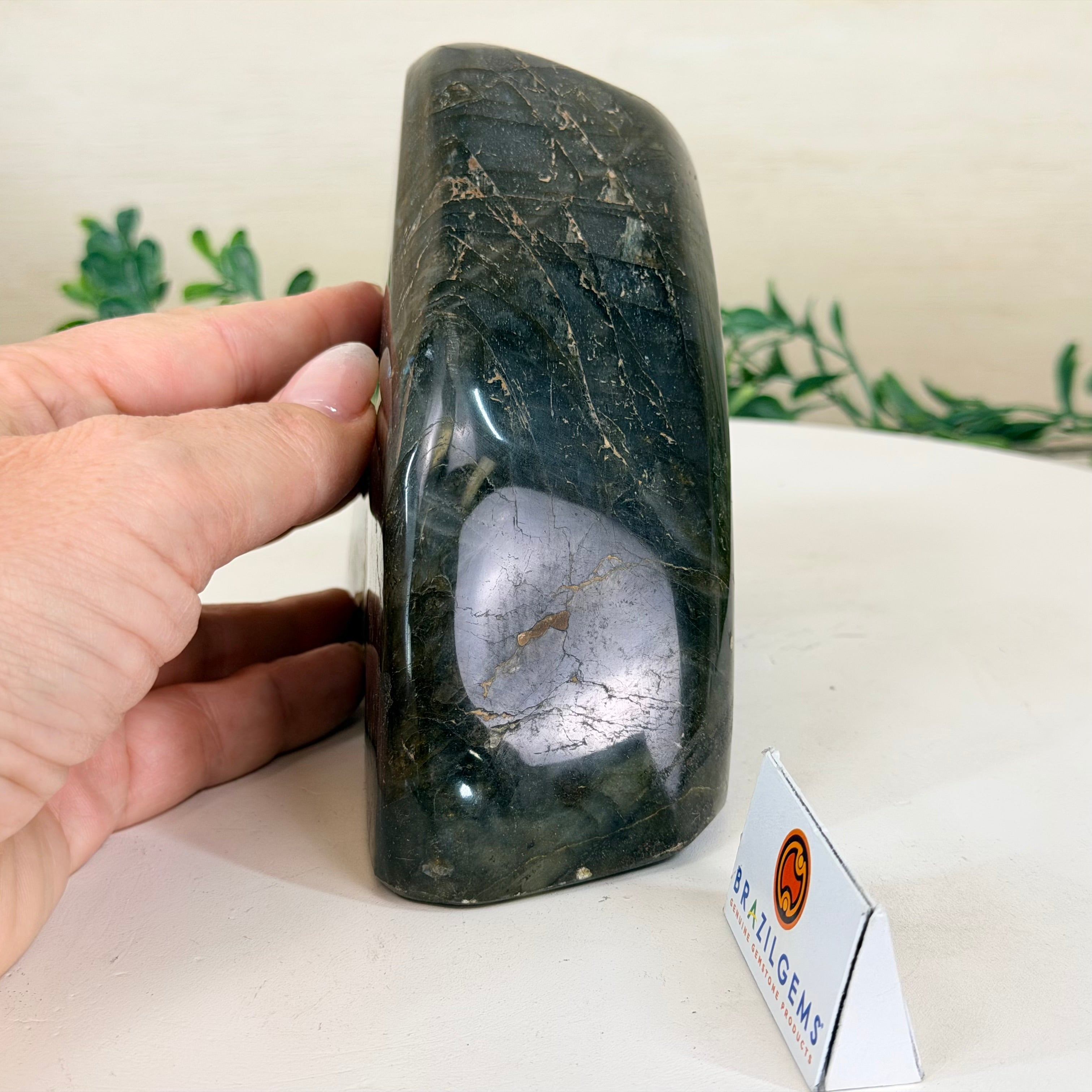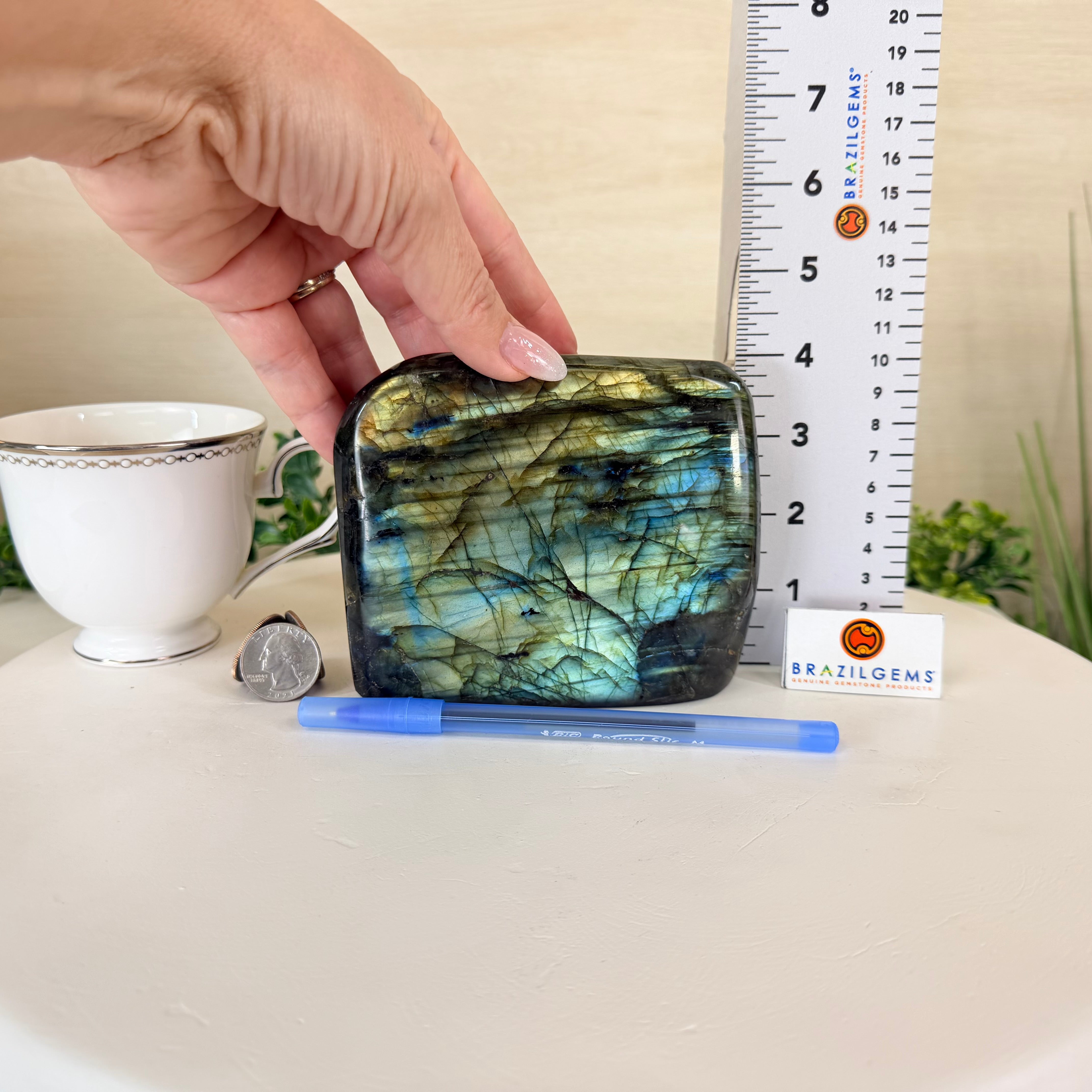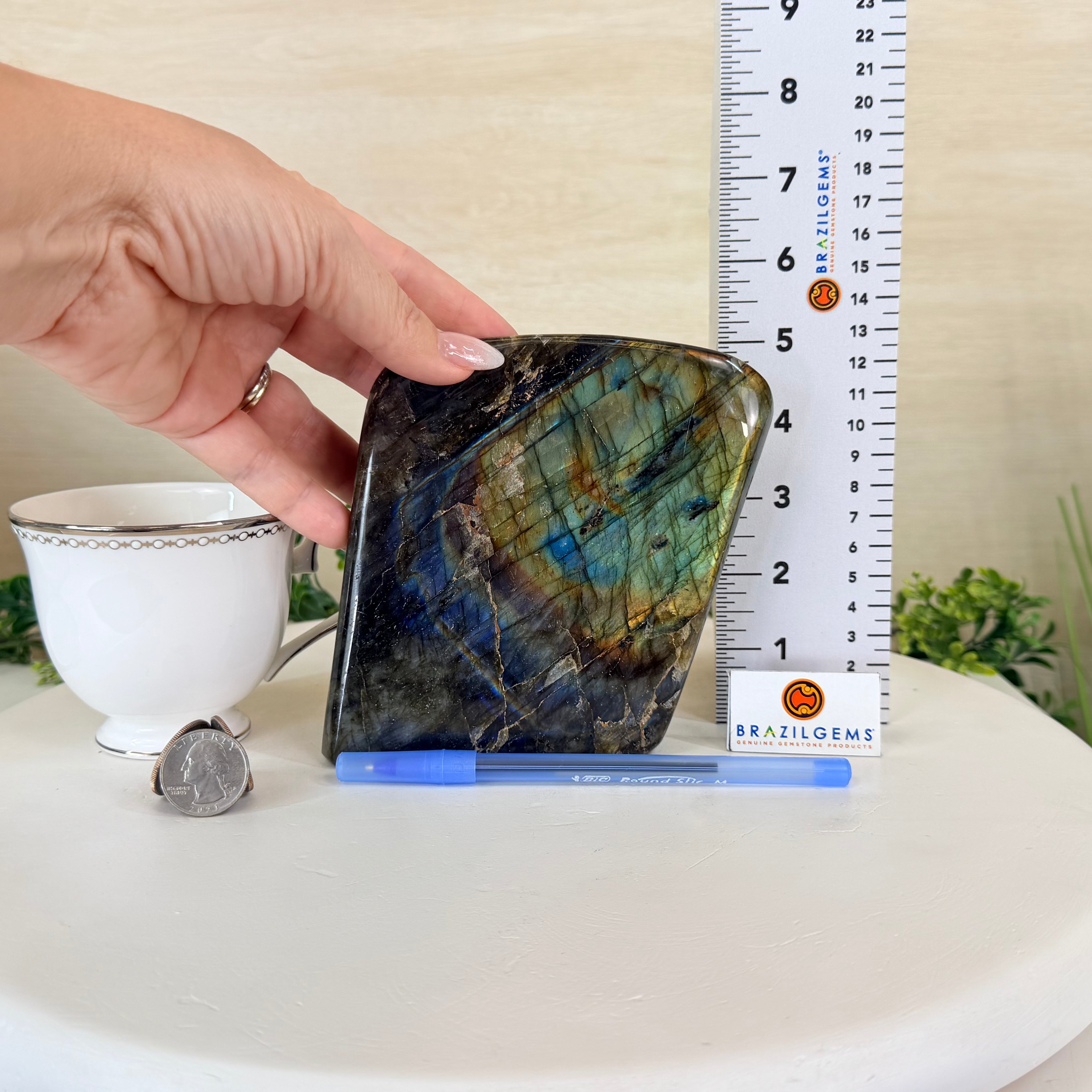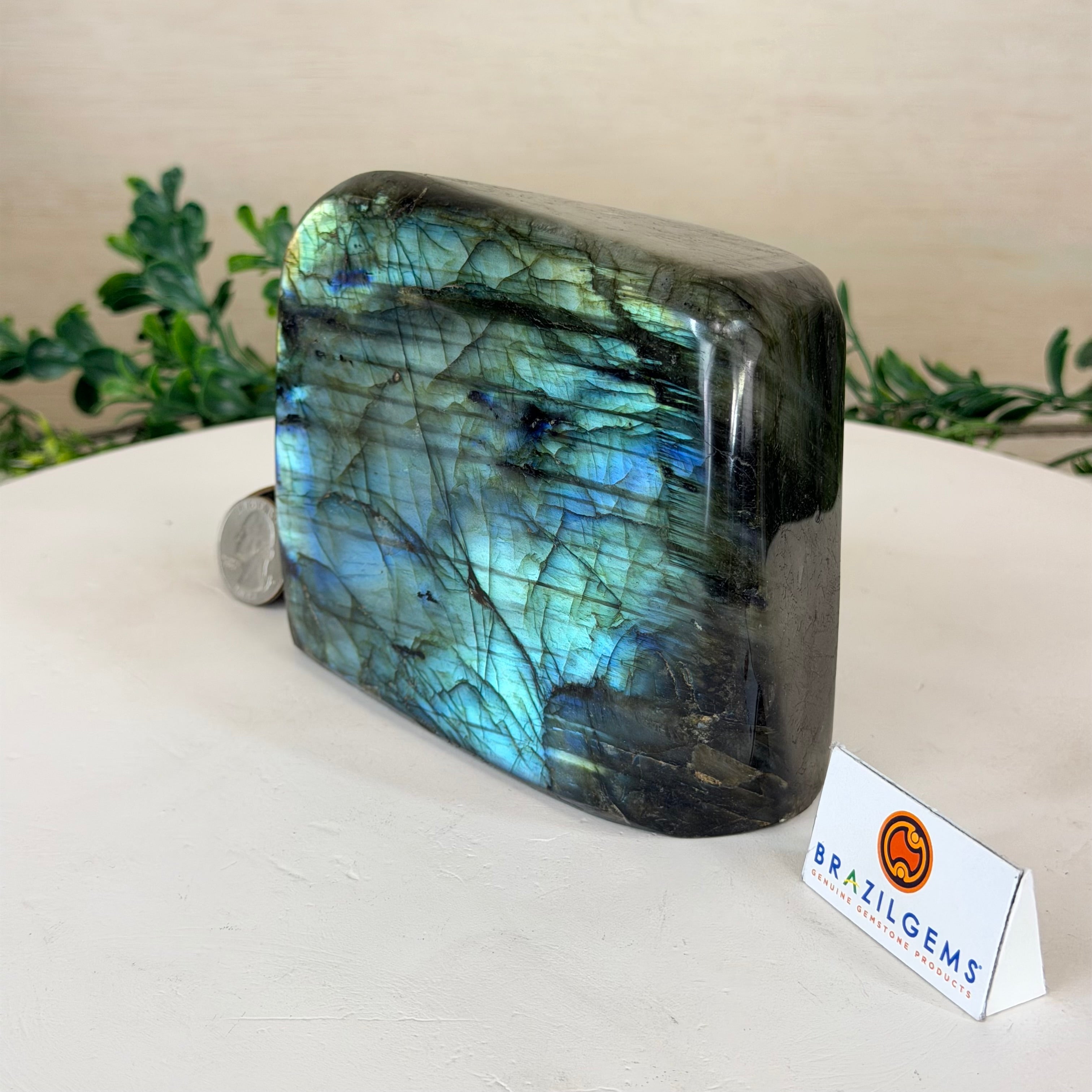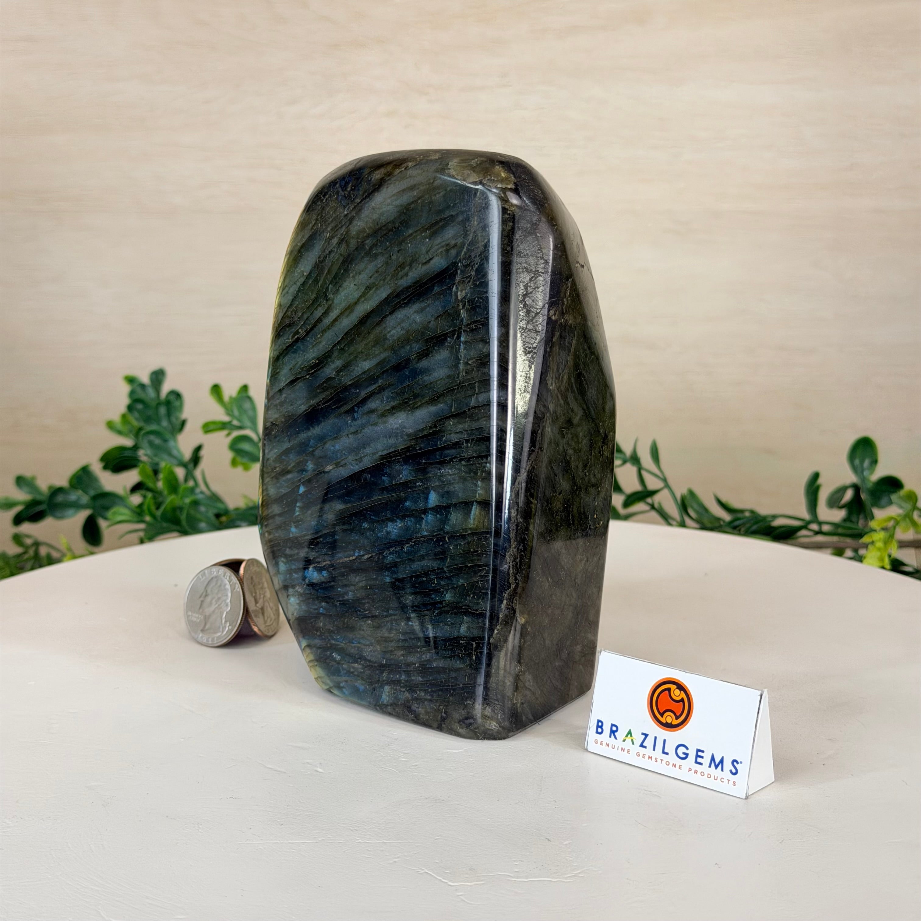 Moreover, Labradorite's appeal extends beyond the world of jewelry. It is also used for decorative purposes, as polished slabs or cabochons are sometimes employed in home decor, such as countertops, tabletops, and accent pieces. Its presence in living spaces adds a touch of mystique and elegance, making it a popular choice for interior designers and crystal enthusiasts seeking to infuse their surroundings with a sense of wonder.