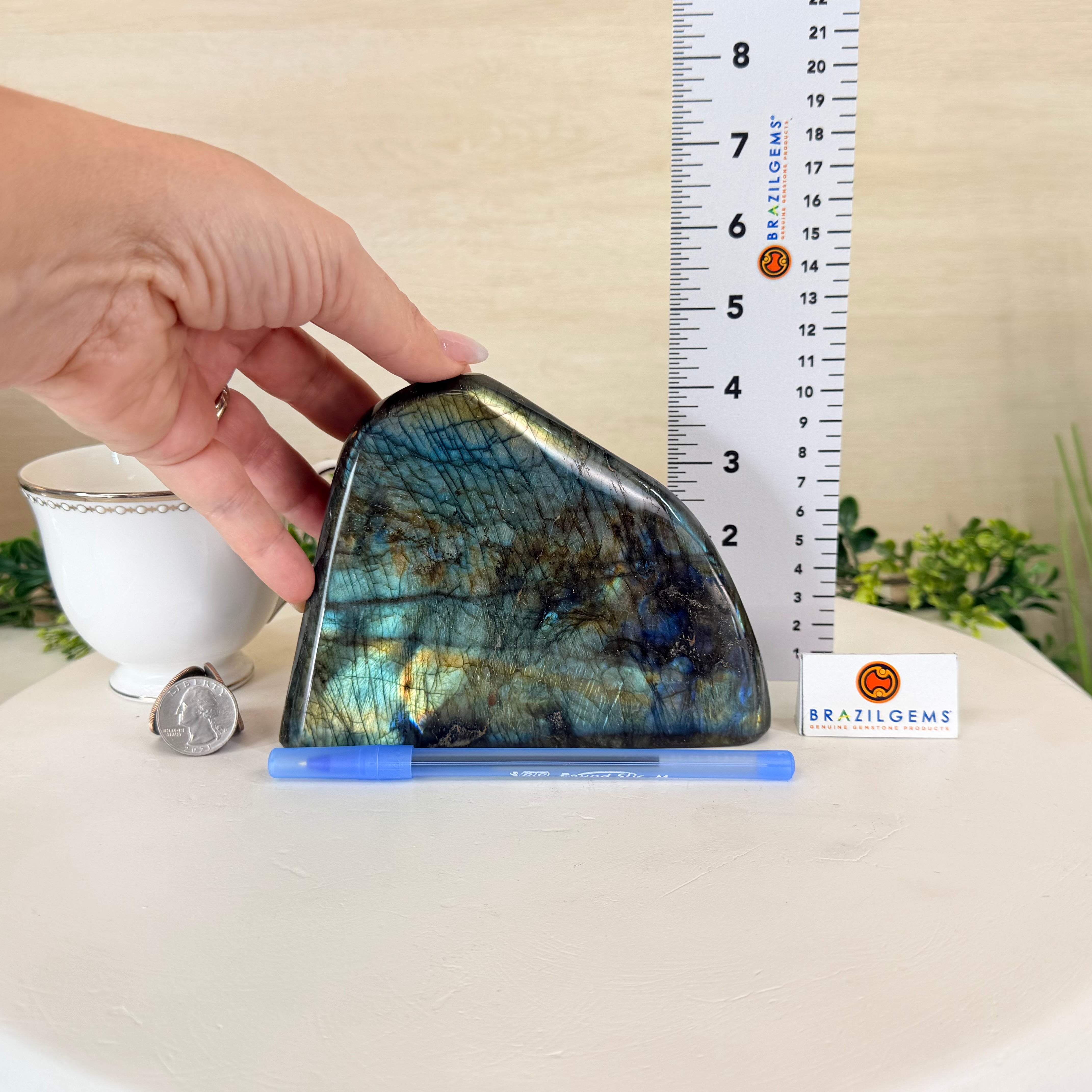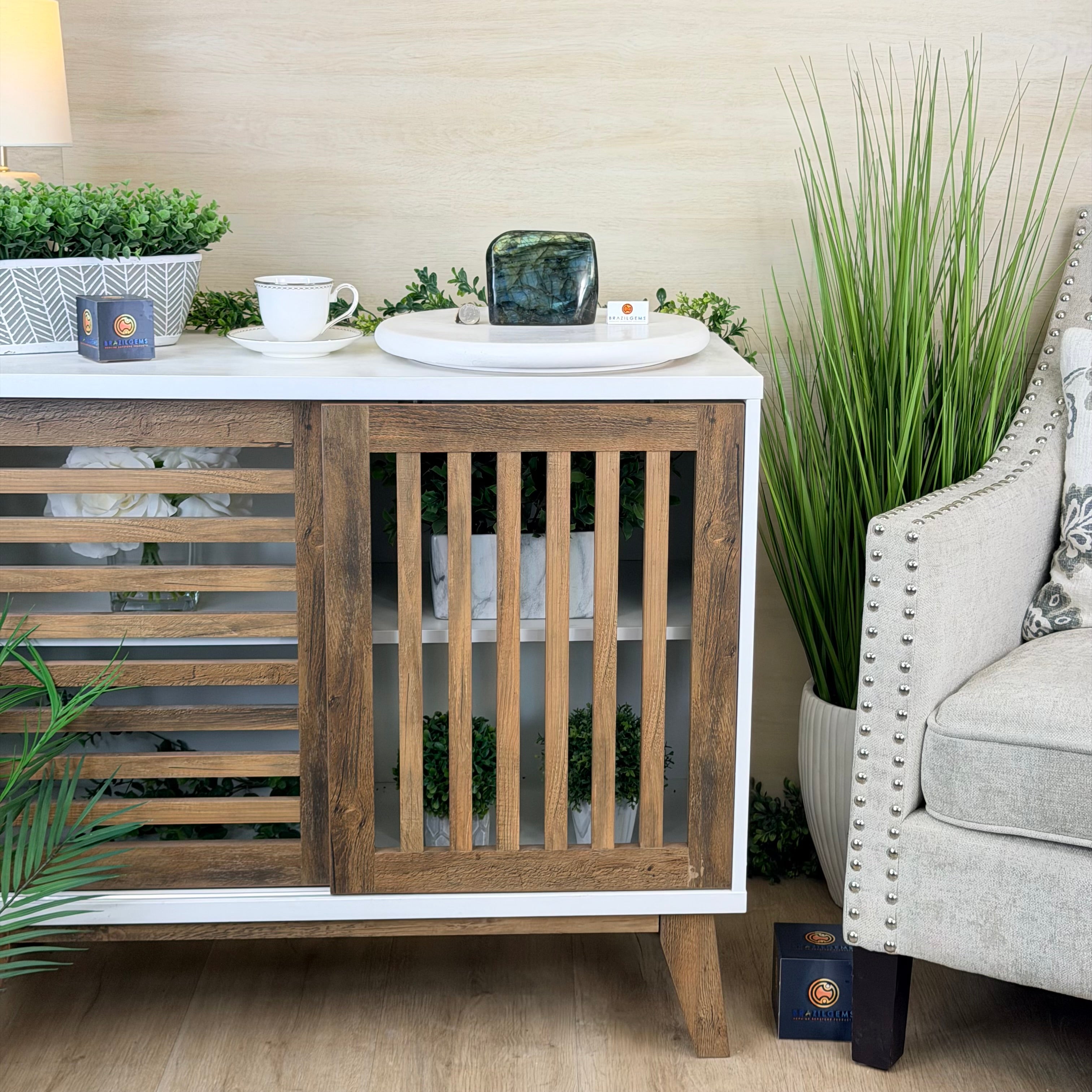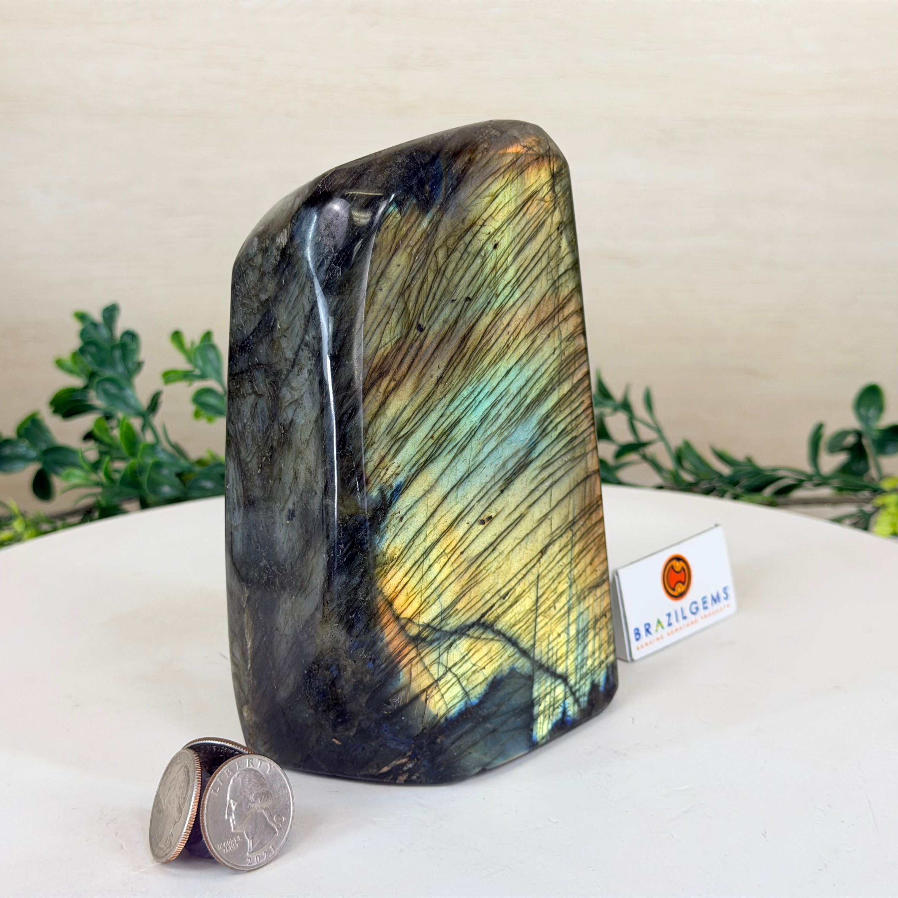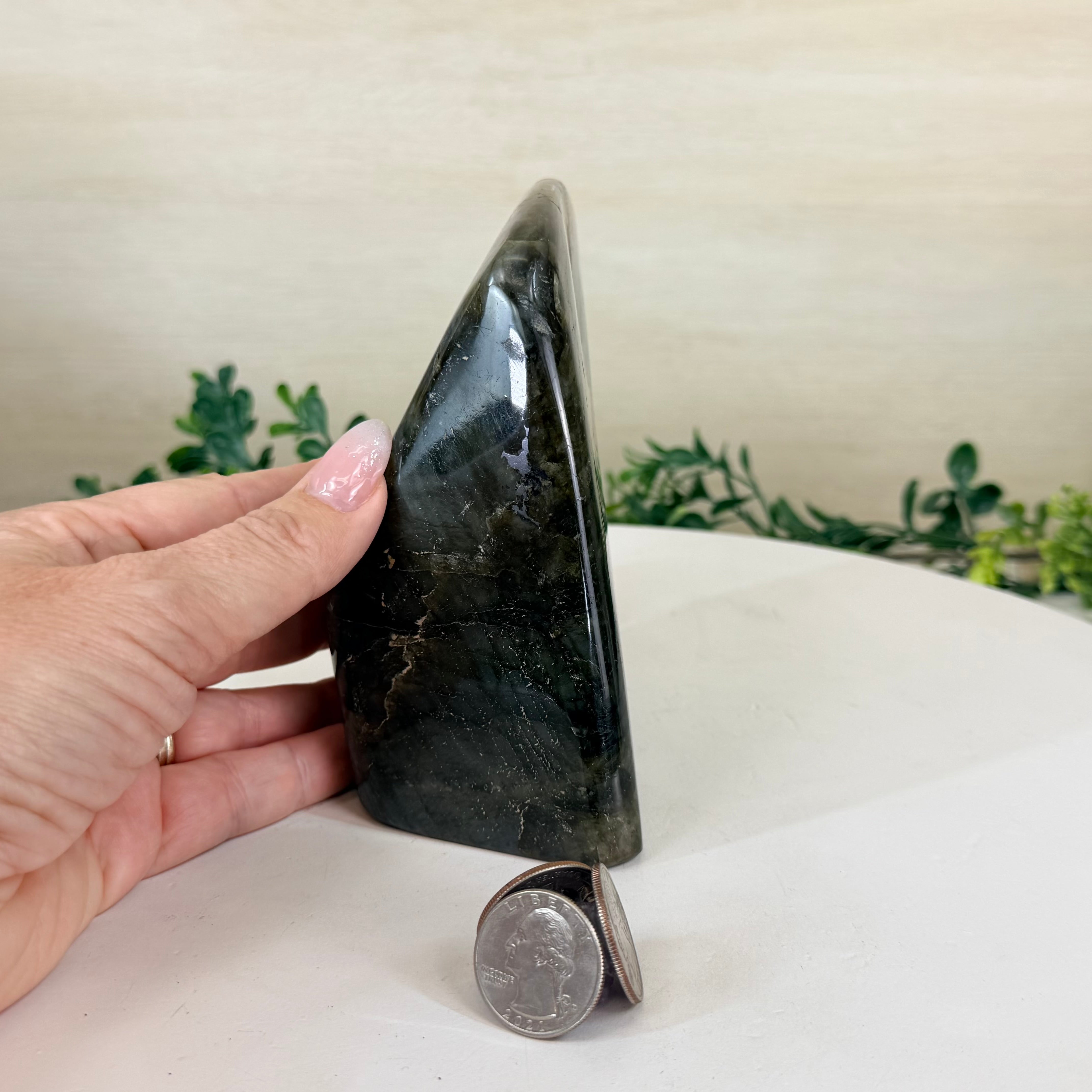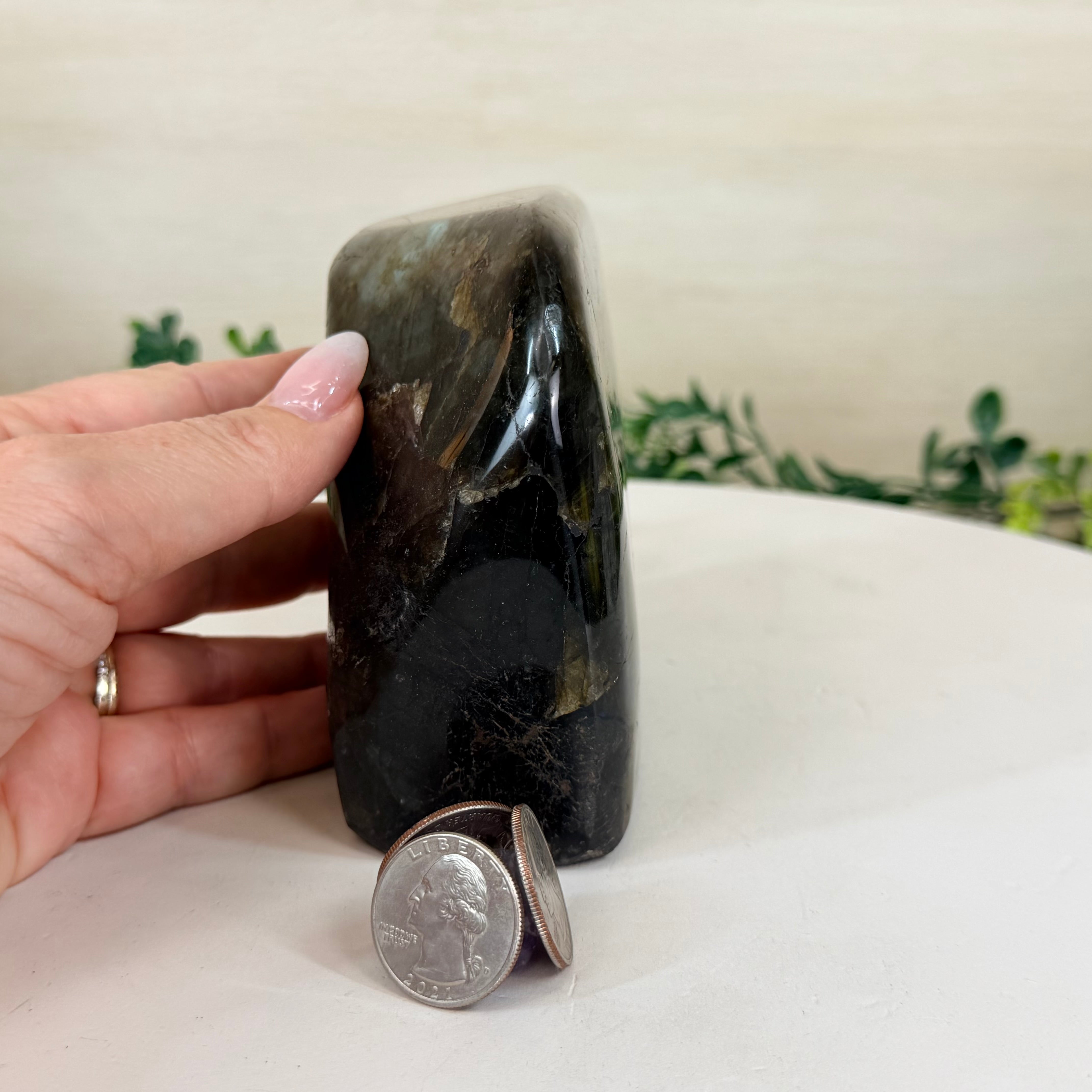 Moreover, Labradorite's appeal extends beyond the world of jewelry. It is also used for decorative purposes, as polished slabs or cabochons are sometimes employed in home decor, such as countertops, tabletops, and accent pieces. Its presence in living spaces adds a touch of mystique and elegance, making it a popular choice for interior designers and crystal enthusiasts seeking to infuse their surroundings with a sense of wonder.