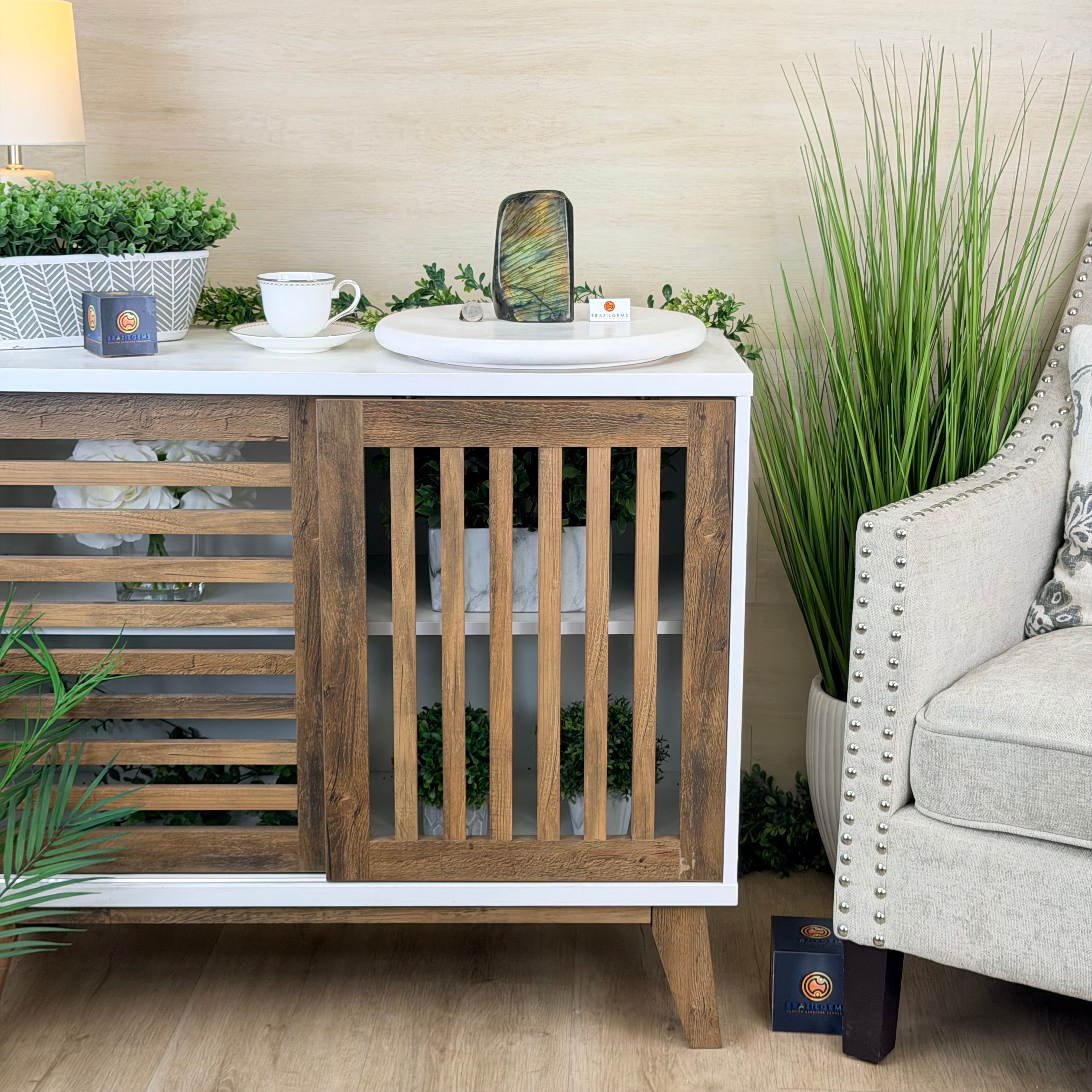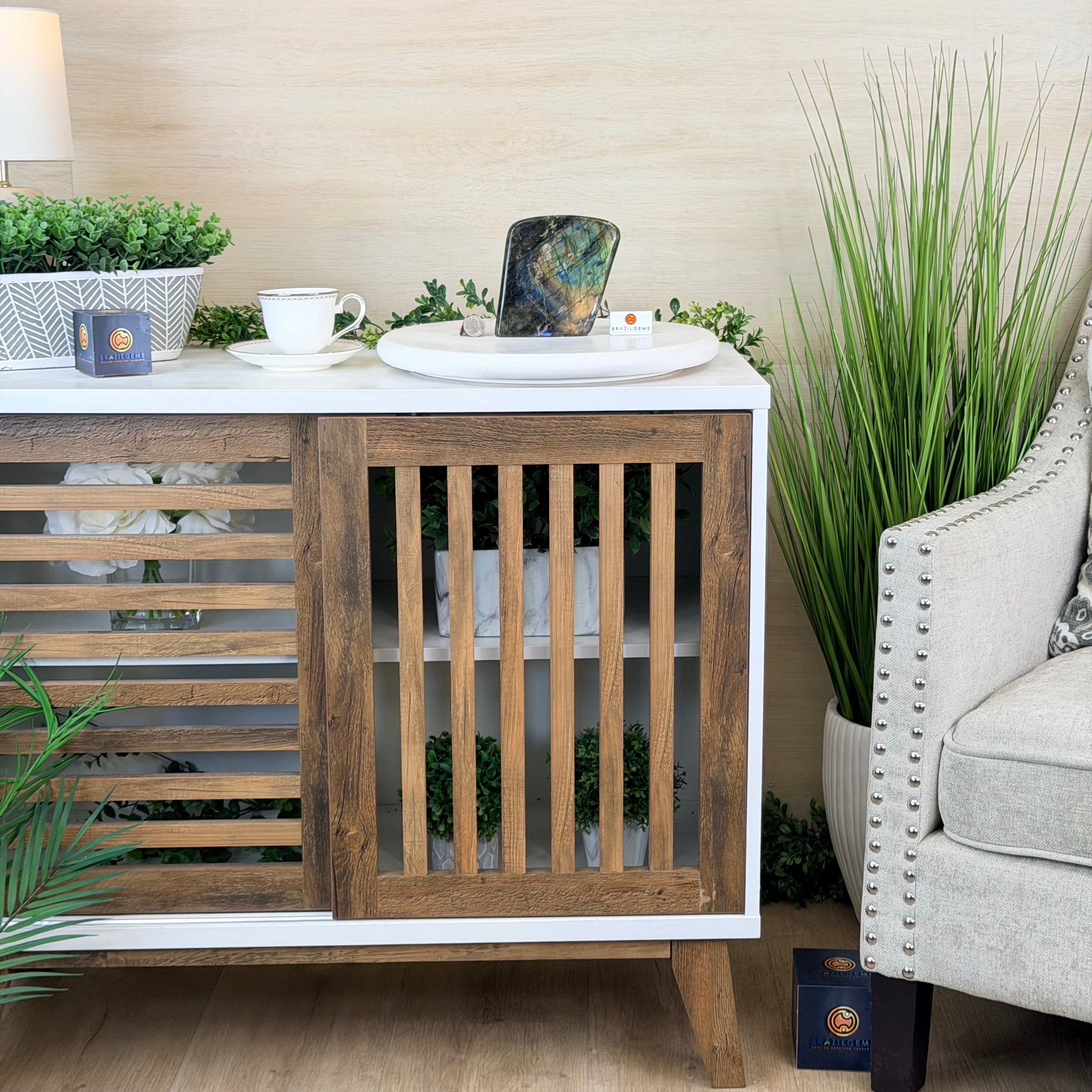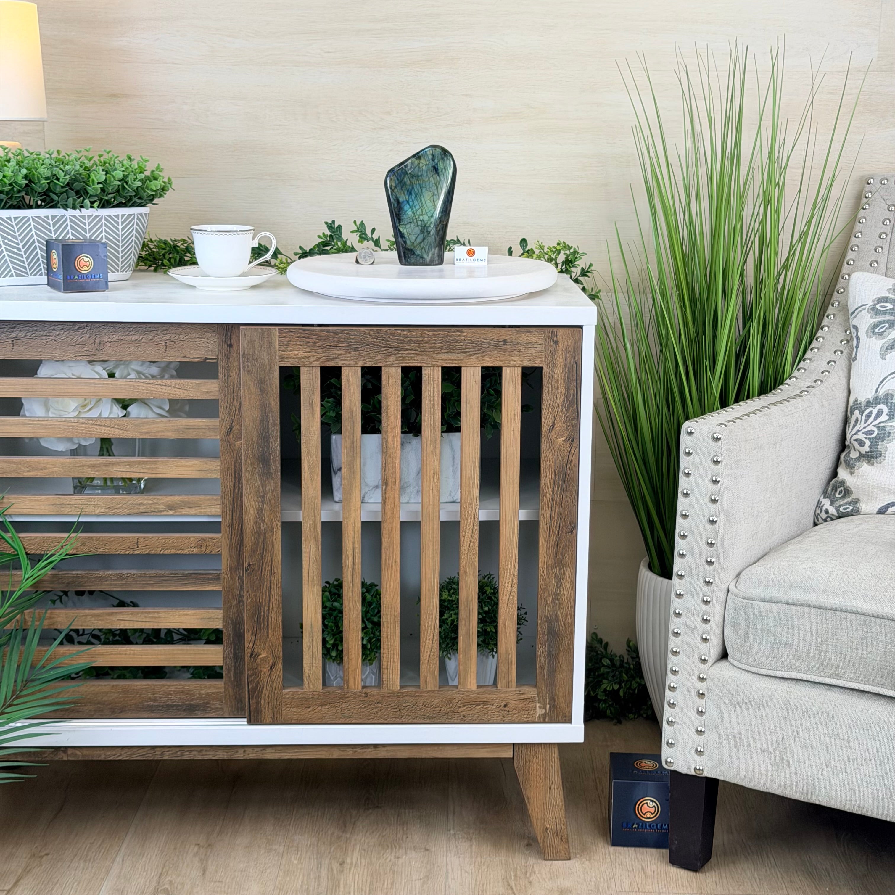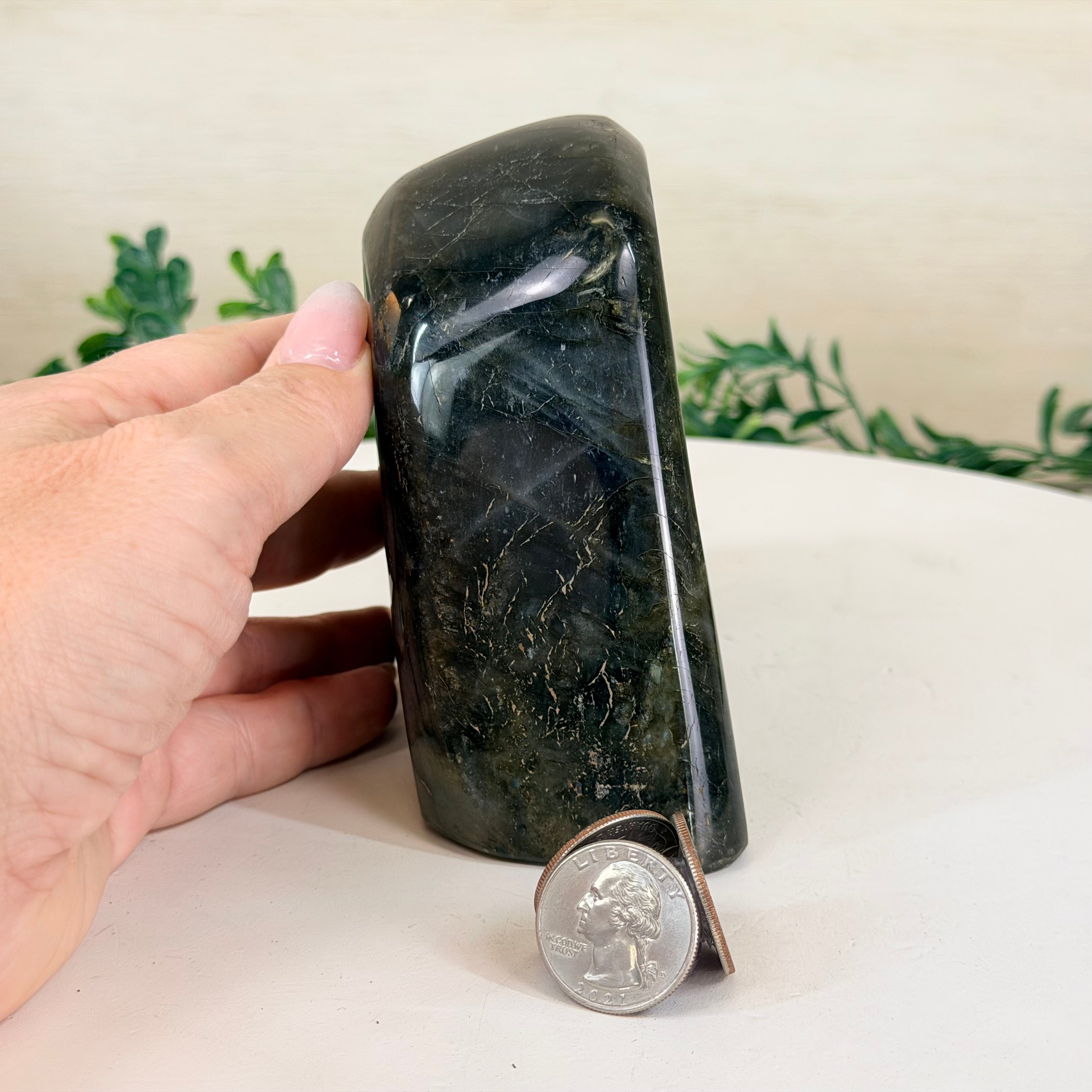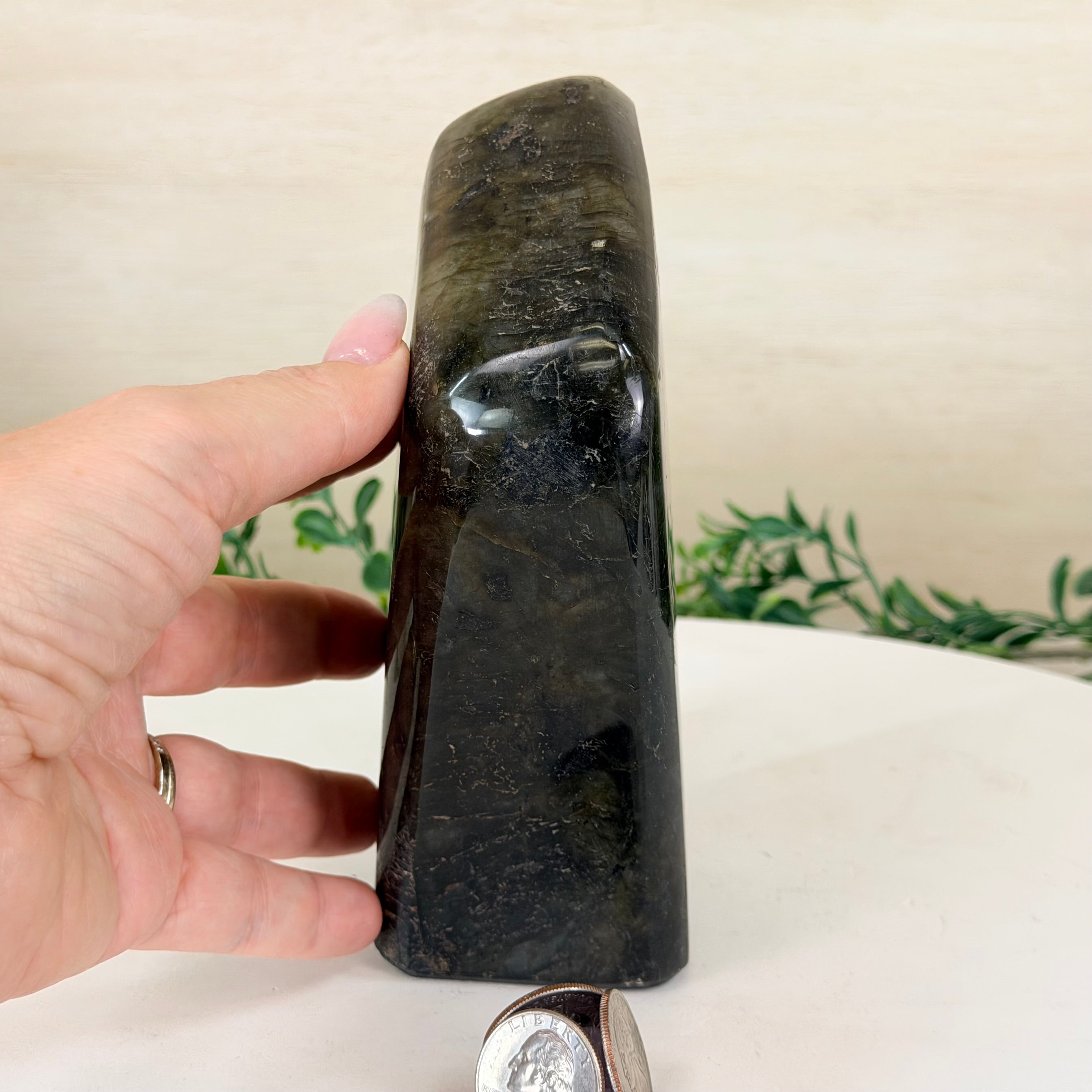Moreover, Labradorite's appeal extends beyond the world of jewelry. It is also used for decorative purposes, as polished slabs or cabochons are sometimes employed in home decor, such as countertops, tabletops, and accent pieces. Its presence in living spaces adds a touch of mystique and elegance, making it a popular choice for interior designers and crystal enthusiasts seeking to infuse their surroundings with a sense of wonder.