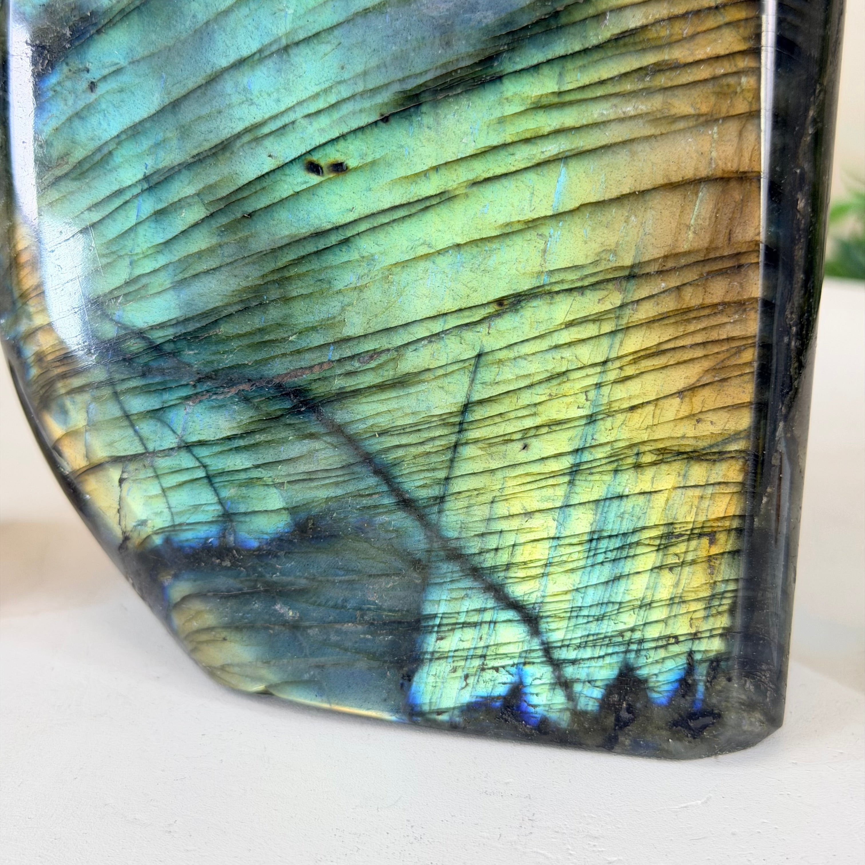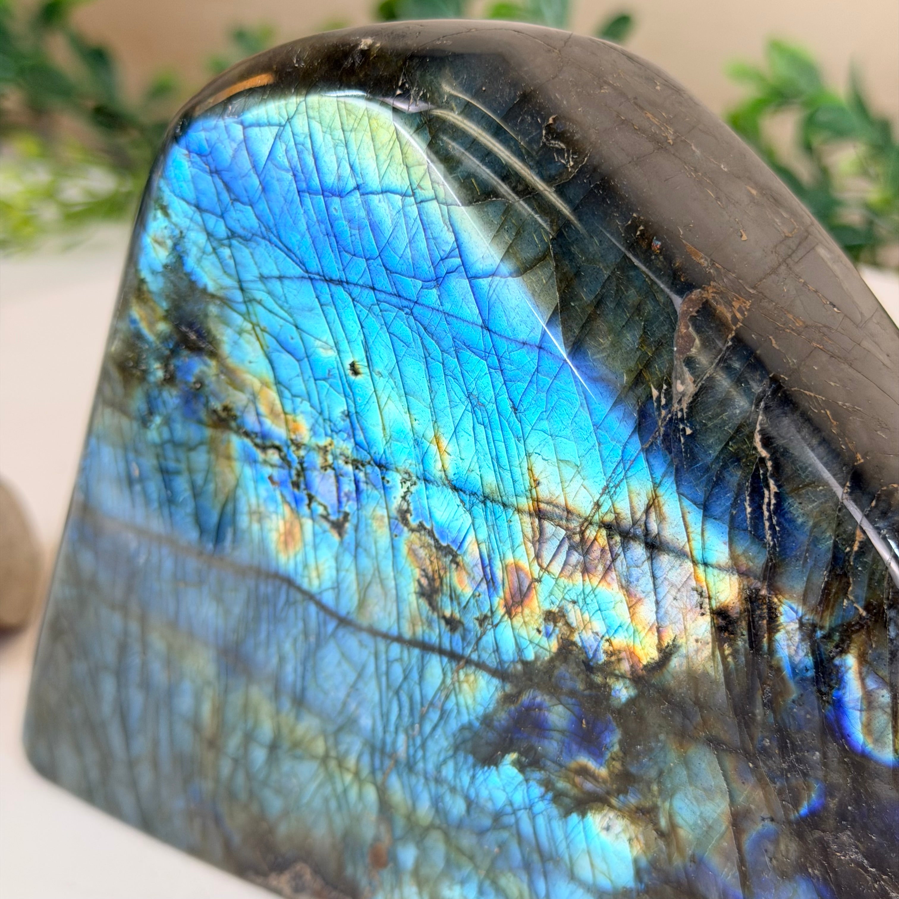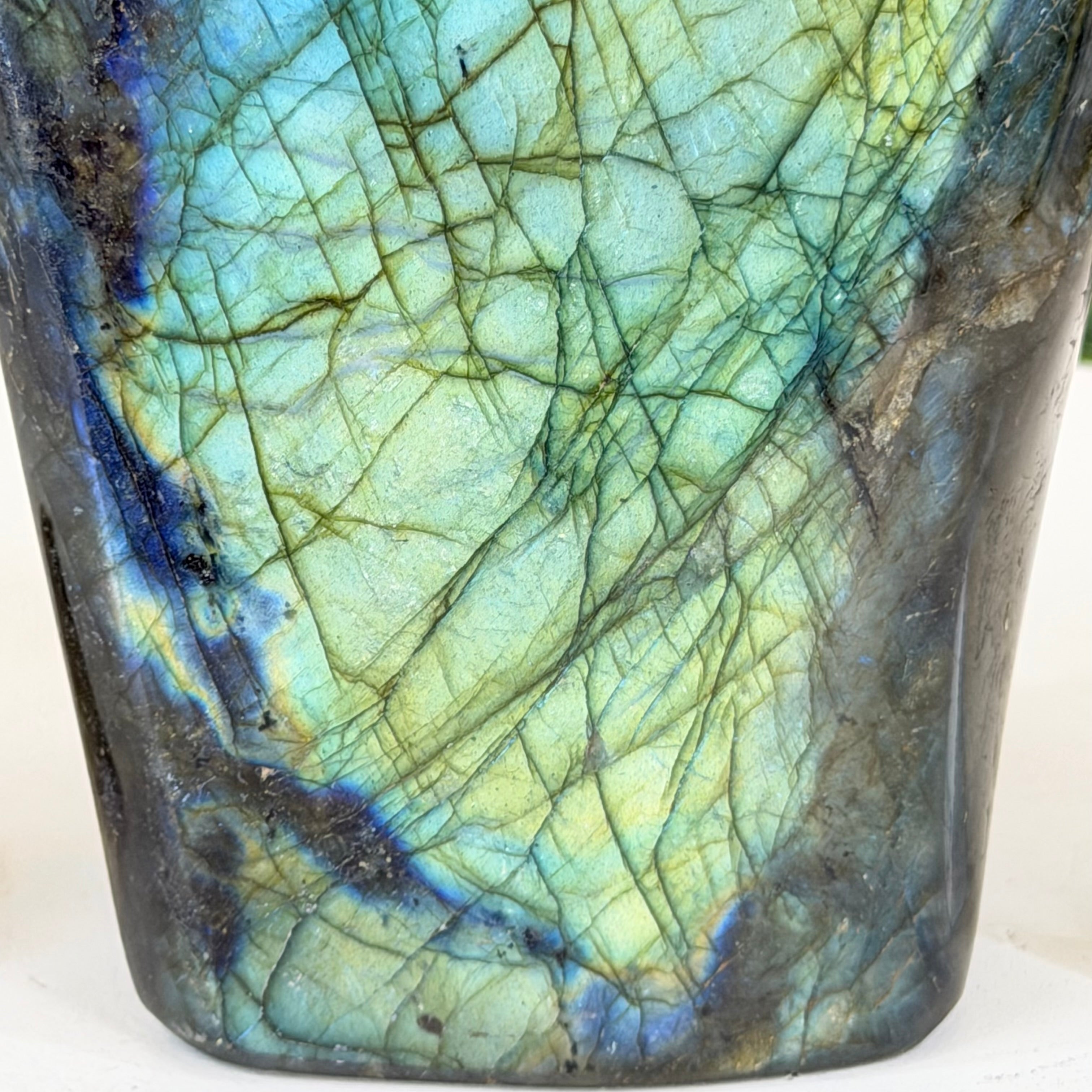 Beyond its striking visual appeal, Labradorite carries a deep spiritual significance and is often associated with transformation and protection. In the realm of crystal healing and metaphysics, it is believed to be a stone of self-discovery and intuition, helping to enhance one's psychic abilities and spiritual growth. Many people consider Labradorite to be a powerful tool for dispelling negative energies, promoting clarity of thought, and enhancing one's connection with the higher self.