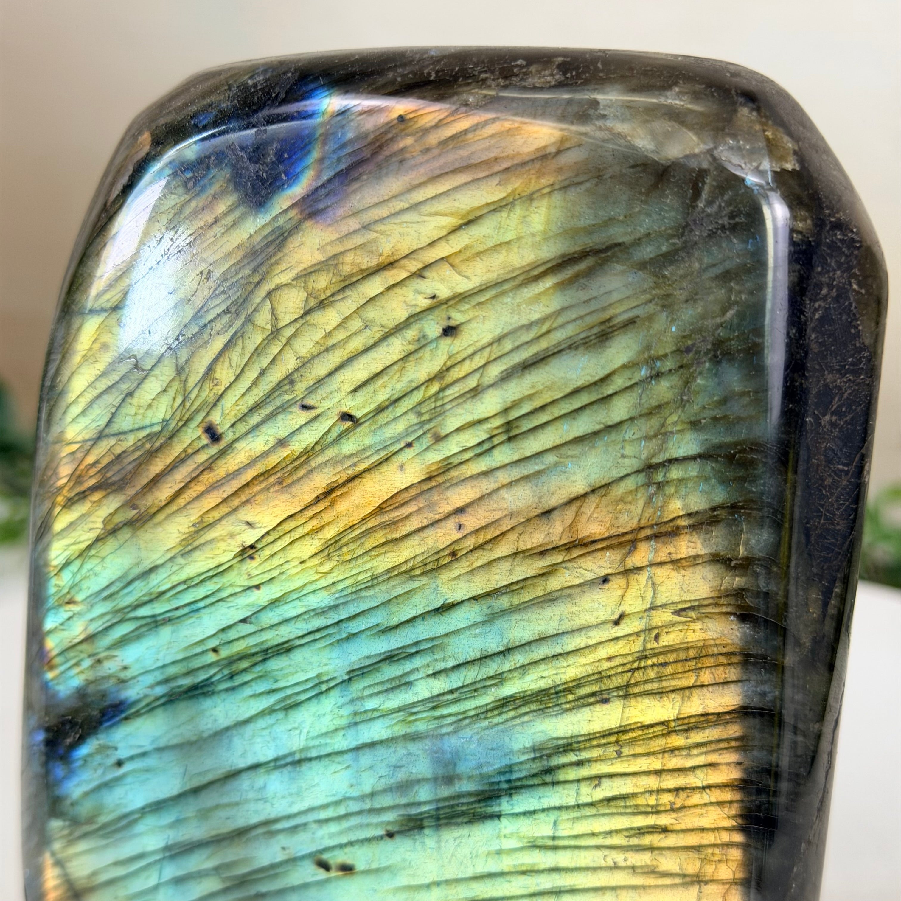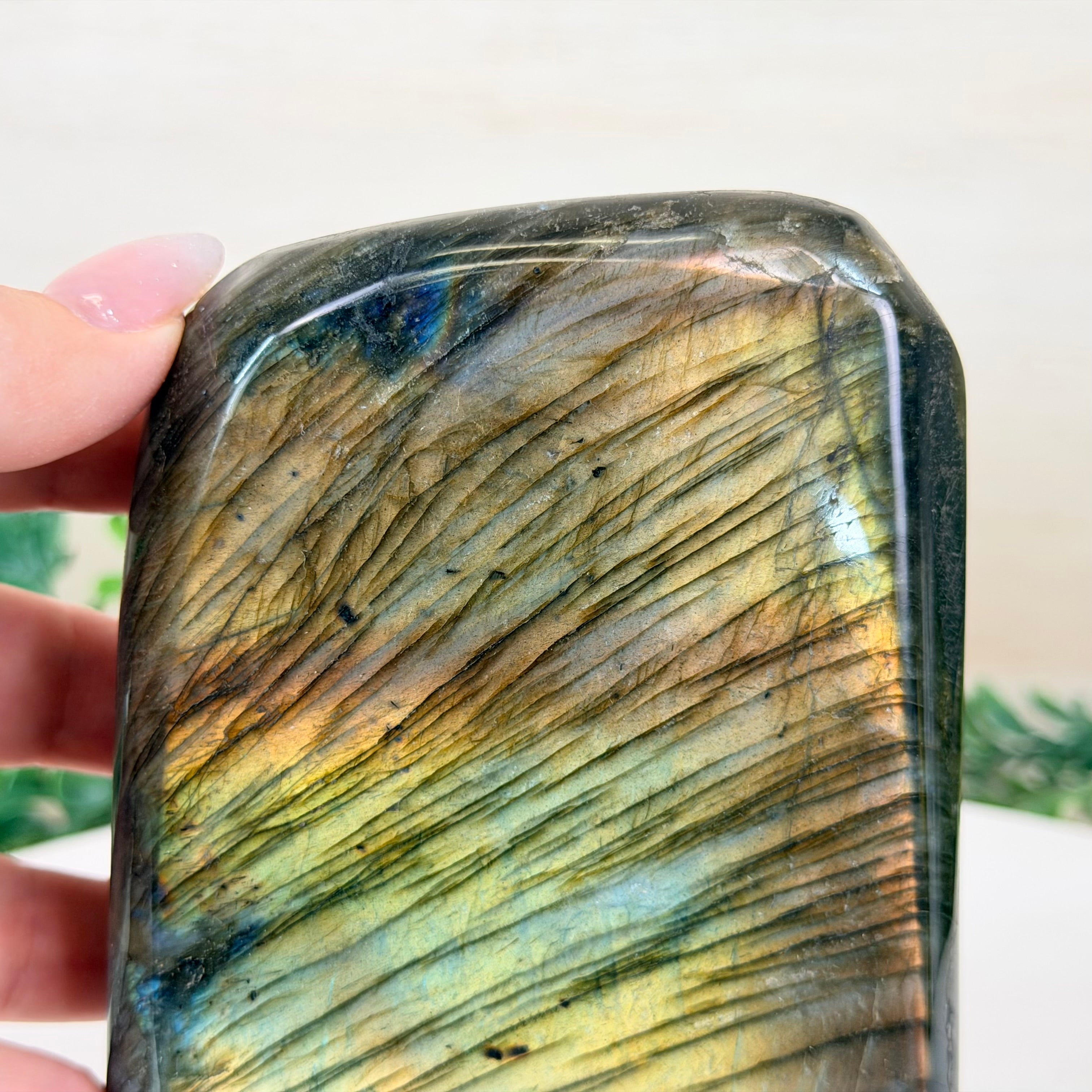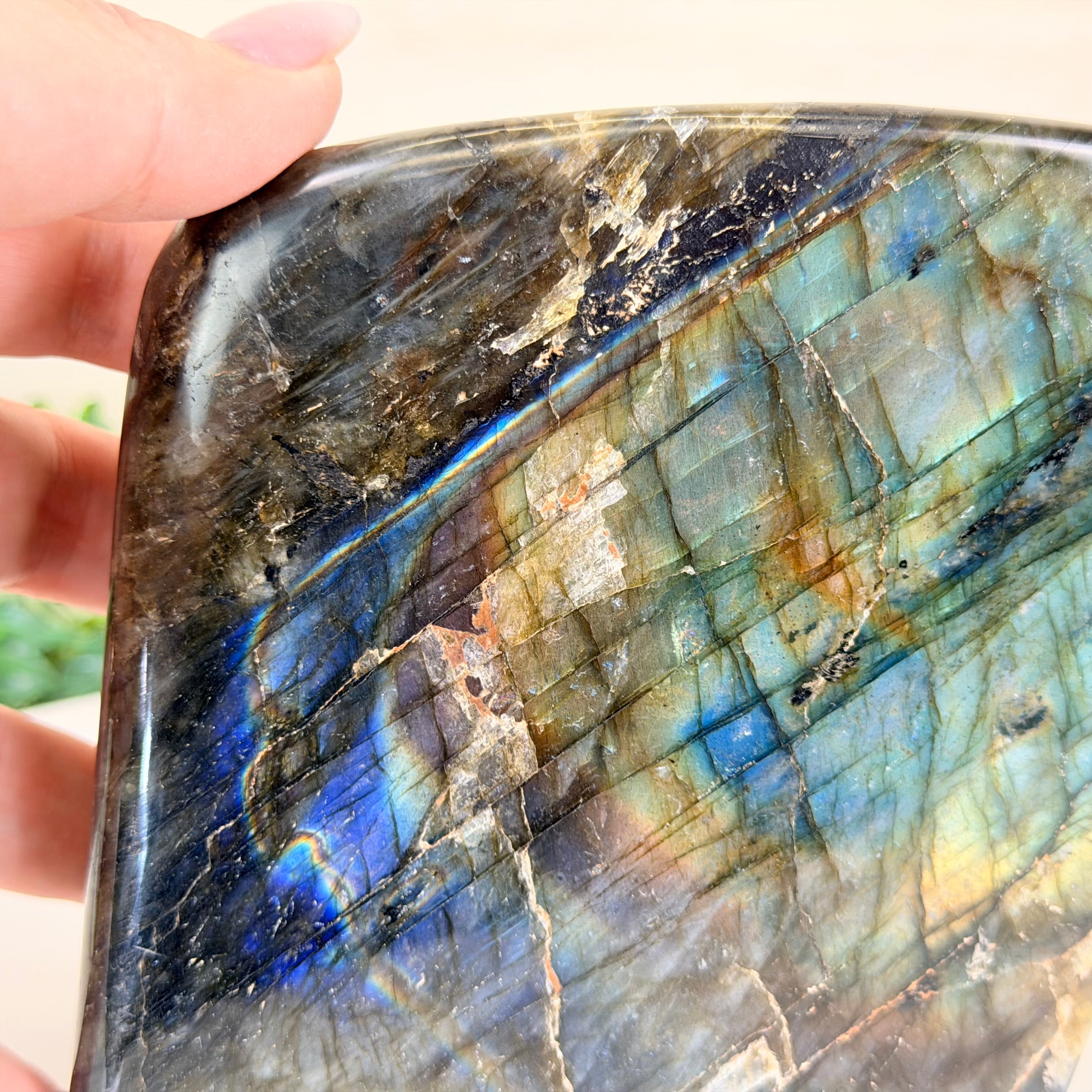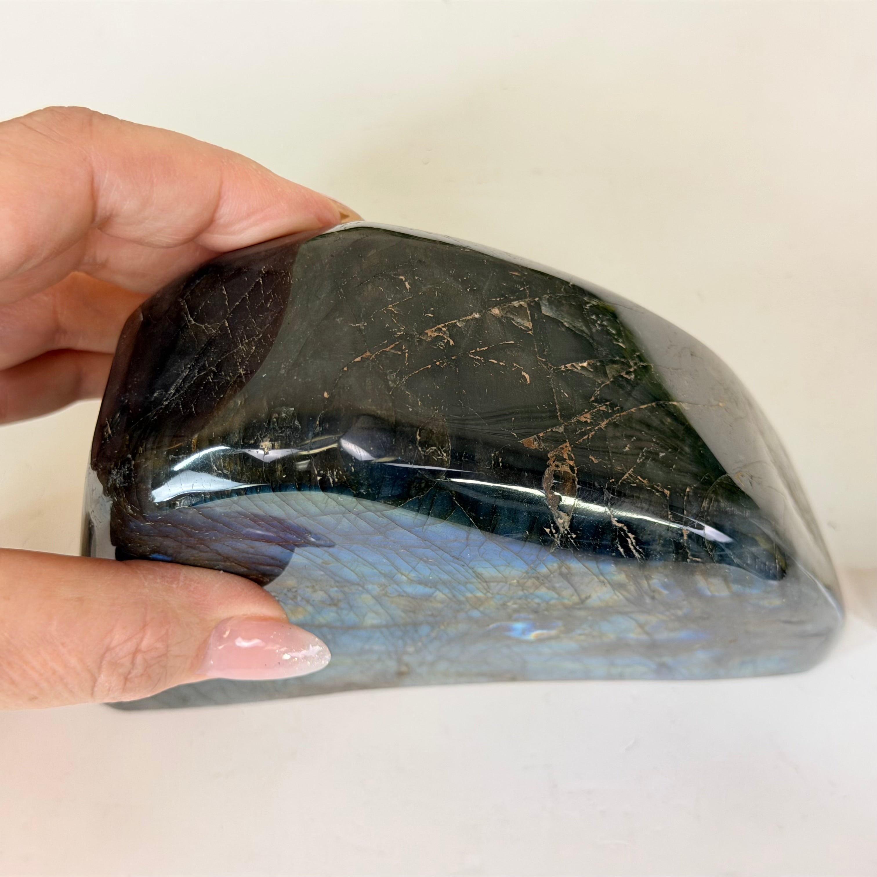 Beyond its striking visual appeal, Labradorite carries a deep spiritual significance and is often associated with transformation and protection. In the realm of crystal healing and metaphysics, it is believed to be a stone of self-discovery and intuition, helping to enhance one's psychic abilities and spiritual growth. Many people consider Labradorite to be a powerful tool for dispelling negative energies, promoting clarity of thought, and enhancing one's connection with the higher self.