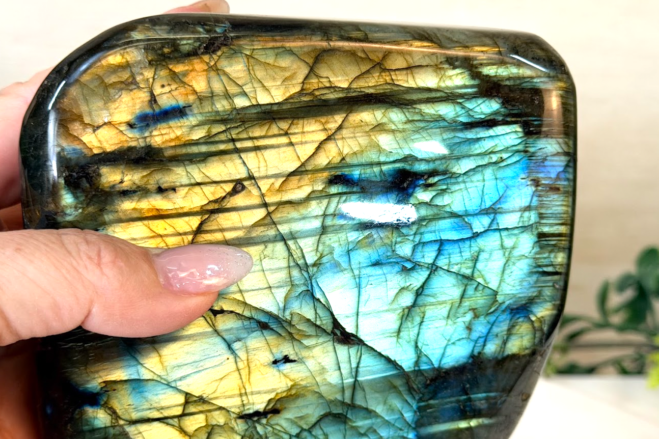 Labradorite is a mesmerizing gemstone known for its signature flashes of color, a phenomenon called labradorescence. These vibrant displays can include shades of blue, green, yellow, and even orange. As a member of the feldspar family, Labradorite is valued not only for its striking visual qualities but also for its wide range of decorative and practical uses.
