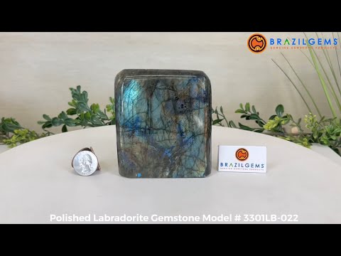 Exquisite polished Labradorite perfectly sized piece for display on a desk, shelf, or special space by Brazil Gems®. Its natural iridescent glow reveals shifting flashes of color, showing you instantly why Labradorite is one of the most admired gemstones.