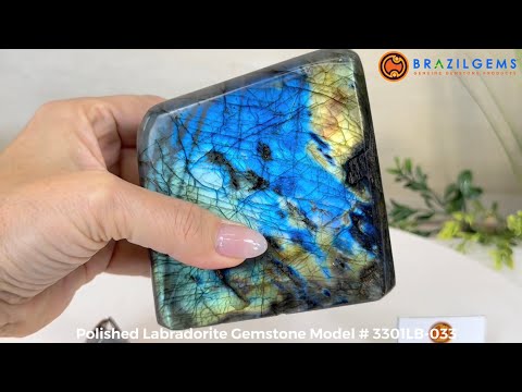Exquisite polished Labradorite perfectly sized piece for display on a desk, shelf, or special space by Brazil Gems®. Its natural iridescent glow reveals shifting flashes of color, showing you instantly why Labradorite is one of the most admired gemstones.