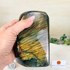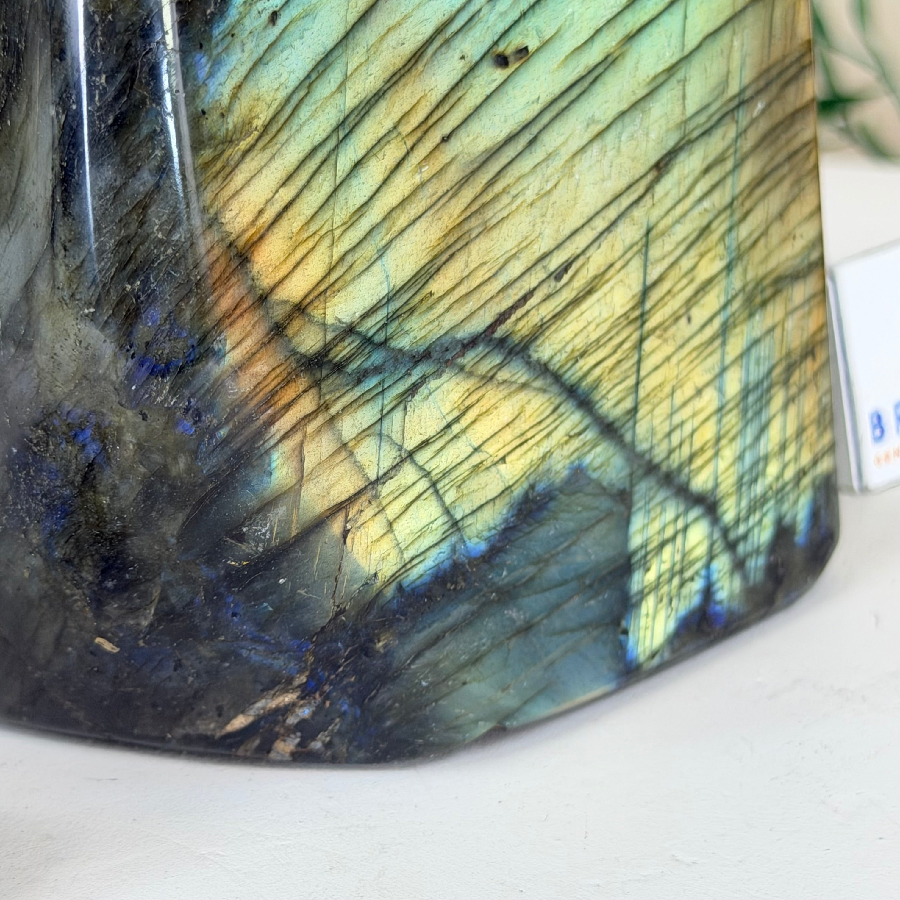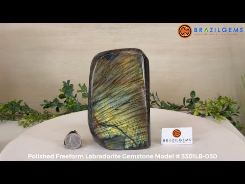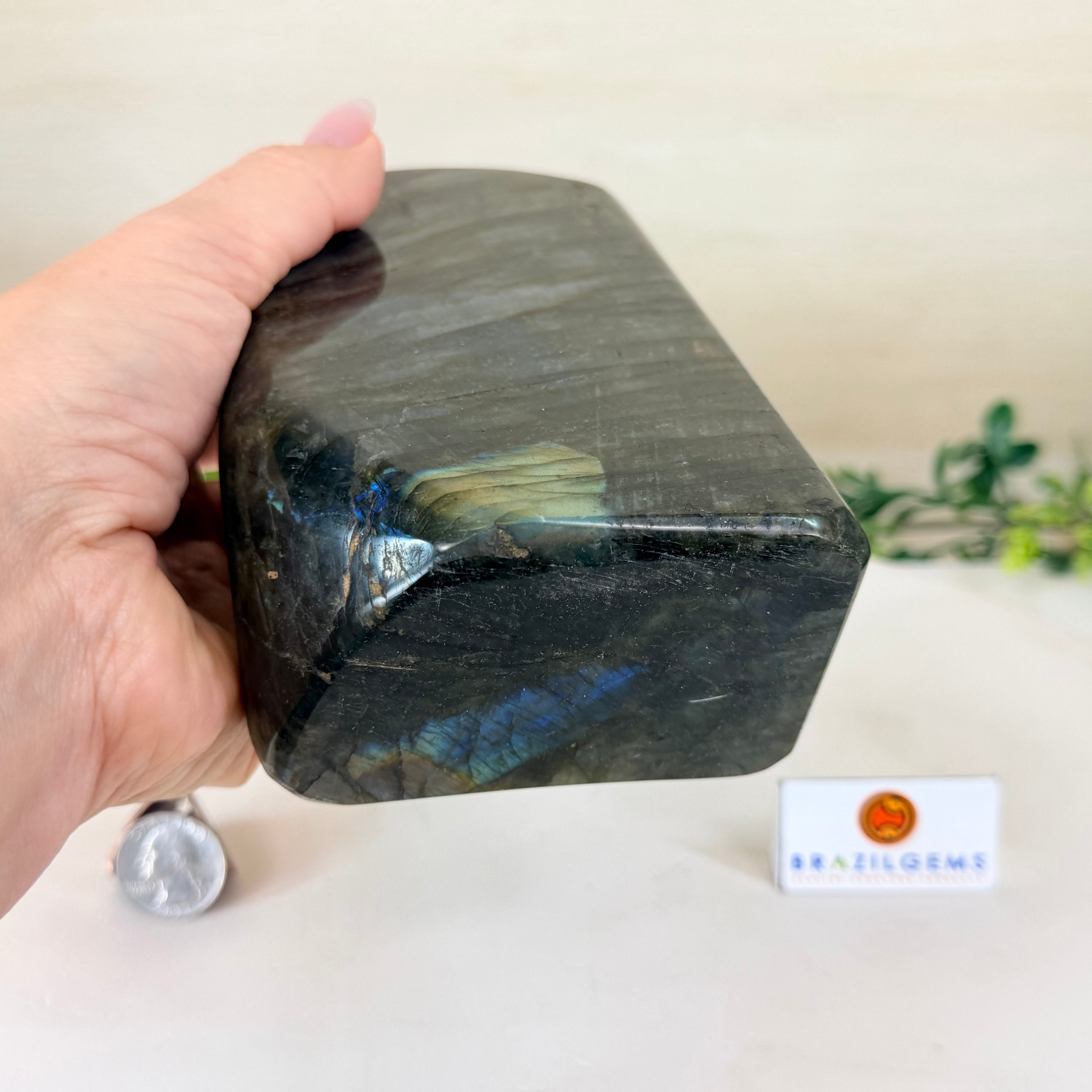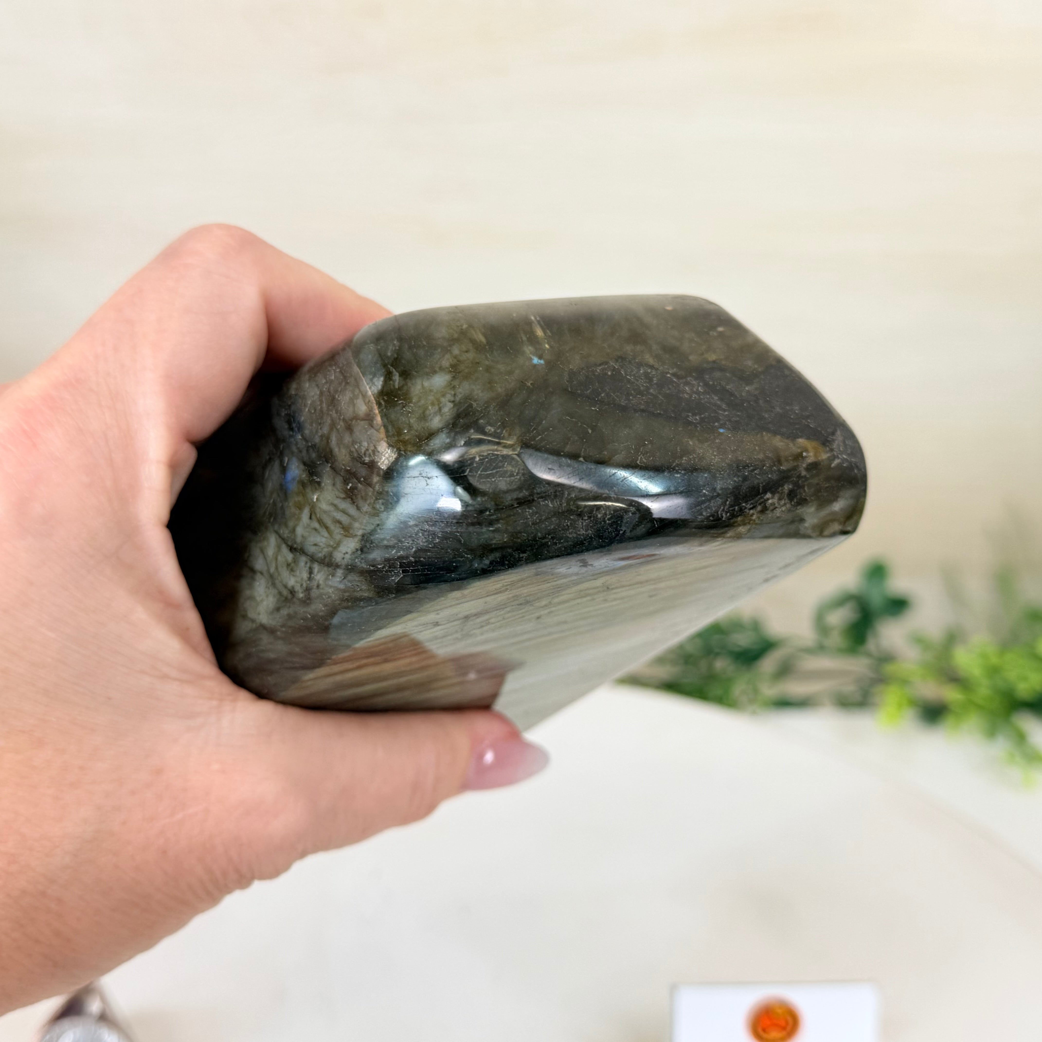 Exquisite polished Freeform Labradorite perfectly sized piece for display on a desk, shelf, or special space by Brazil Gems®. Its natural iridescent glow reveals shifting flashes of color, showing you instantly why Labradorite is one of the most admired gemstones.