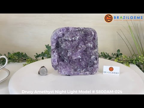 Transform your space with the timeless beauty of Brazil Gems® Drusy Amethyst Crystal Night Light. Designed with polished edges and sparkling drusy crystals, this expertly crafted piece doubles as a captivating daytime accent and a cozy, calming night light.