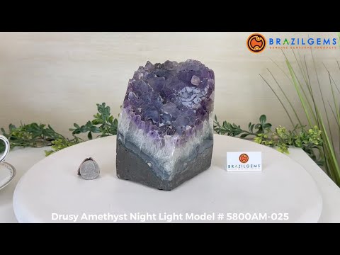Transform your space with the timeless beauty of Brazil Gems® Drusy Amethyst Crystal Night Light. Designed with polished edges and sparkling drusy crystals, this expertly crafted piece doubles as a captivating daytime accent and a cozy, calming night light.