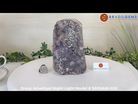 Transform your space with the timeless beauty of Brazil Gems® Drusy Amethyst Crystal Night Light. Designed with polished edges and sparkling drusy crystals, this expertly crafted piece doubles as a captivating daytime accent and a cozy, calming night light.