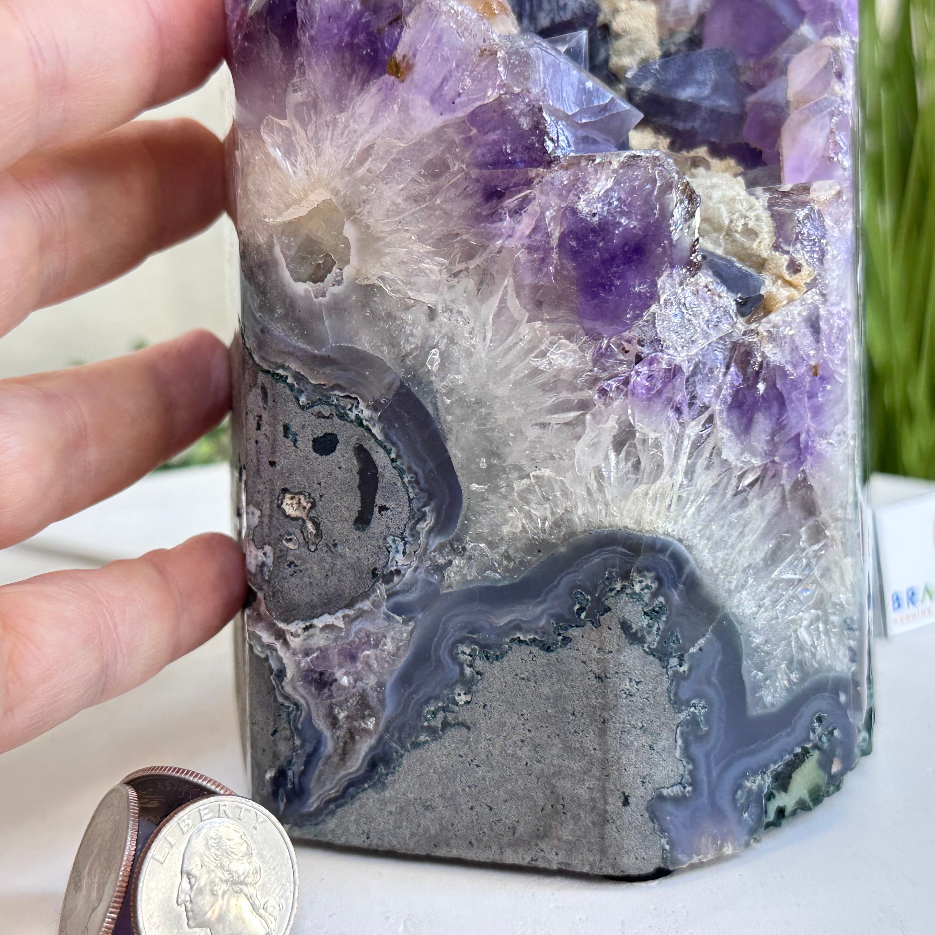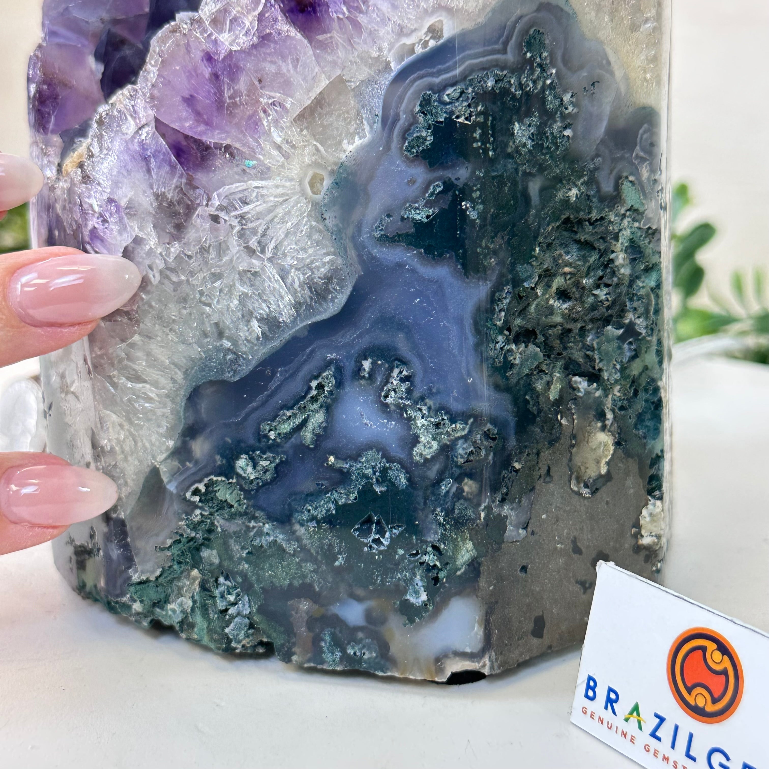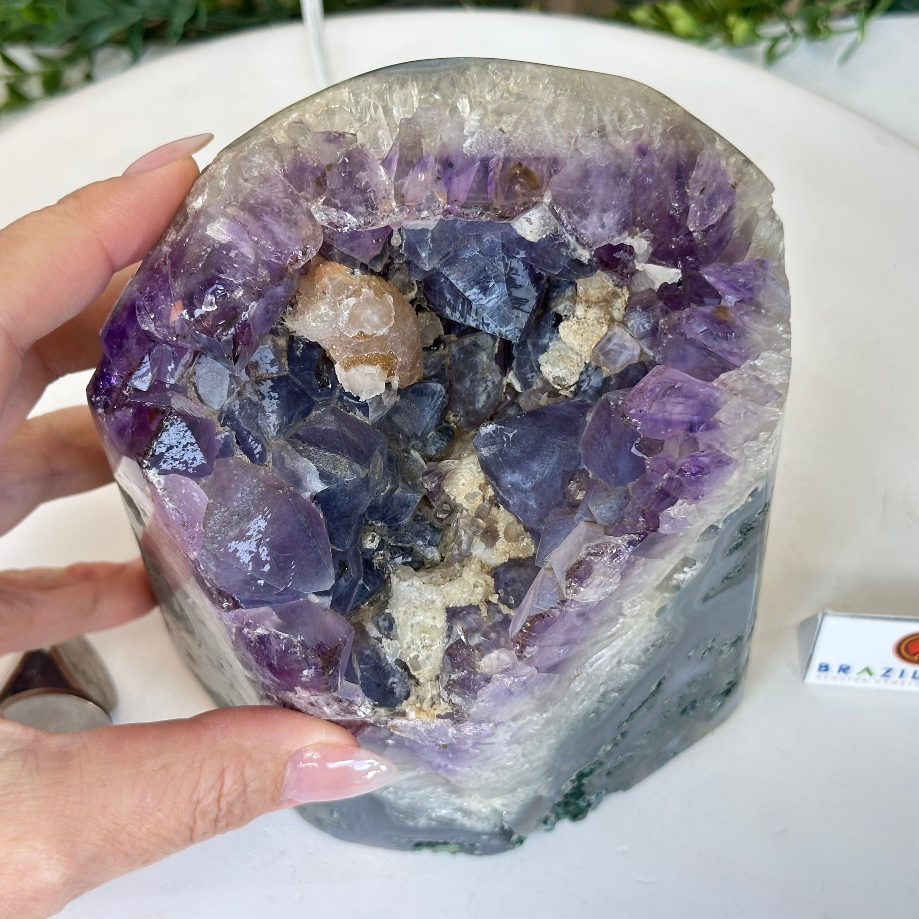 Disclaimer: This is a natural gemstone crystal sold by Brazil Gems® as is and as you see it in its images and video. It is the exact one you will receive. It may contain natural imperfections and/or imperfections, broken edges and repairs from the extraction, polishing, drilling and prepping processes. The underside has a drilled hole to accommodate a typical sized corded C7 LED light (included and removable) or battery operated LED tea light (not included). At Brazil Gems® we make every effort to get measurements as exact as possible but they are done by human hands and eyes and therefore may have minor discrepancies.