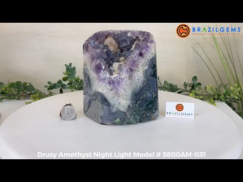 Transform your space with the timeless beauty of Brazil Gems® Drusy Amethyst Crystal Night Light. Designed with polished edges and sparkling drusy crystals, this expertly crafted piece doubles as a captivating daytime accent and a cozy, calming night light.
