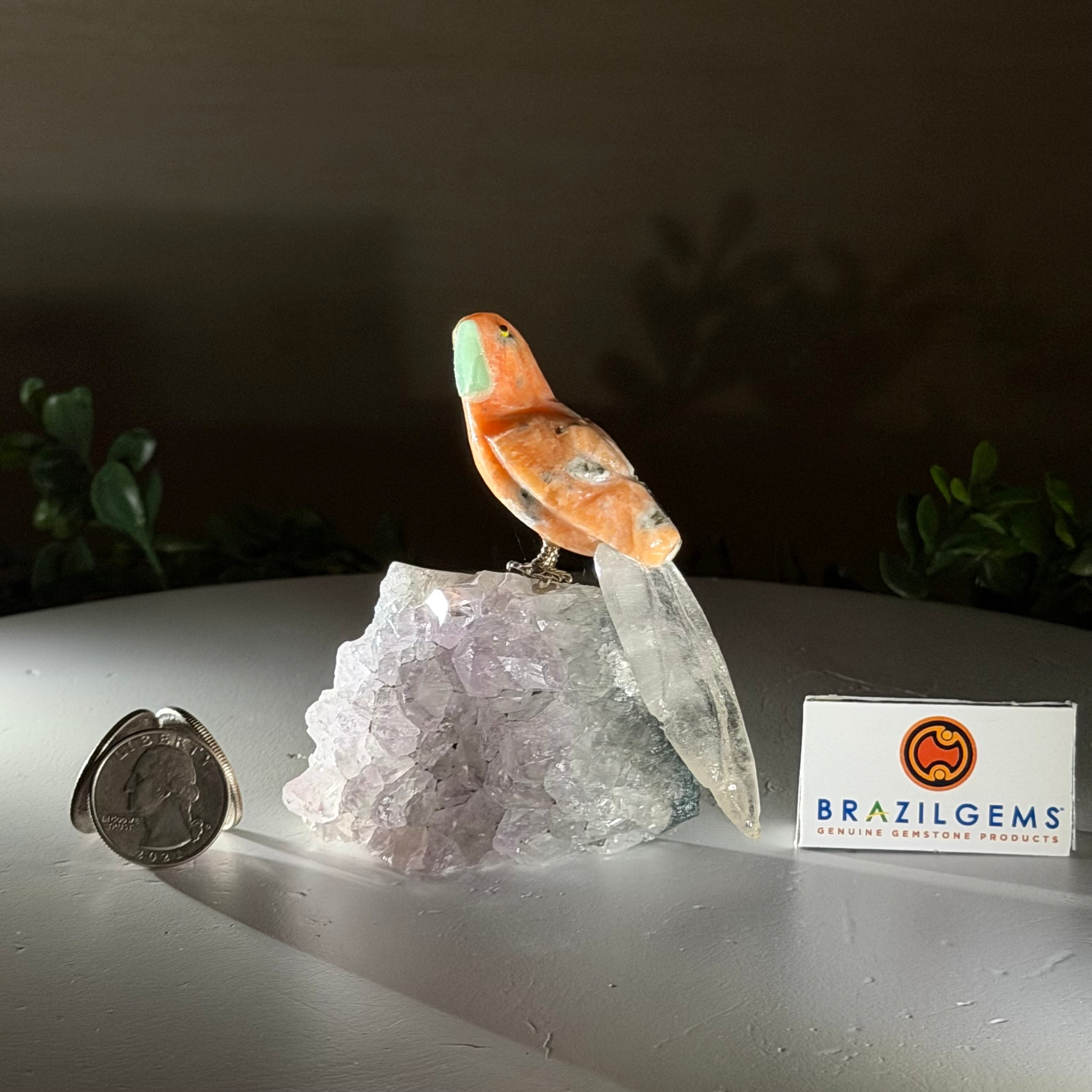 Every bird is meticulously carved by skilled Brazilian artisans who transform Brazil’s finest gemstones into vibrant works of art inspired by native wildlife. From its expressive details to its polished finish, this gemstone bird adds sophistication, charm, and natural energy to any space.