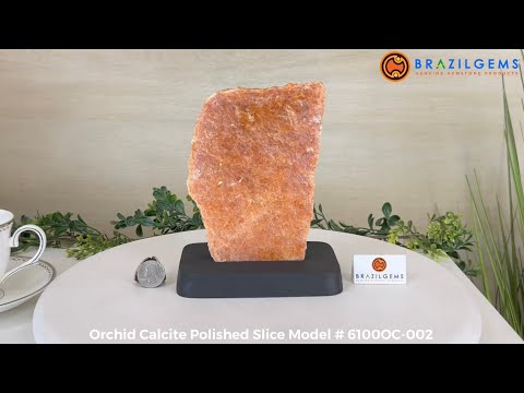 Elevate your space with this Brazilian Orchid Calcite Slice on a wood base. This piece is beautifully polished on the front with rough edges on the sides and the back. This slice will make a great addition or start to your crystal collection and will accent the décor of any room.
