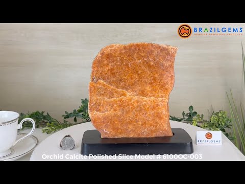 Elevate your space with this Brazilian Orchid Calcite Slice on a wood base. This piece is beautifully polished on the front with rough edges on the sides and the back. This slice will make a great addition or start to your crystal collection and will accent the décor of any room.