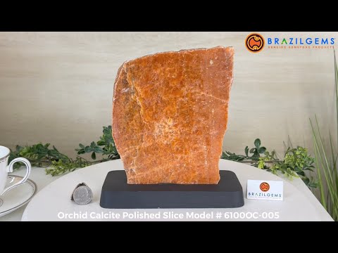 Elevate your space with this Brazilian Orchid Calcite Slice on a wood base. This piece is beautifully polished on the front with rough edges on the sides and the back. This slice will make a great addition or start to your crystal collection and will accent the décor of any room.