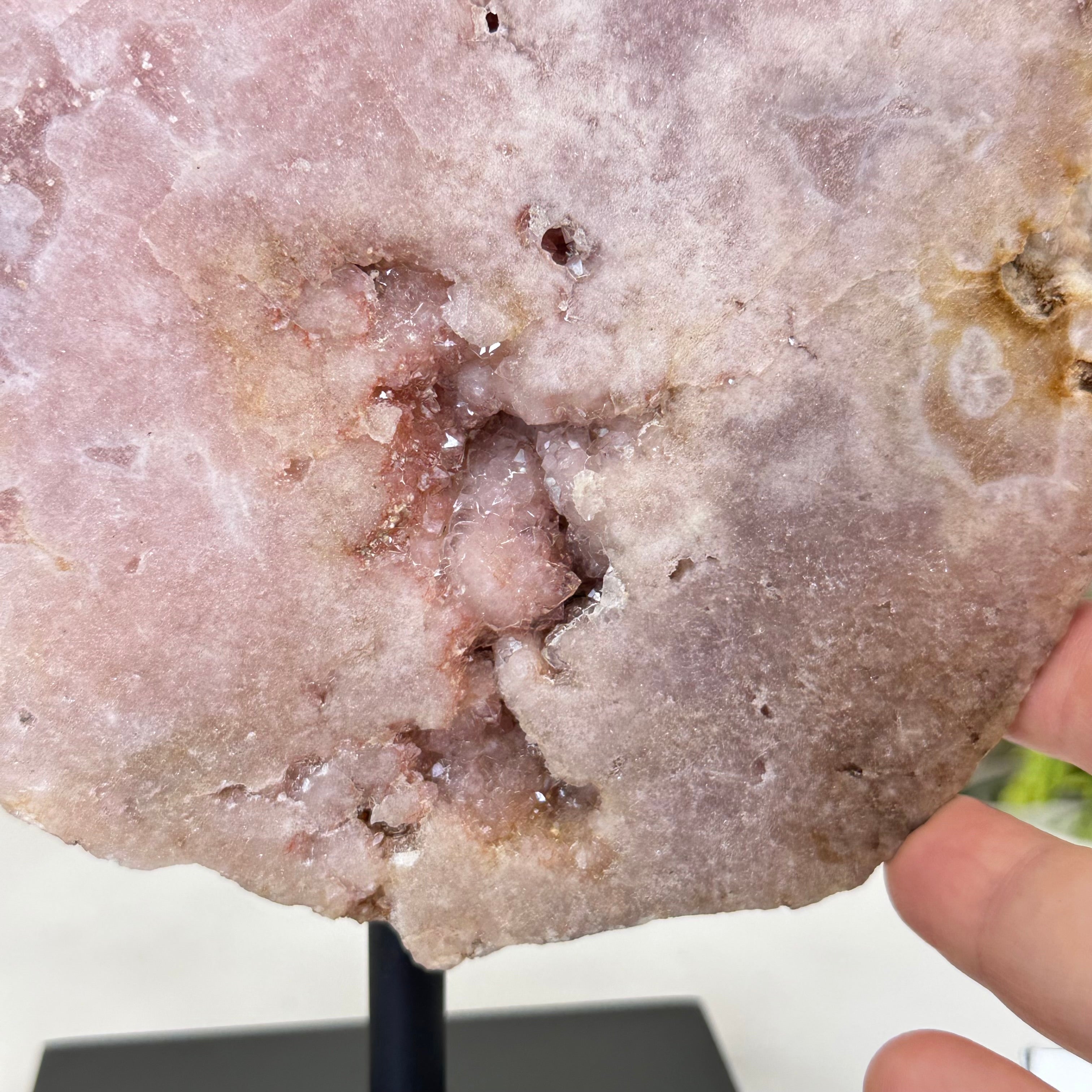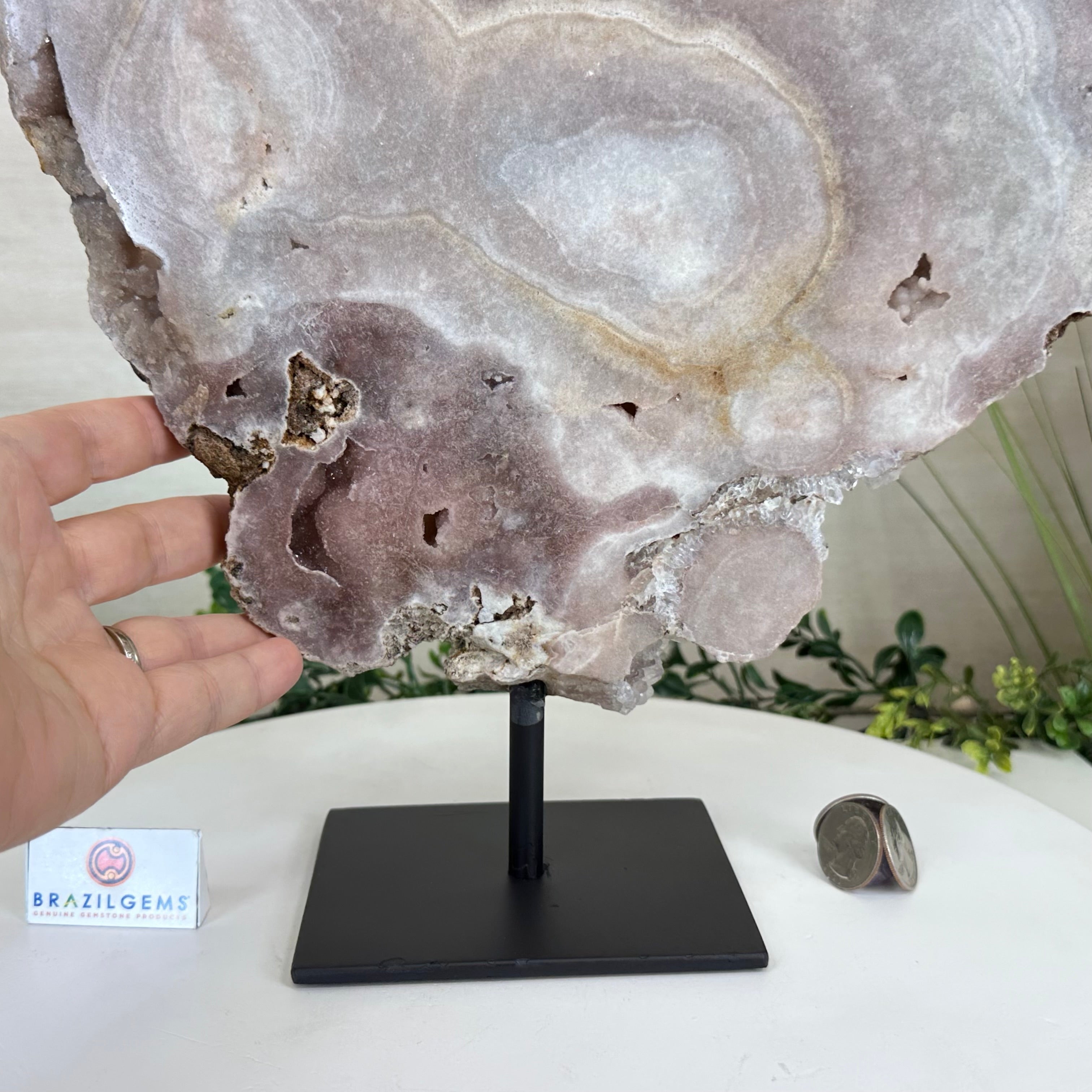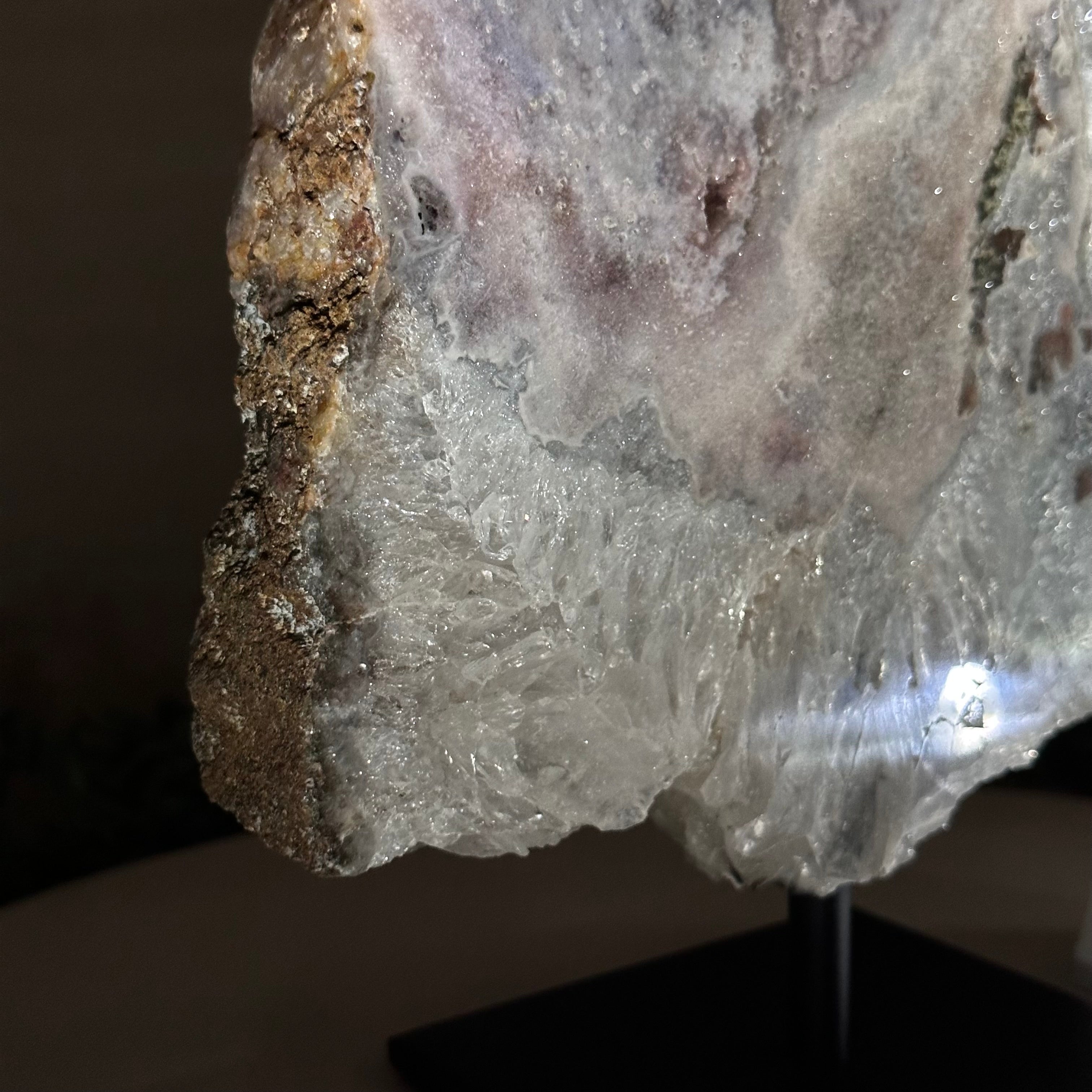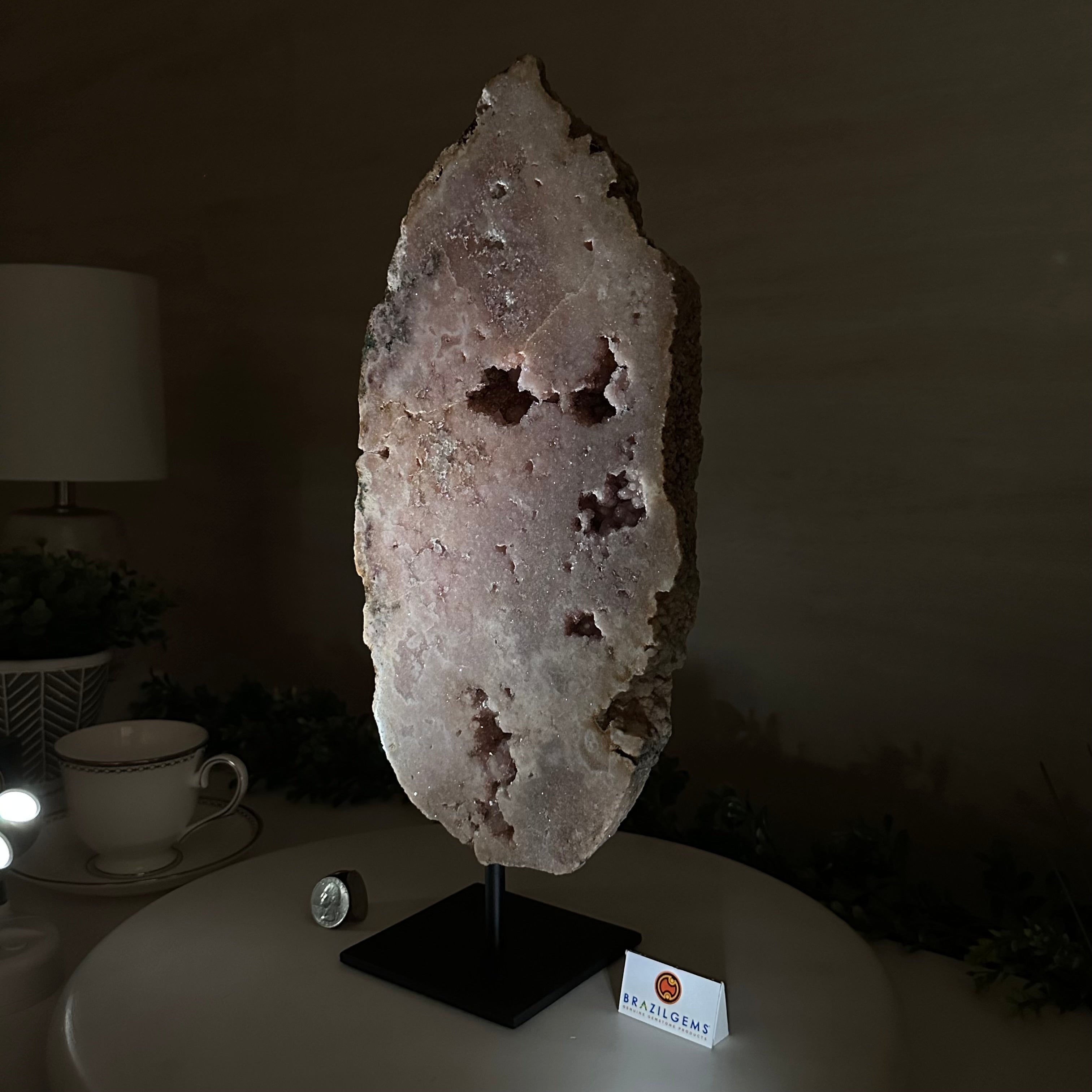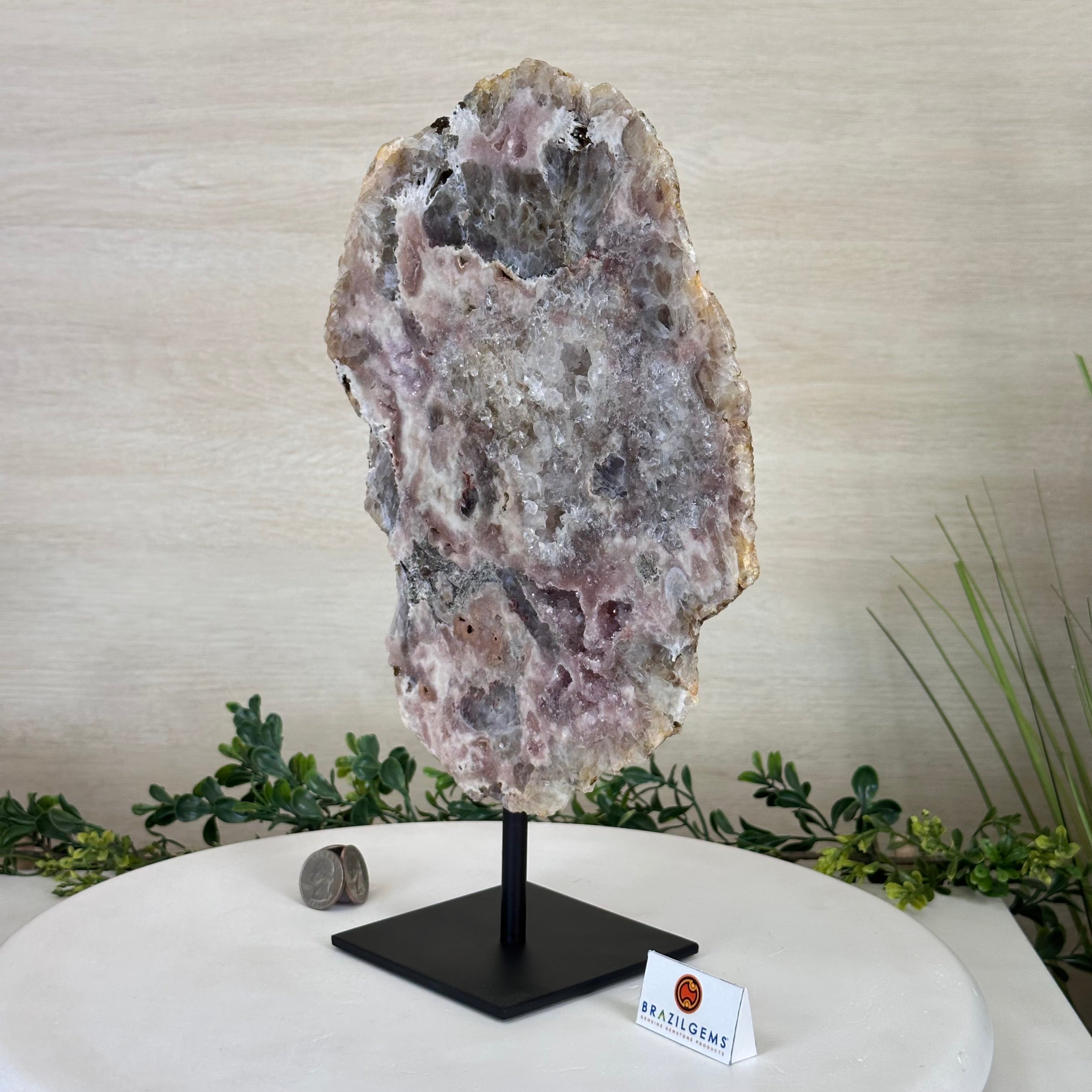 Natural Brazilian Pink Amethyst Slices on metal bases will accent the decor of your home or office. Discover our collection of Pink Amethyst Slices.