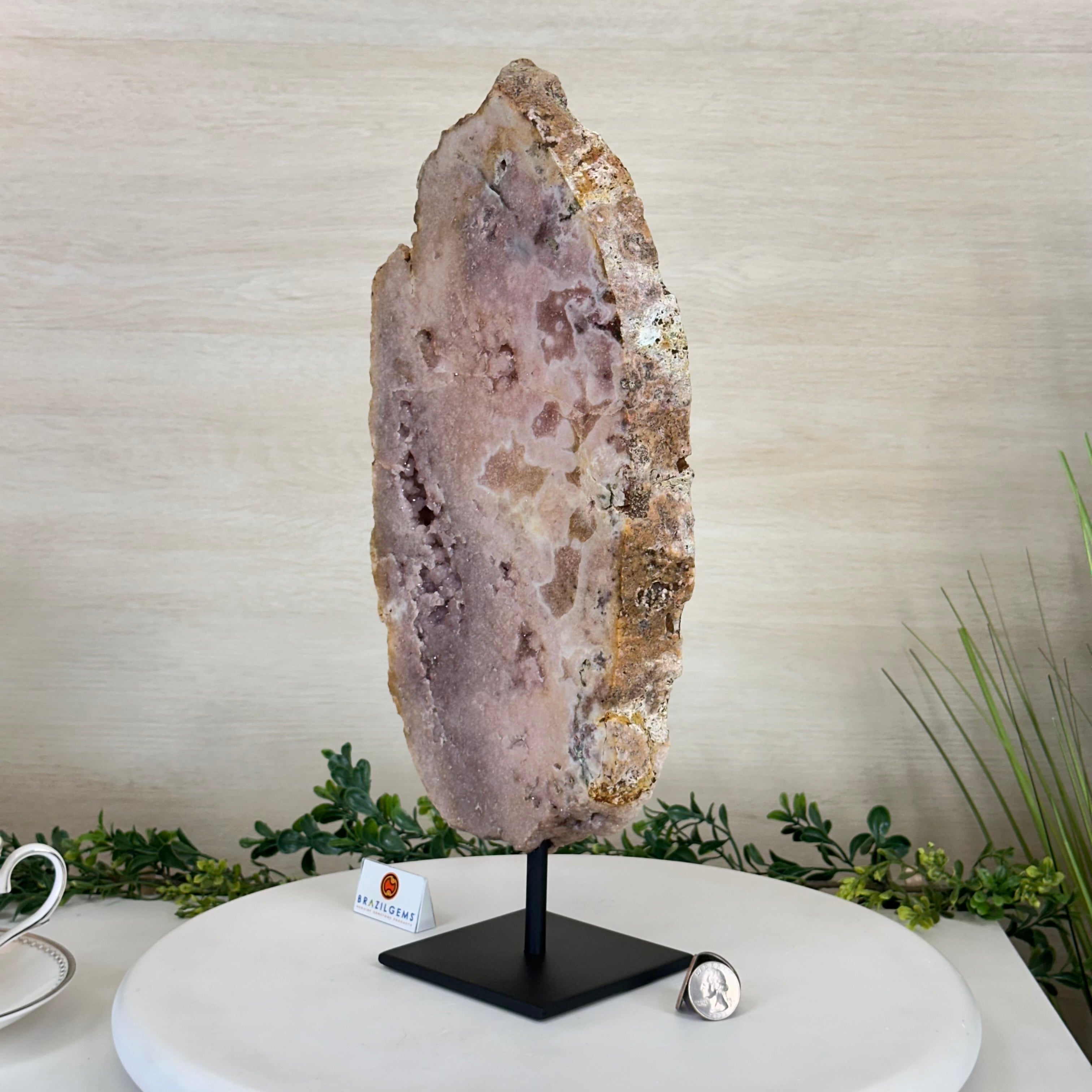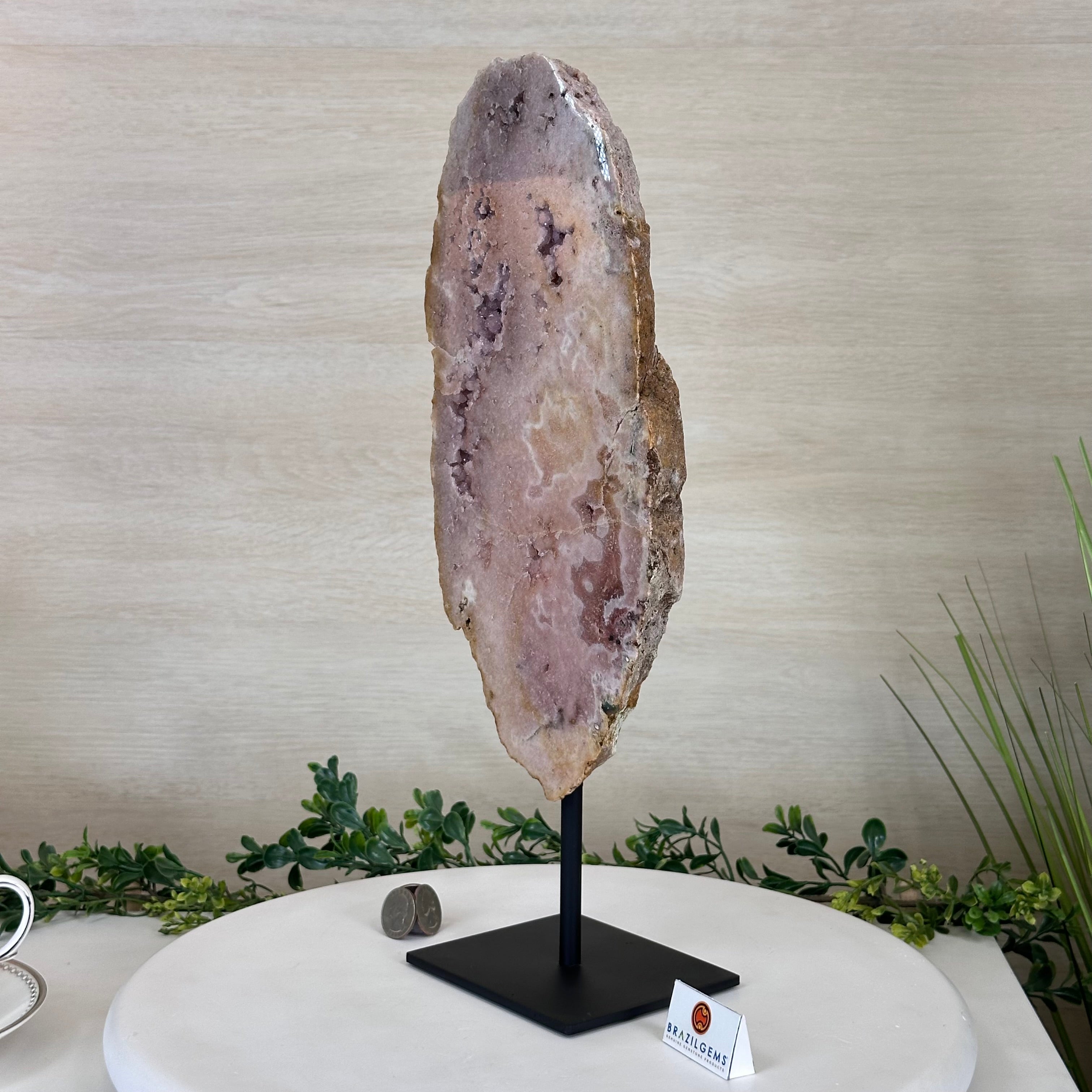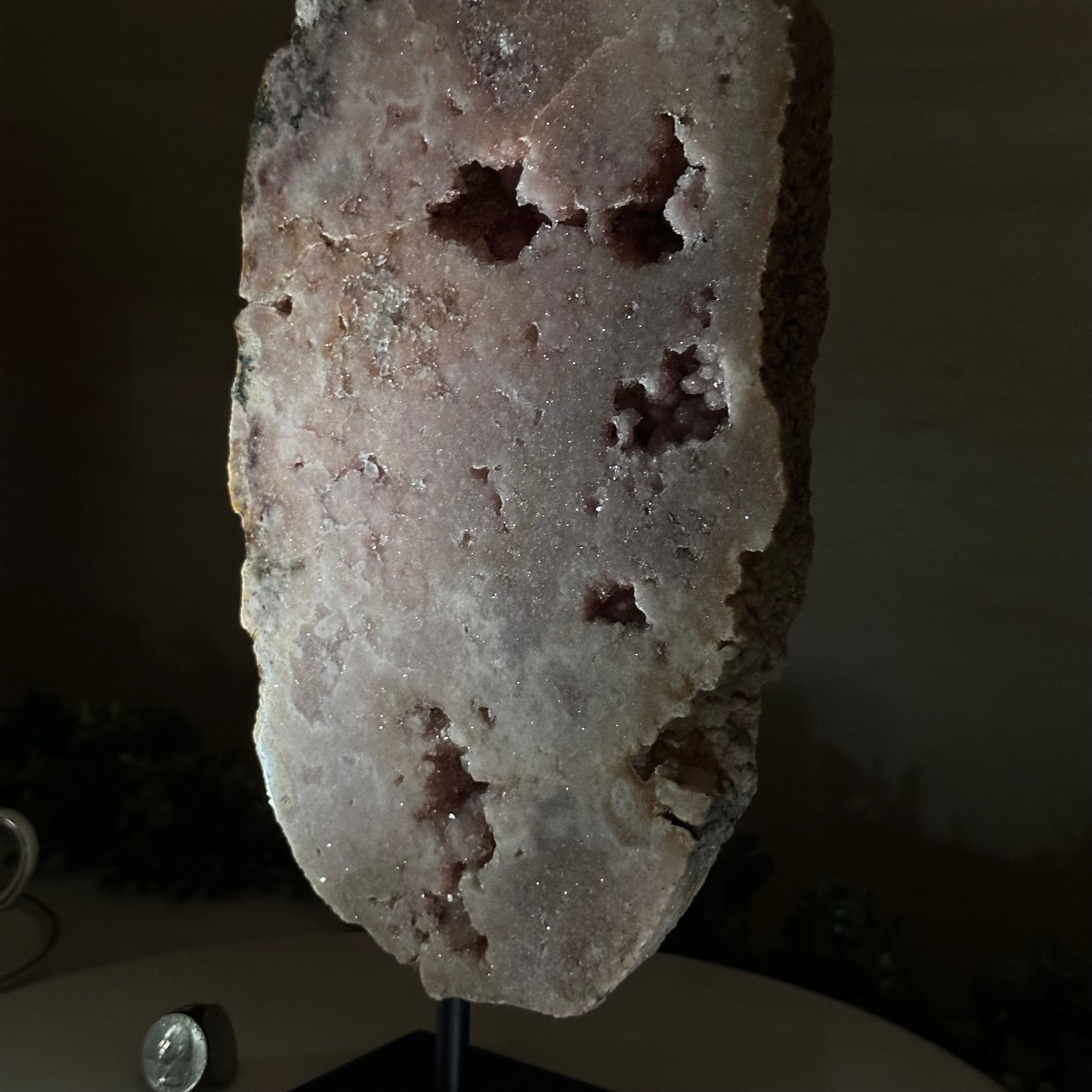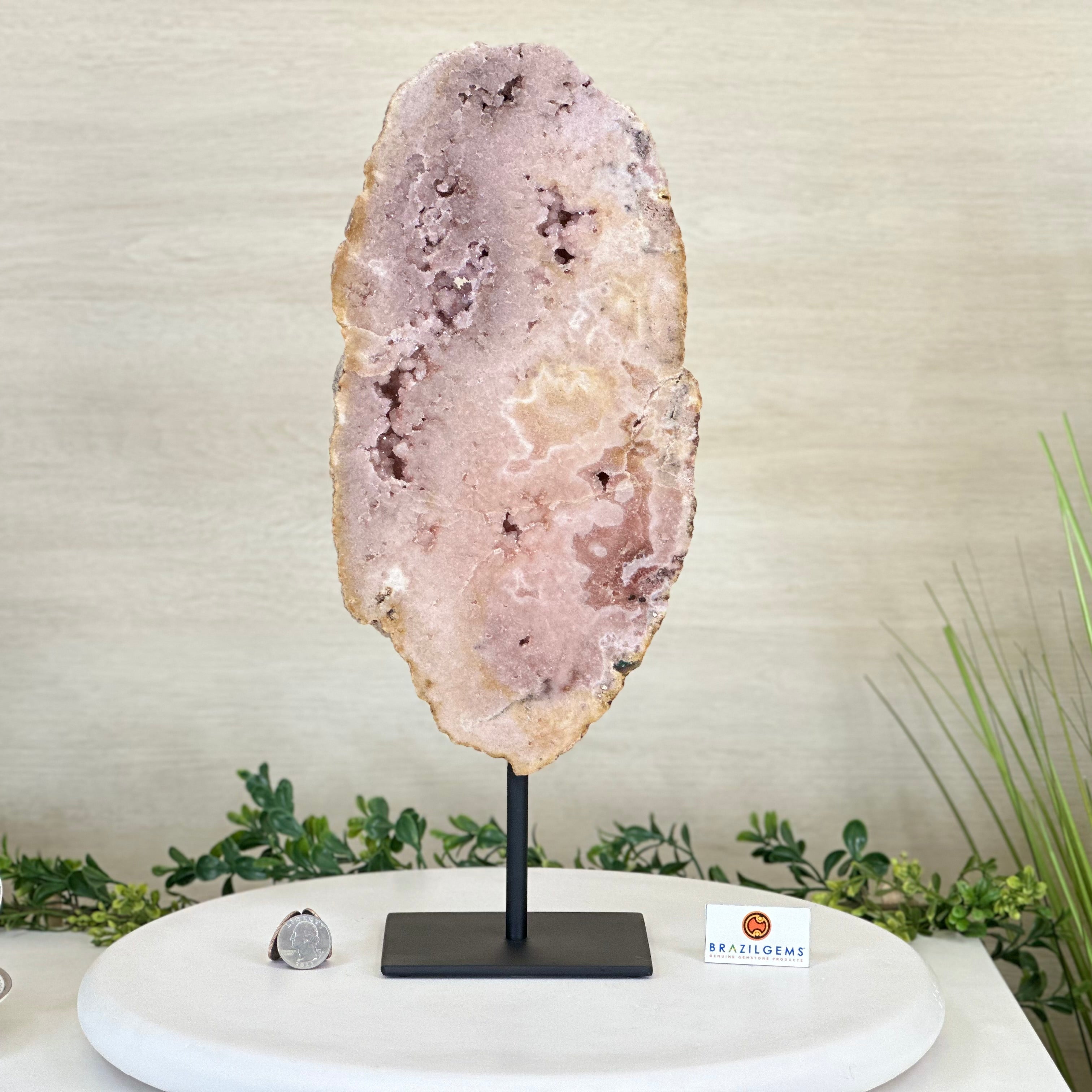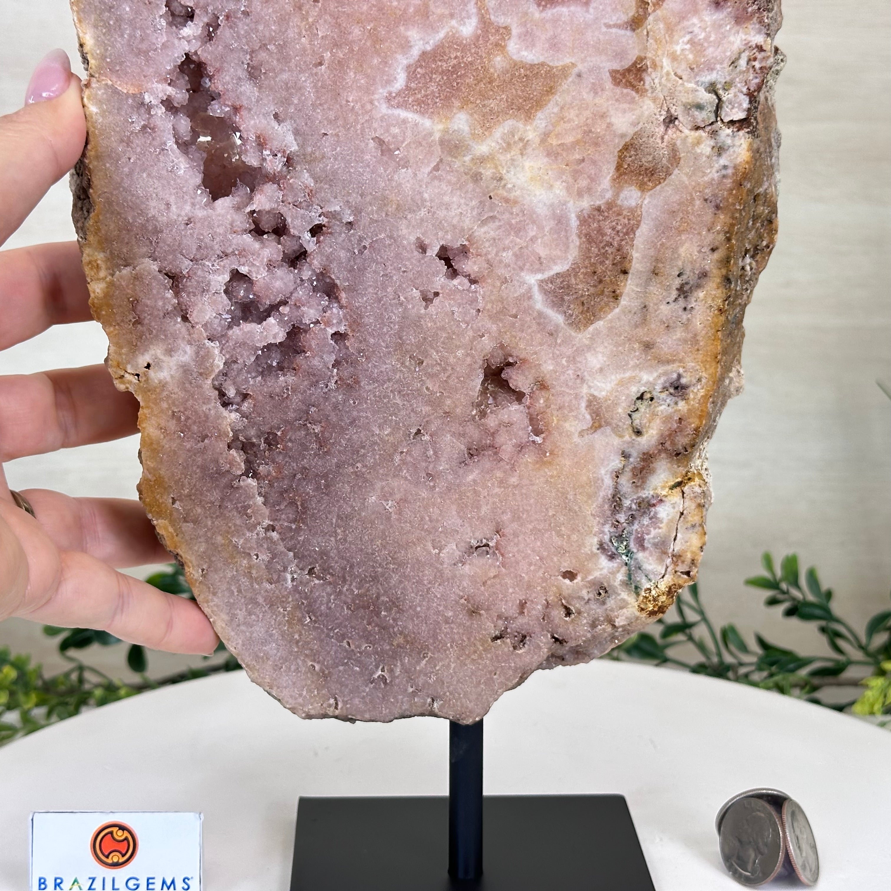 Natural Brazilian Pink Amethyst Slices on metal bases will accent the decor of your home or office. Discover our collection of Pink Amethyst Slices.