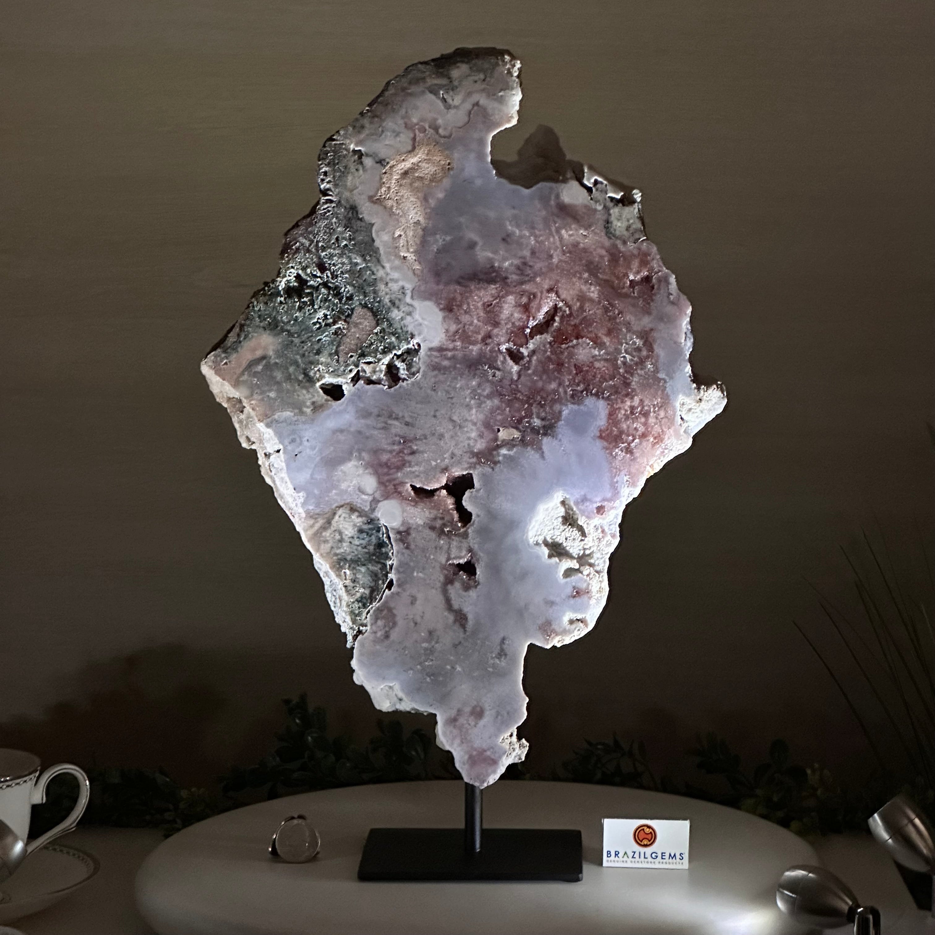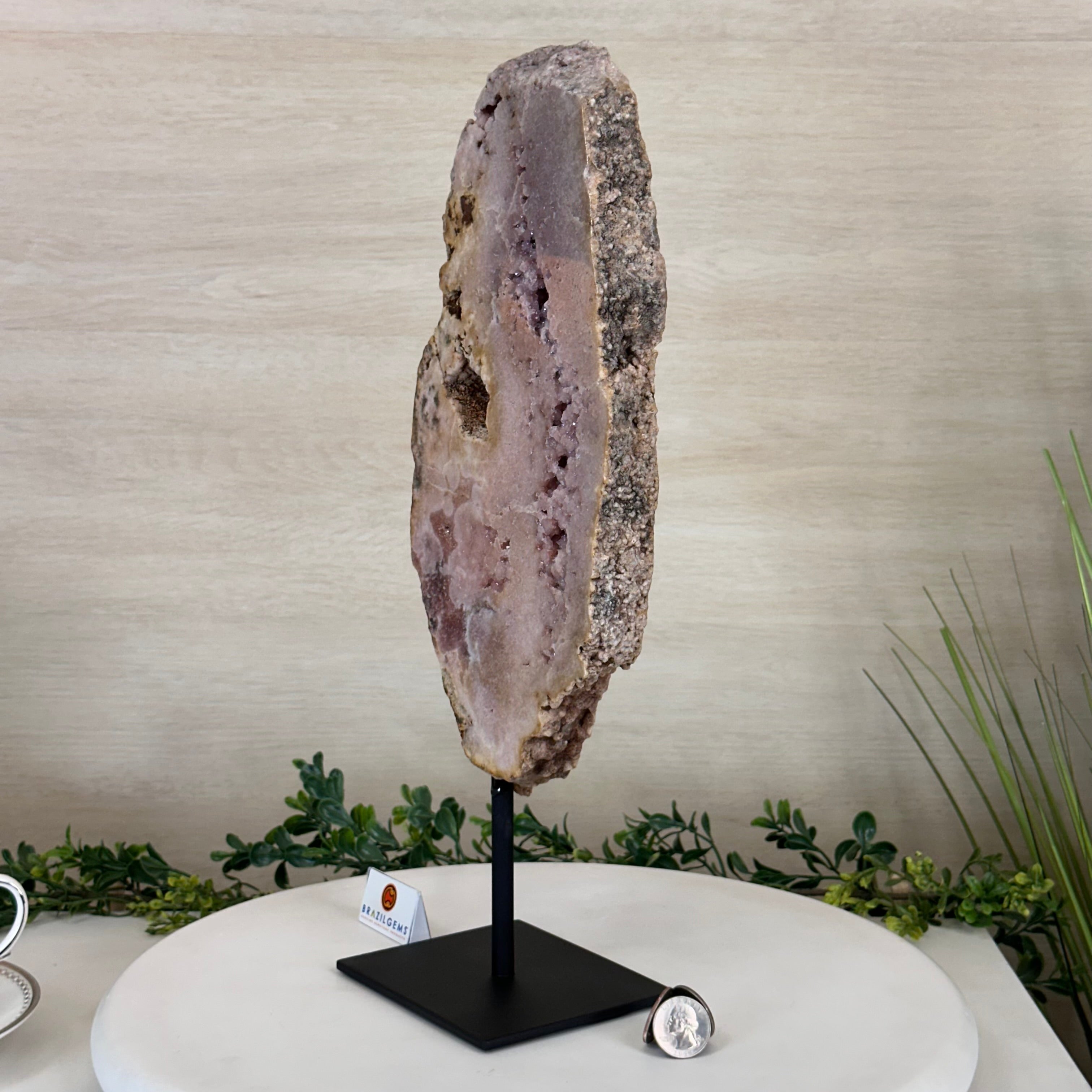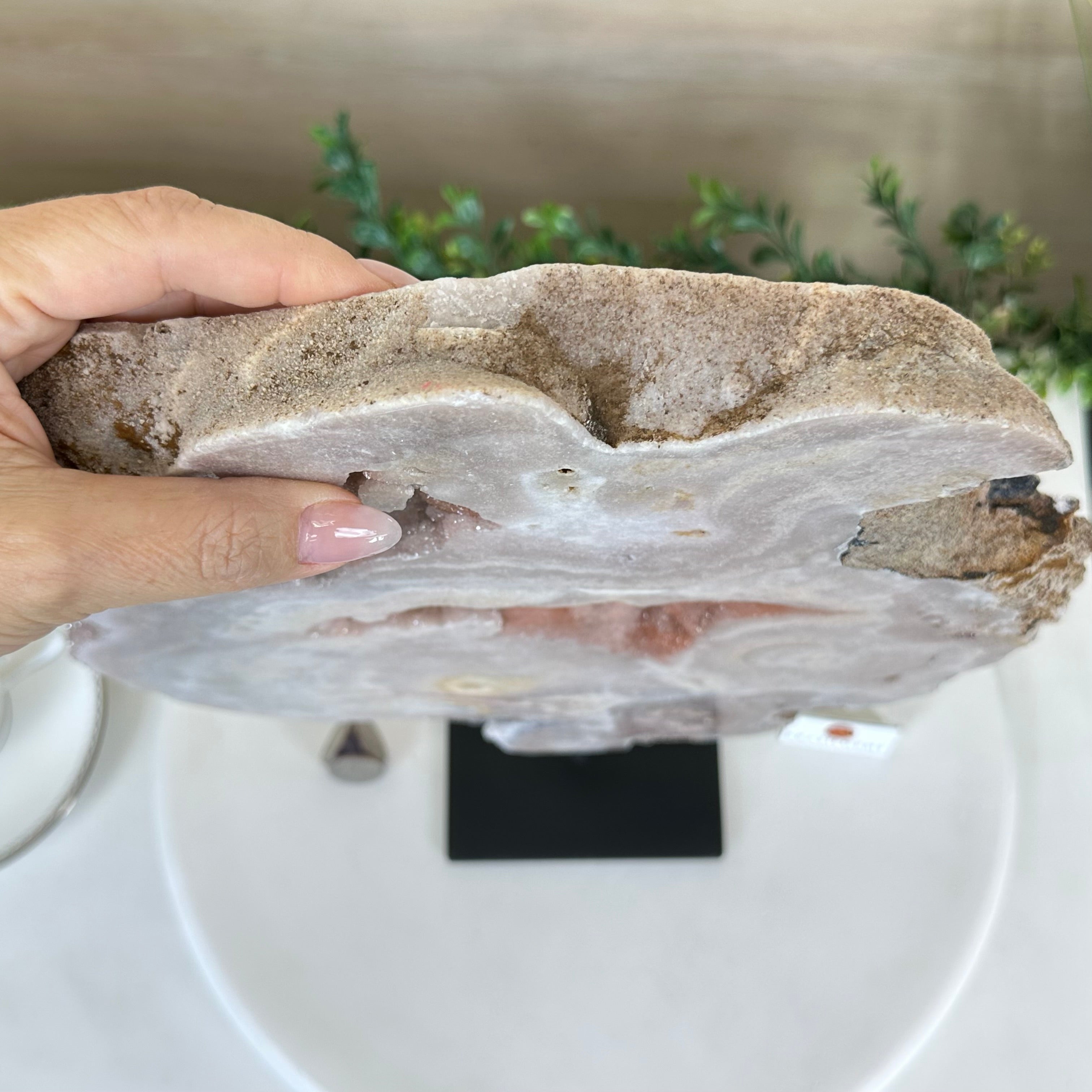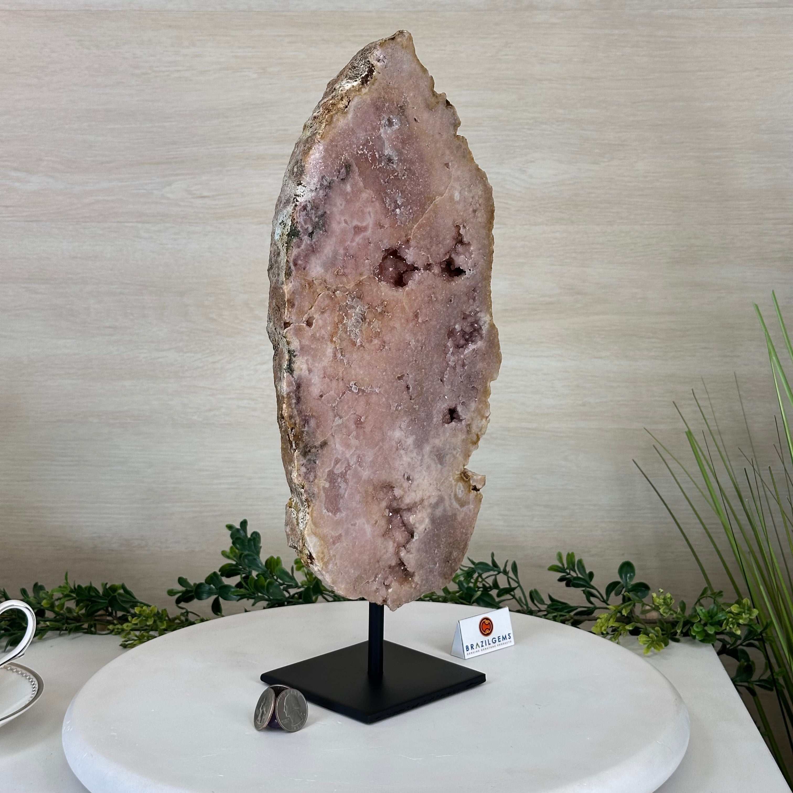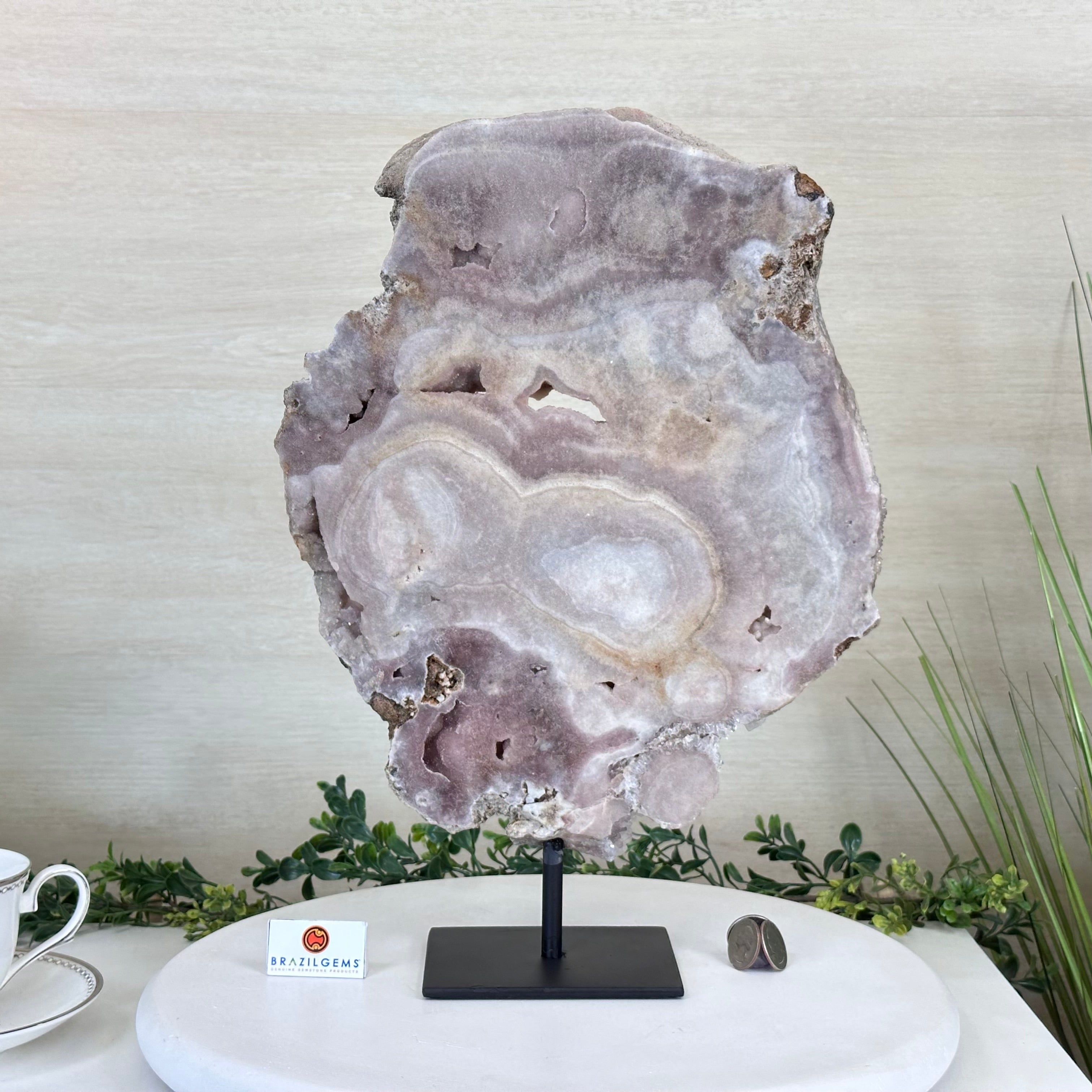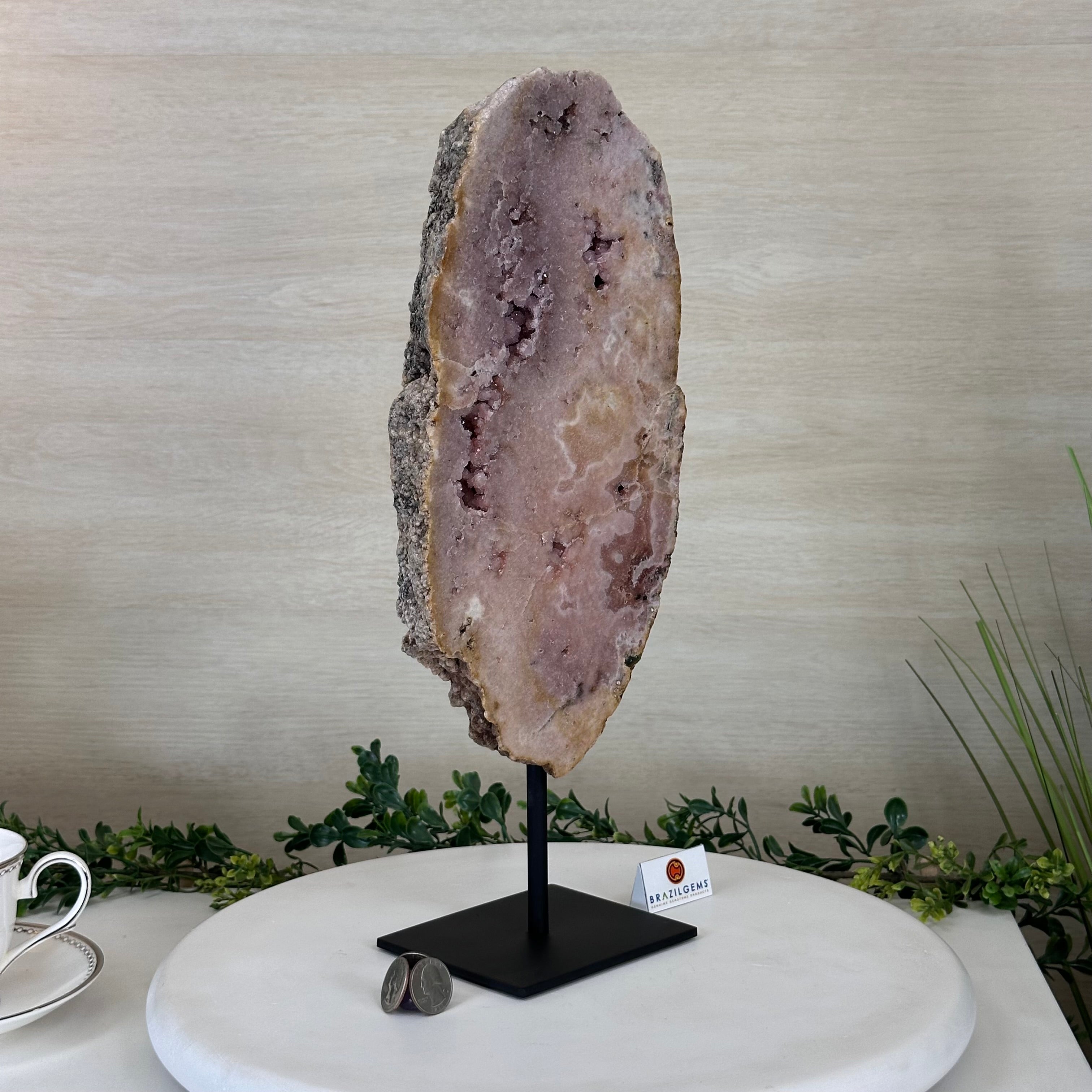 Natural Brazilian Pink Amethyst Slices on metal bases will accent the decor of your home or office. Discover our collection of Pink Amethyst Slices.