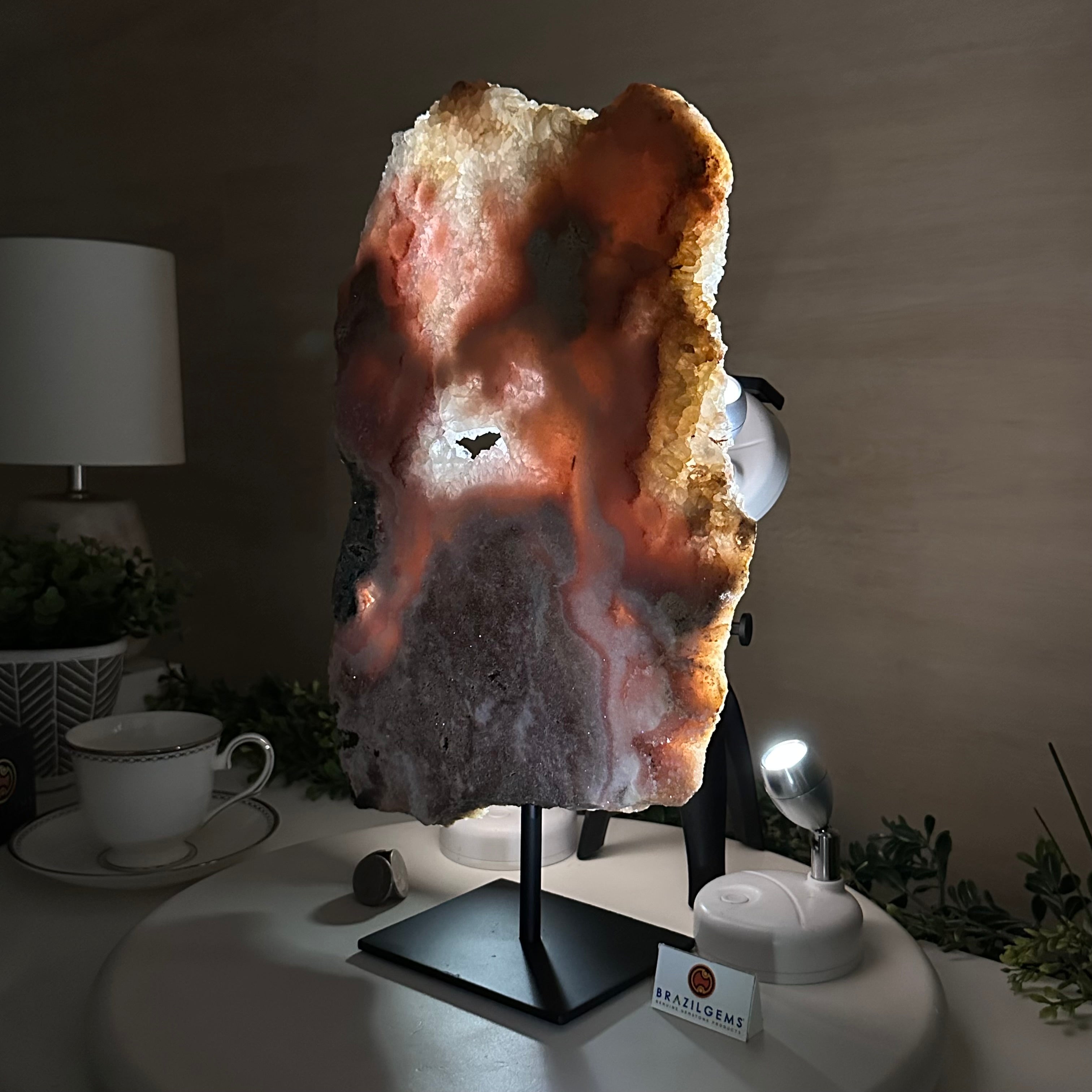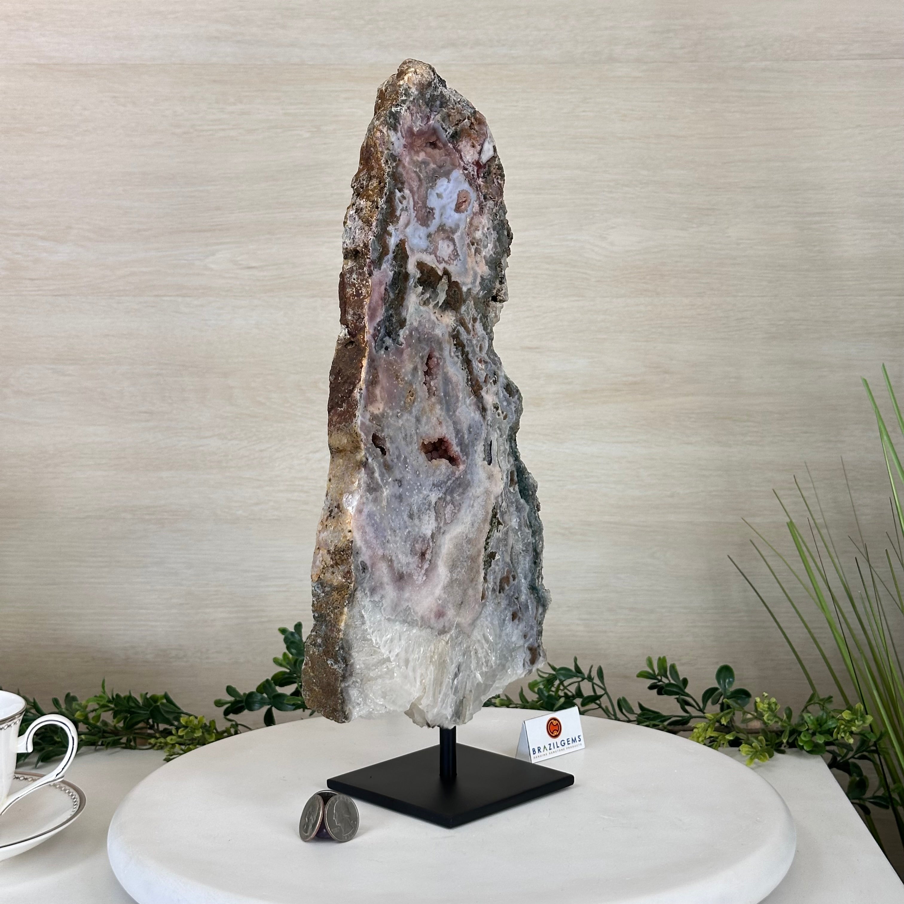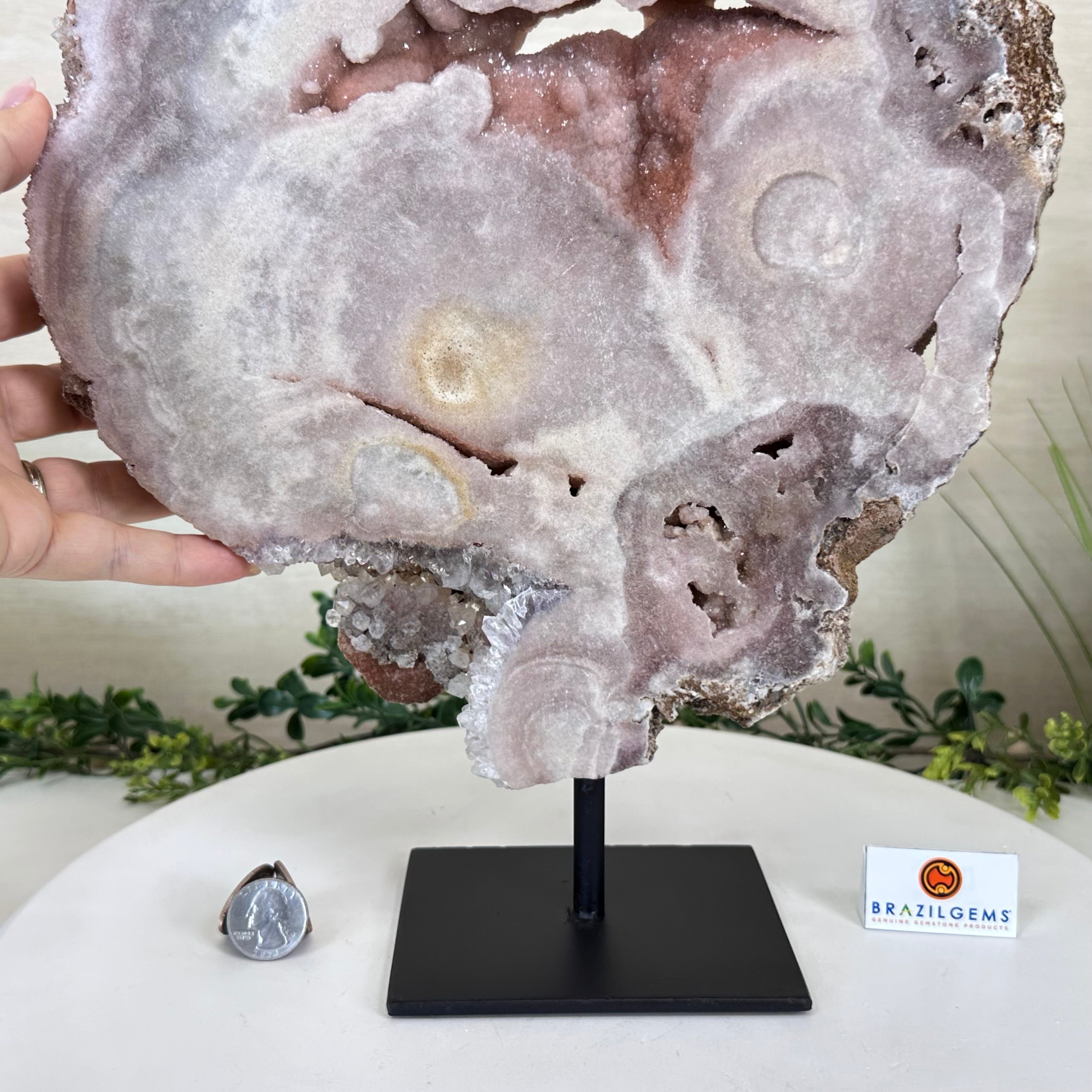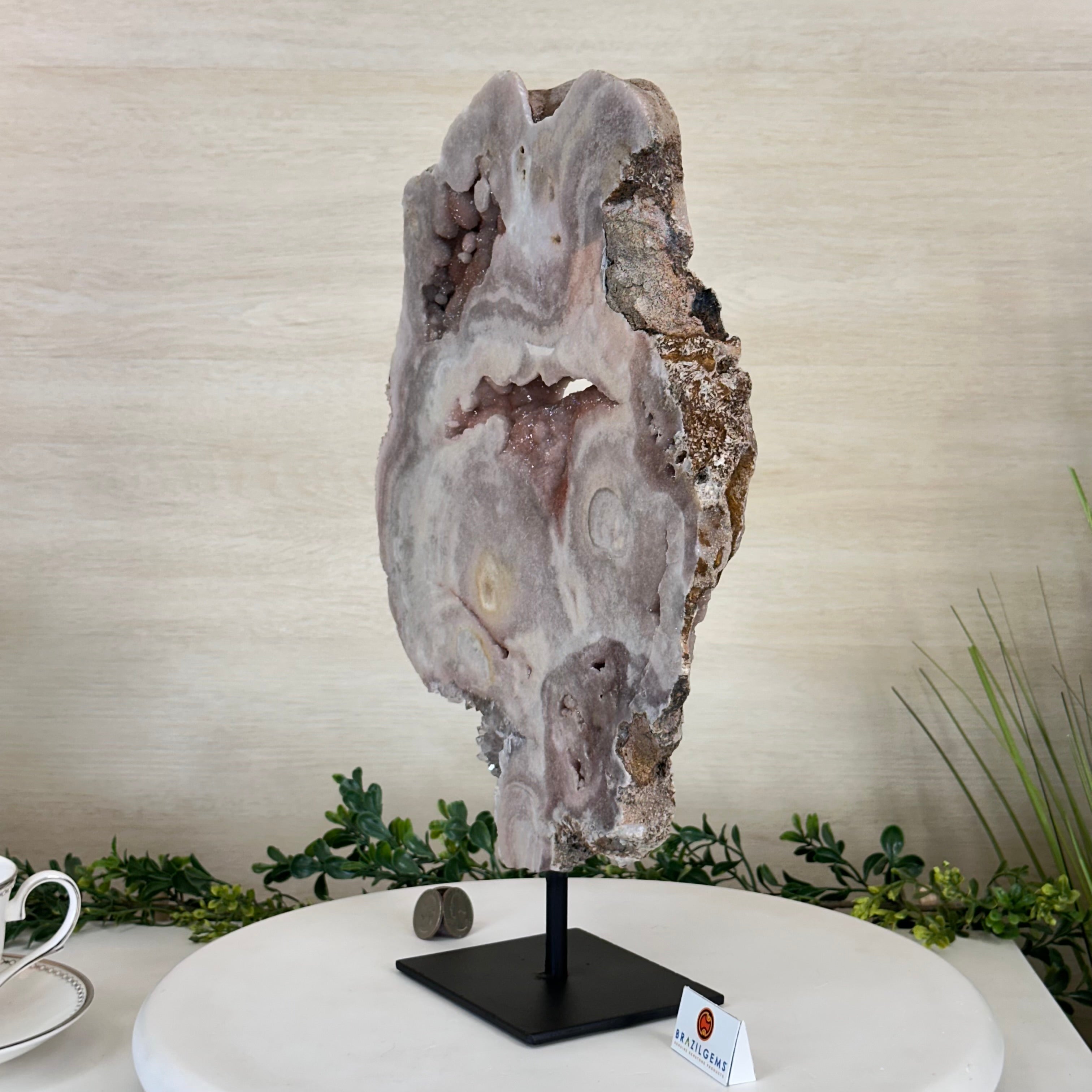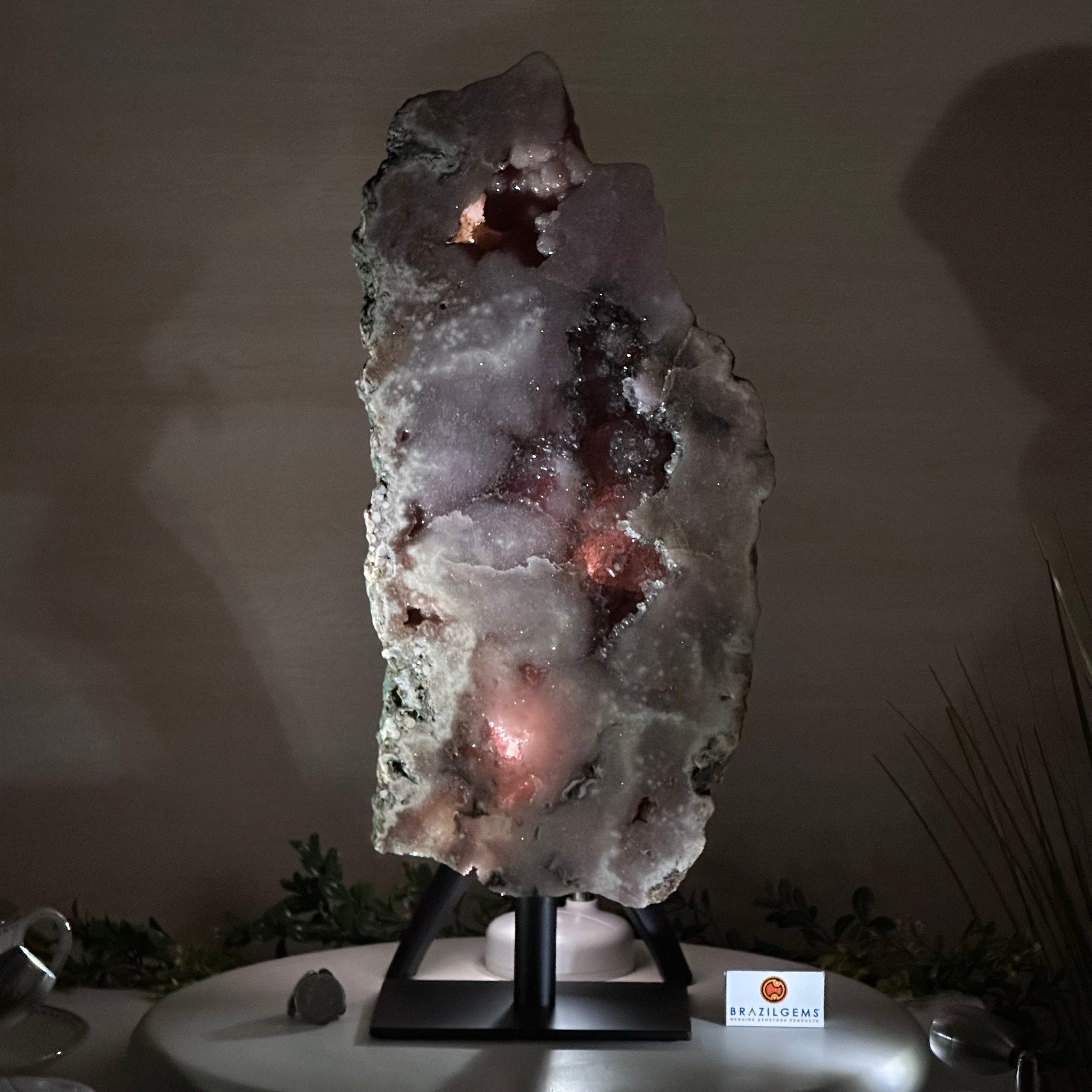 Natural Brazilian Pink Amethyst Slices on metal bases will accent the decor of your home or office. Discover our collection of Pink Amethyst Slices.