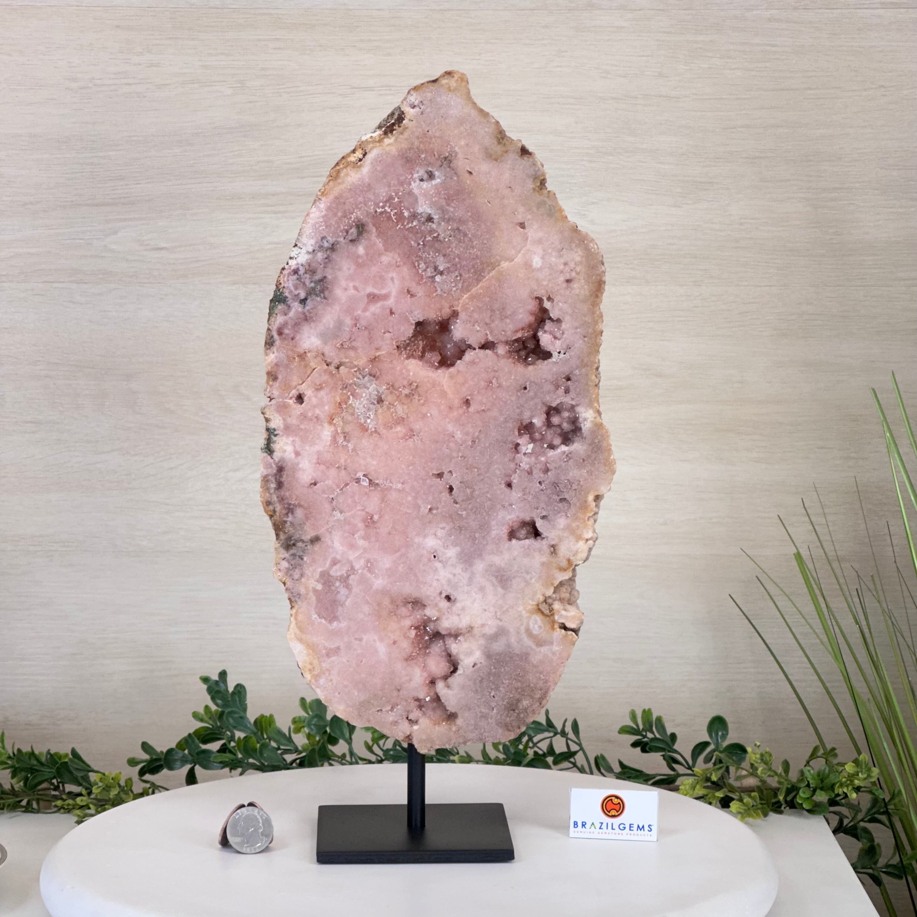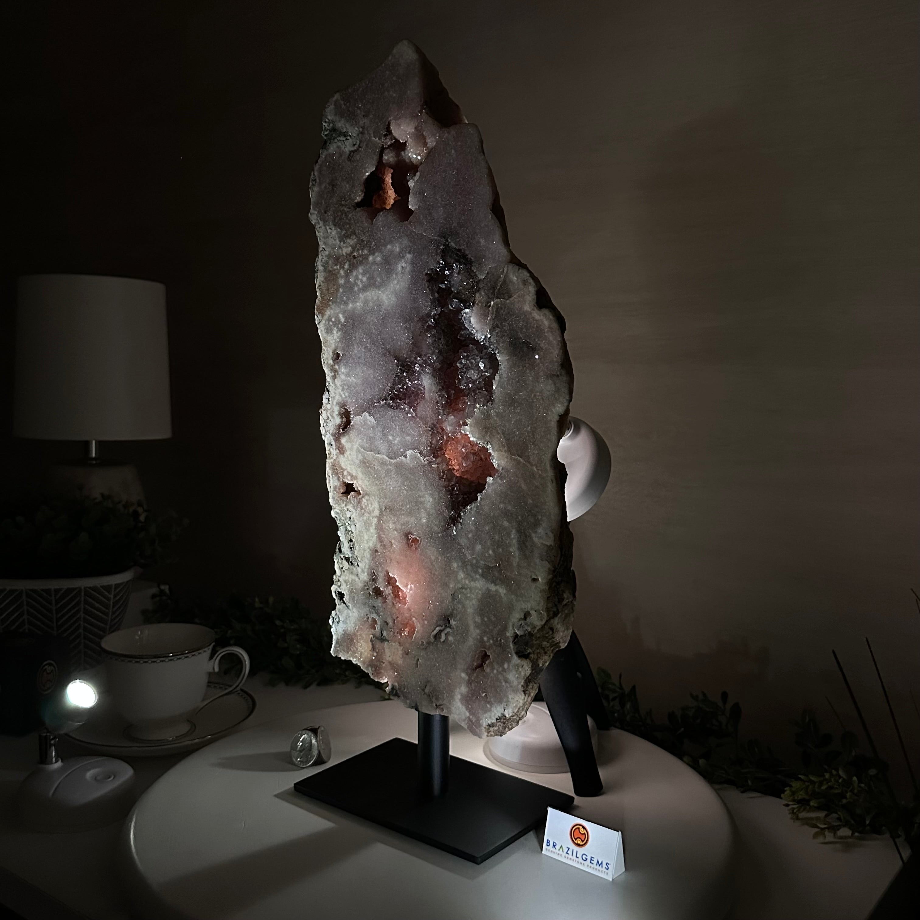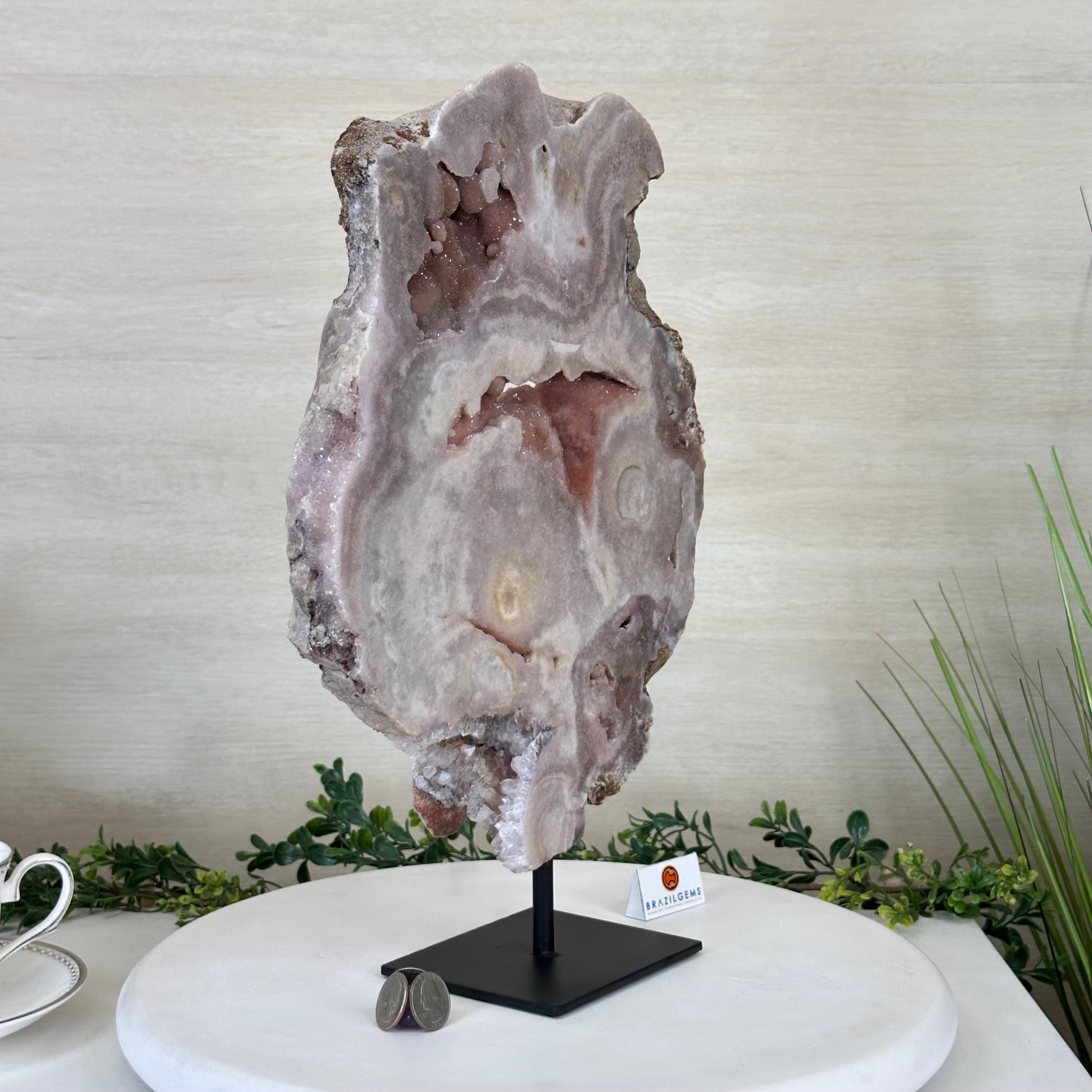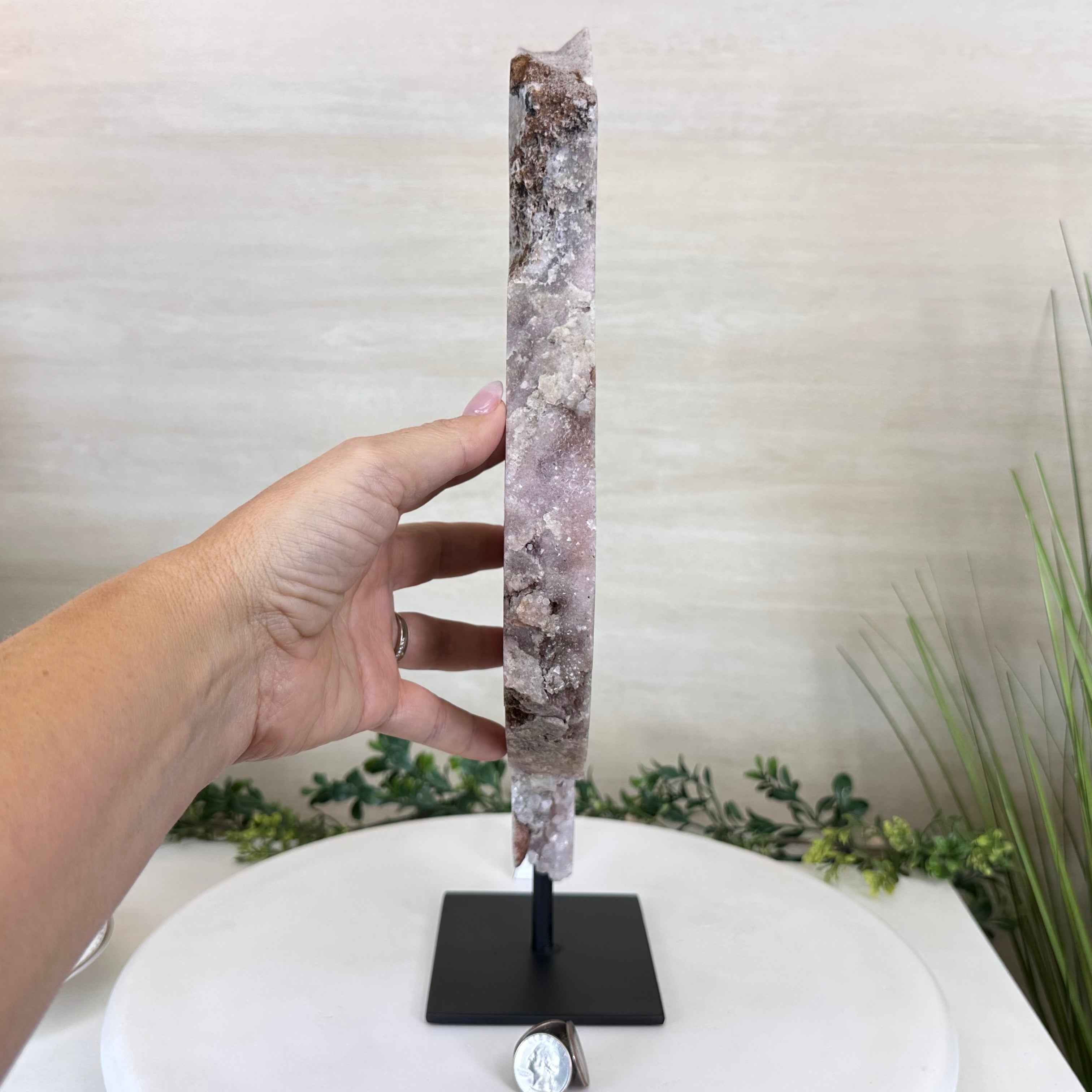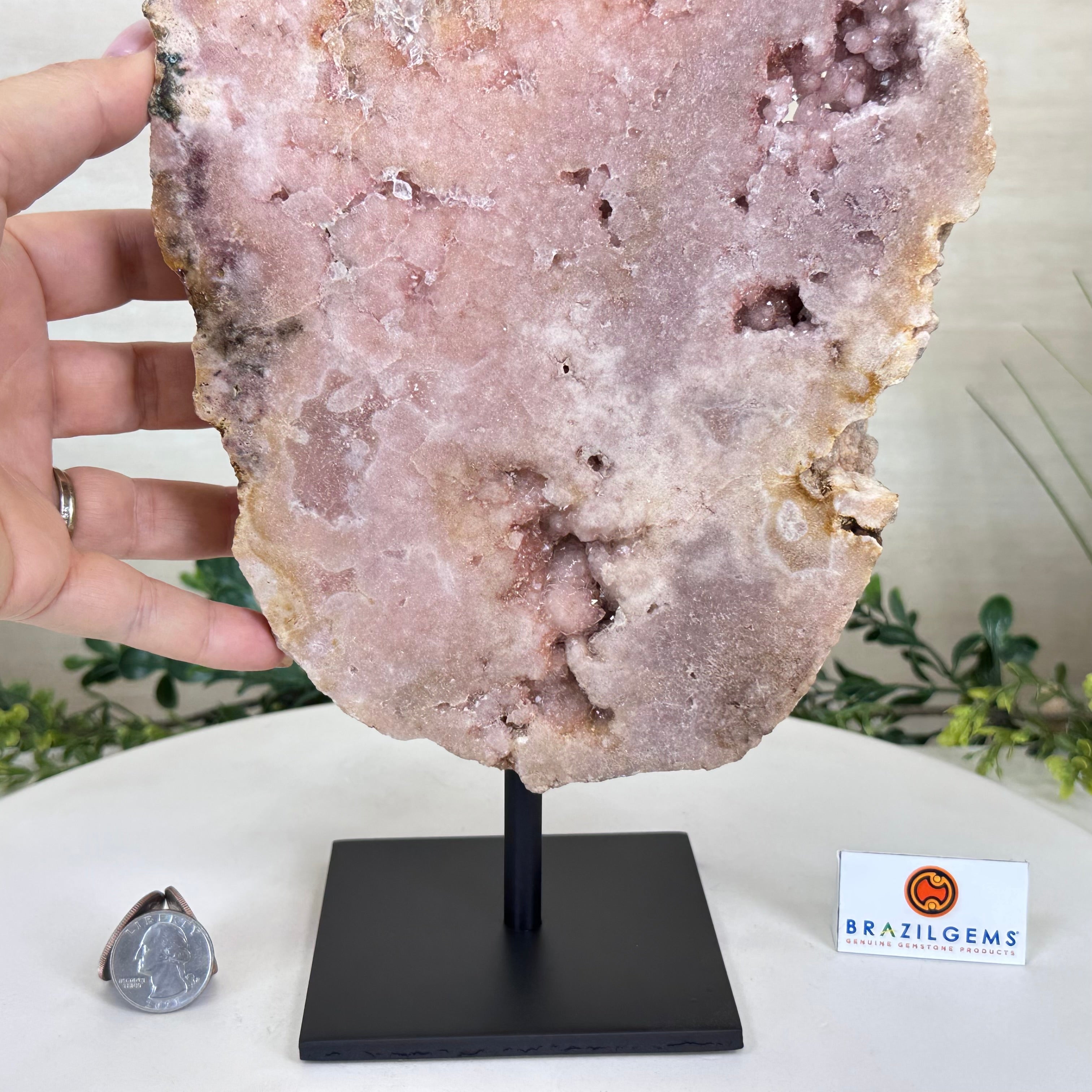 Natural Brazilian Pink Amethyst Slices on metal bases will accent the decor of your home or office. Discover our collection of Pink Amethyst Slices.