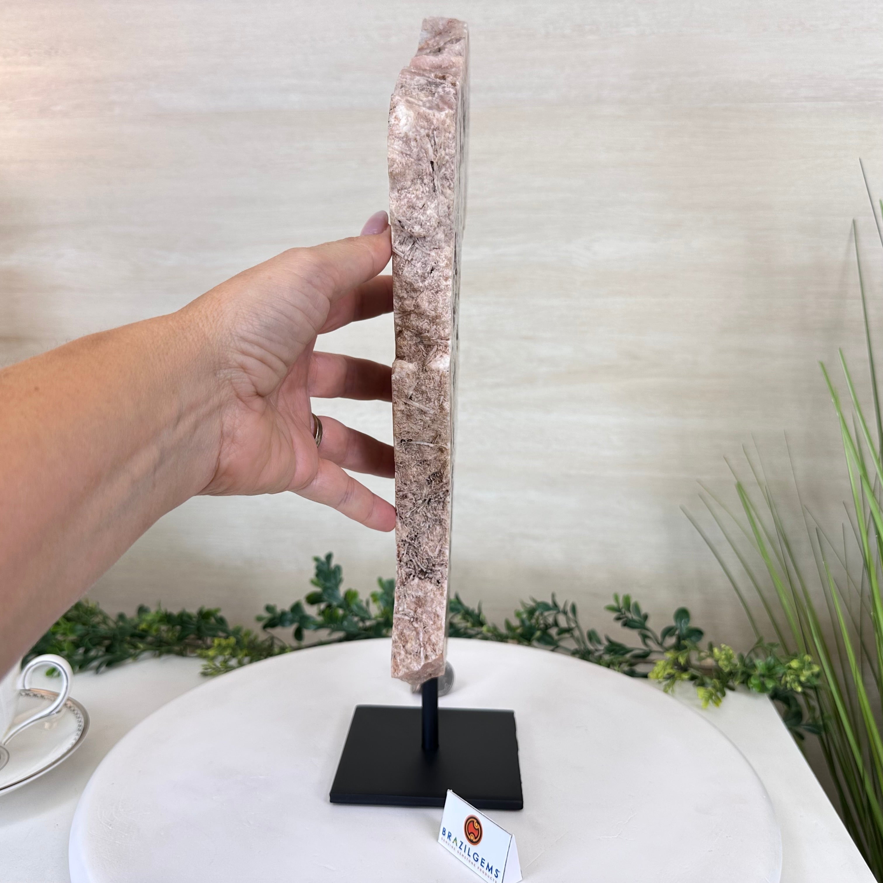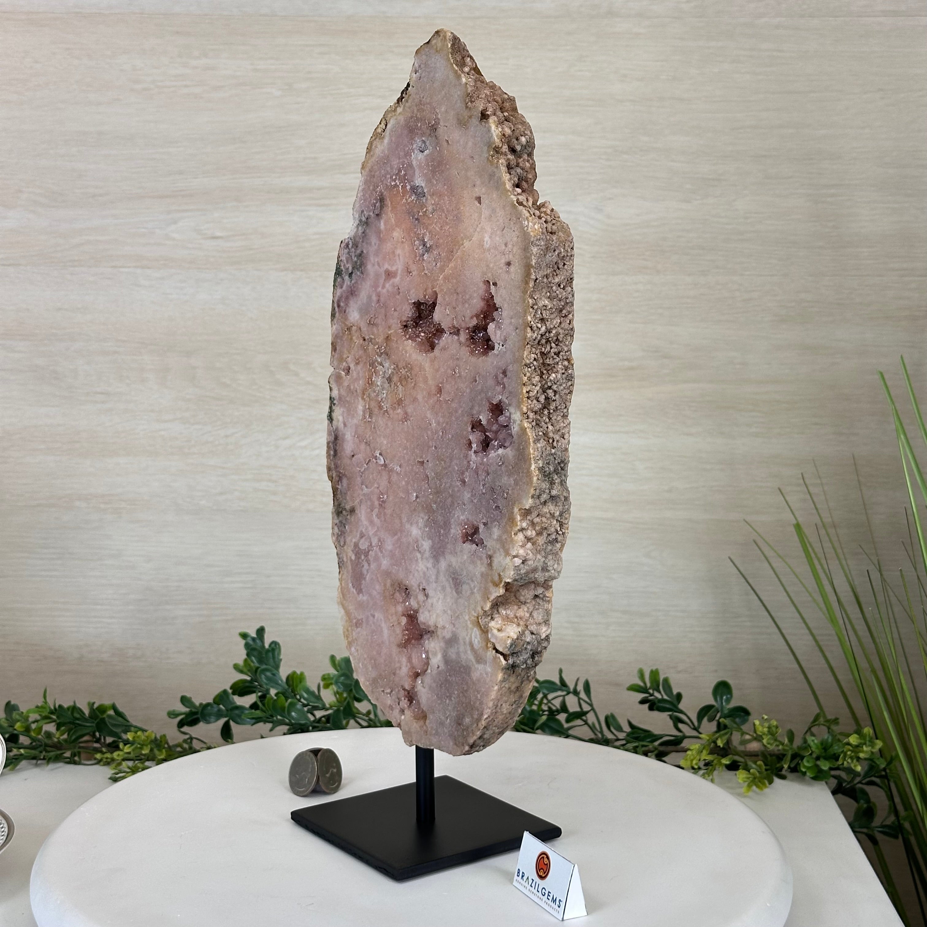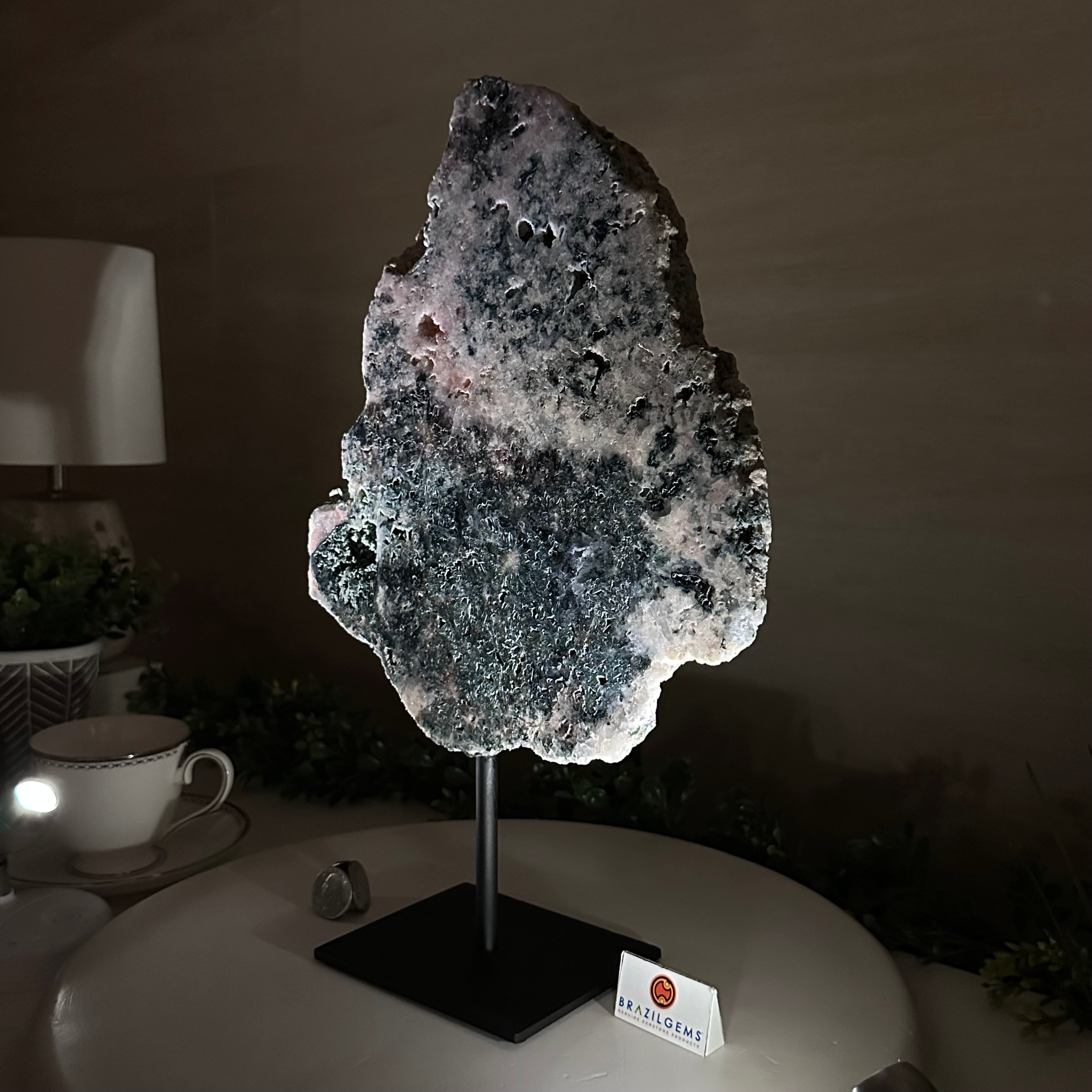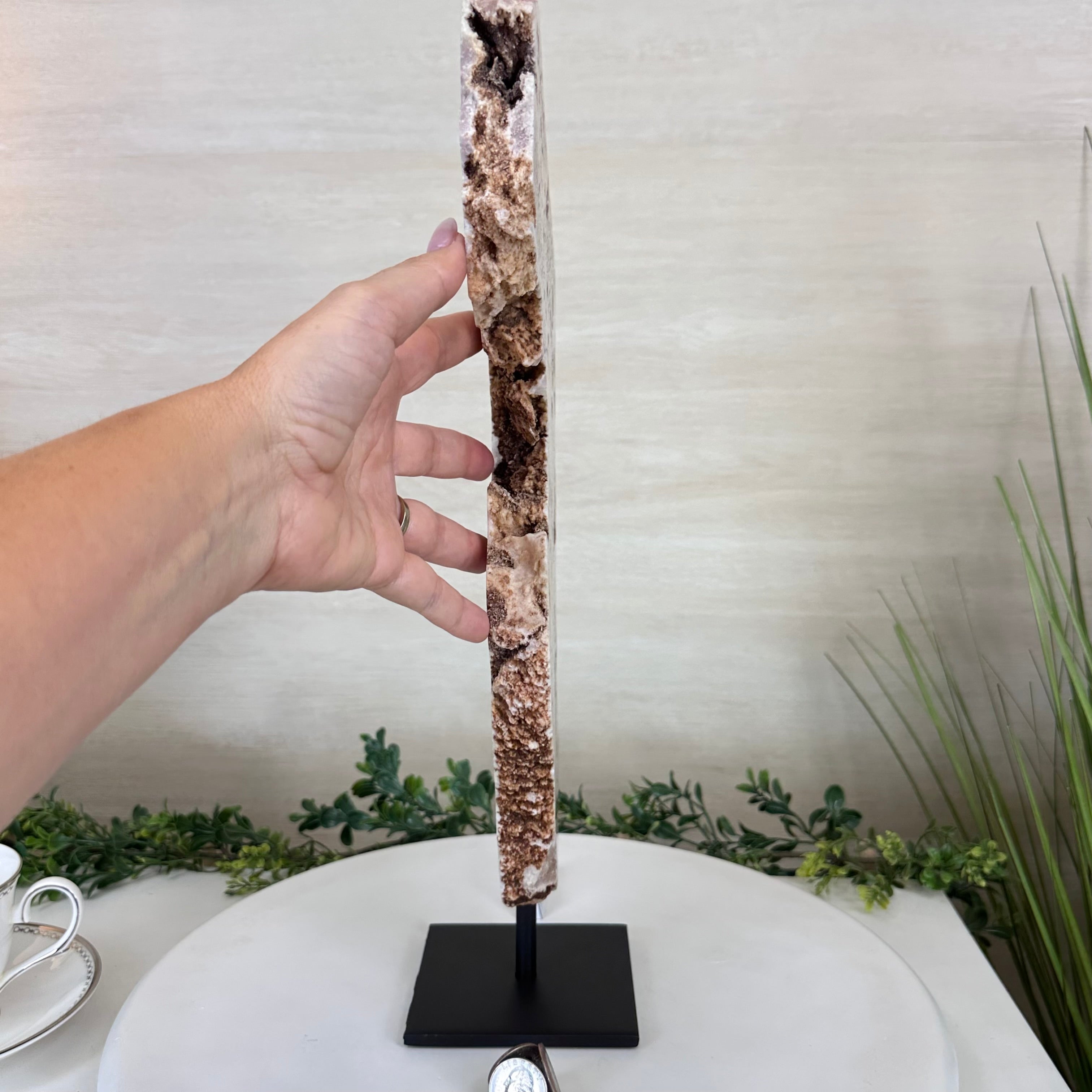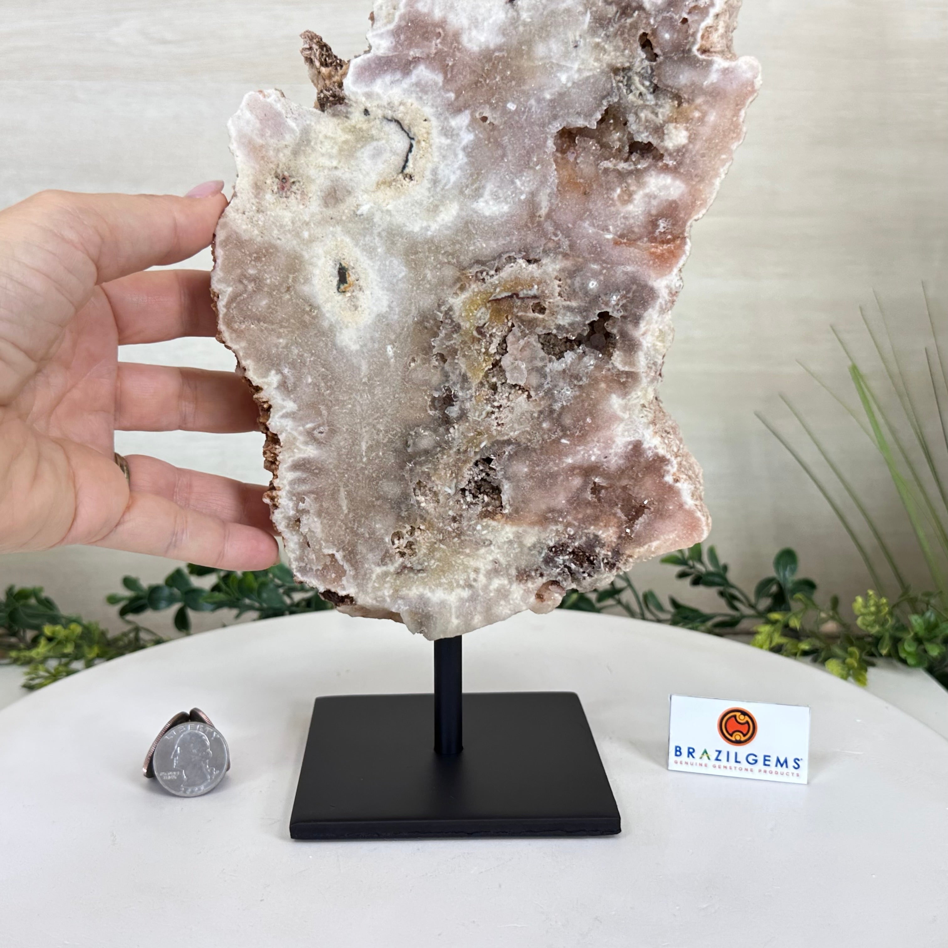 Natural Brazilian Pink Amethyst Slices on metal bases will accent the decor of your home or office. Discover our collection of Pink Amethyst Slices.