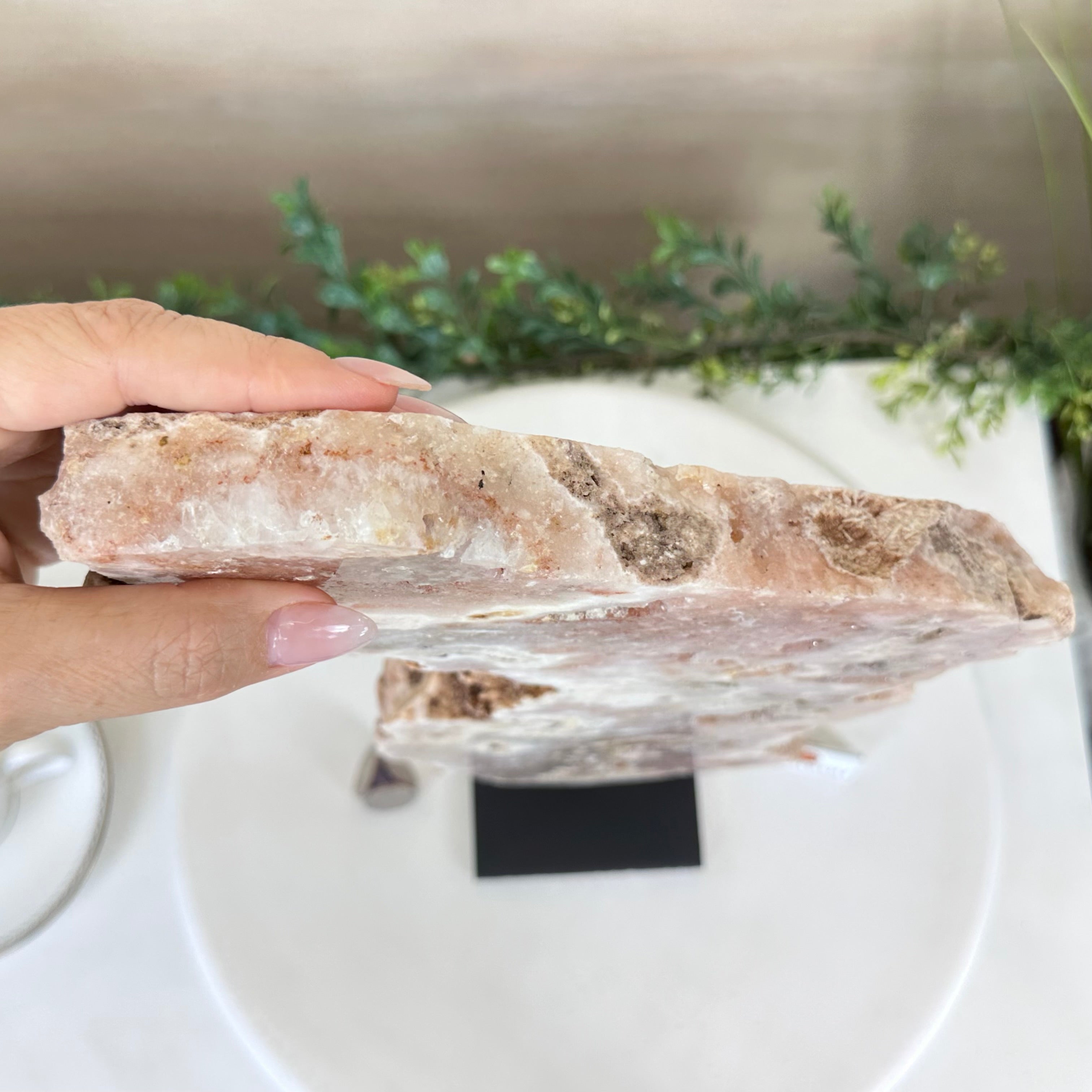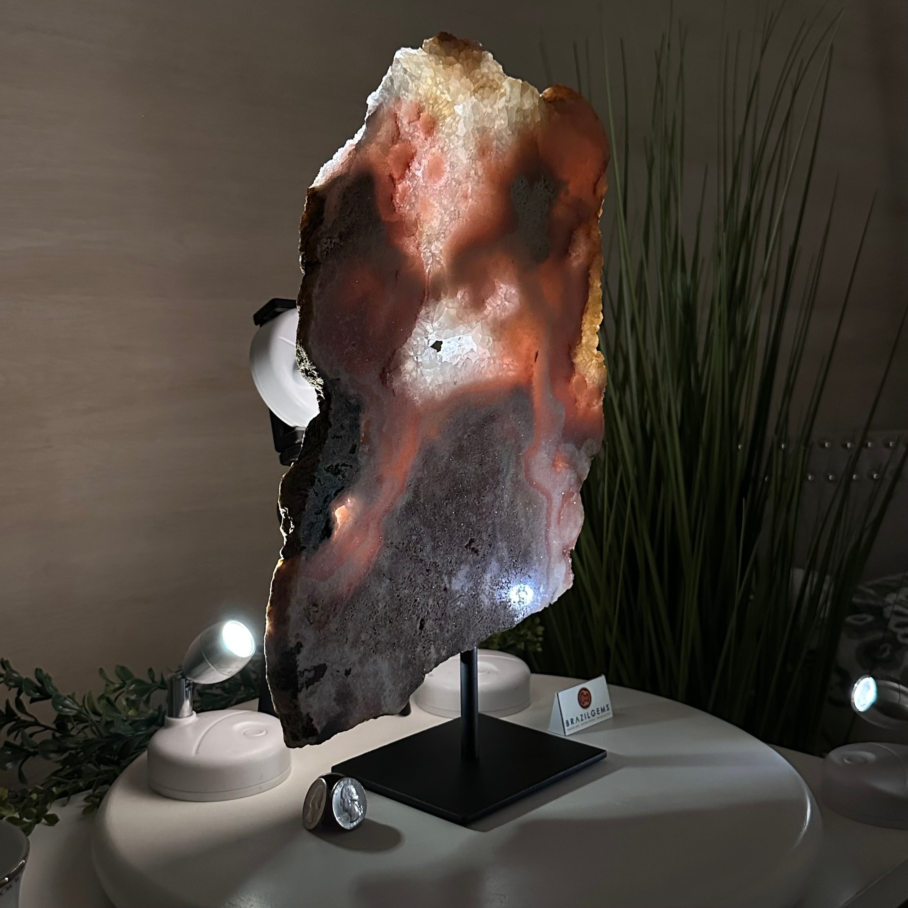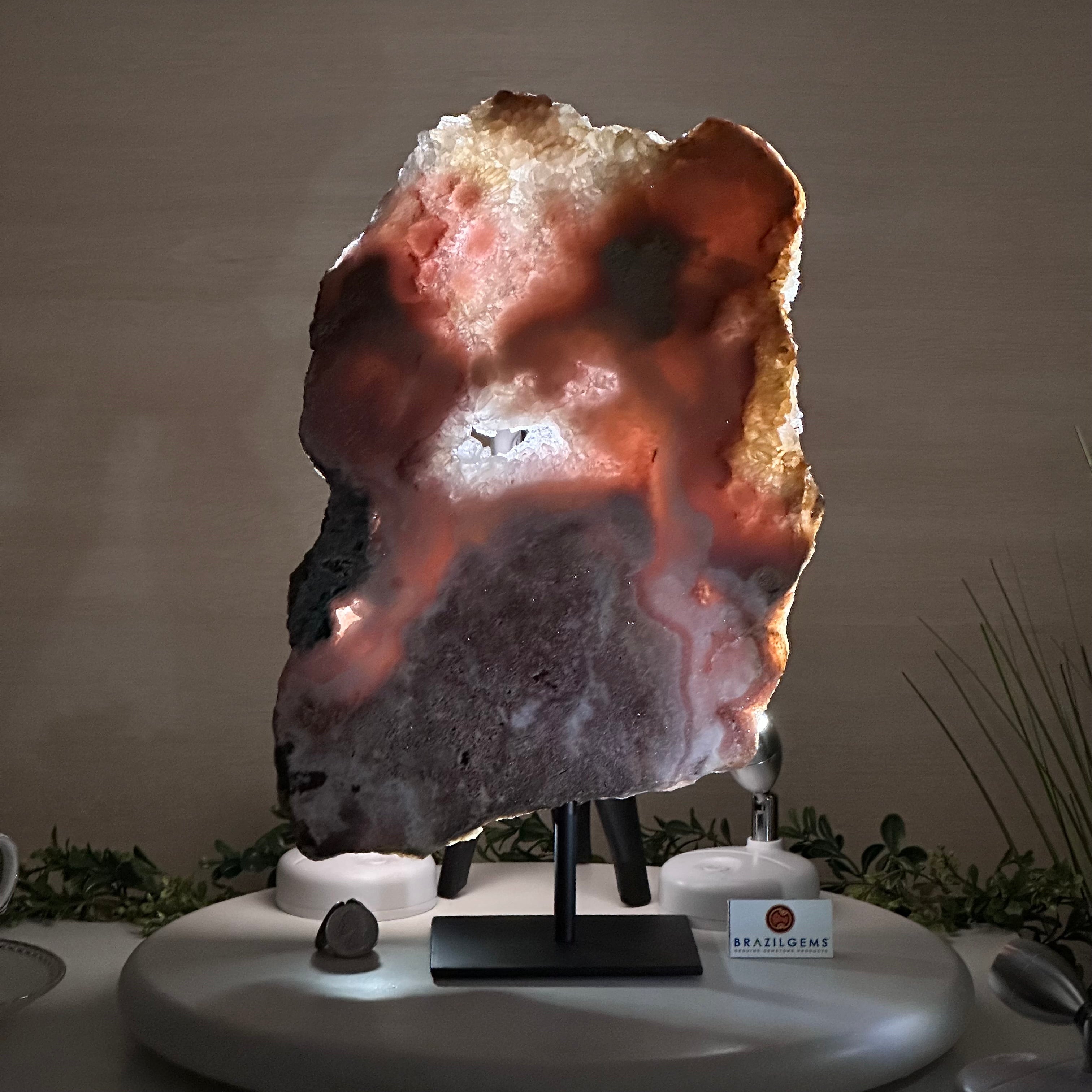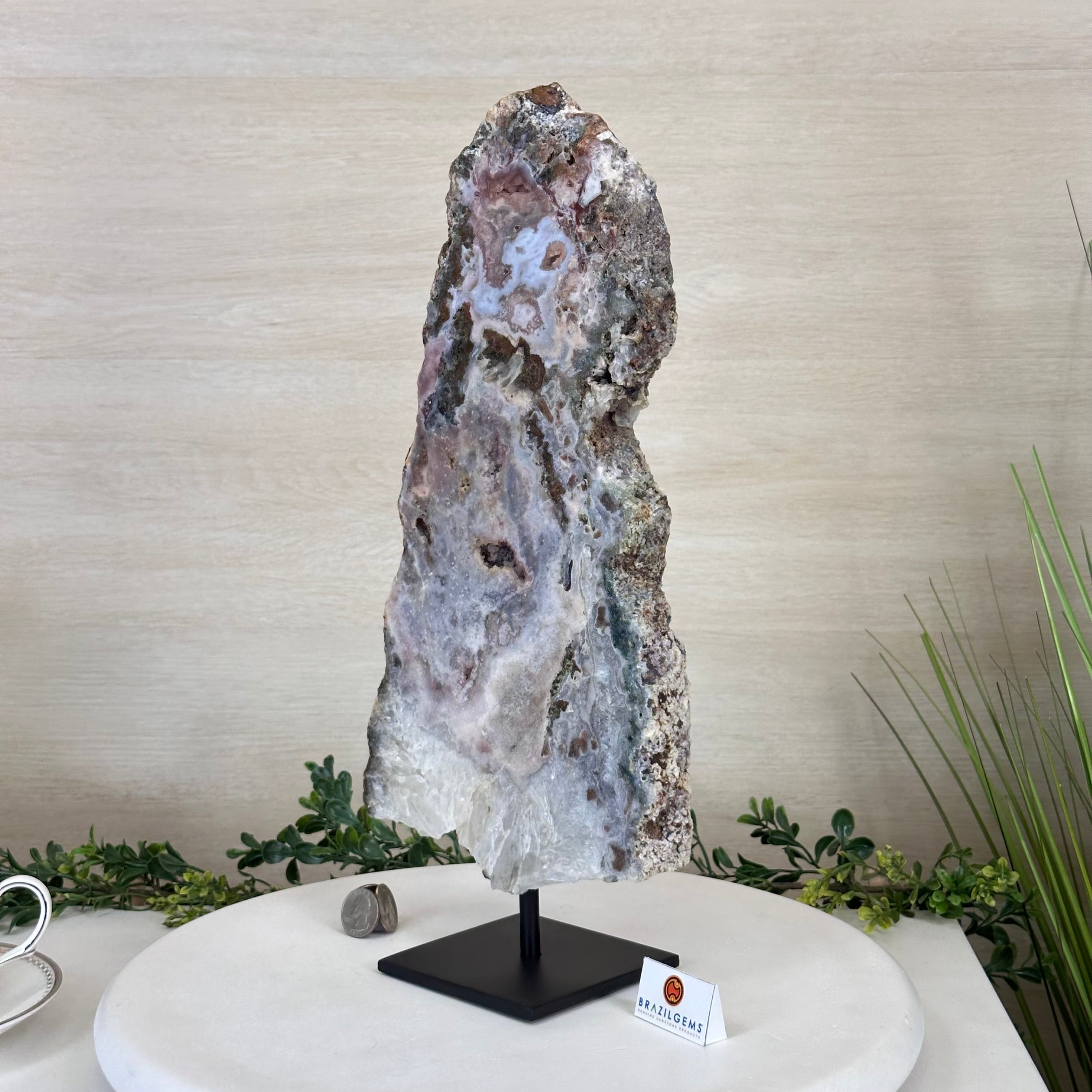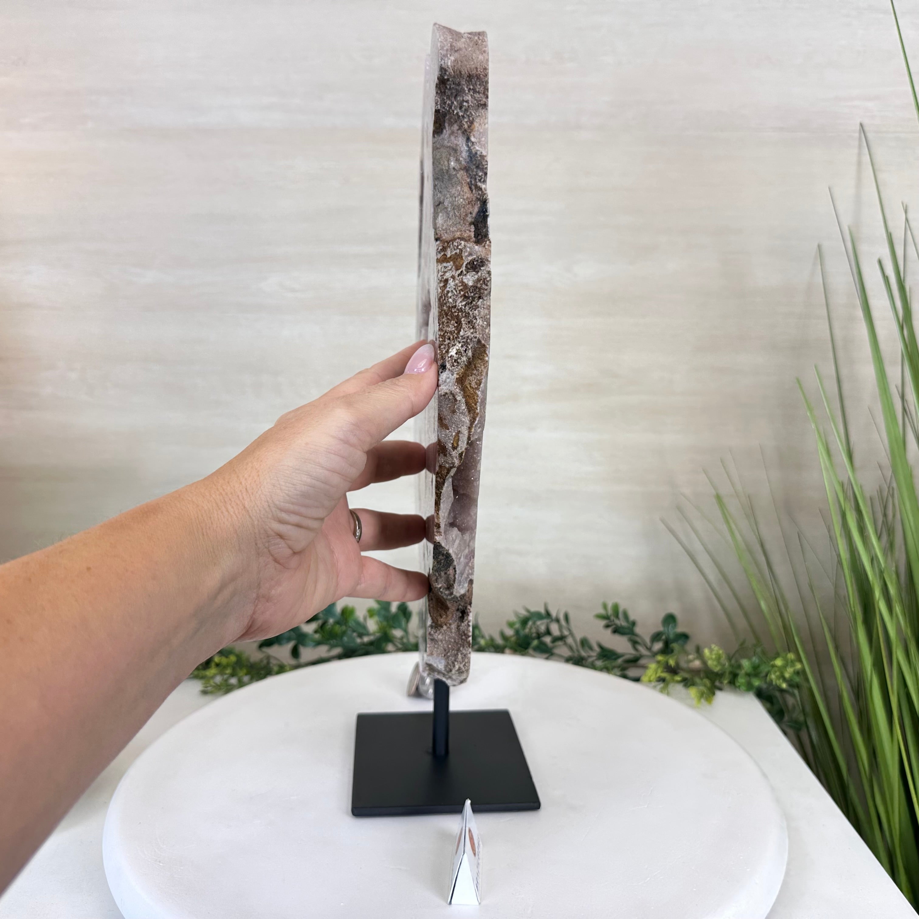 Natural Brazilian Pink Amethyst Slices on metal bases will accent the decor of your home or office. Discover our collection of Pink Amethyst Slices.