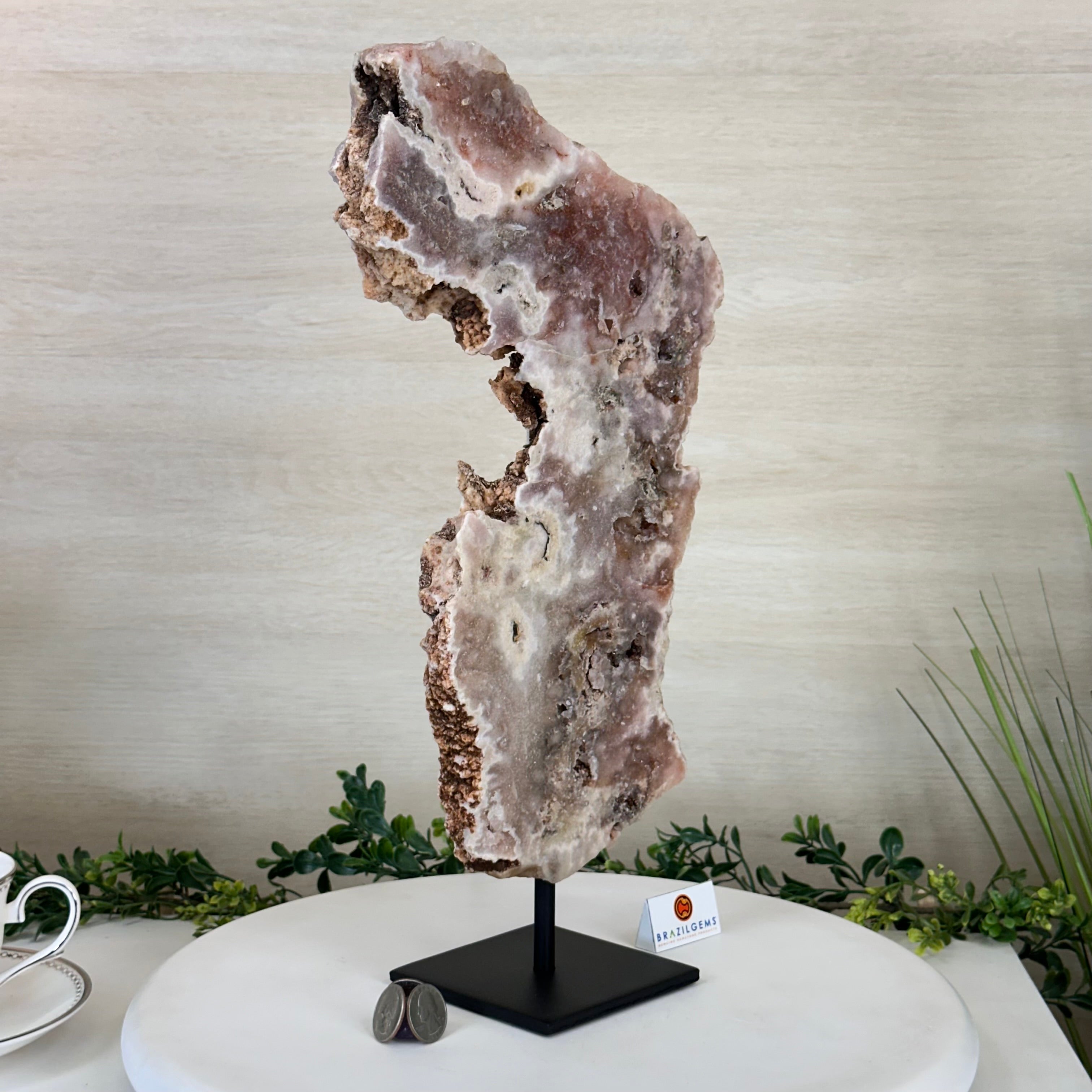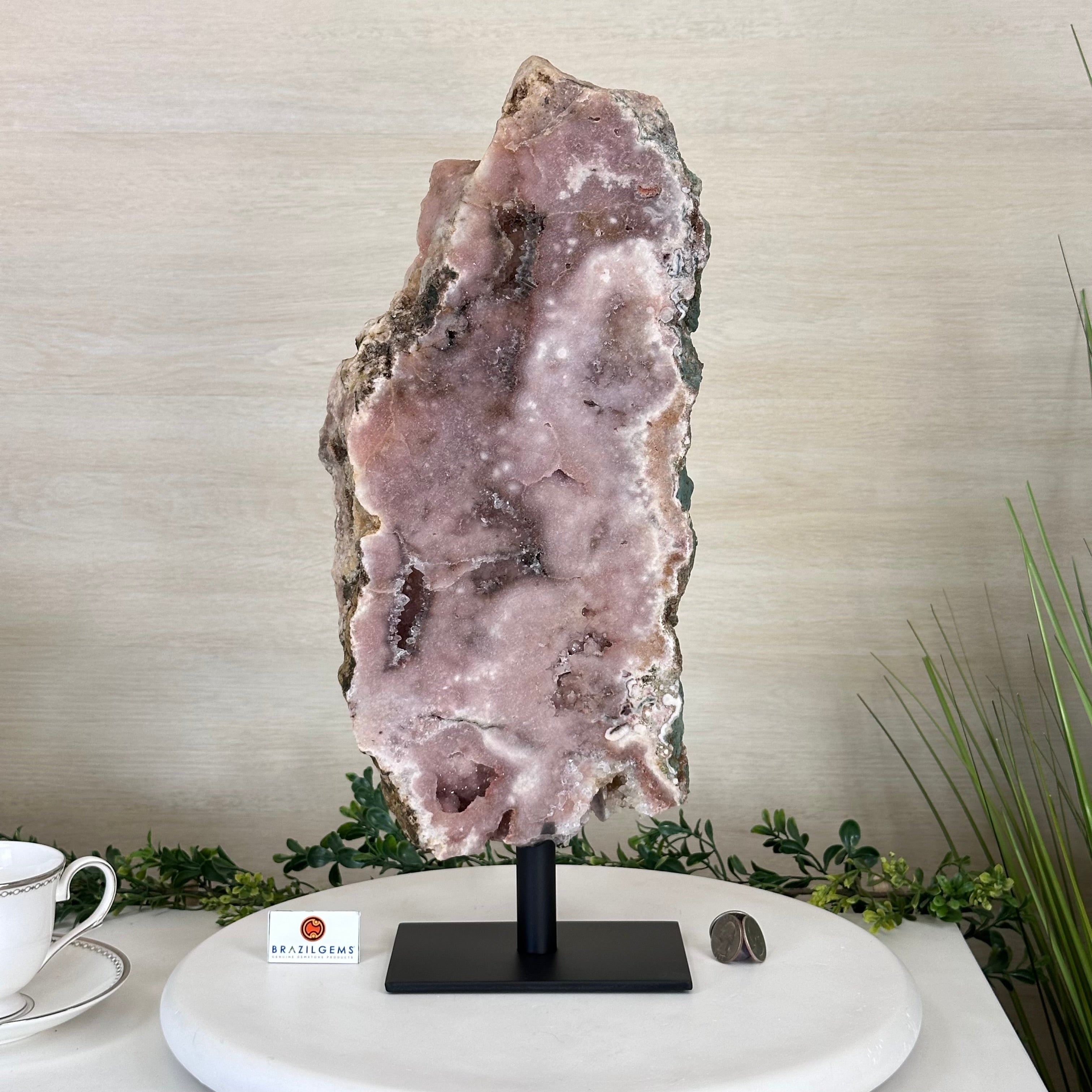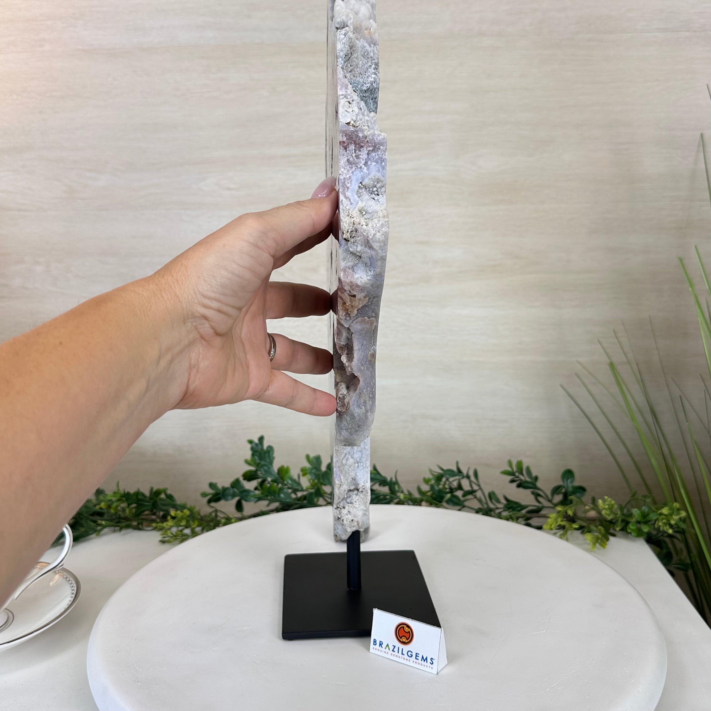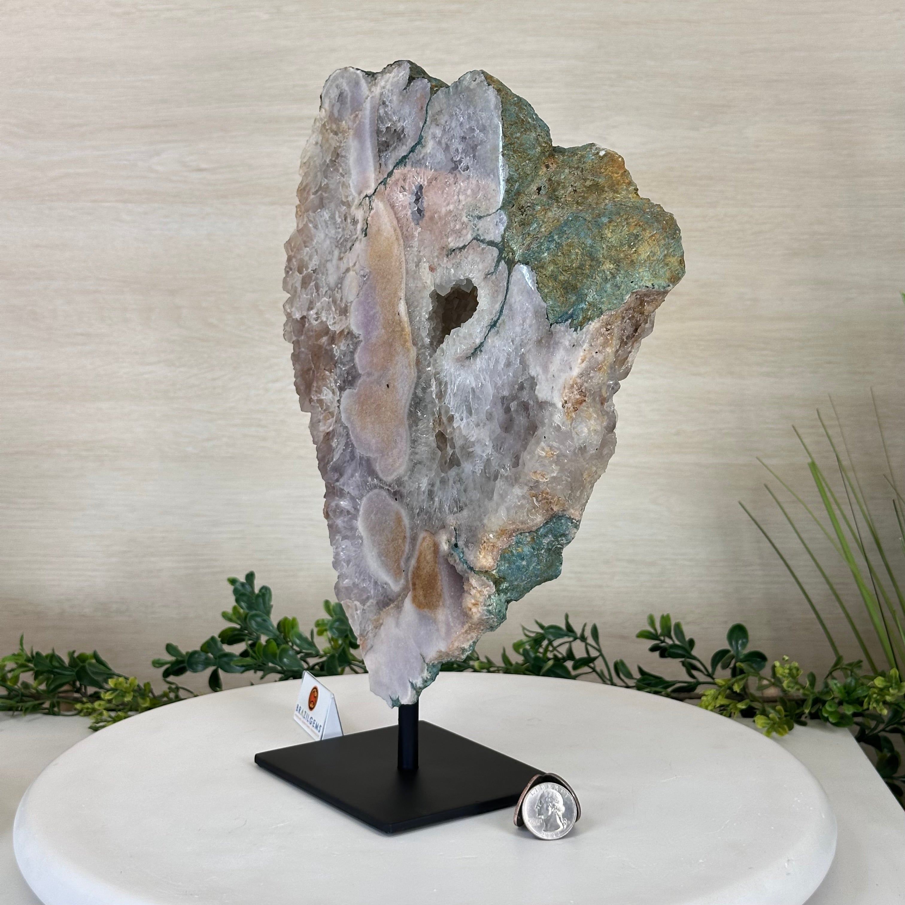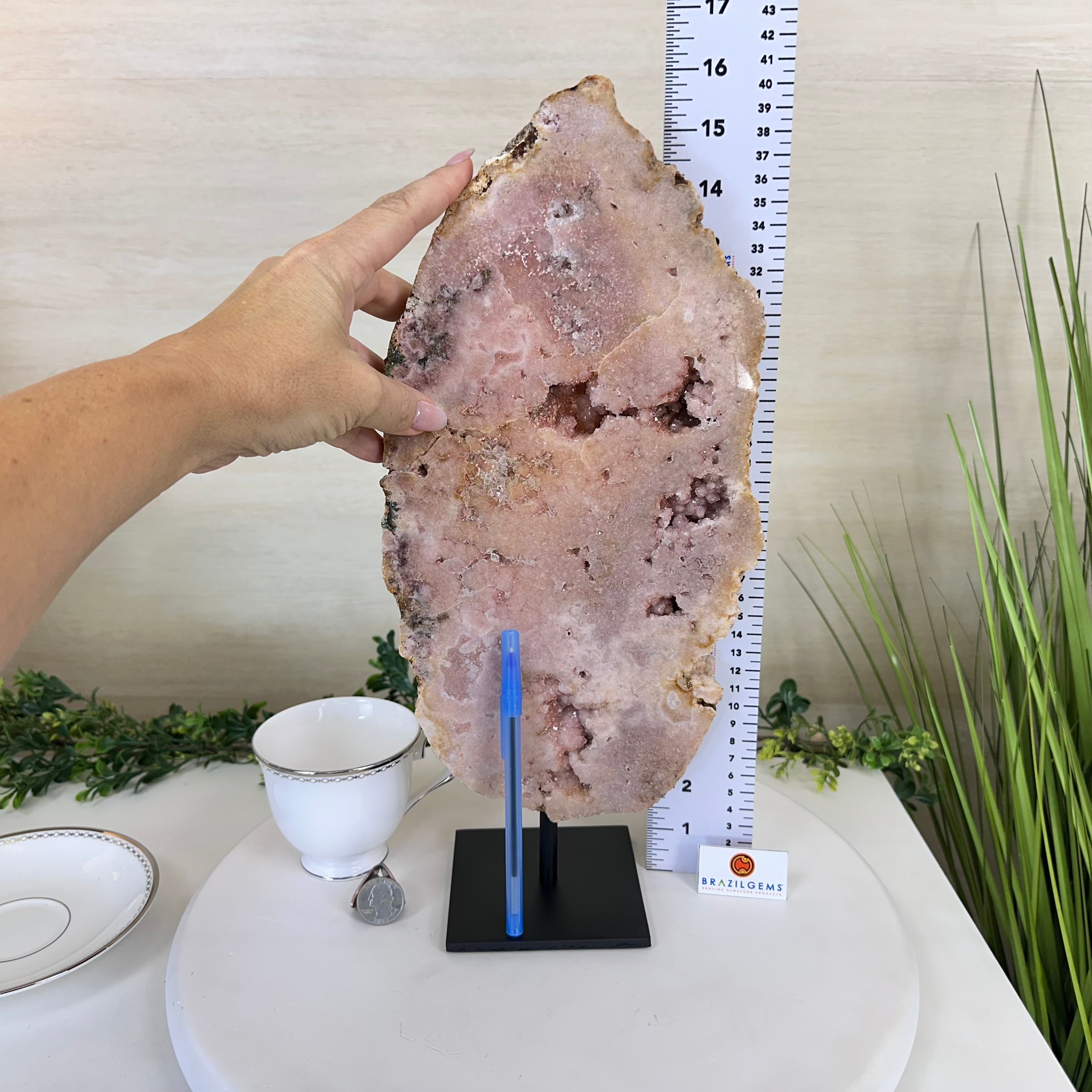 Natural Brazilian Pink Amethyst Slices on metal bases will accent the decor of your home or office. Discover our collection of Pink Amethyst Slices.