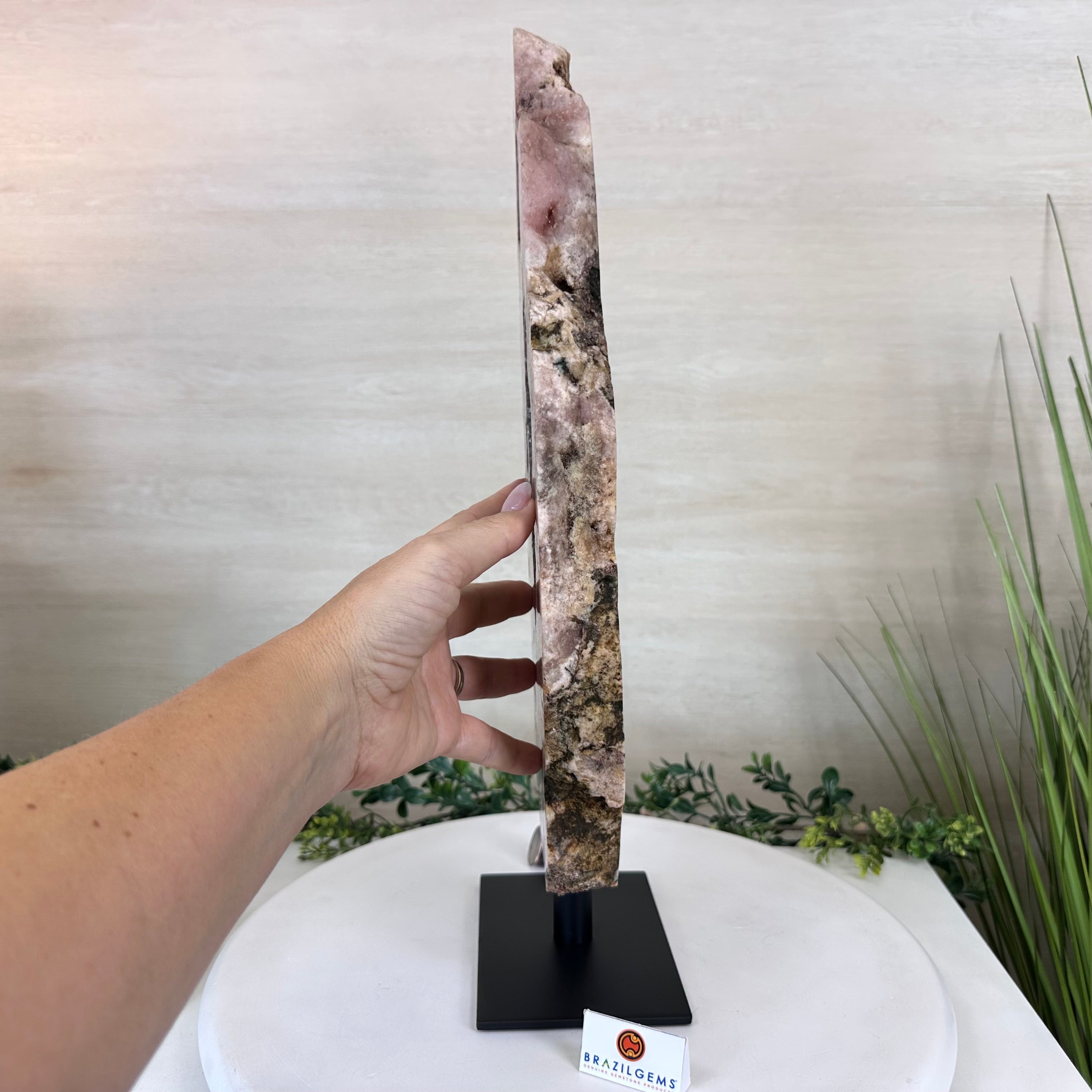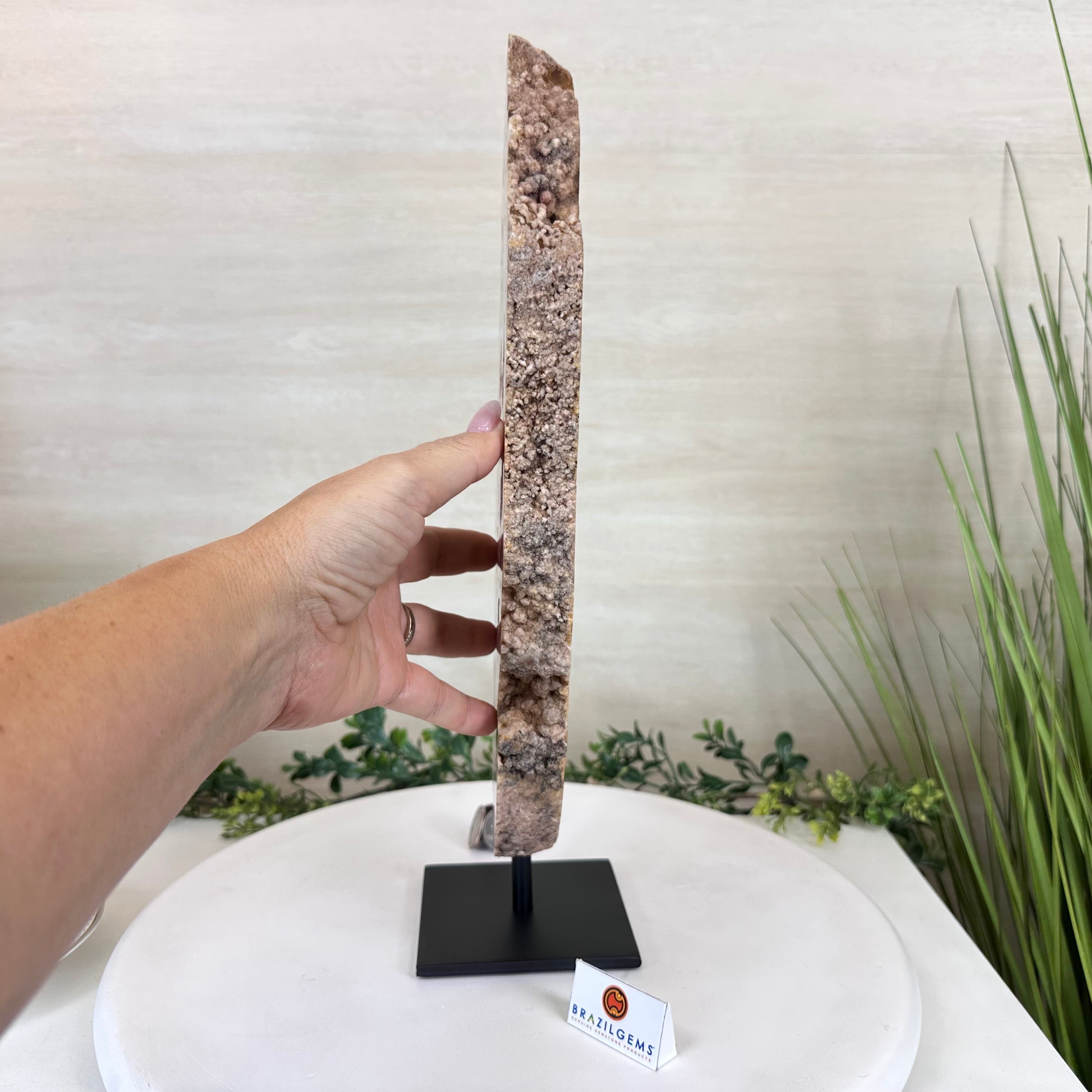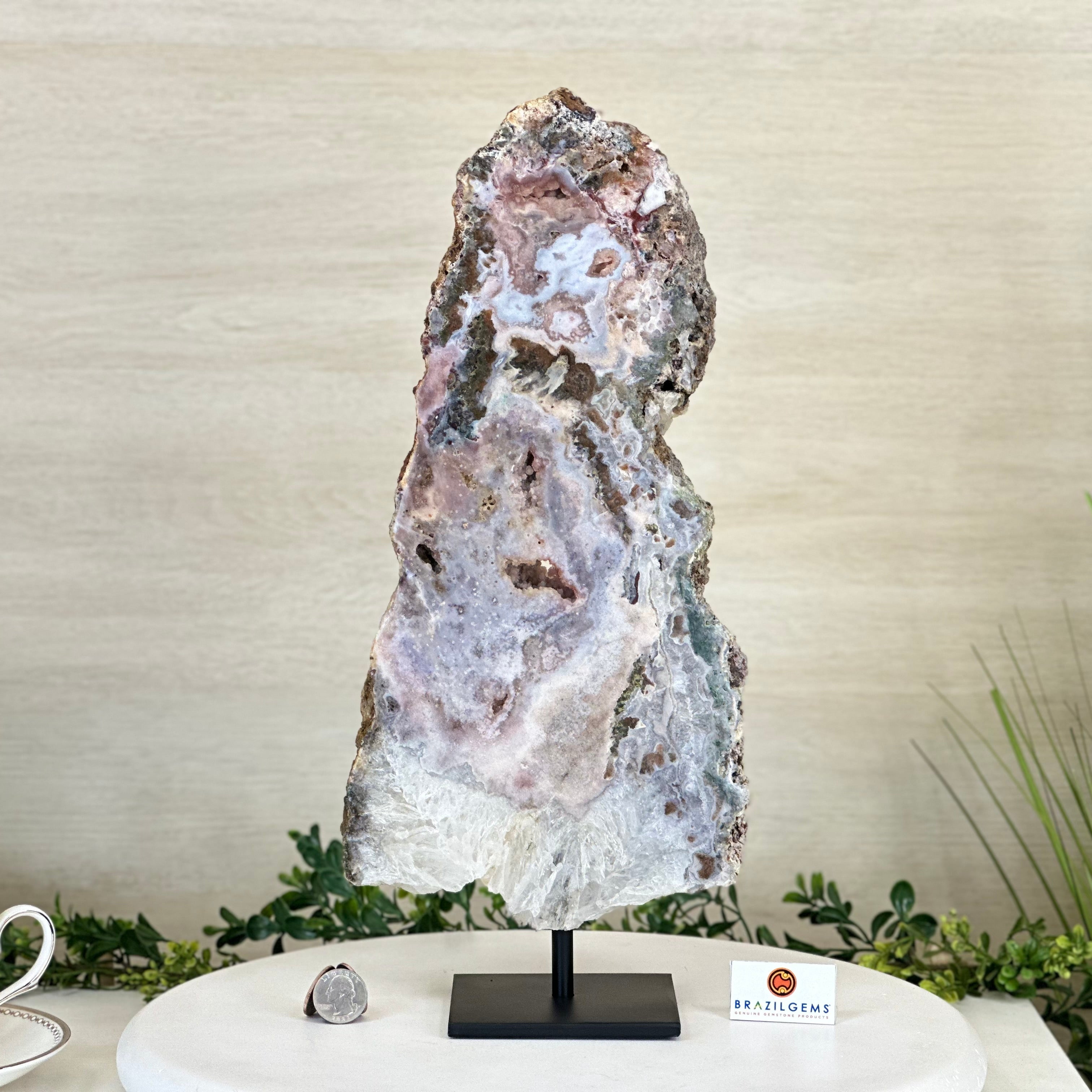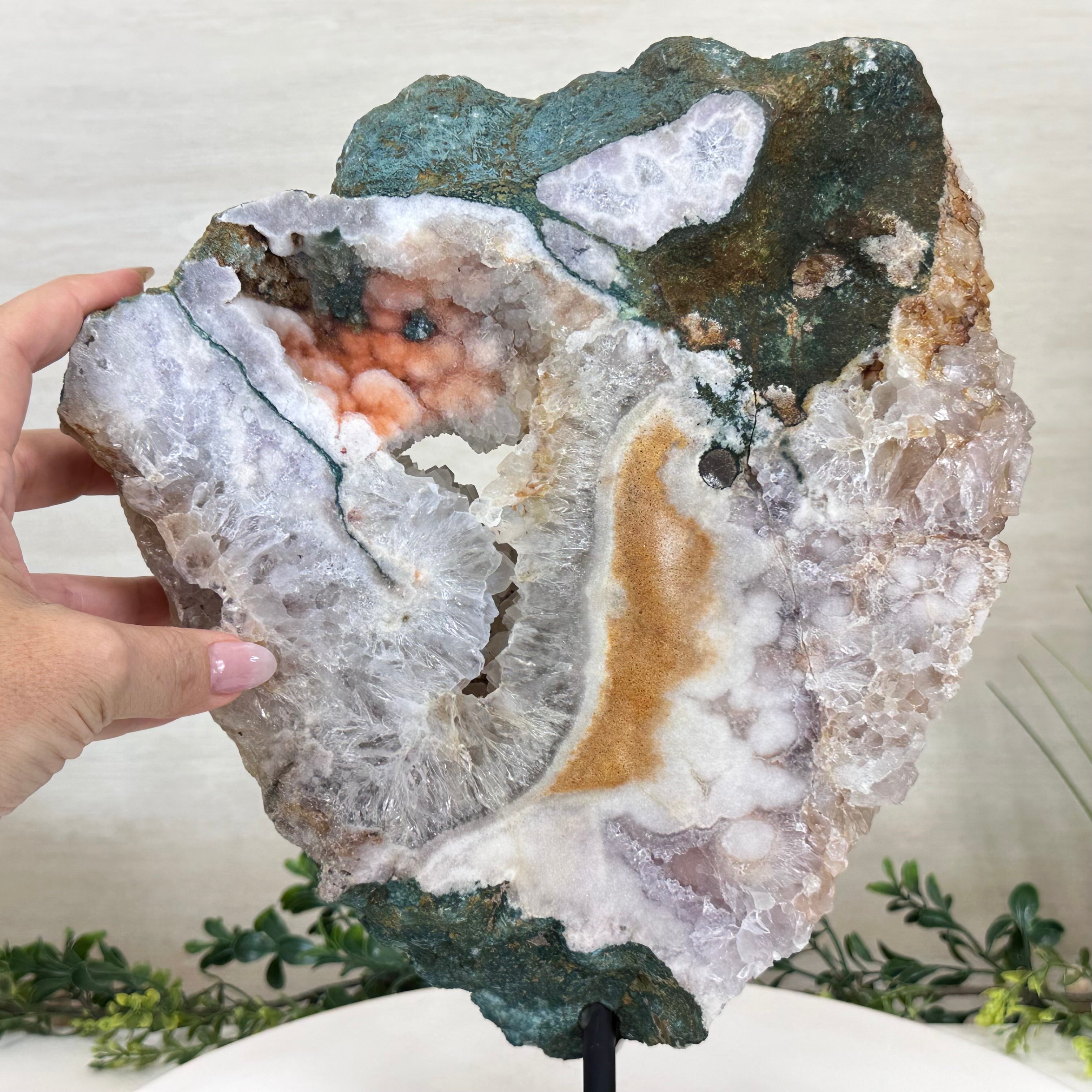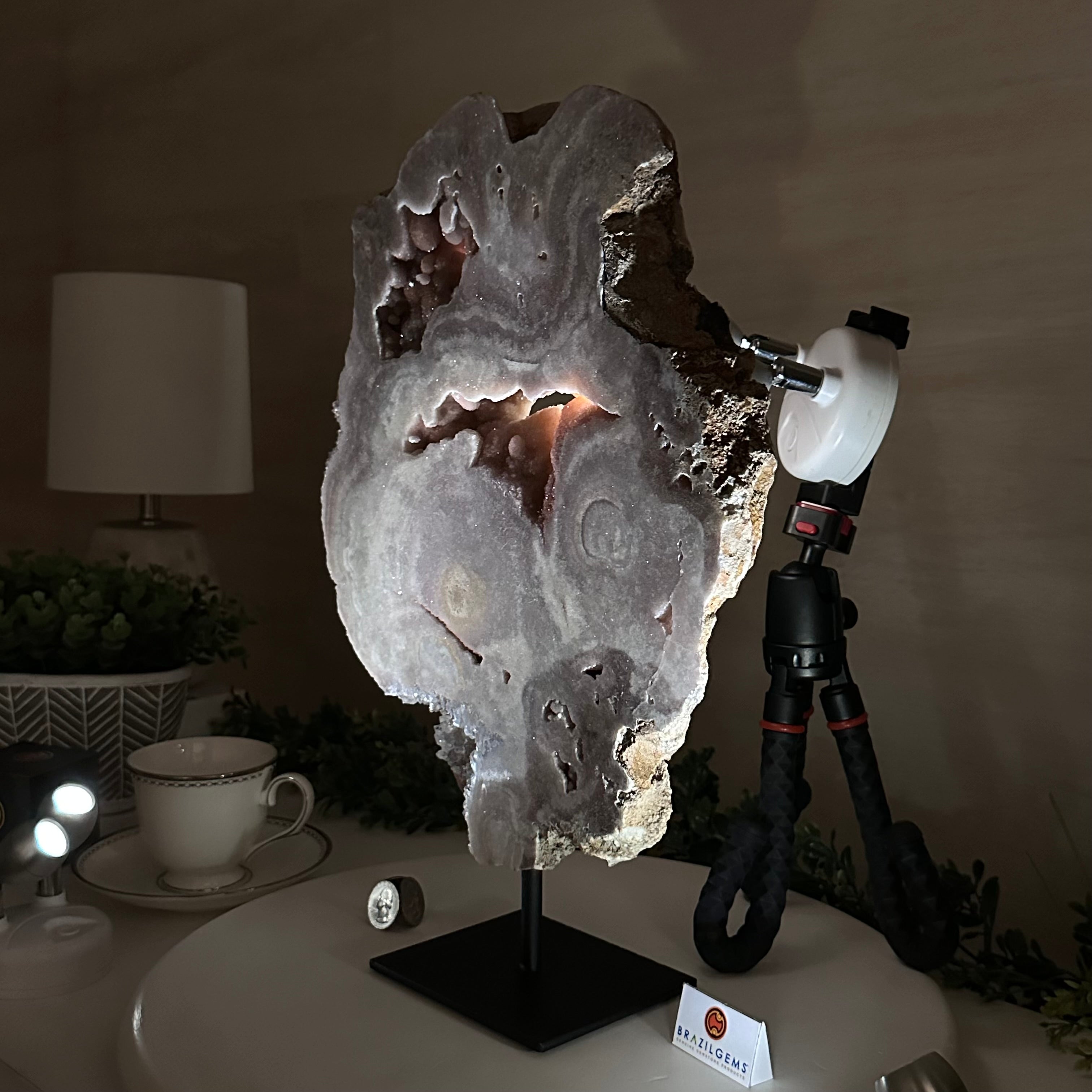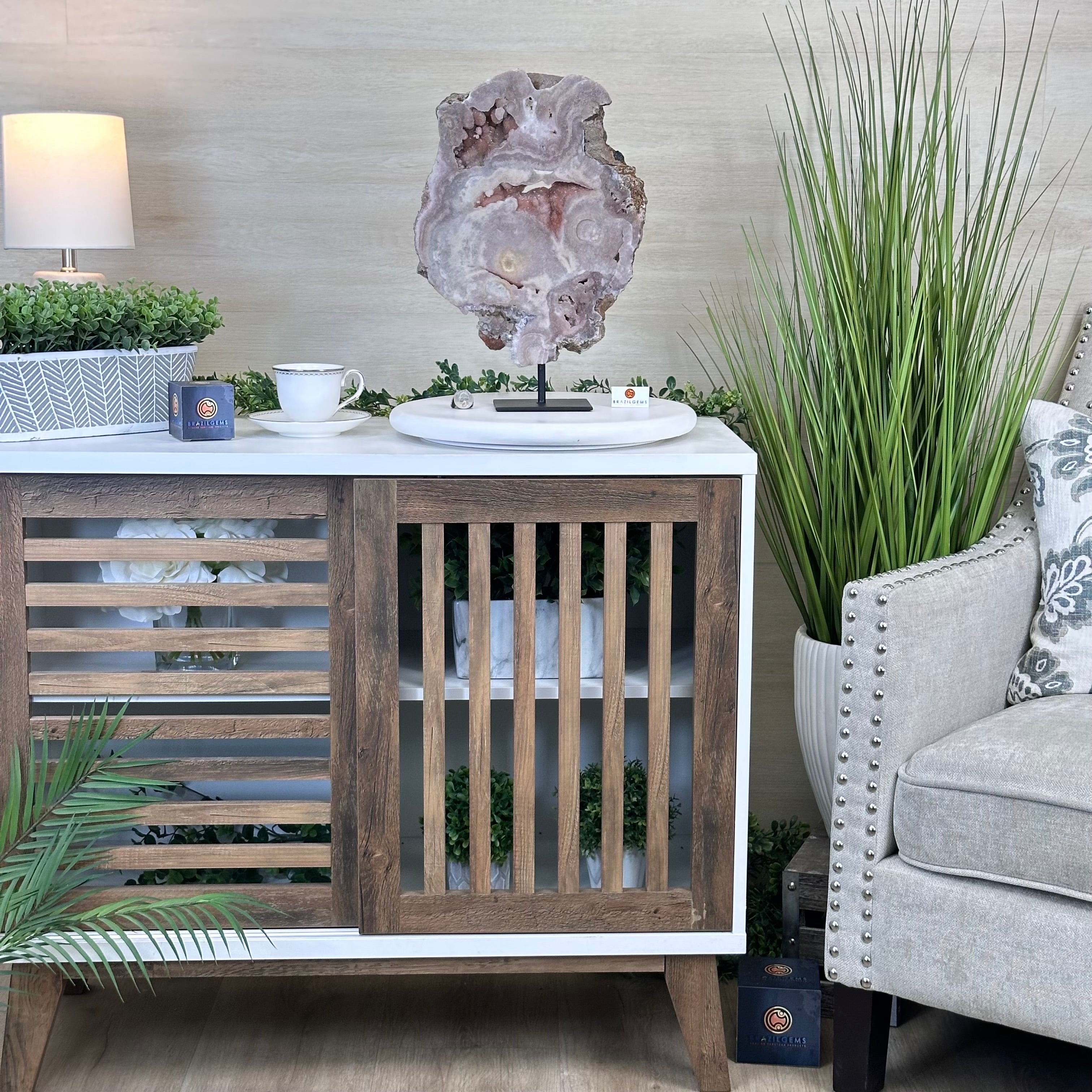 Natural Brazilian Pink Amethyst Slices on metal bases will accent the decor of your home or office. Discover our collection of Pink Amethyst Slices.