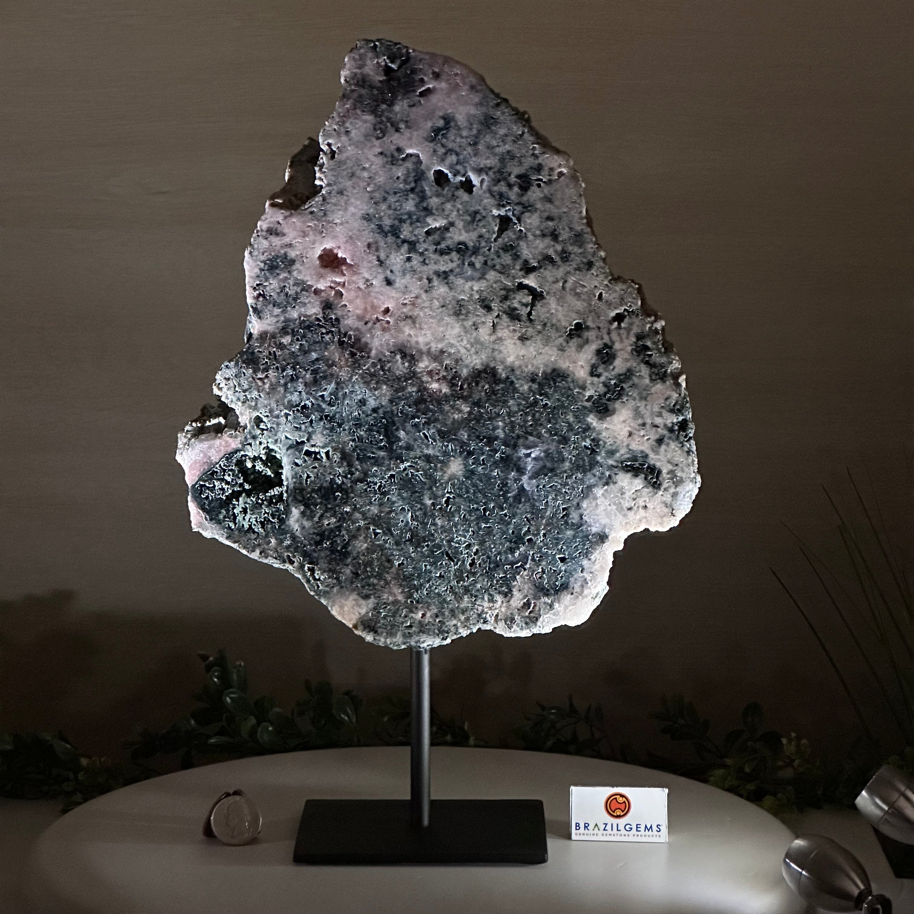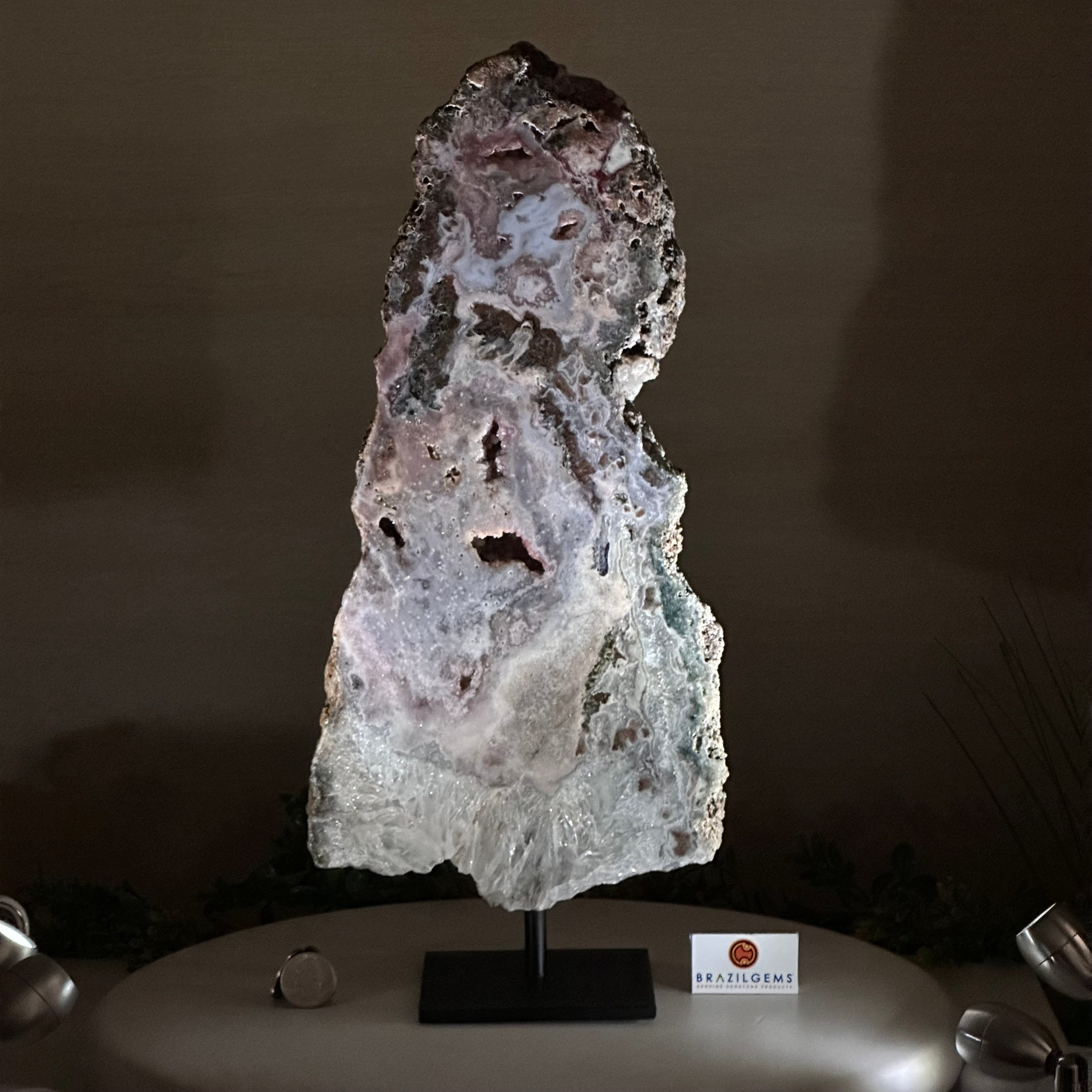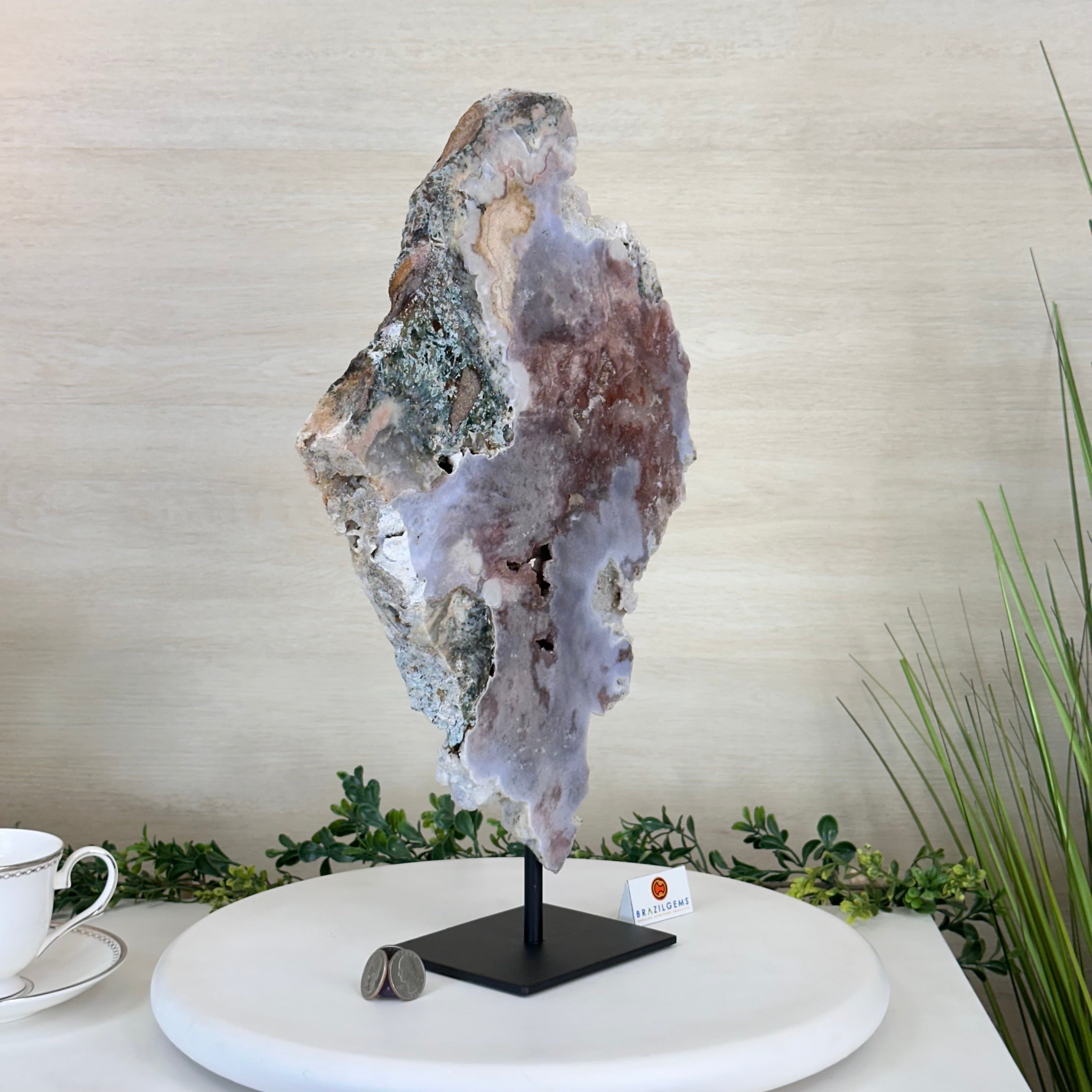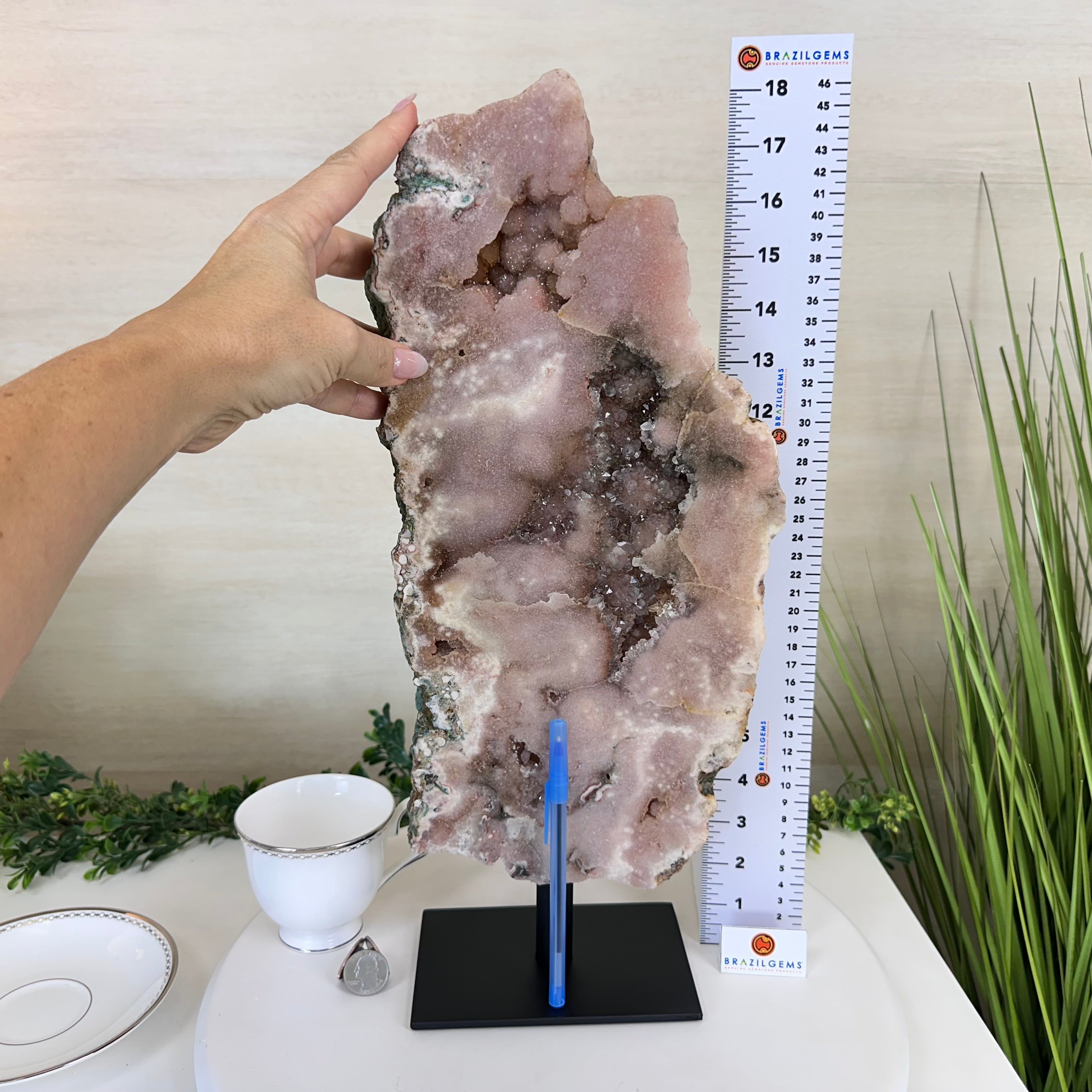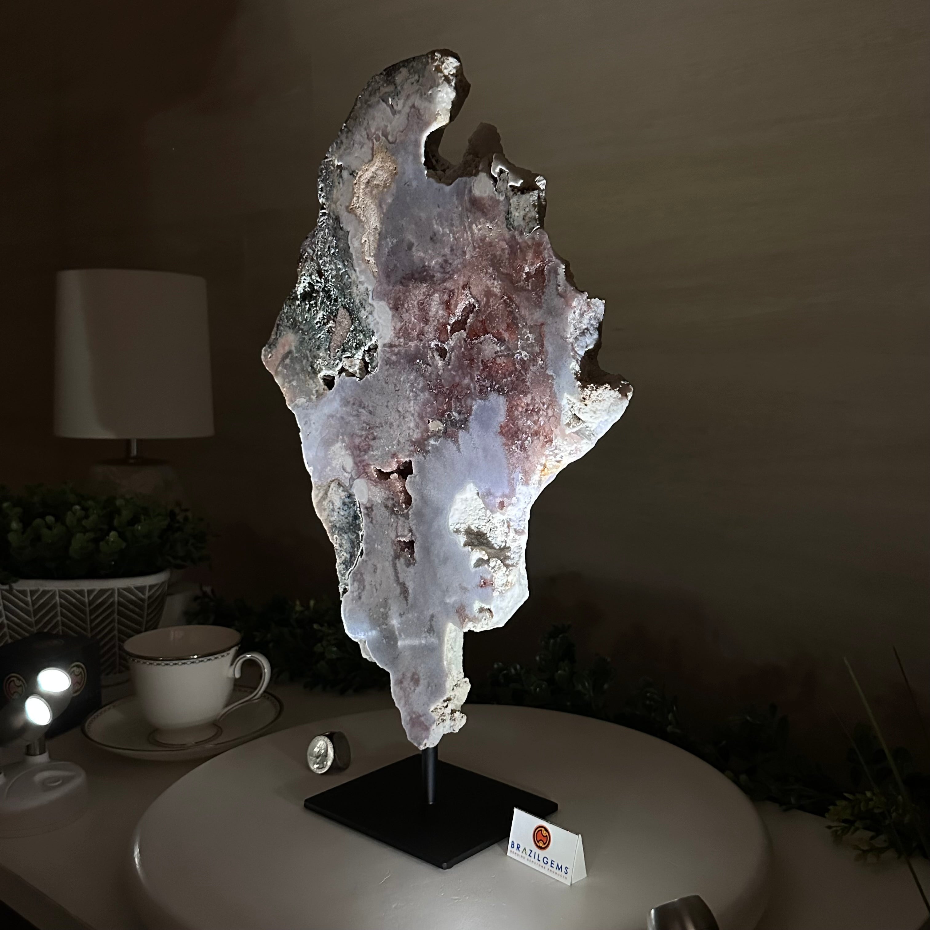 Natural Brazilian Pink Amethyst Slices on metal bases will accent the decor of your home or office. Discover our collection of Pink Amethyst Slices.