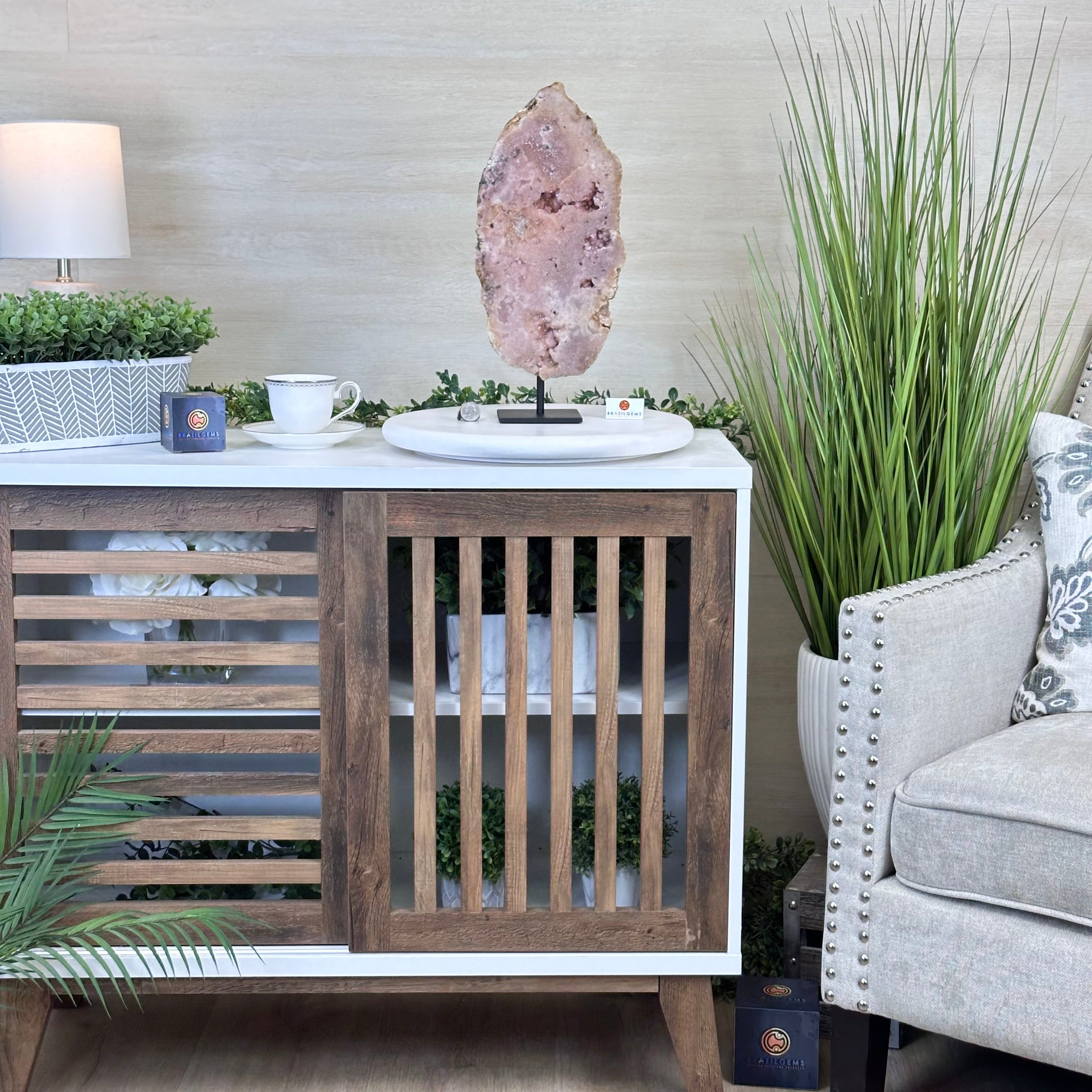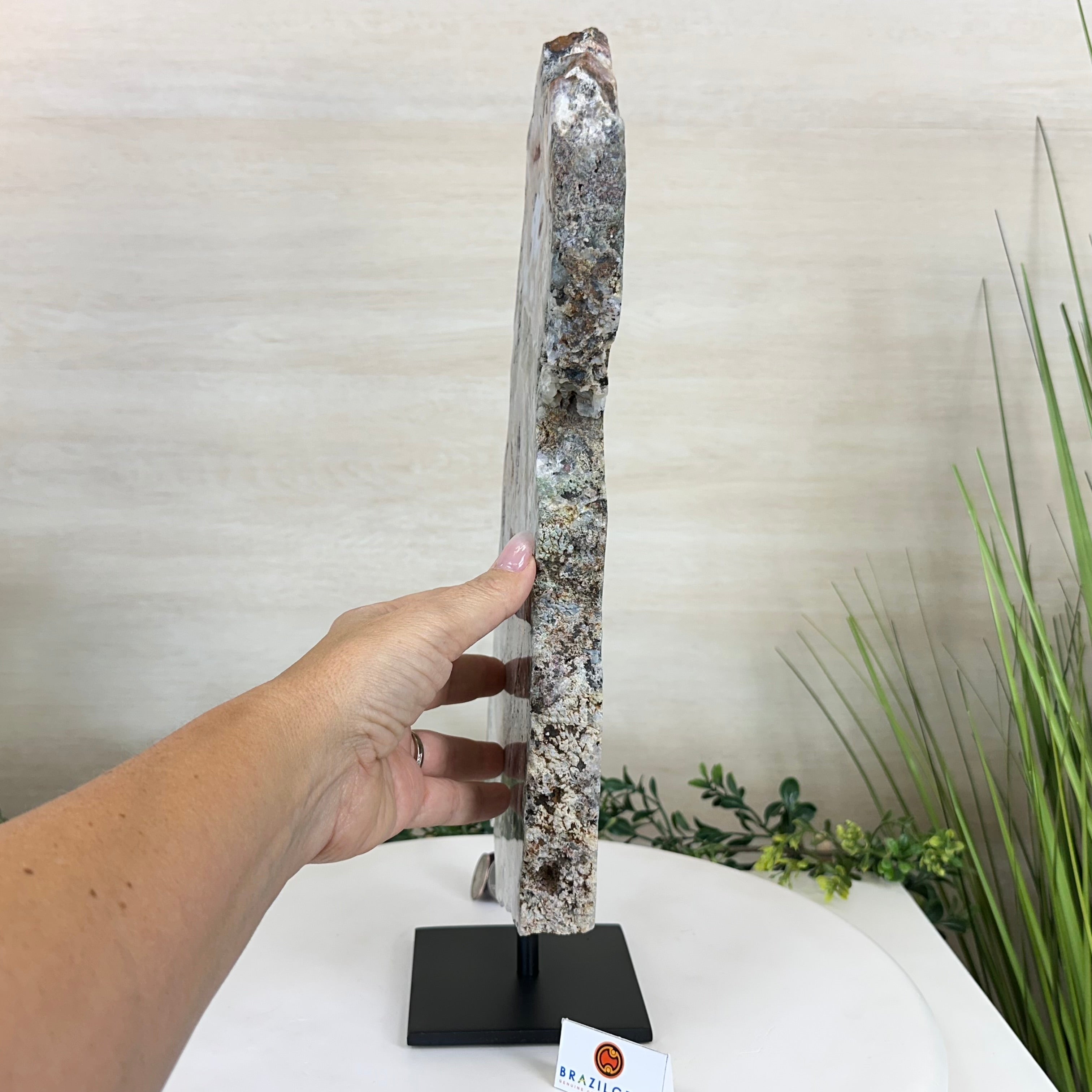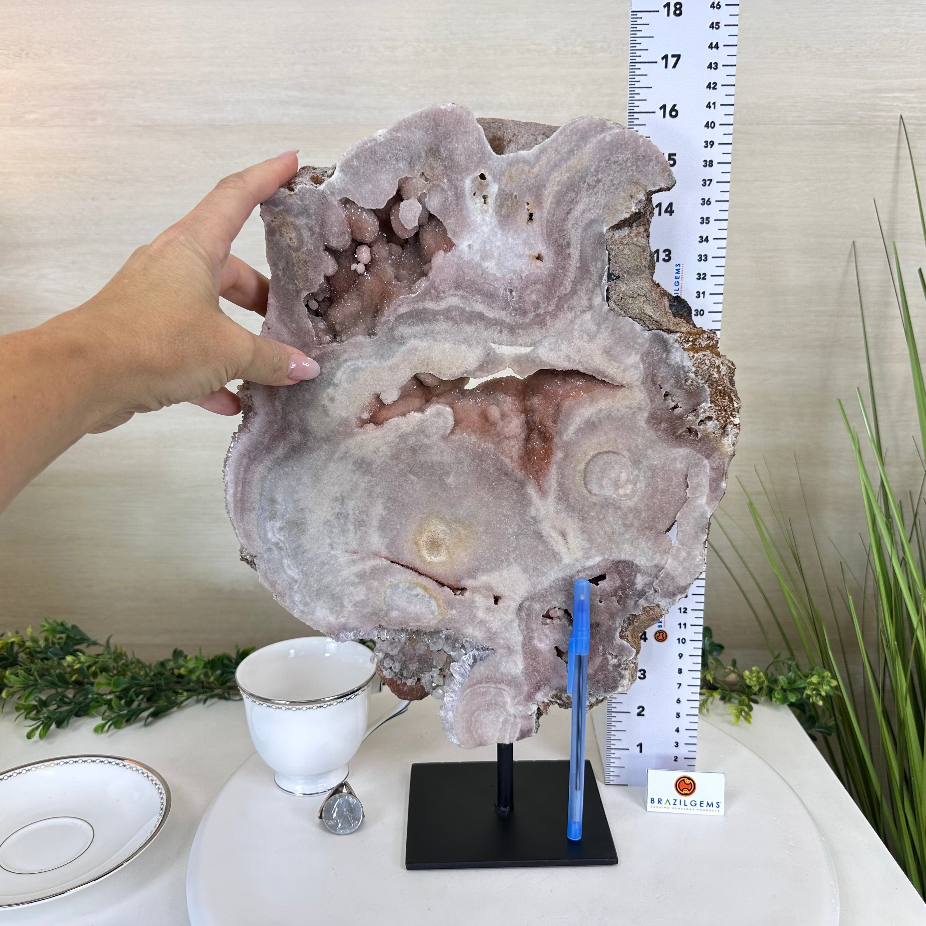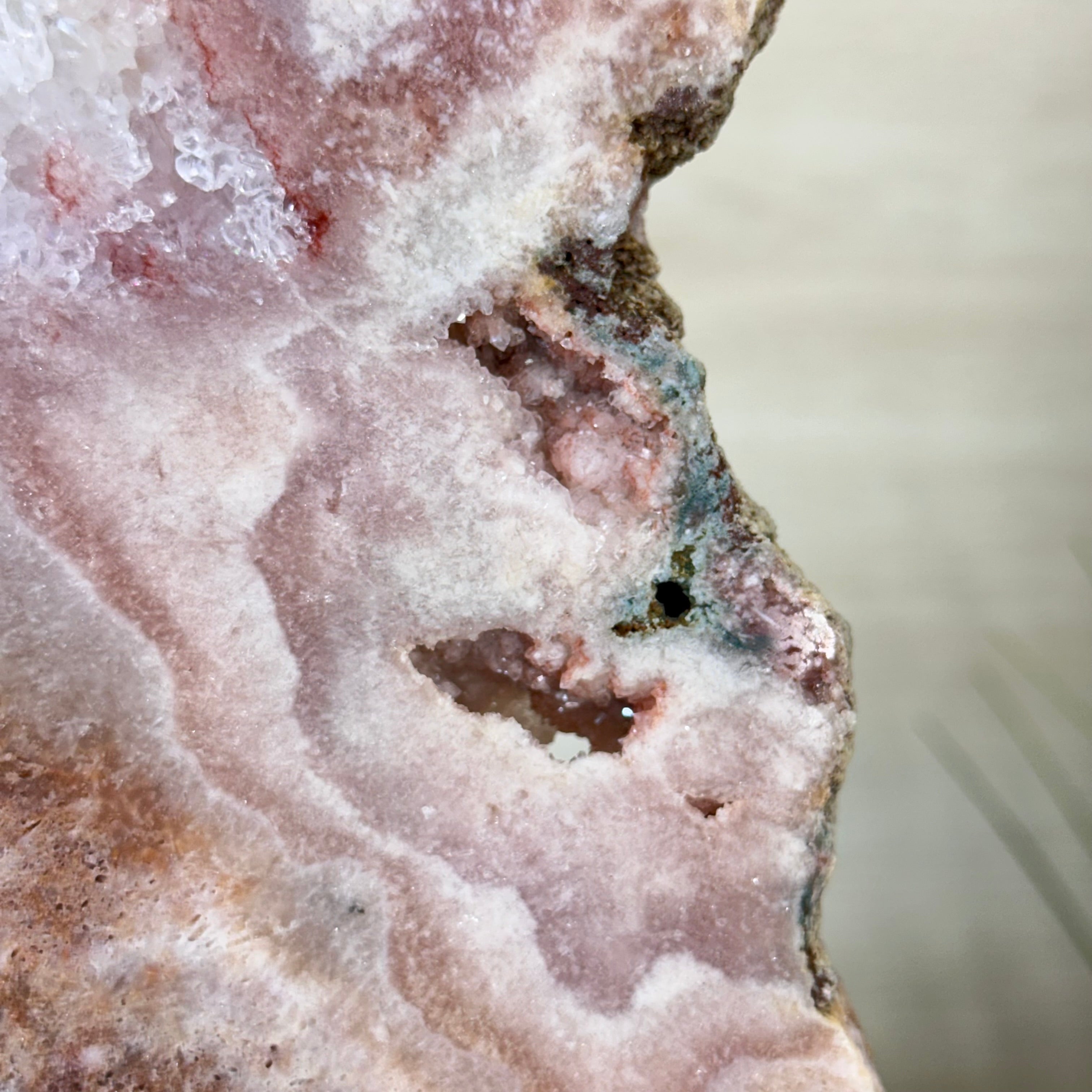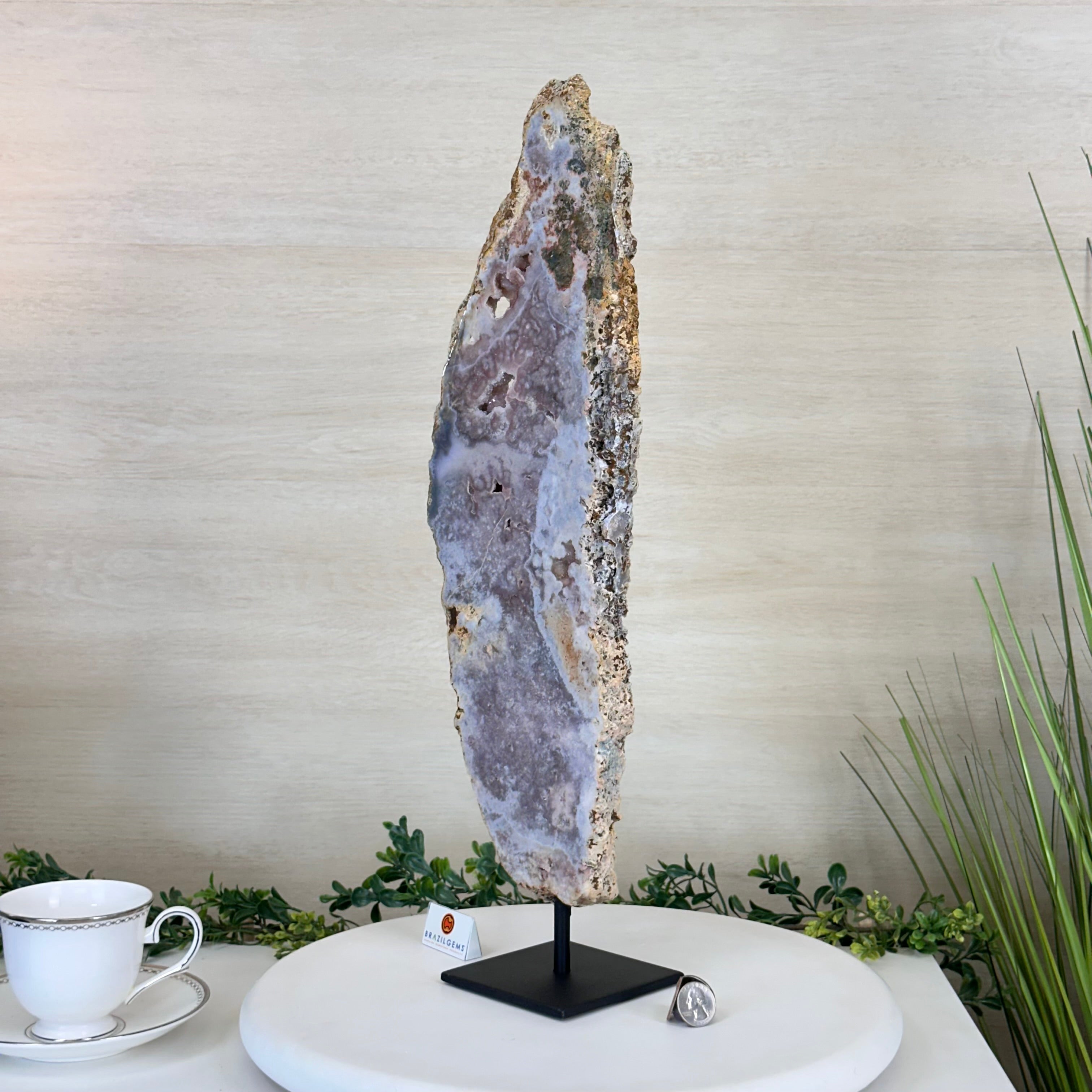 Natural Brazilian Pink Amethyst Slices on metal bases will accent the decor of your home or office. Discover our collection of Pink Amethyst Slices.