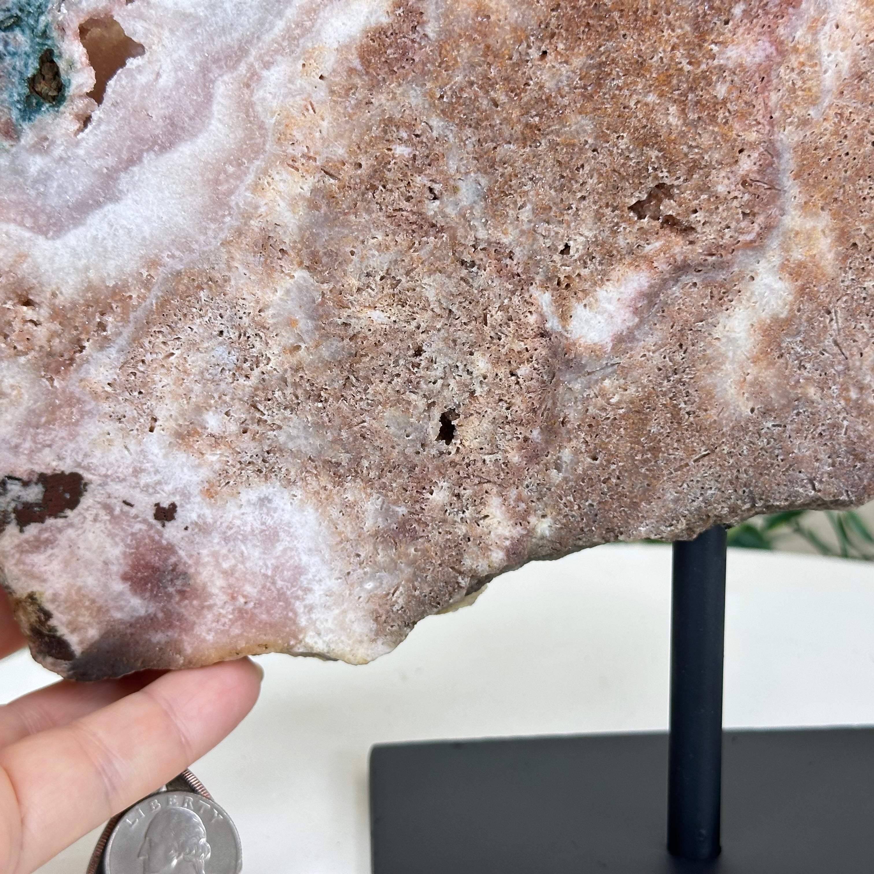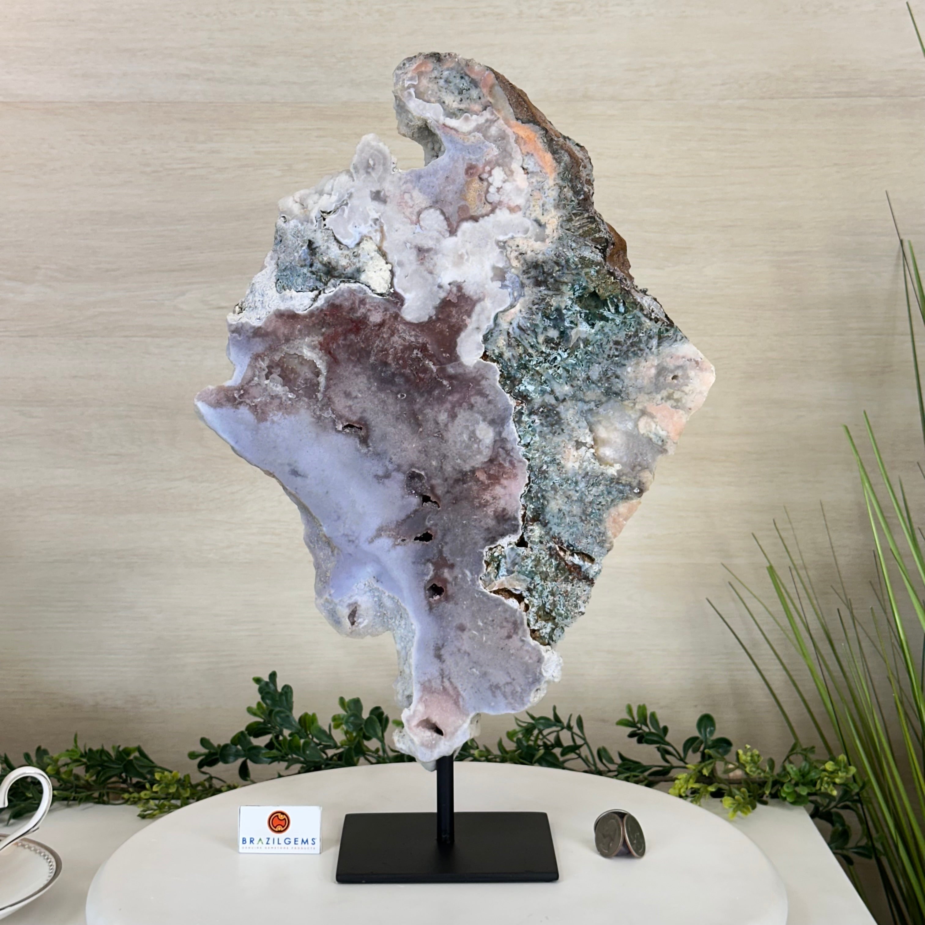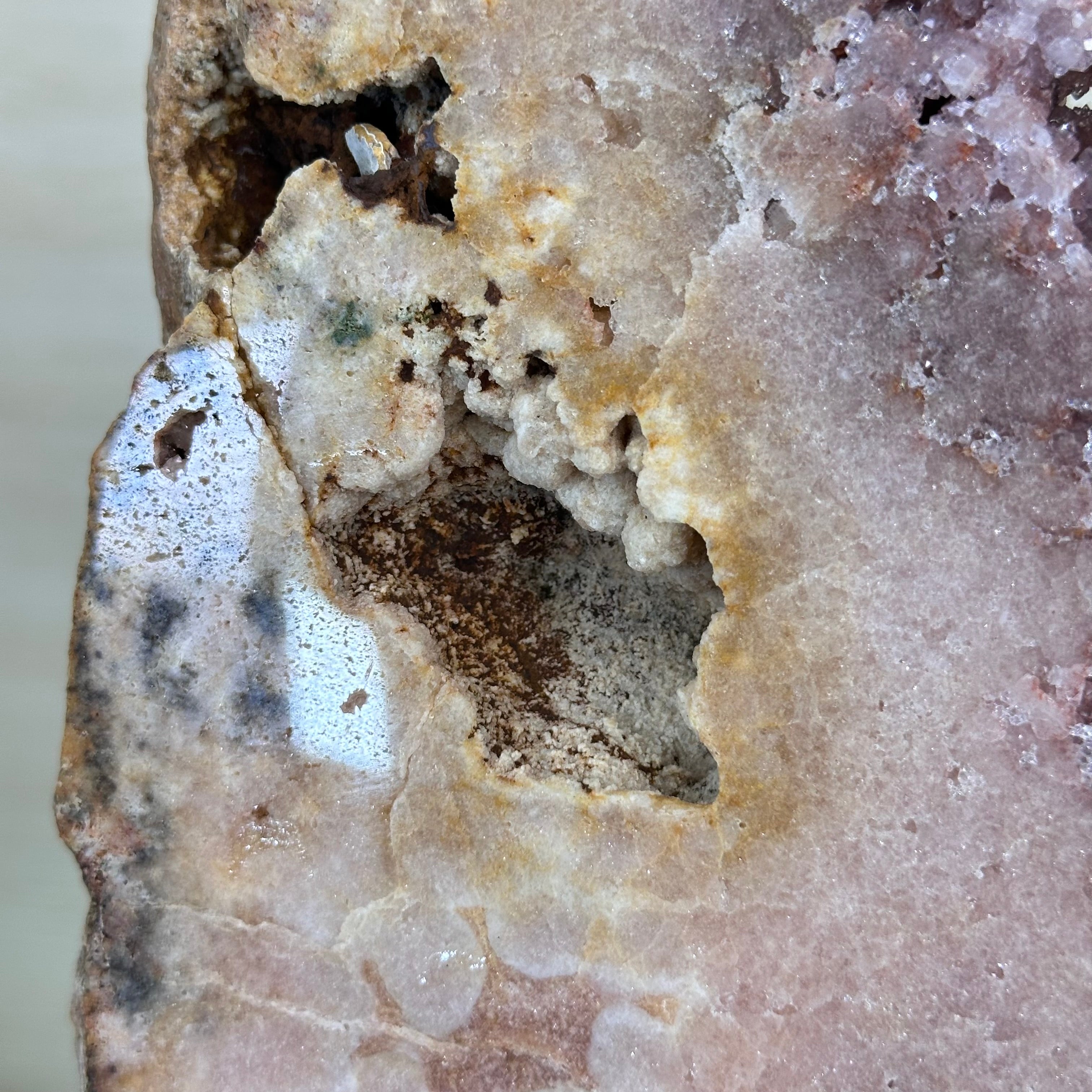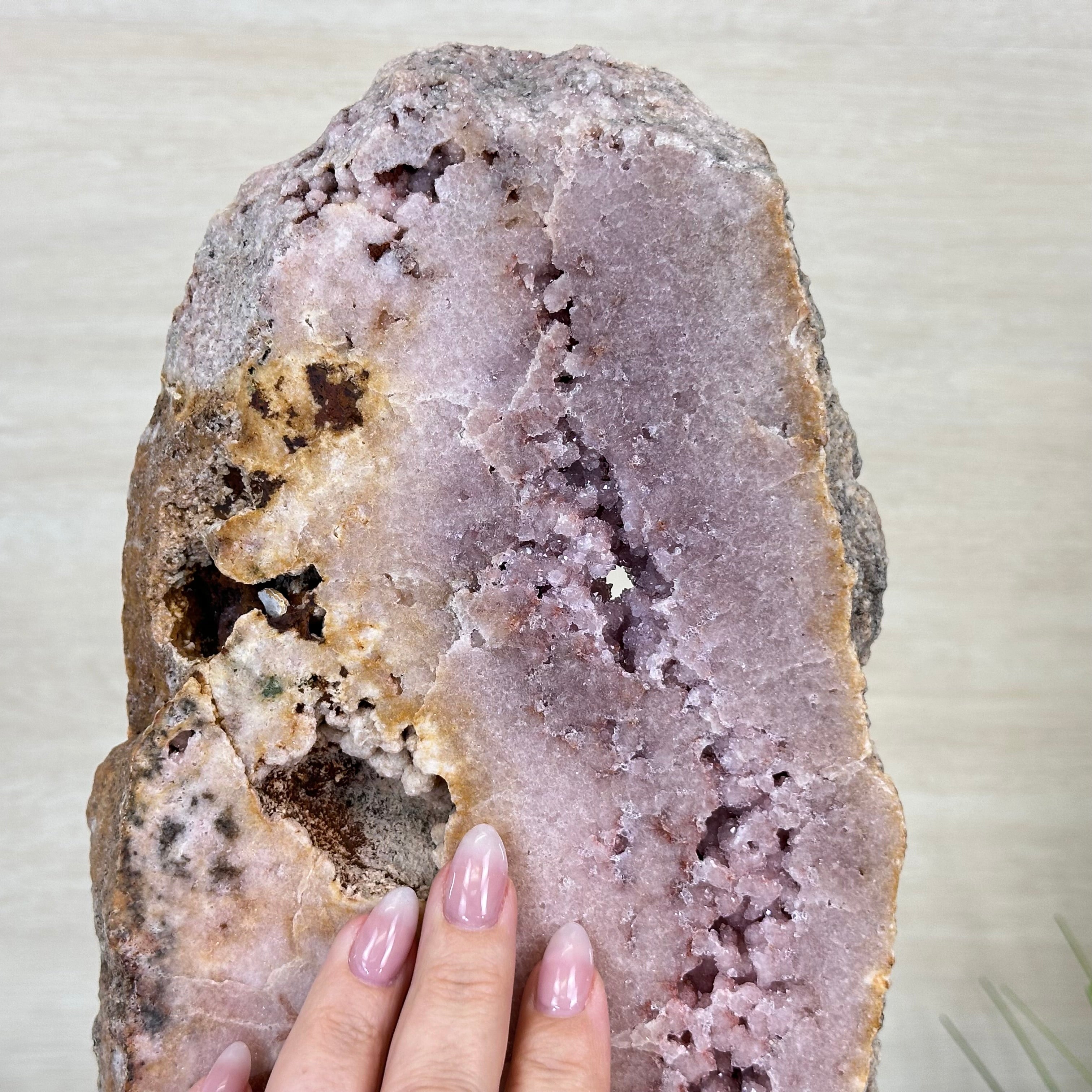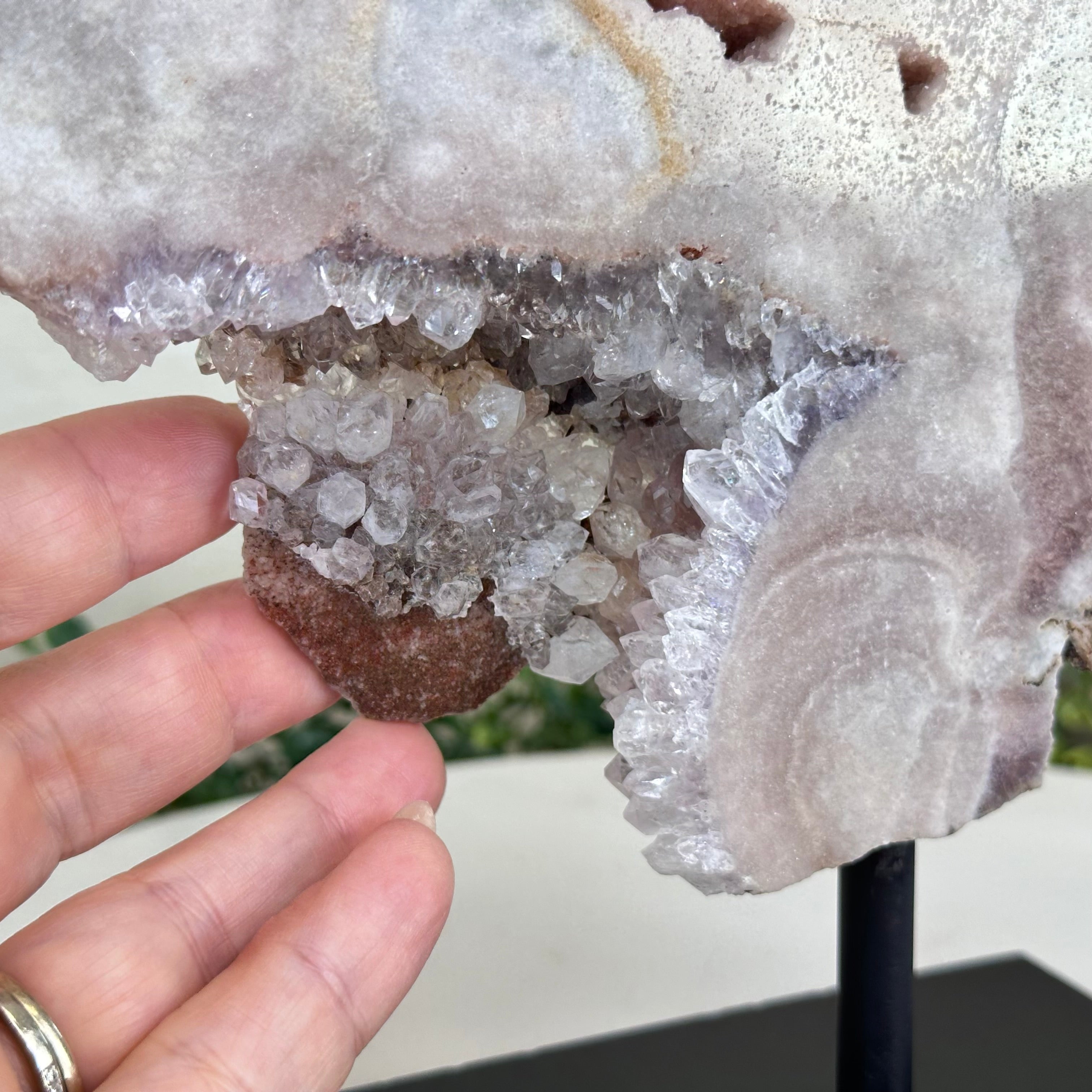 Natural Brazilian Pink Amethyst Slices on metal bases will accent the decor of your home or office. Discover our collection of Pink Amethyst Slices.
