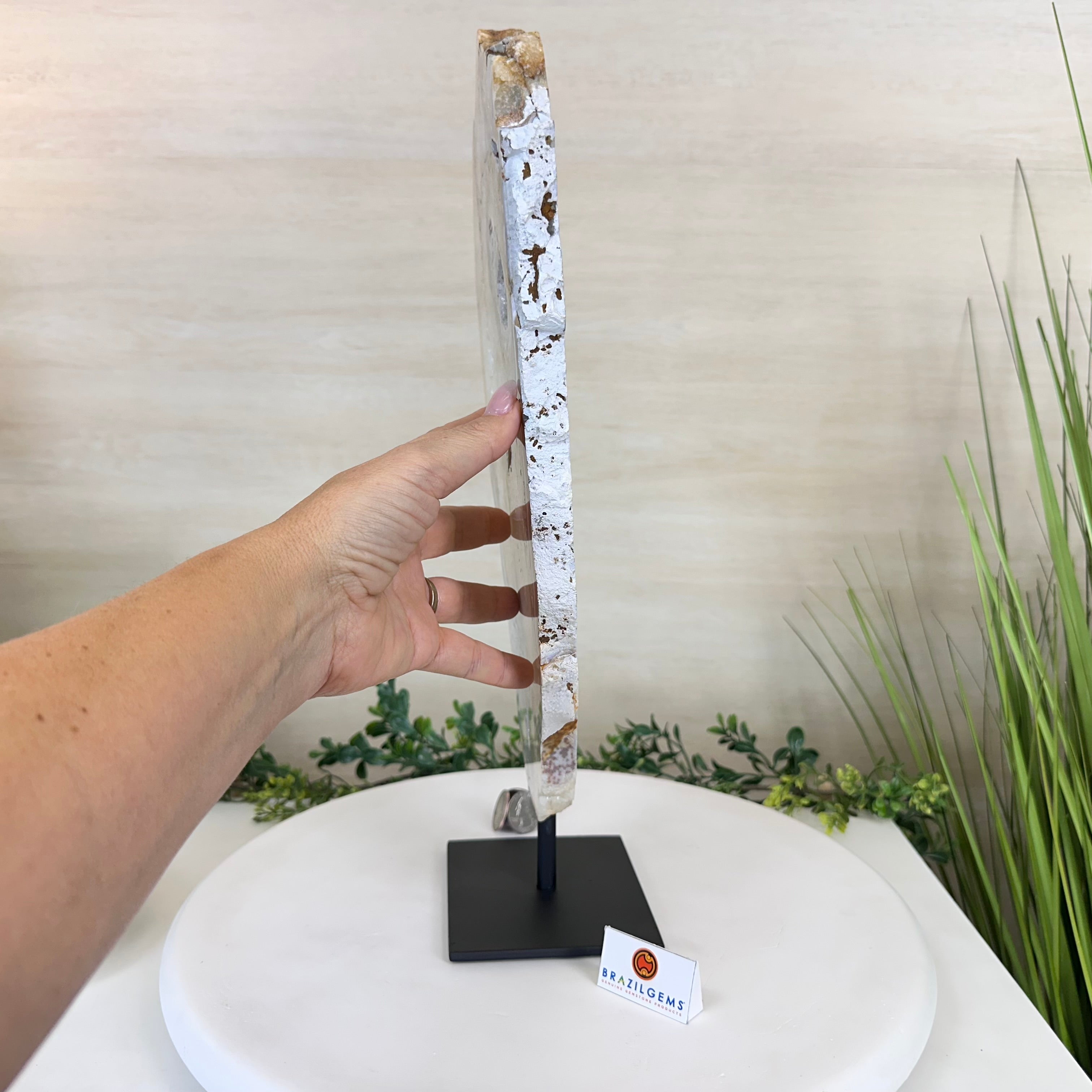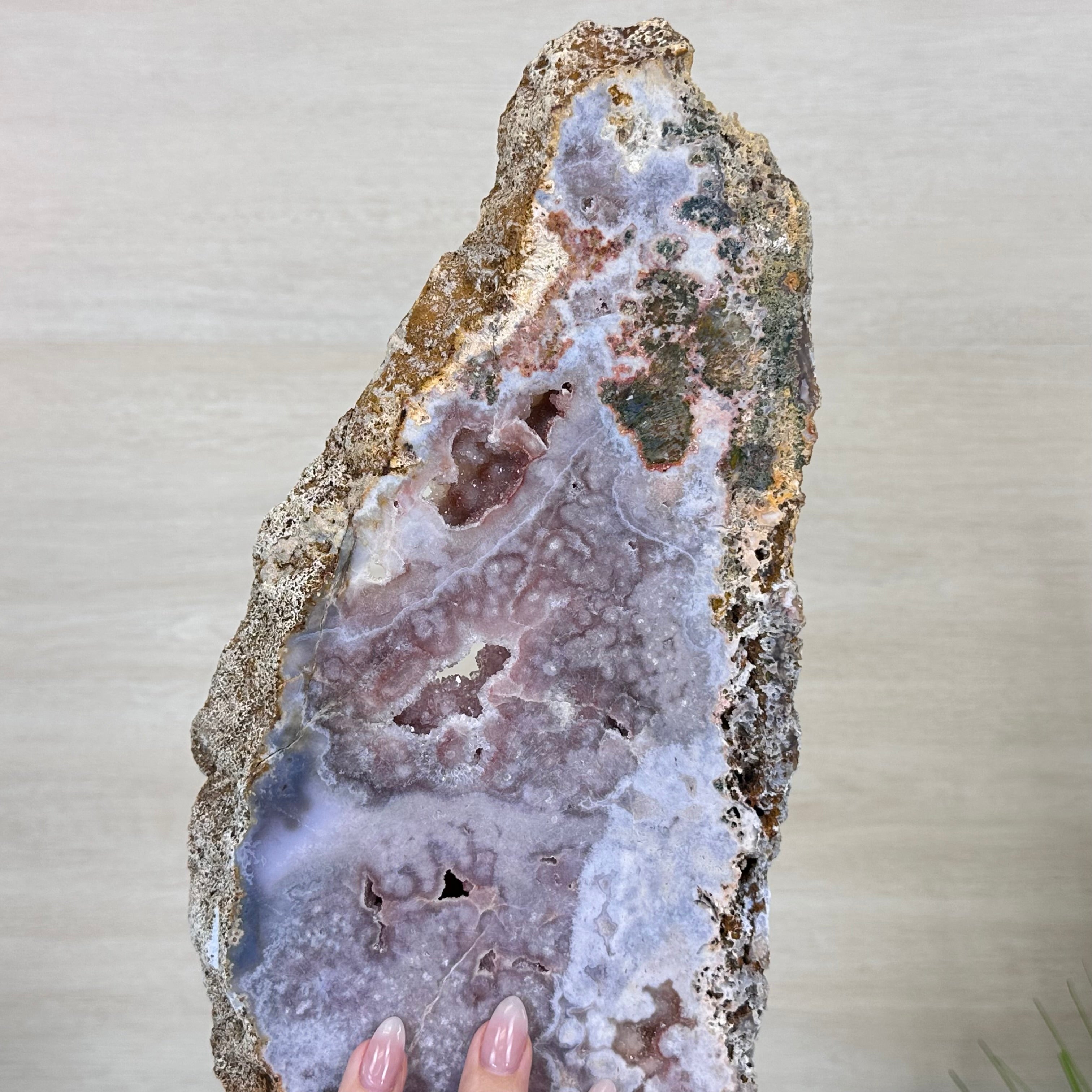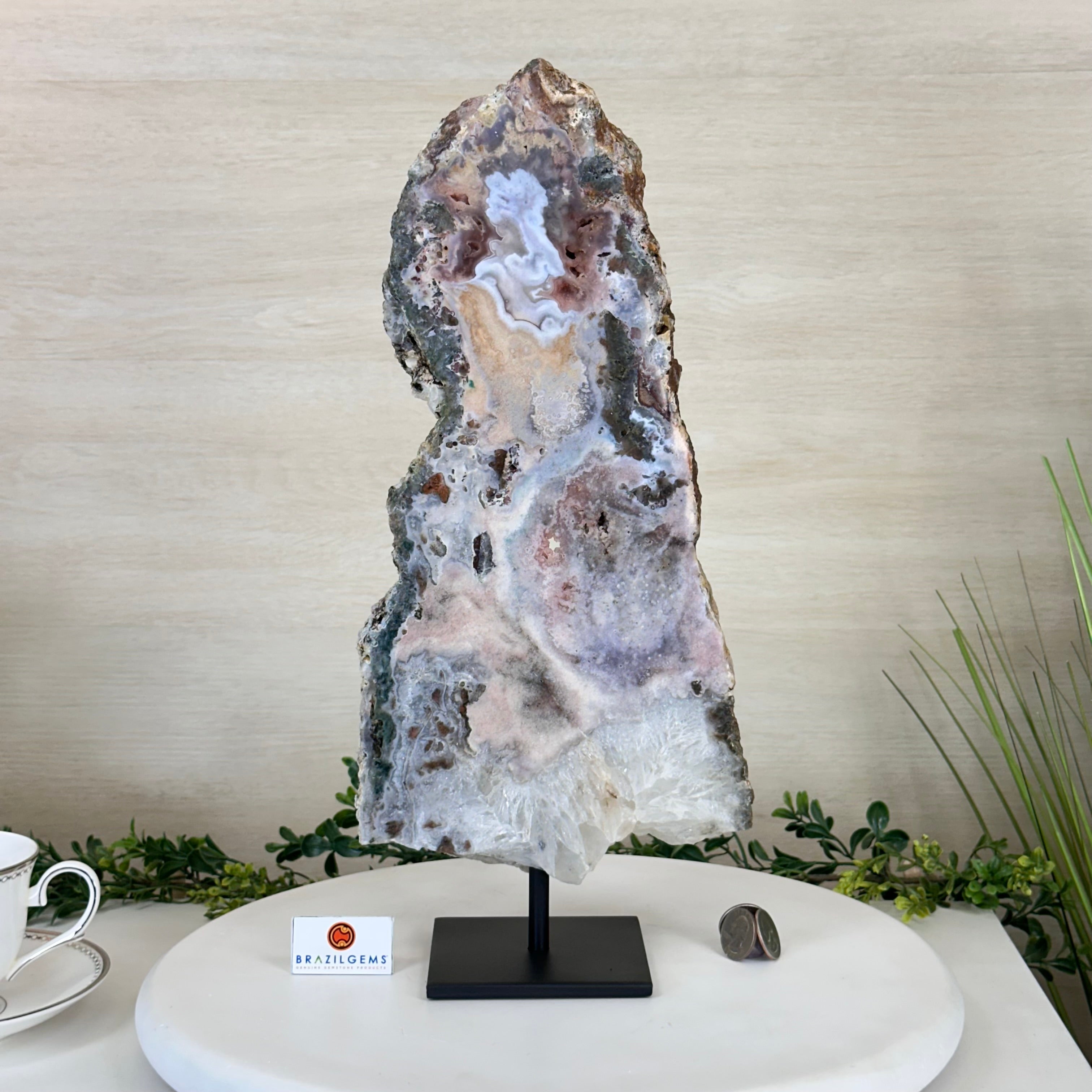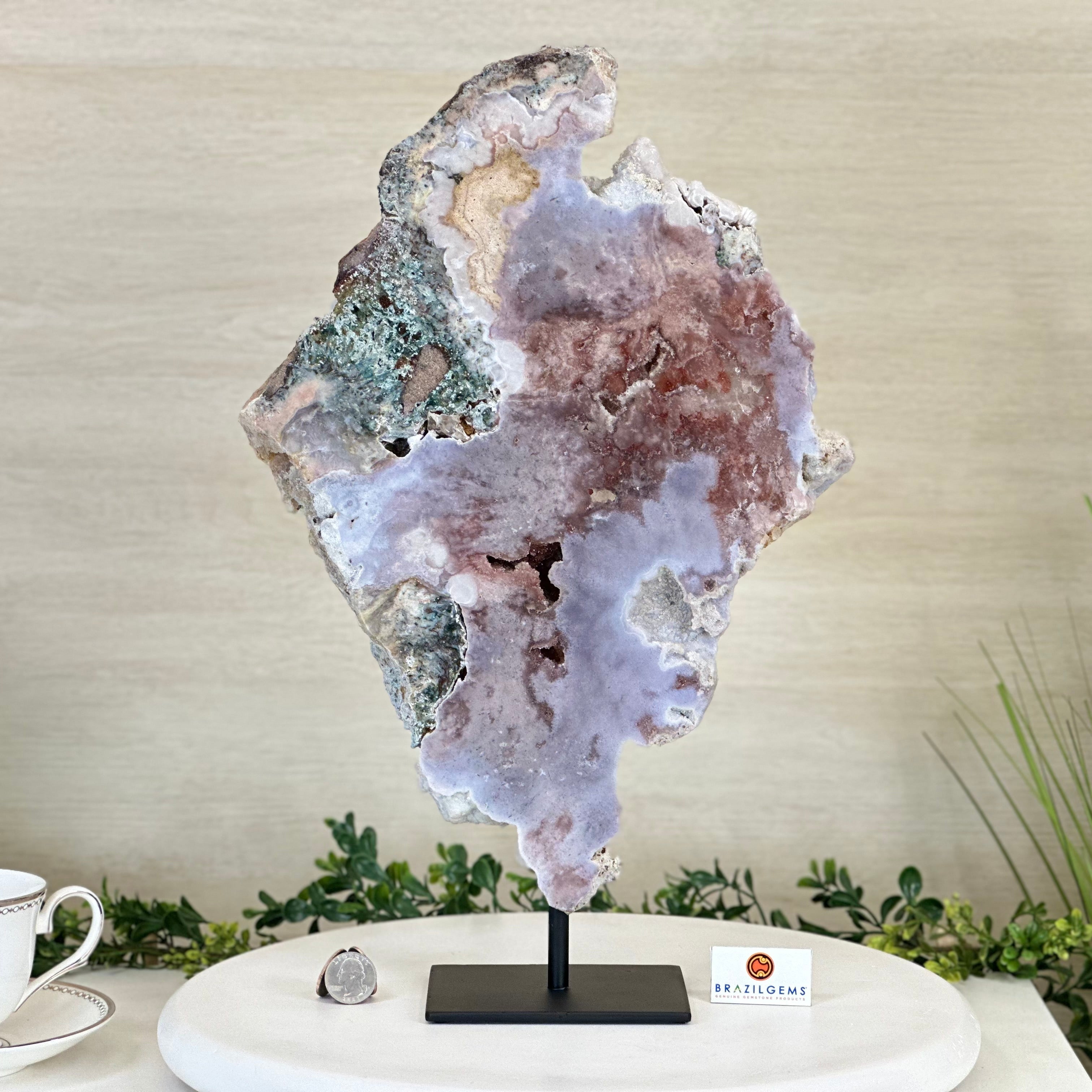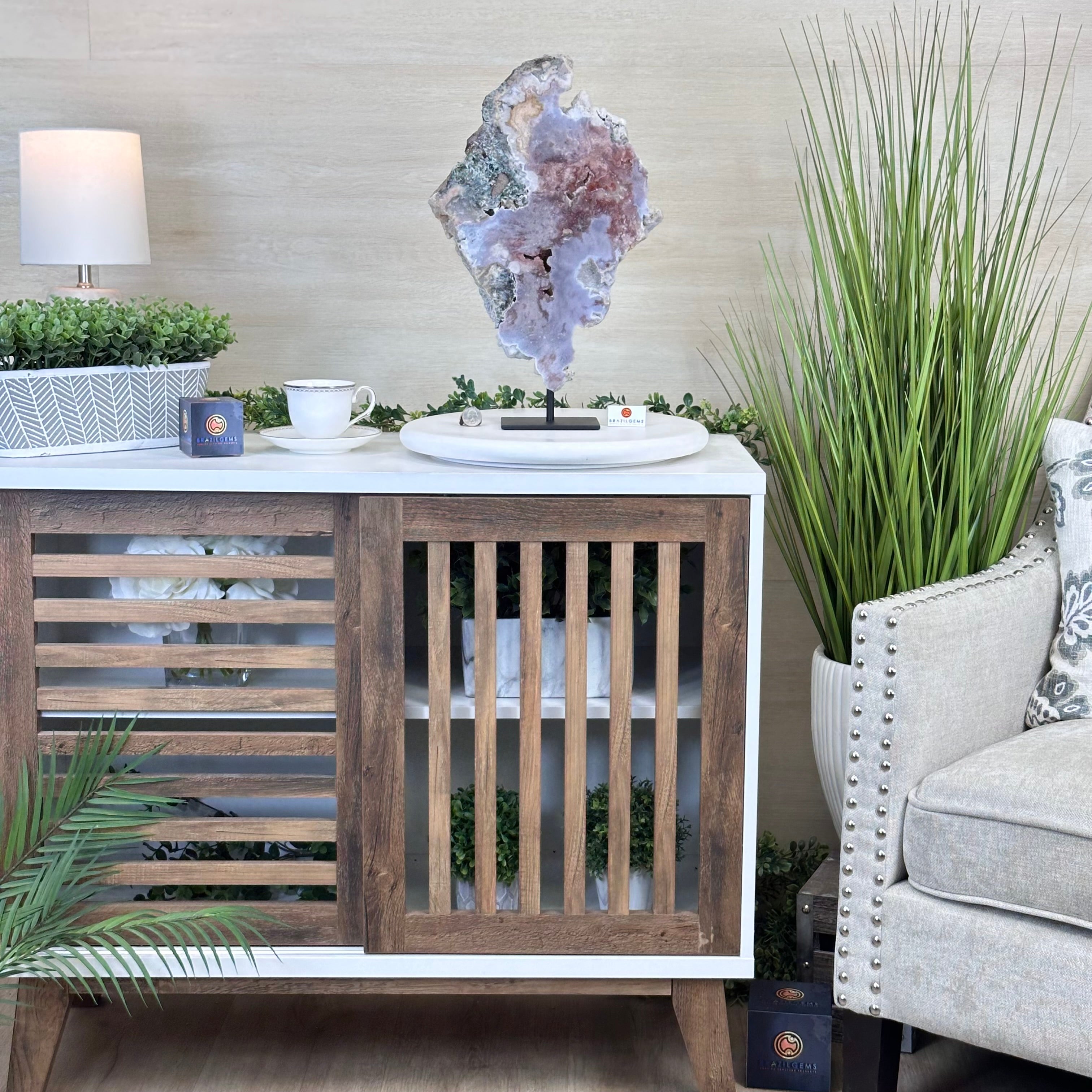 Natural Brazilian Pink Amethyst Slices on metal bases will accent the decor of your home or office. Discover our collection of Pink Amethyst Slices.