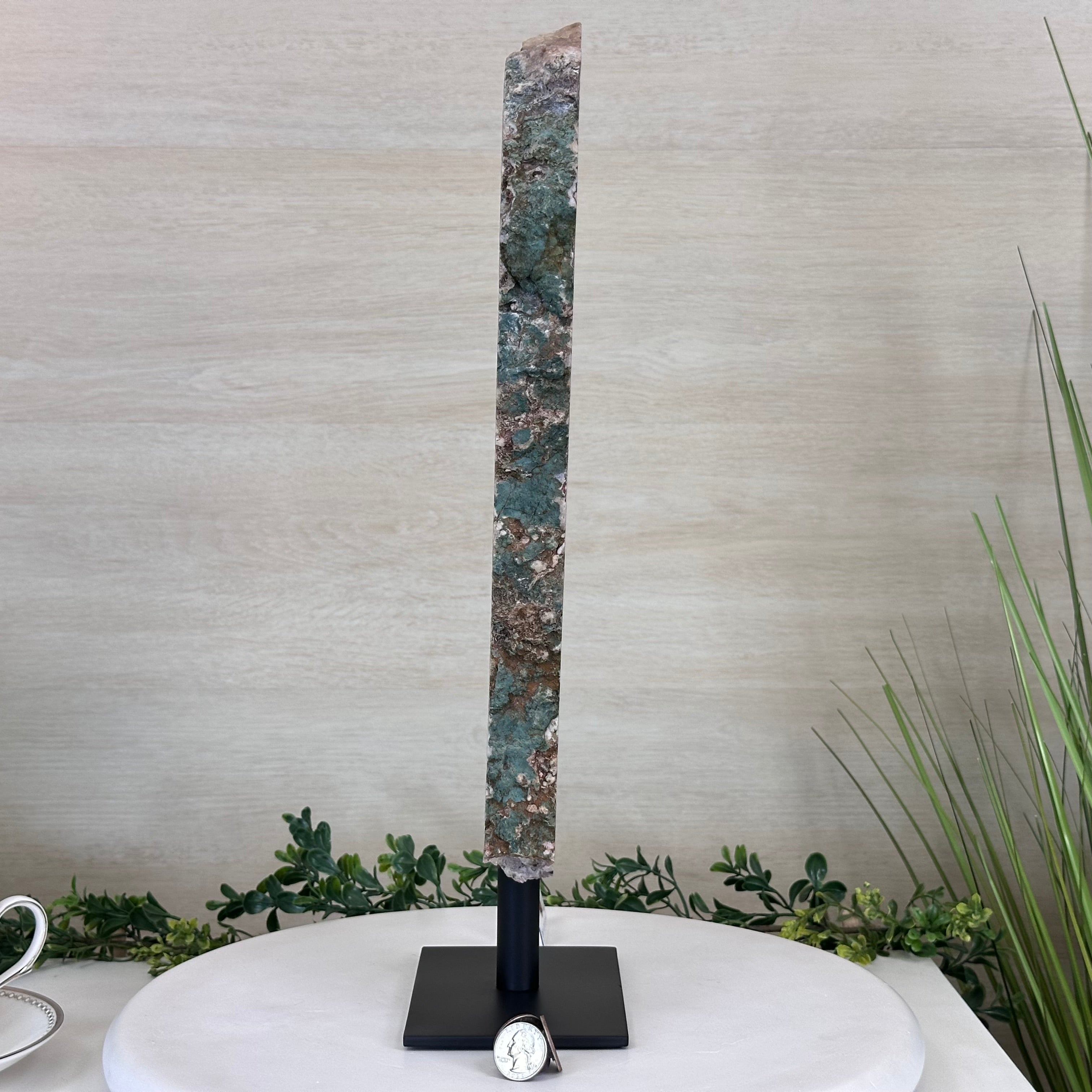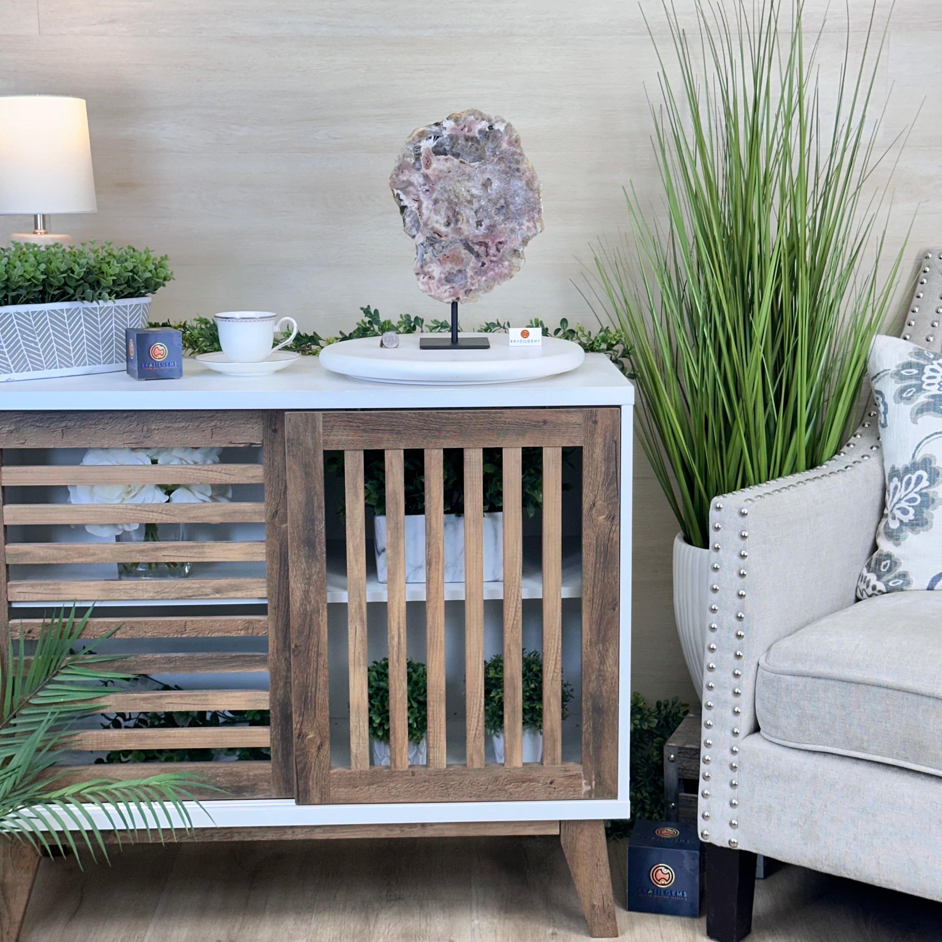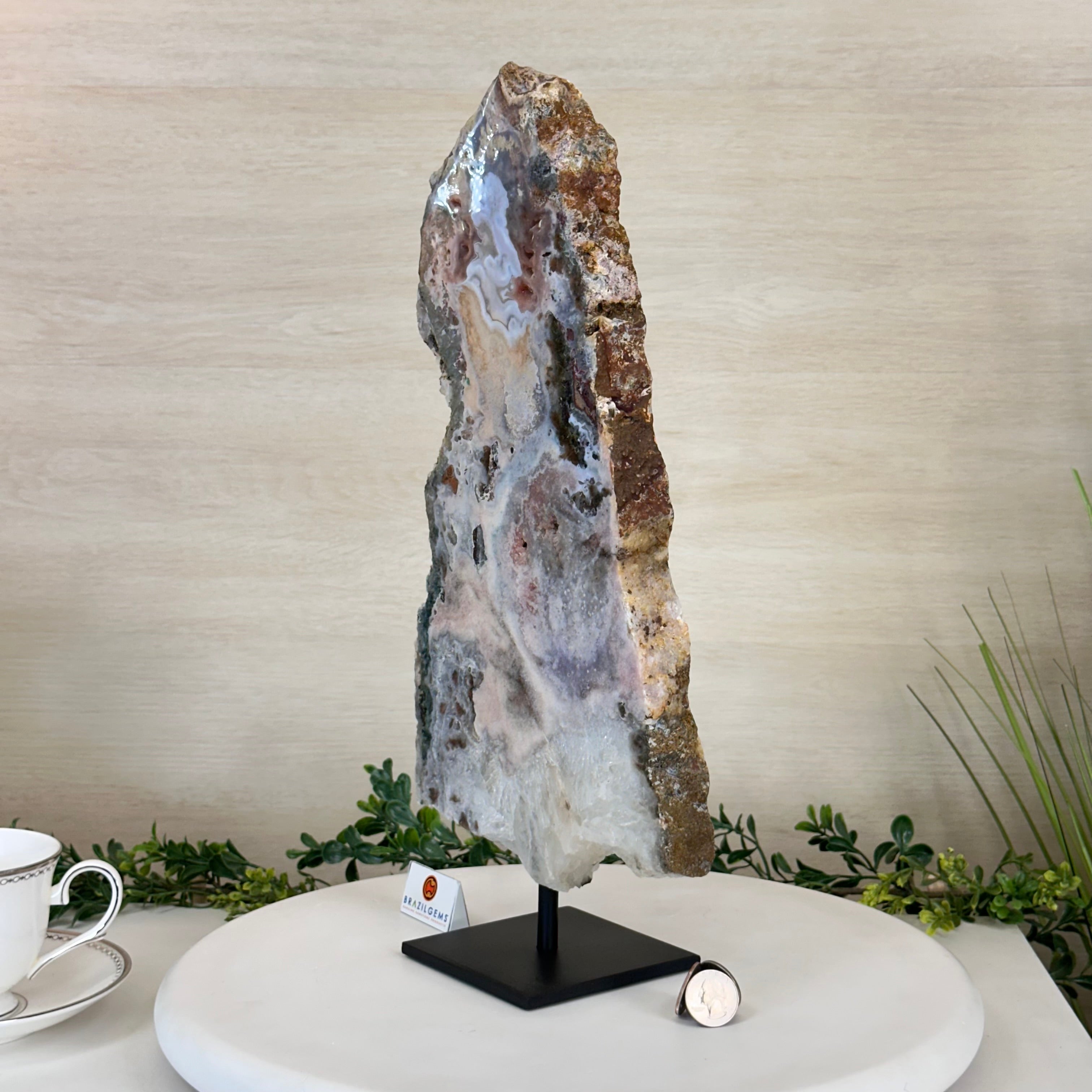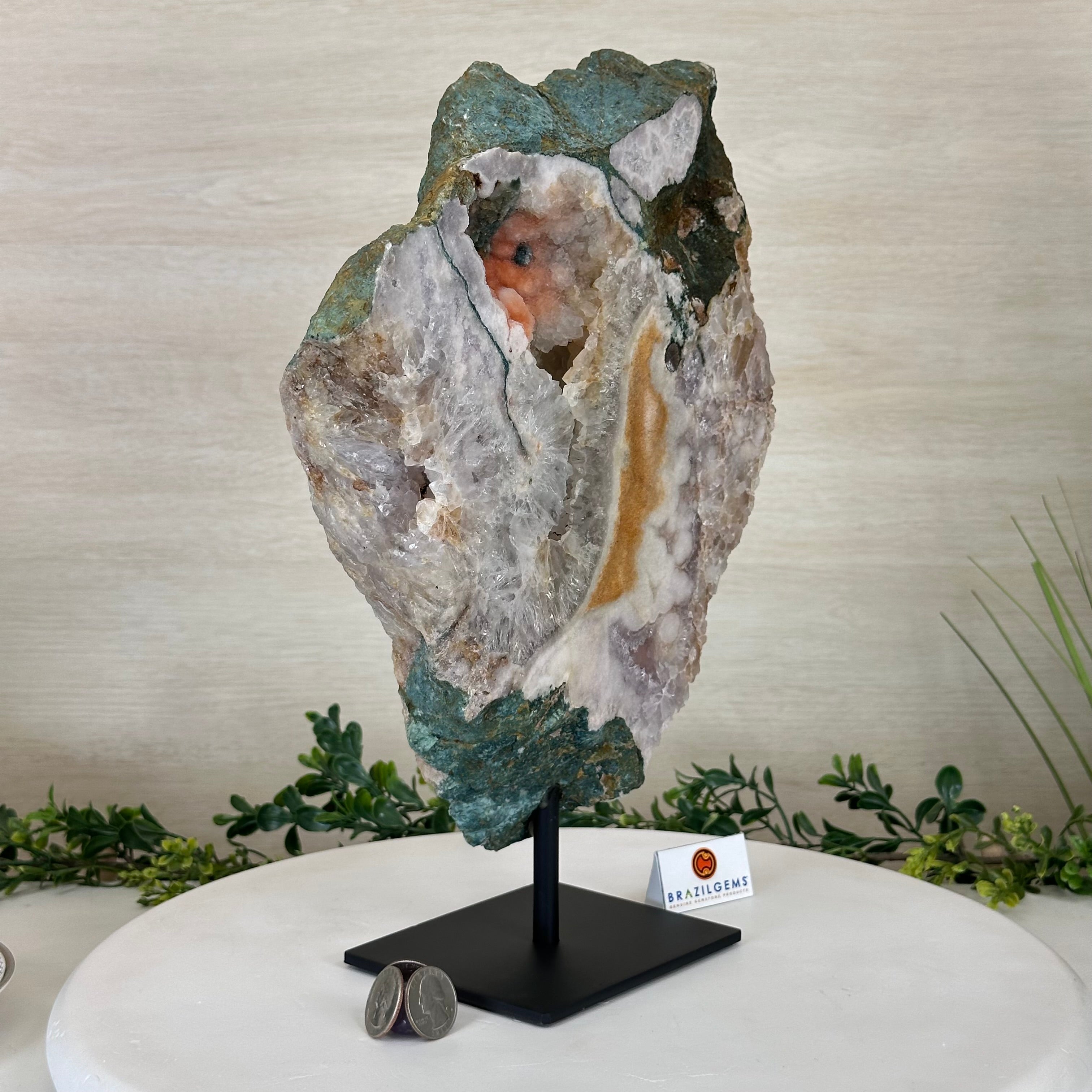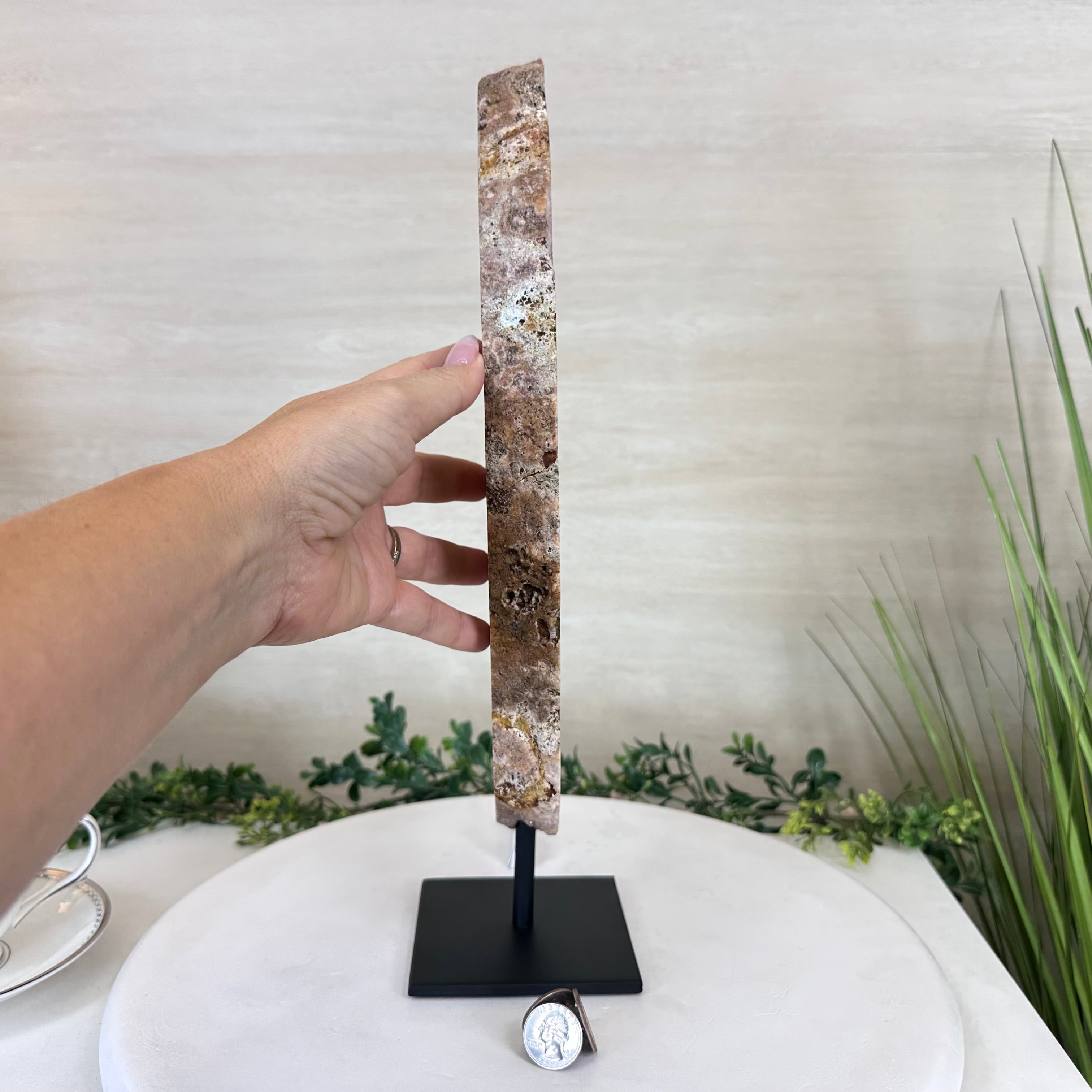 Natural Brazilian Pink Amethyst Slices on metal bases will accent the decor of your home or office. Discover our collection of Pink Amethyst Slices.