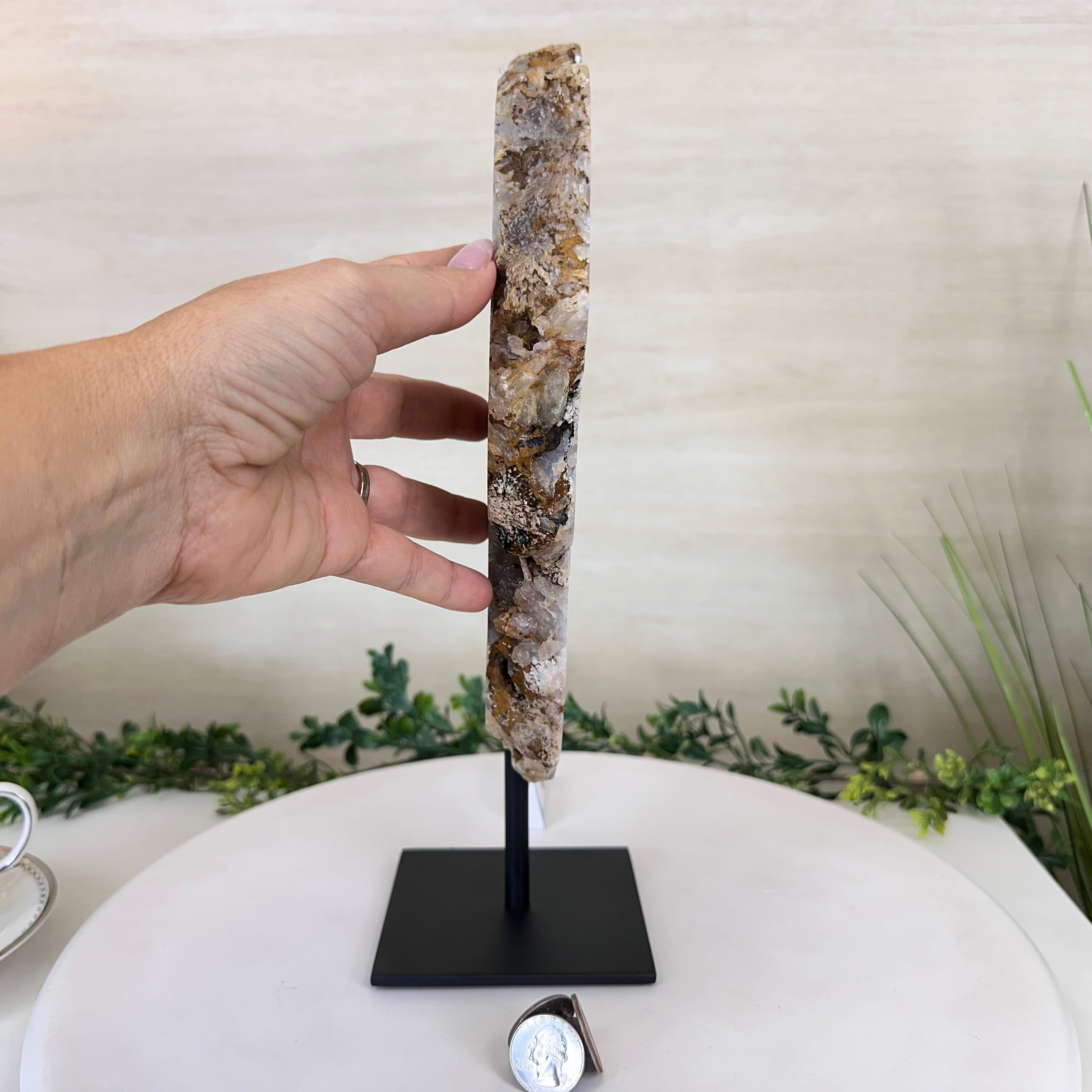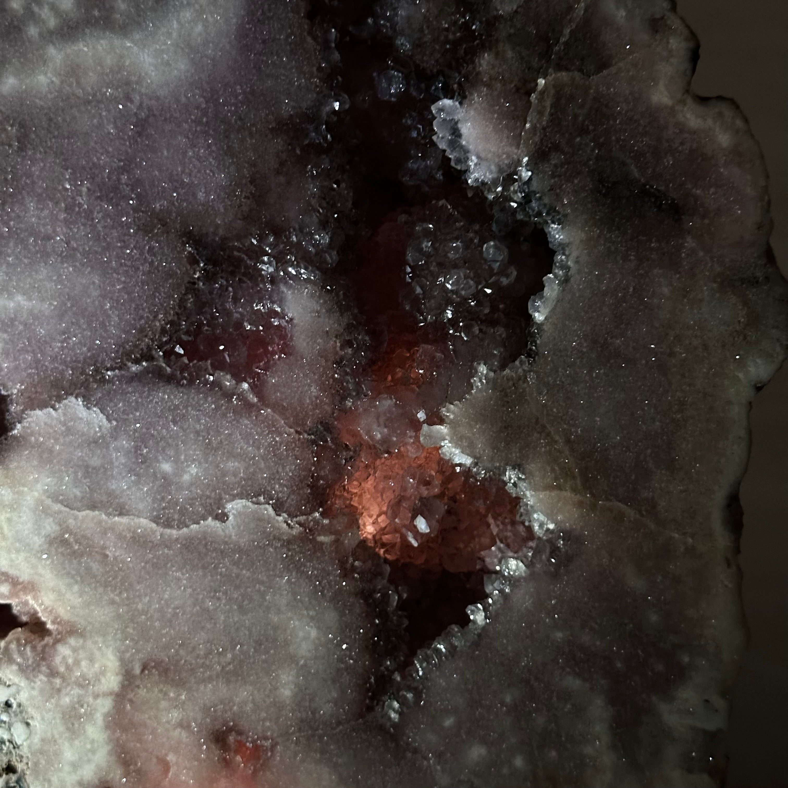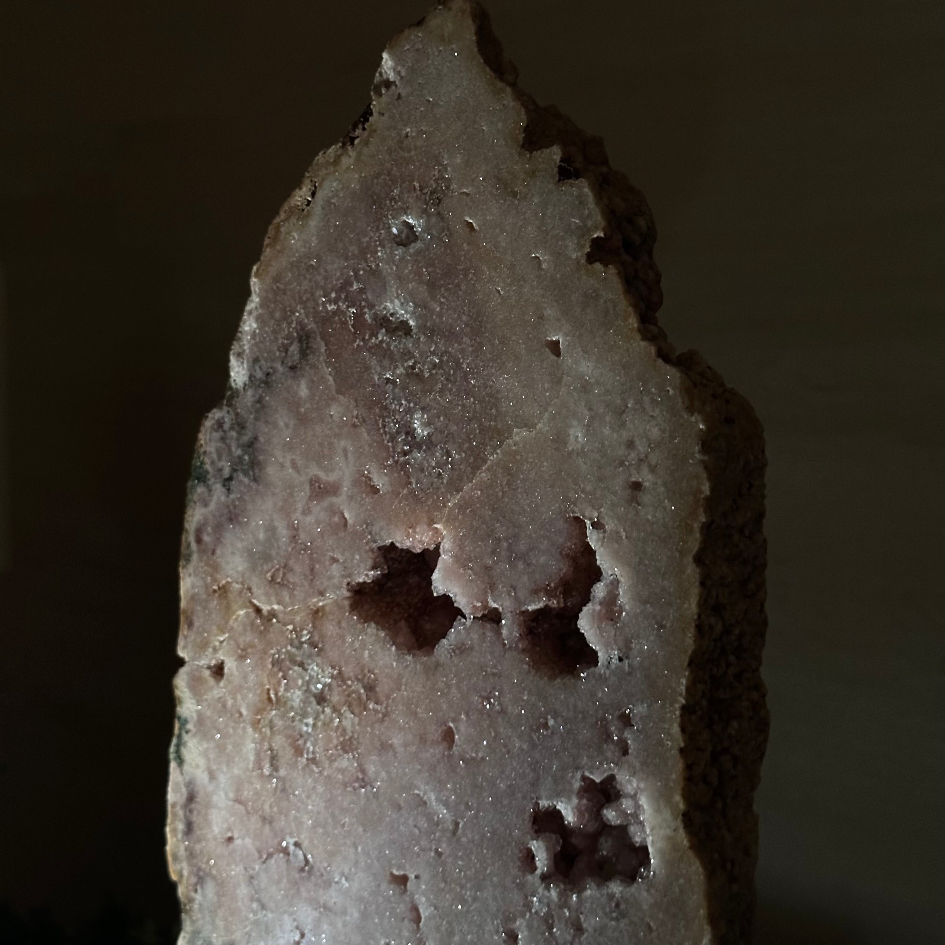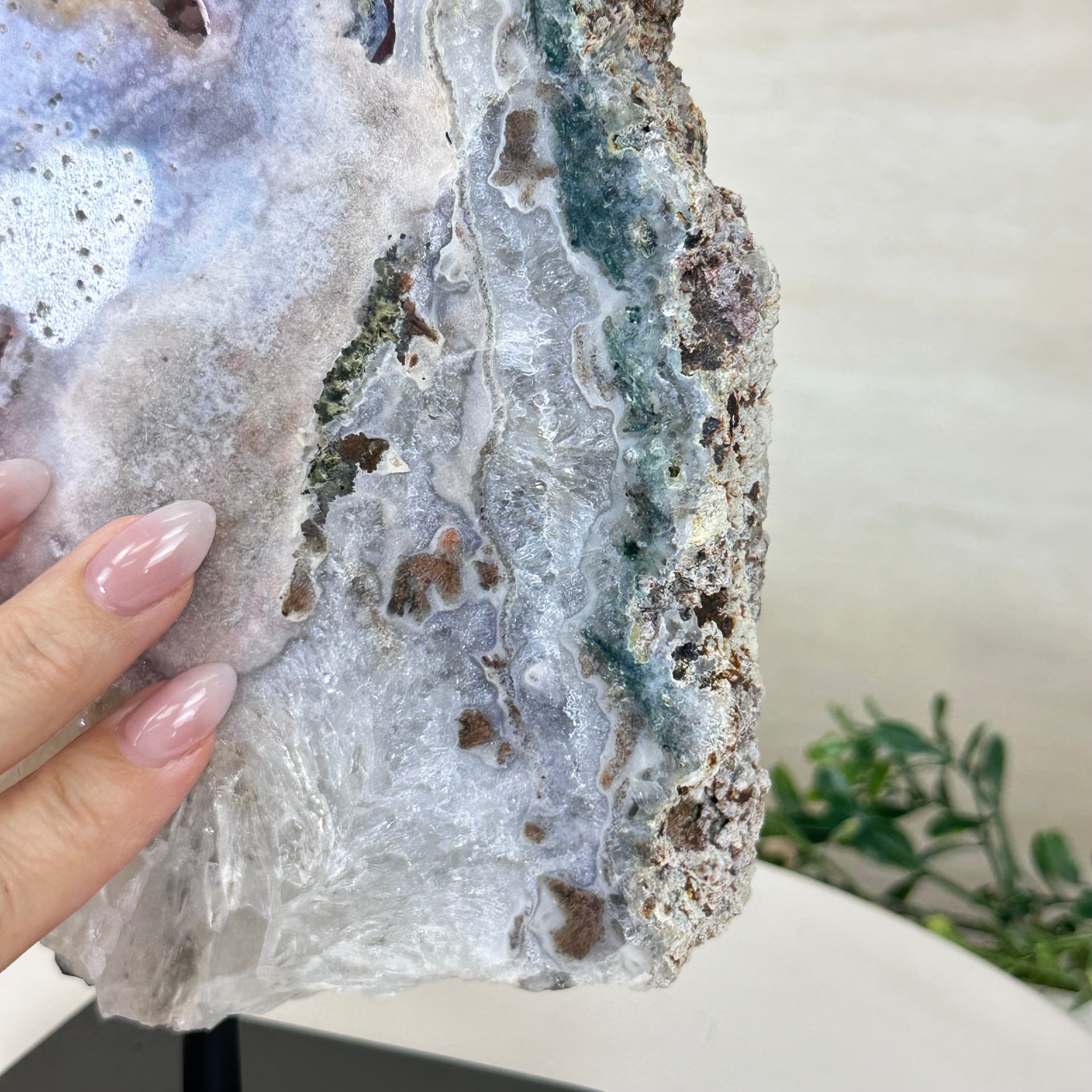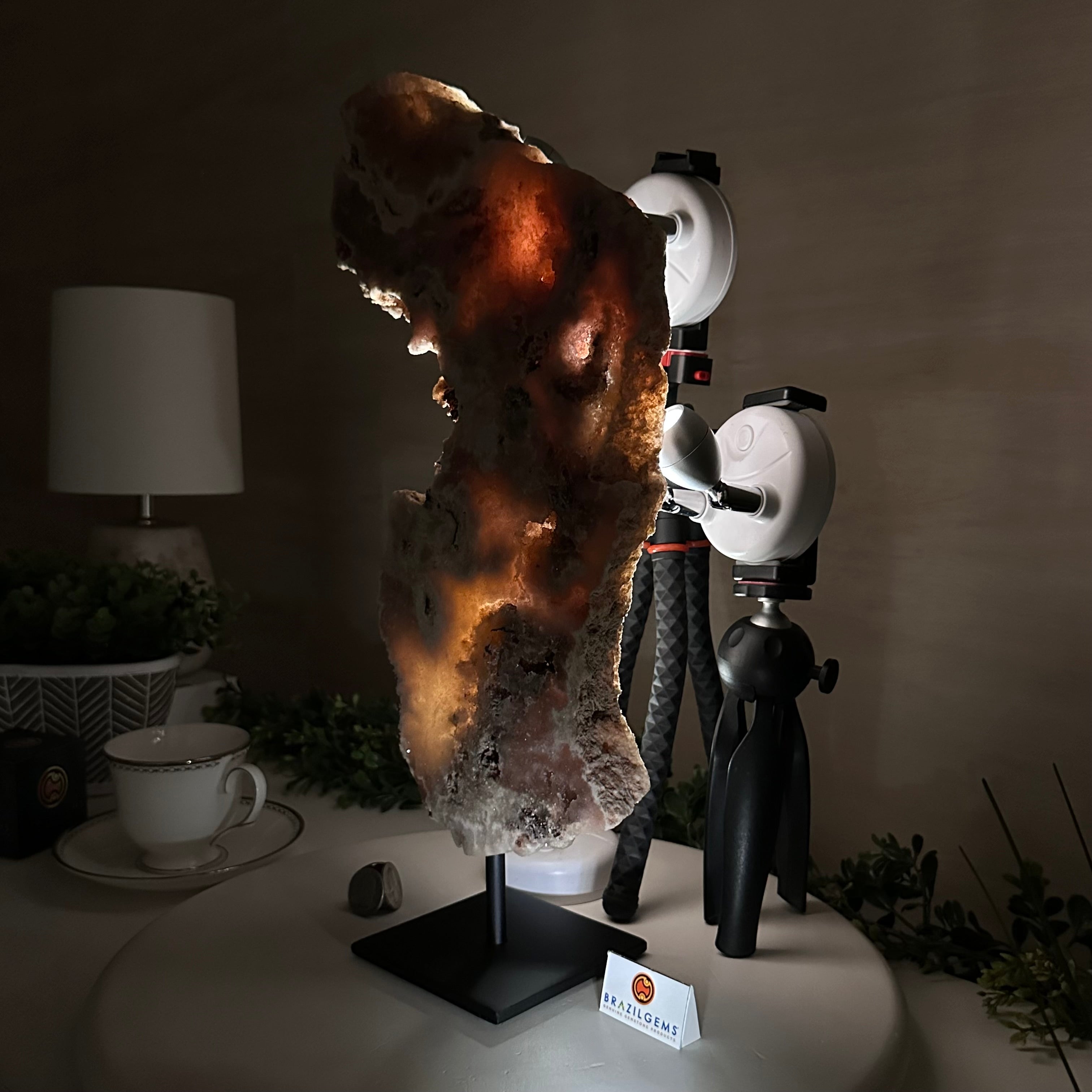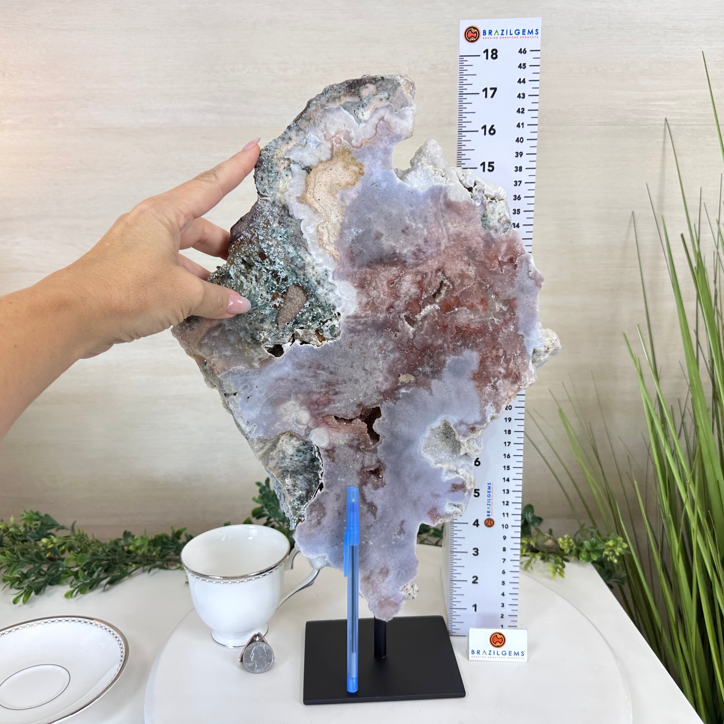 Natural Brazilian Pink Amethyst Slices on metal bases will accent the decor of your home or office. Discover our collection of Pink Amethyst Slices.