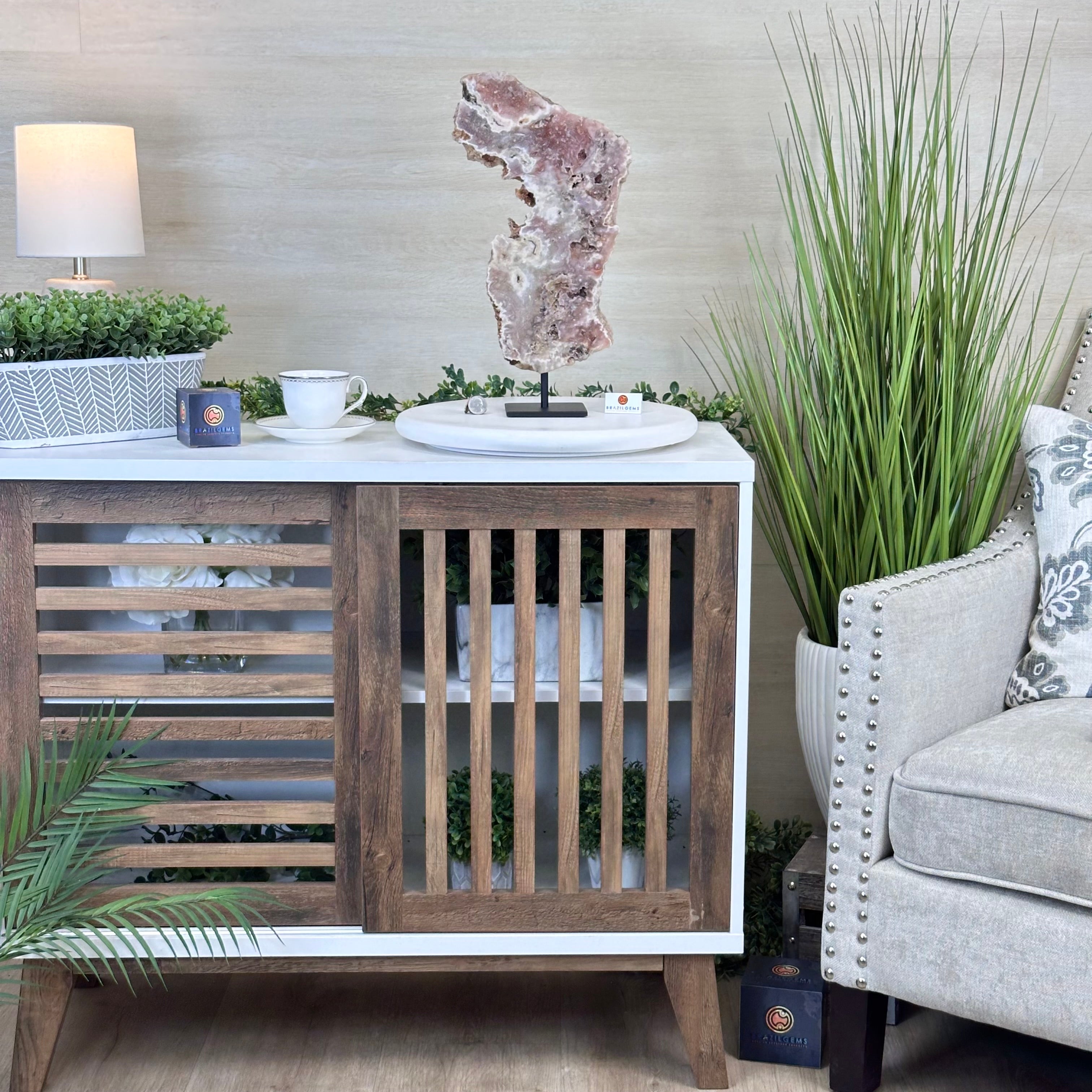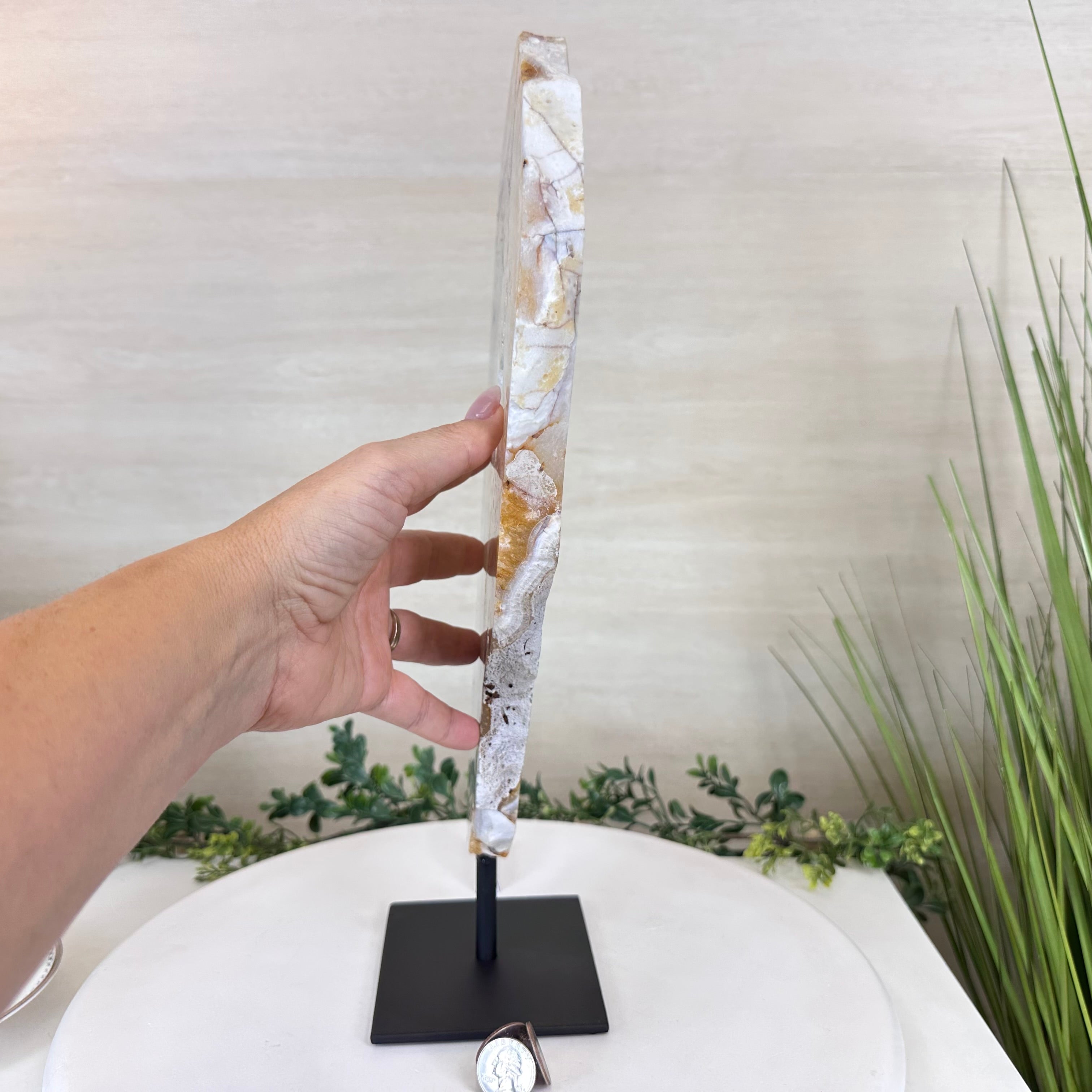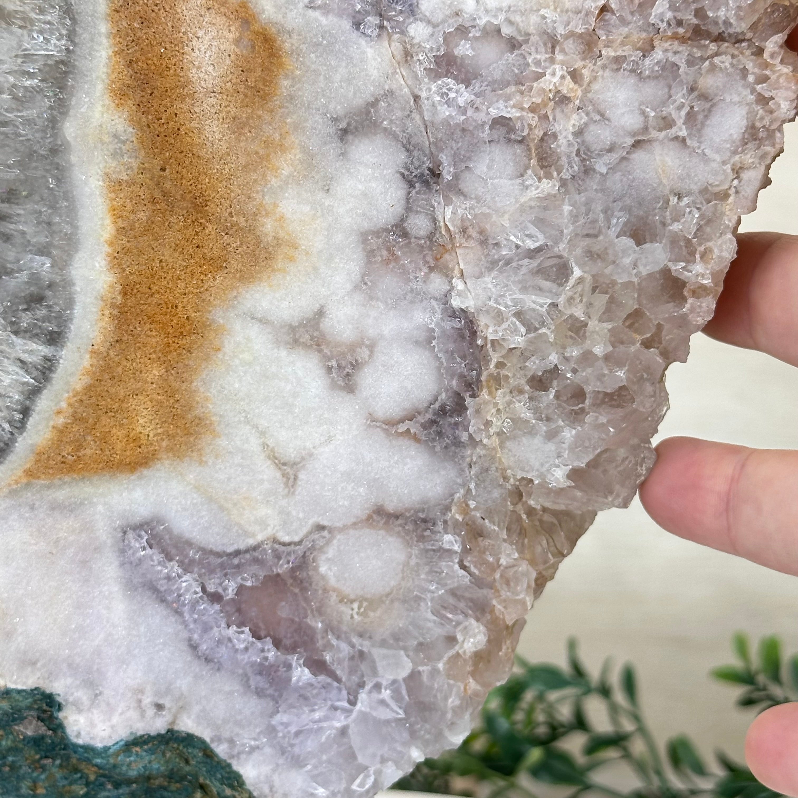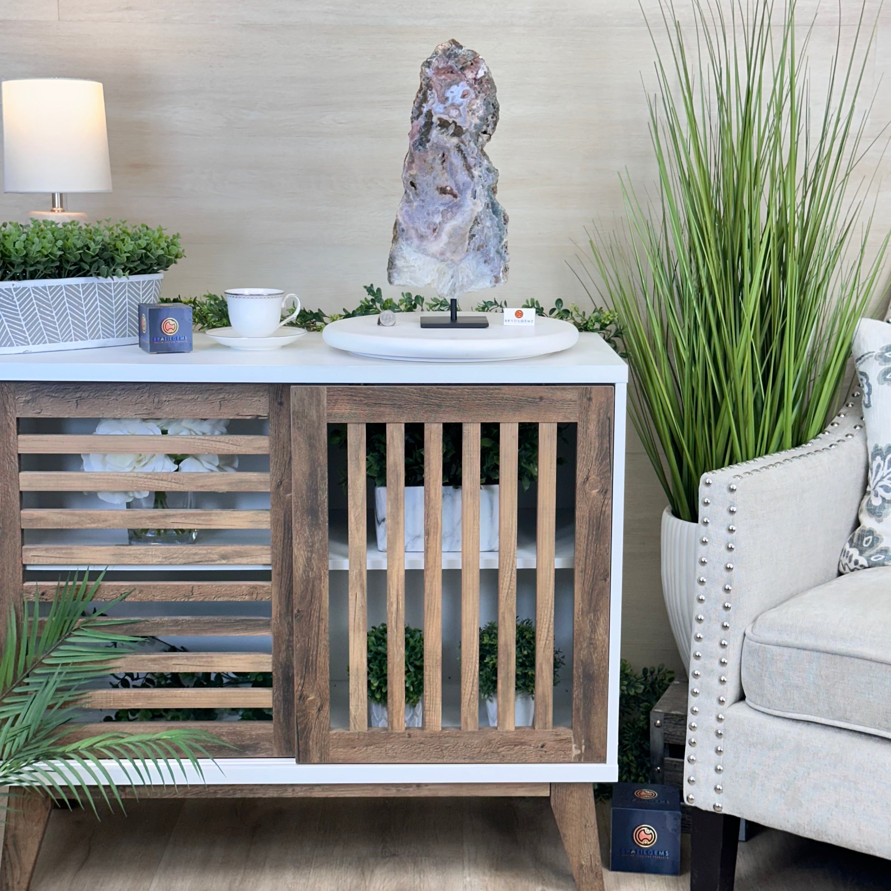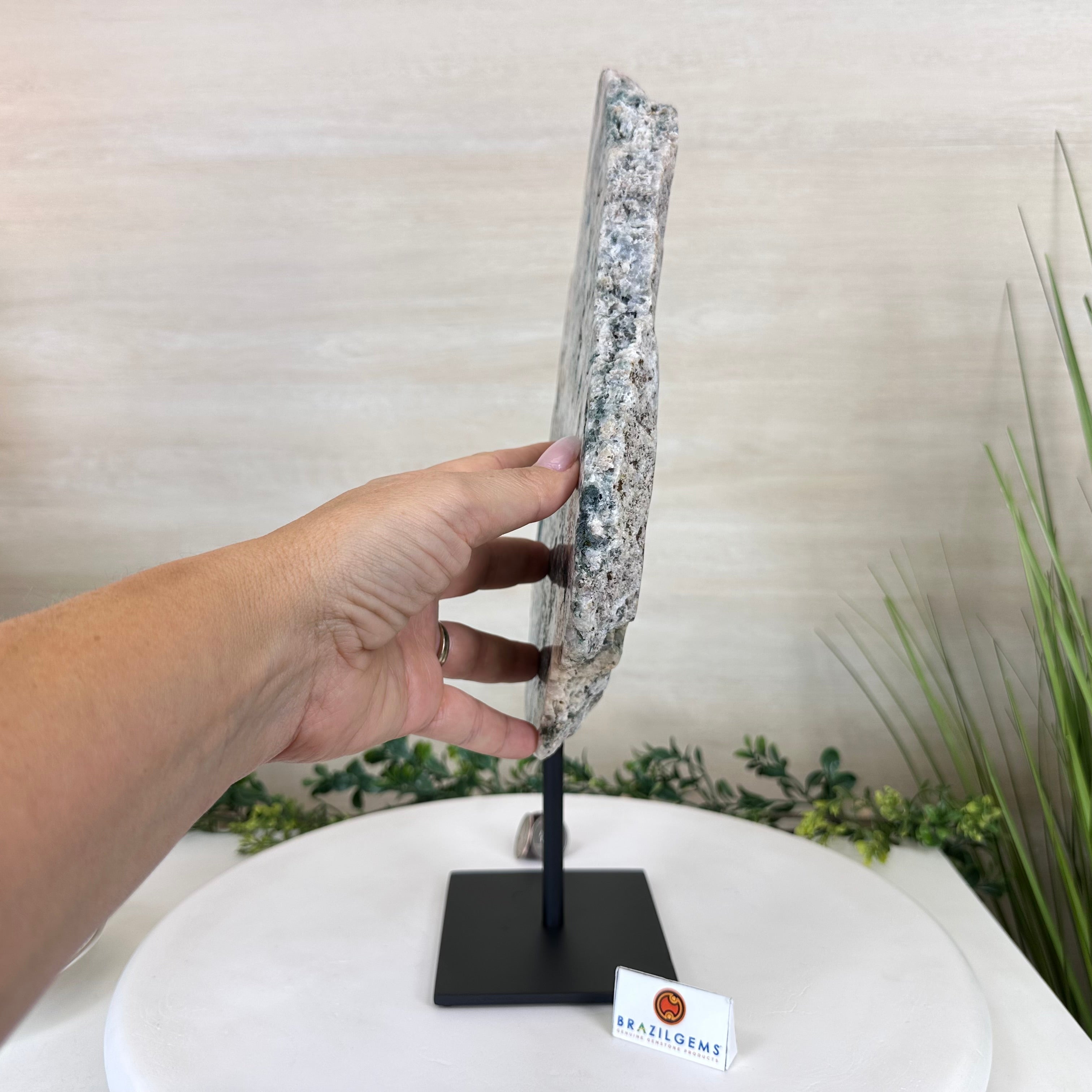 Natural Brazilian Pink Amethyst Slices on metal bases will accent the decor of your home or office. Discover our collection of Pink Amethyst Slices.