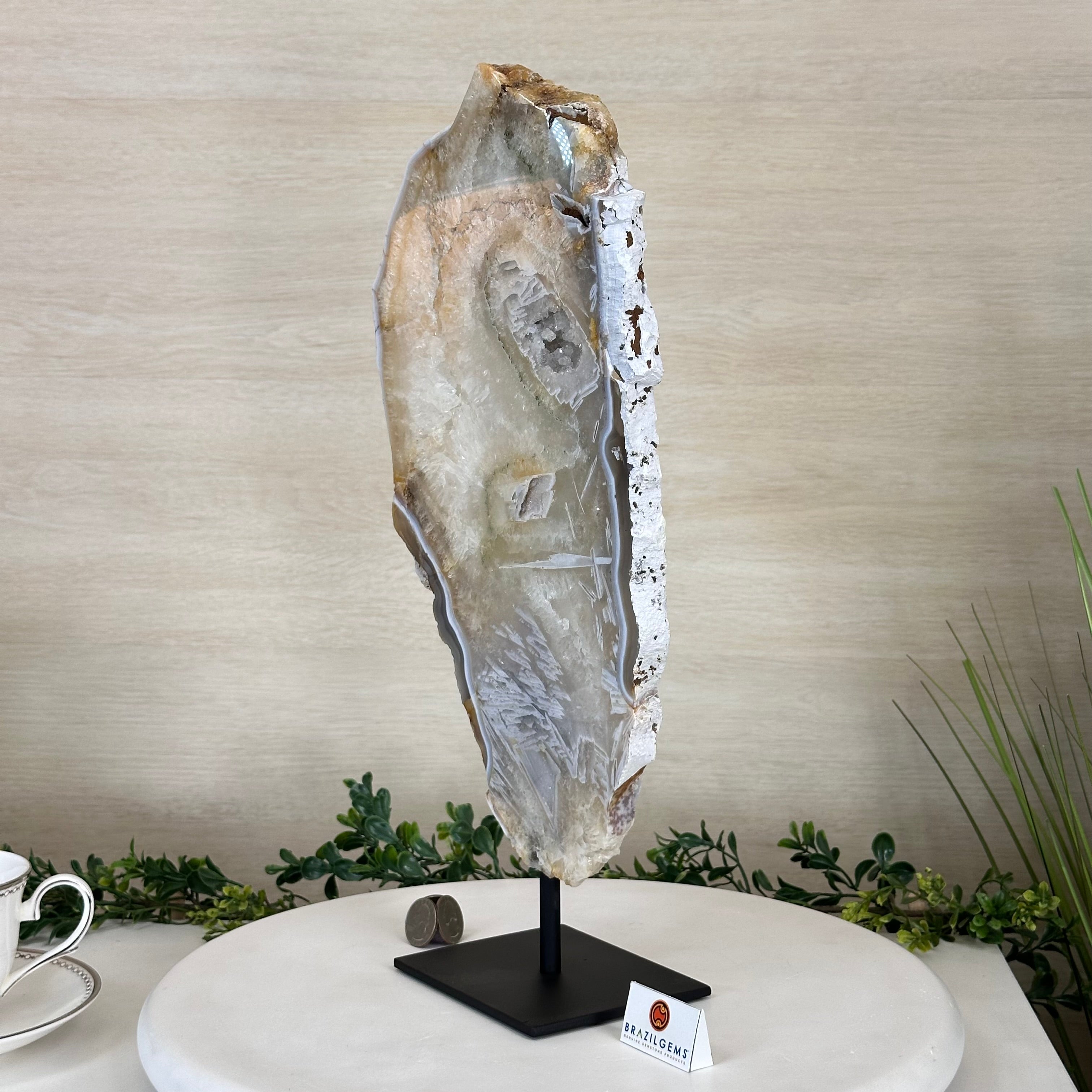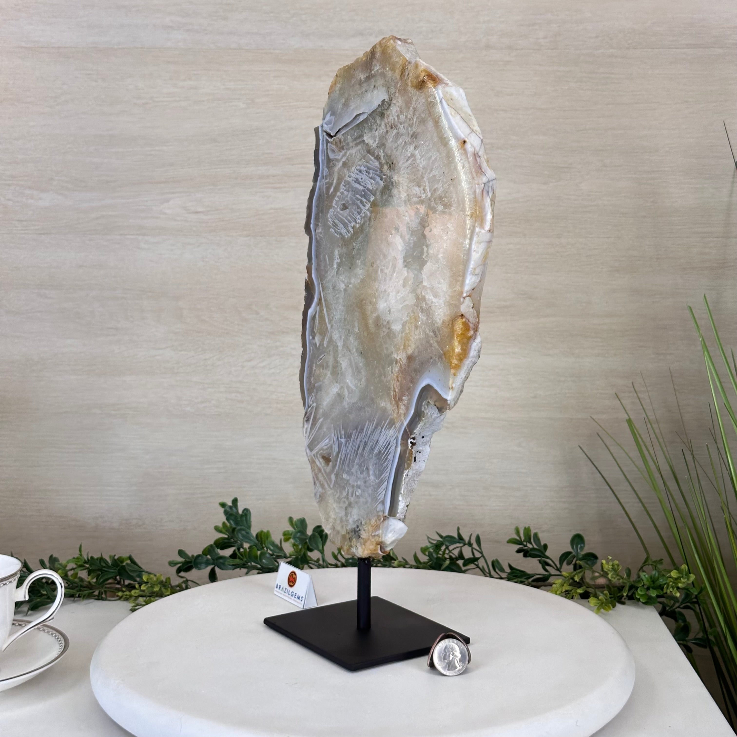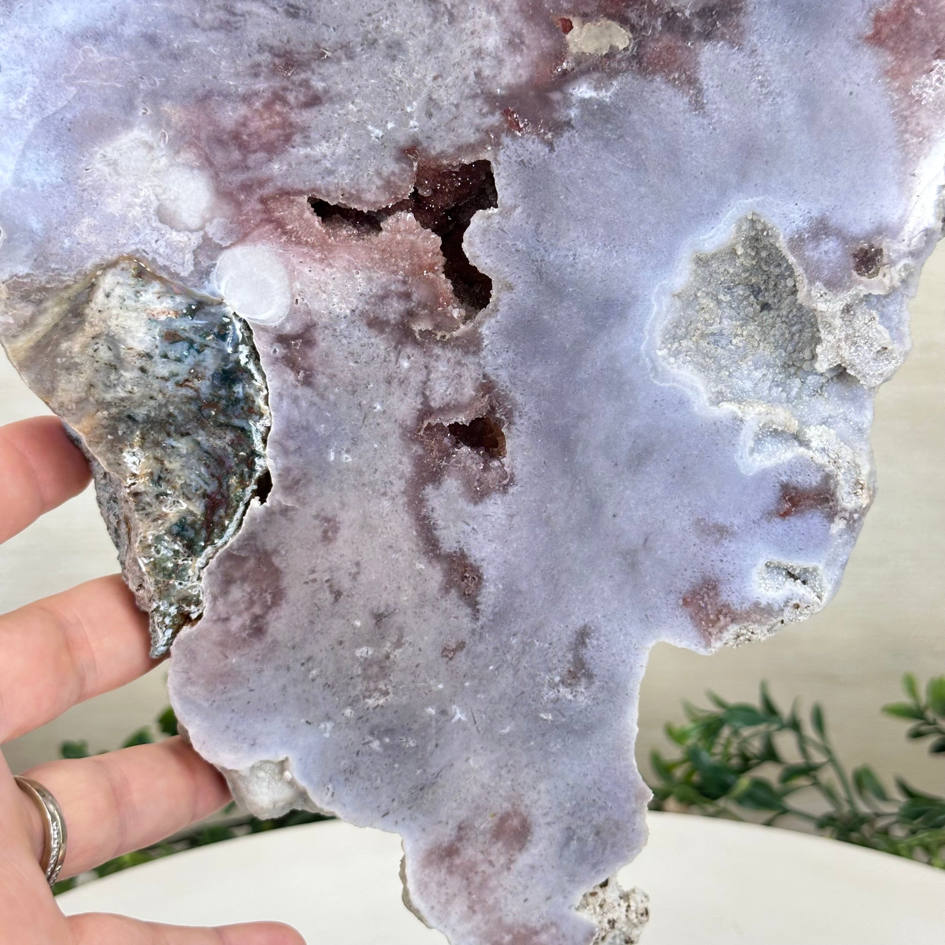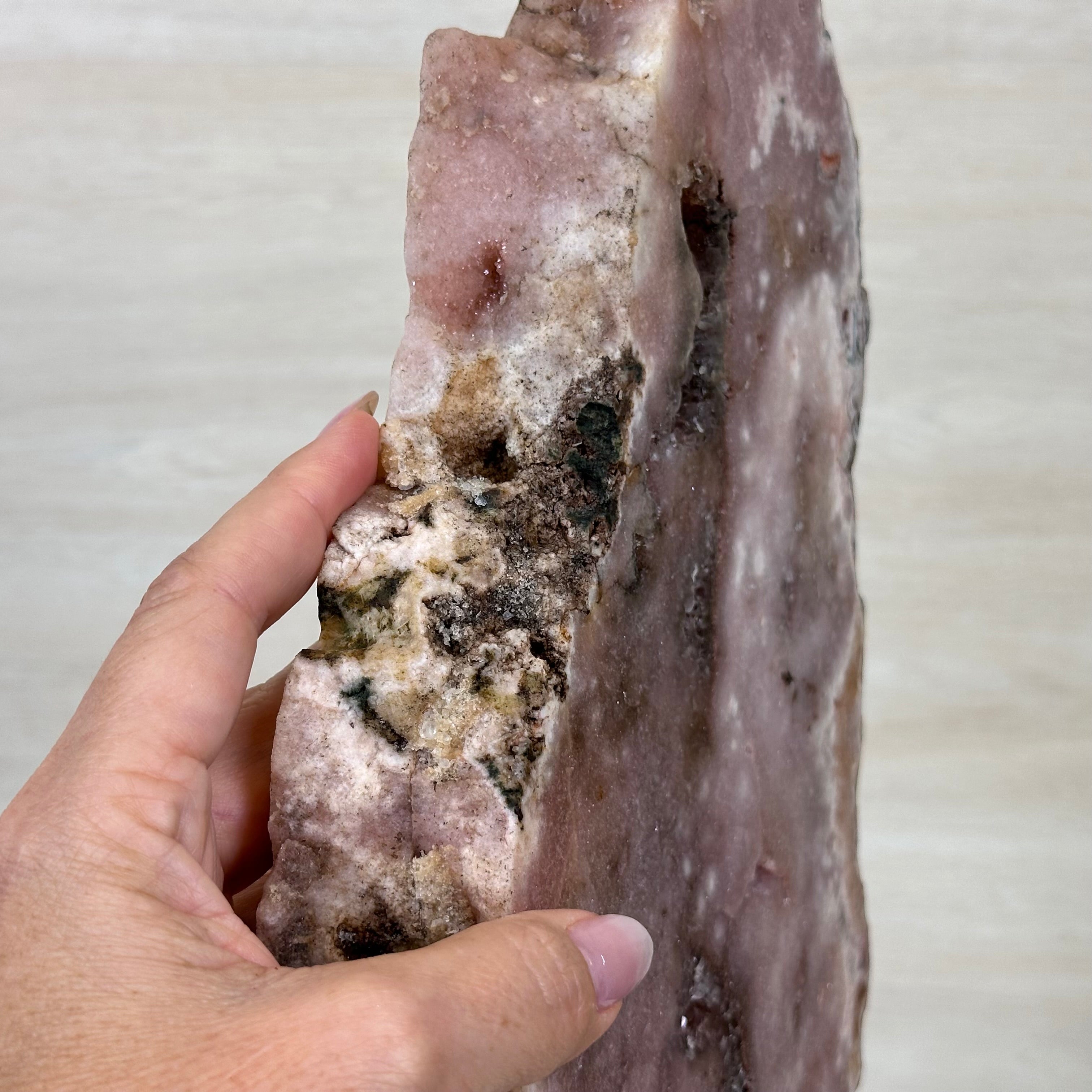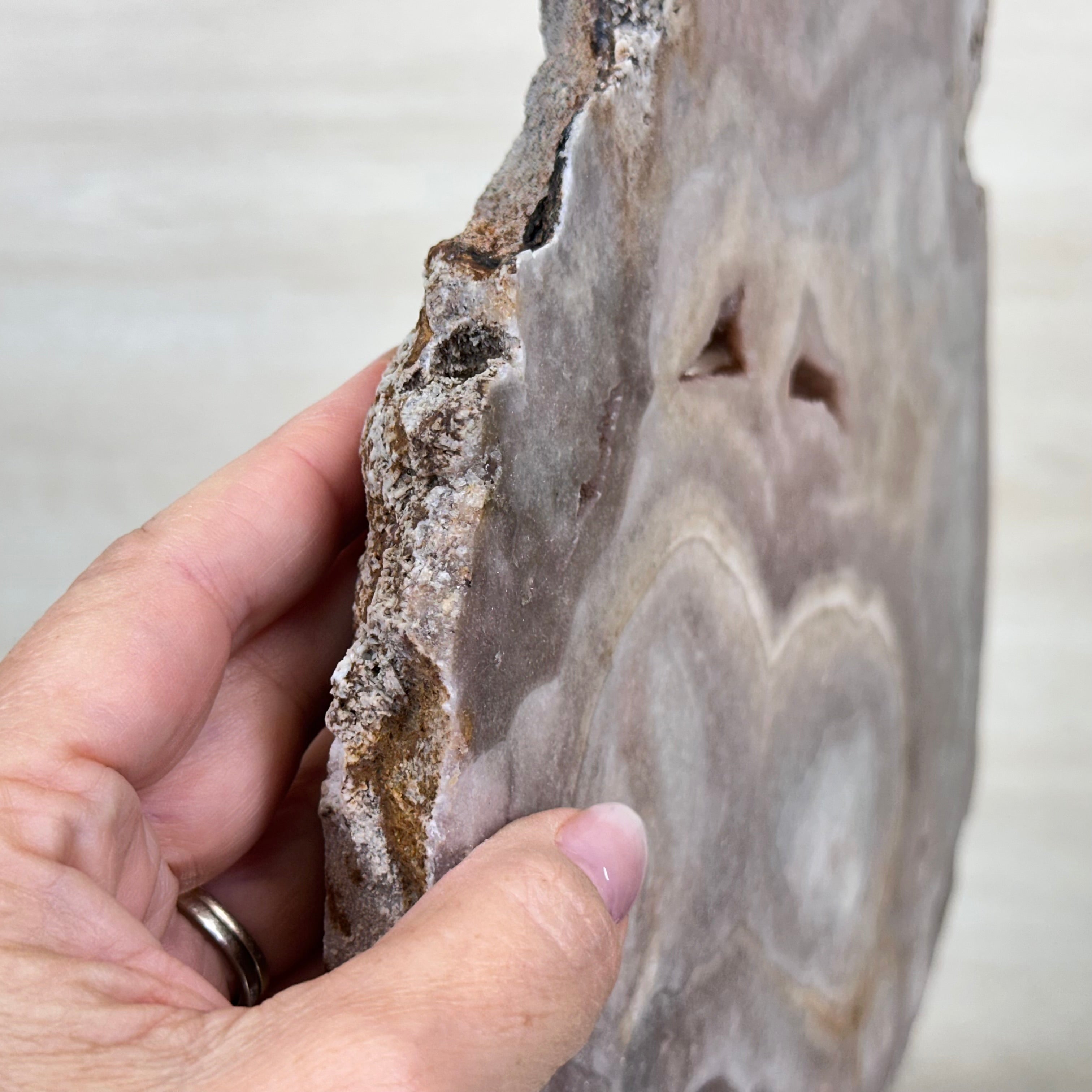 Natural Brazilian Pink Amethyst Slices on metal bases will accent the decor of your home or office. Discover our collection of Pink Amethyst Slices.