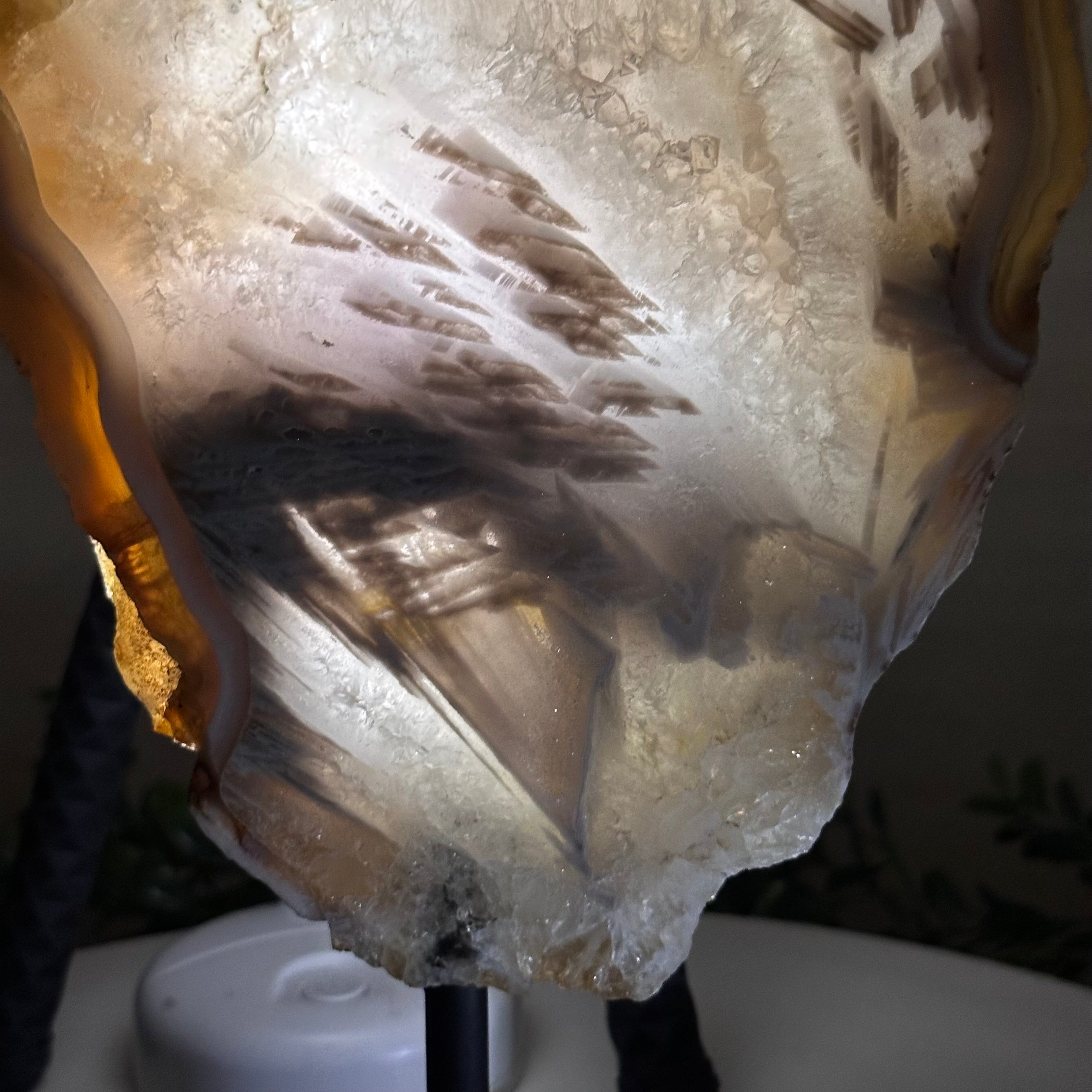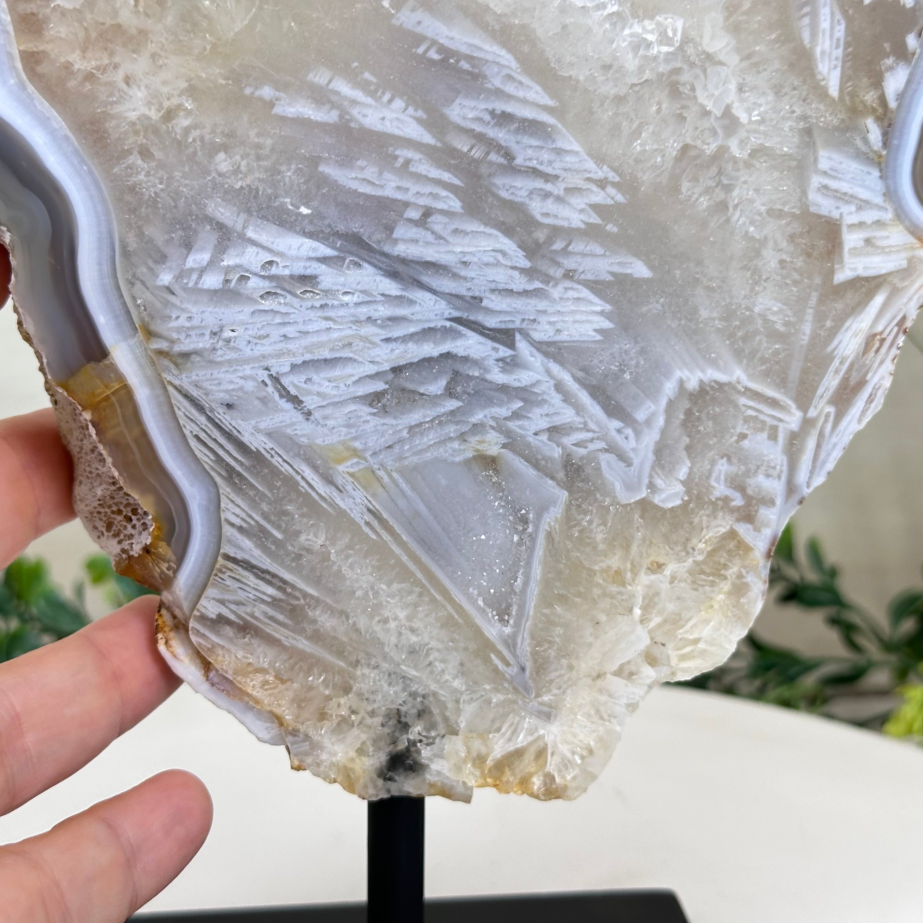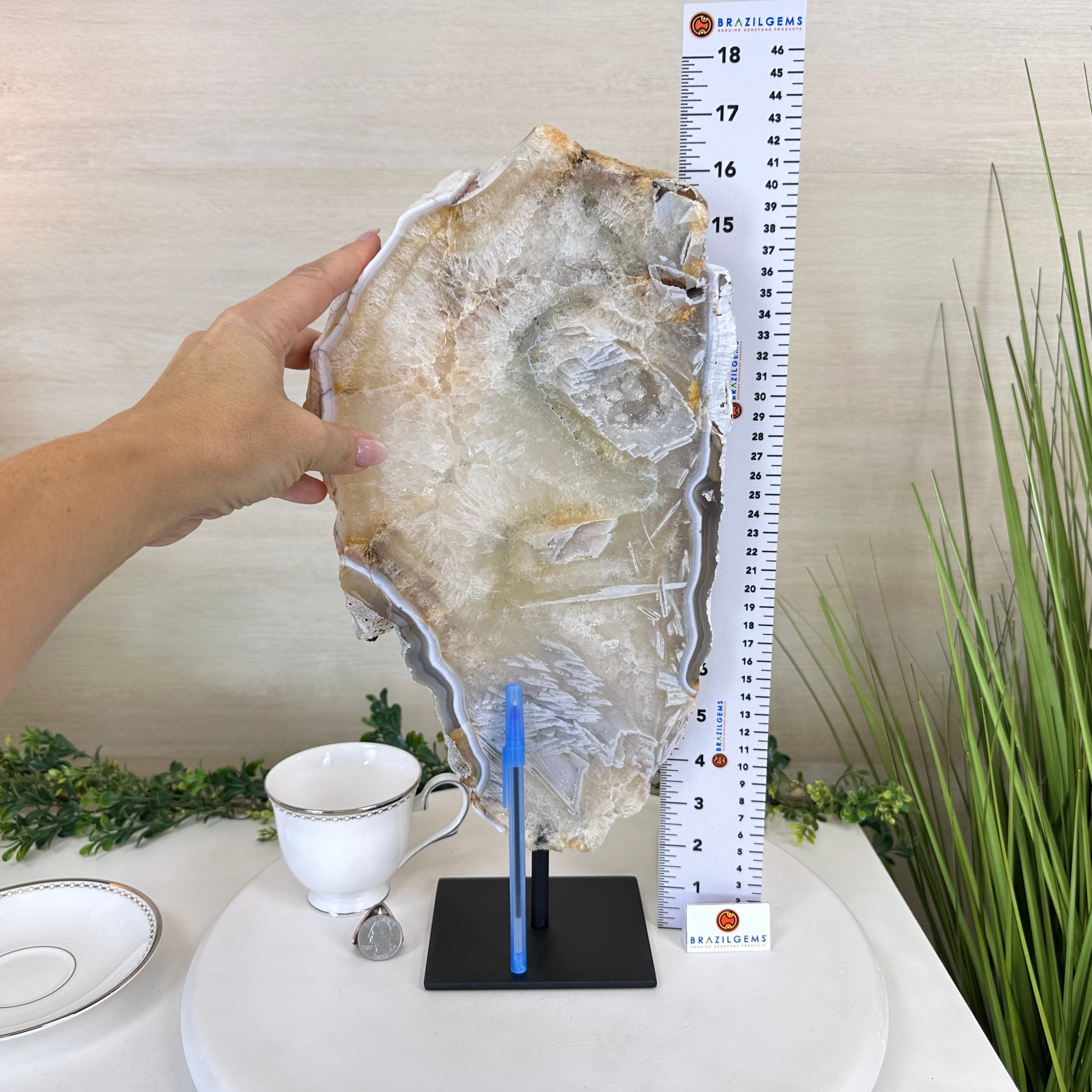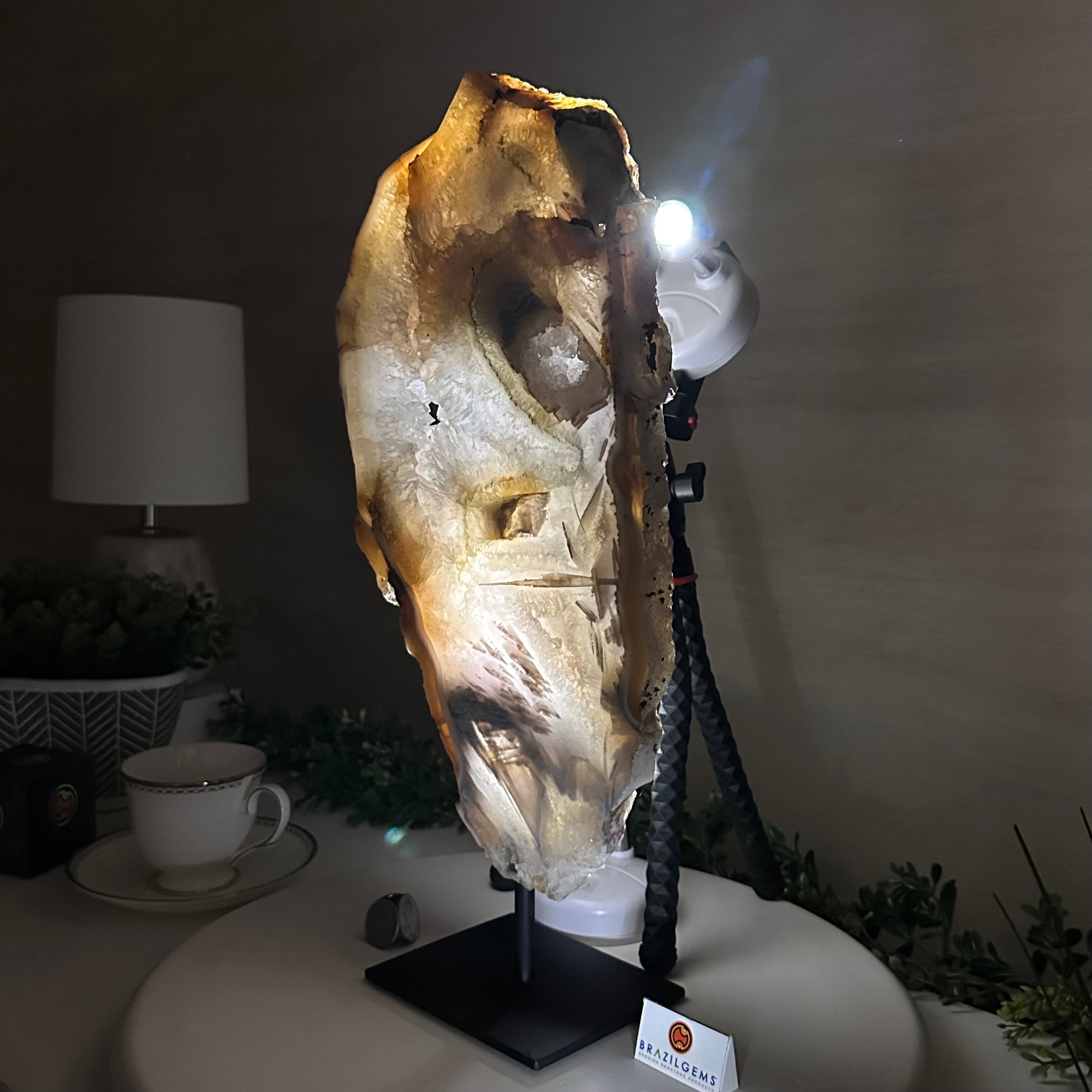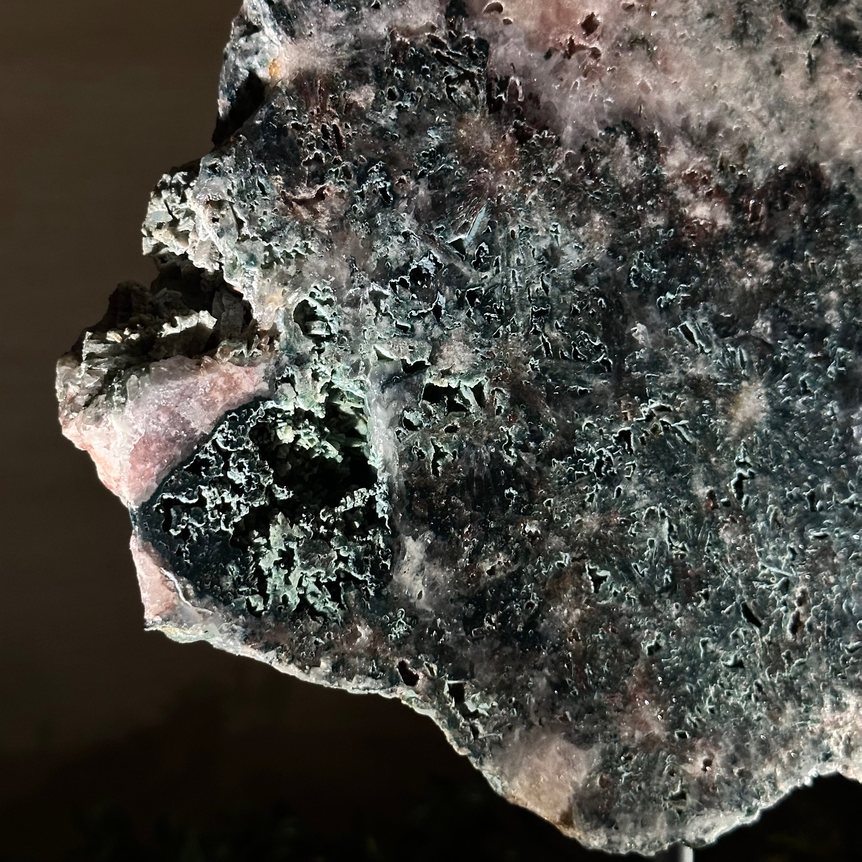 Natural Brazilian Pink Amethyst Slices on metal bases will accent the decor of your home or office. Discover our collection of Pink Amethyst Slices.
