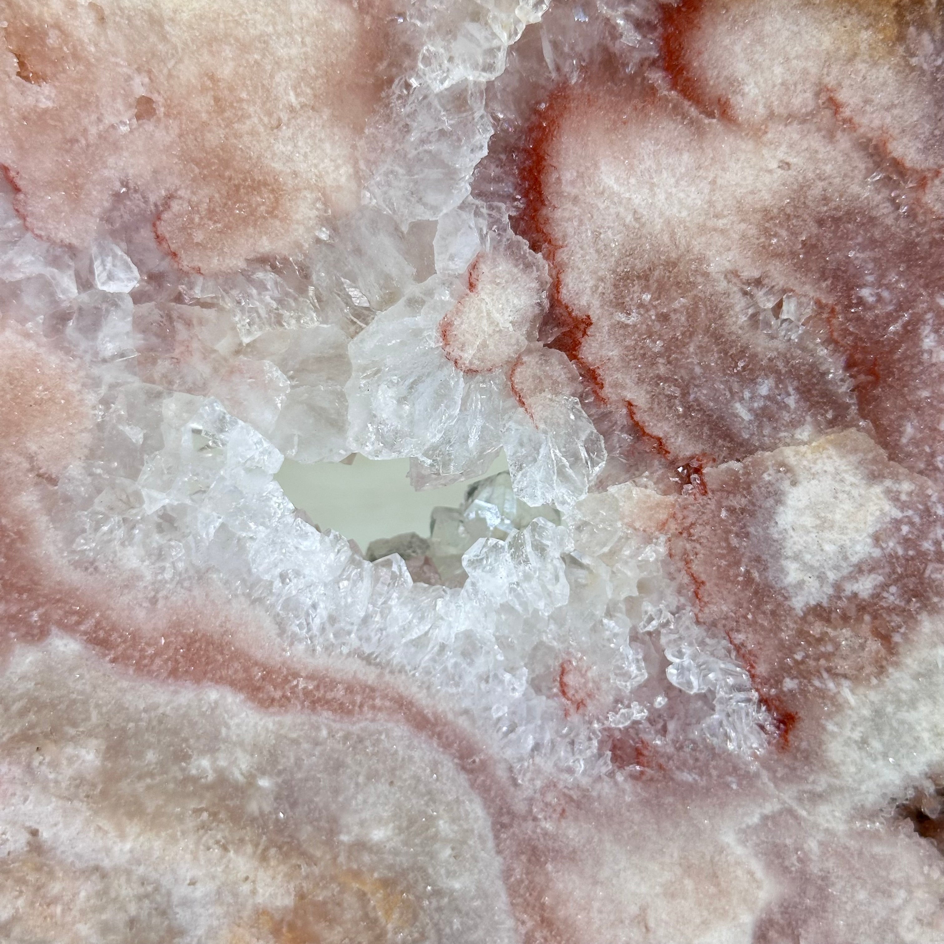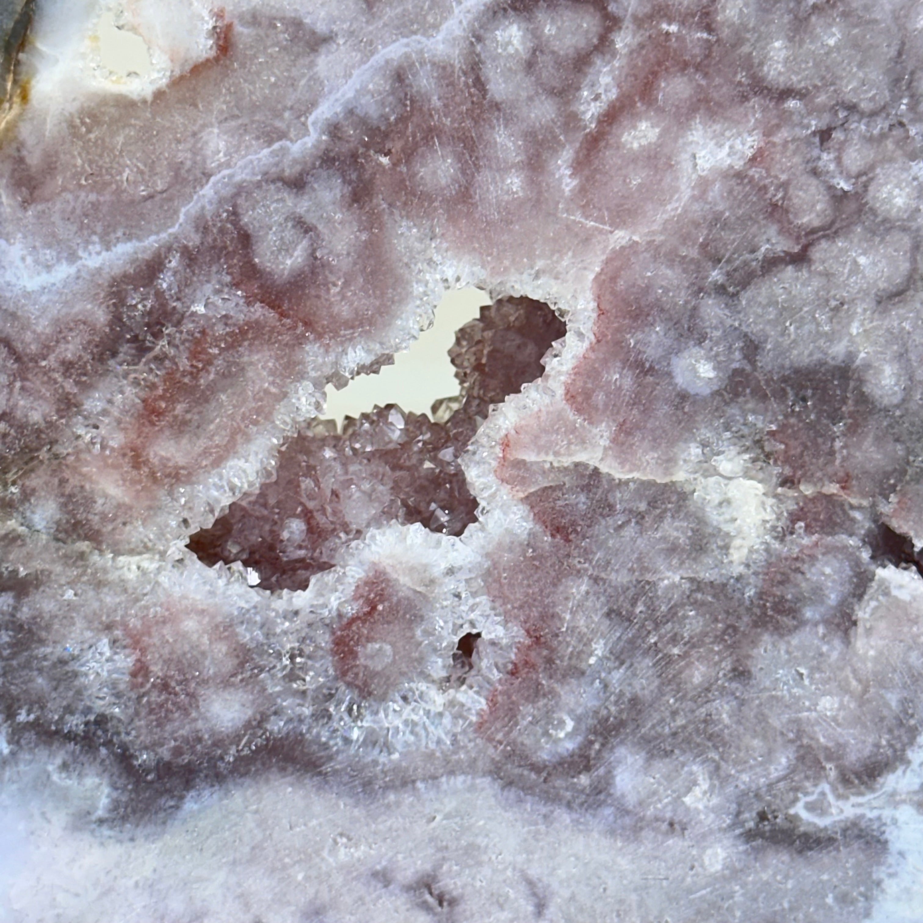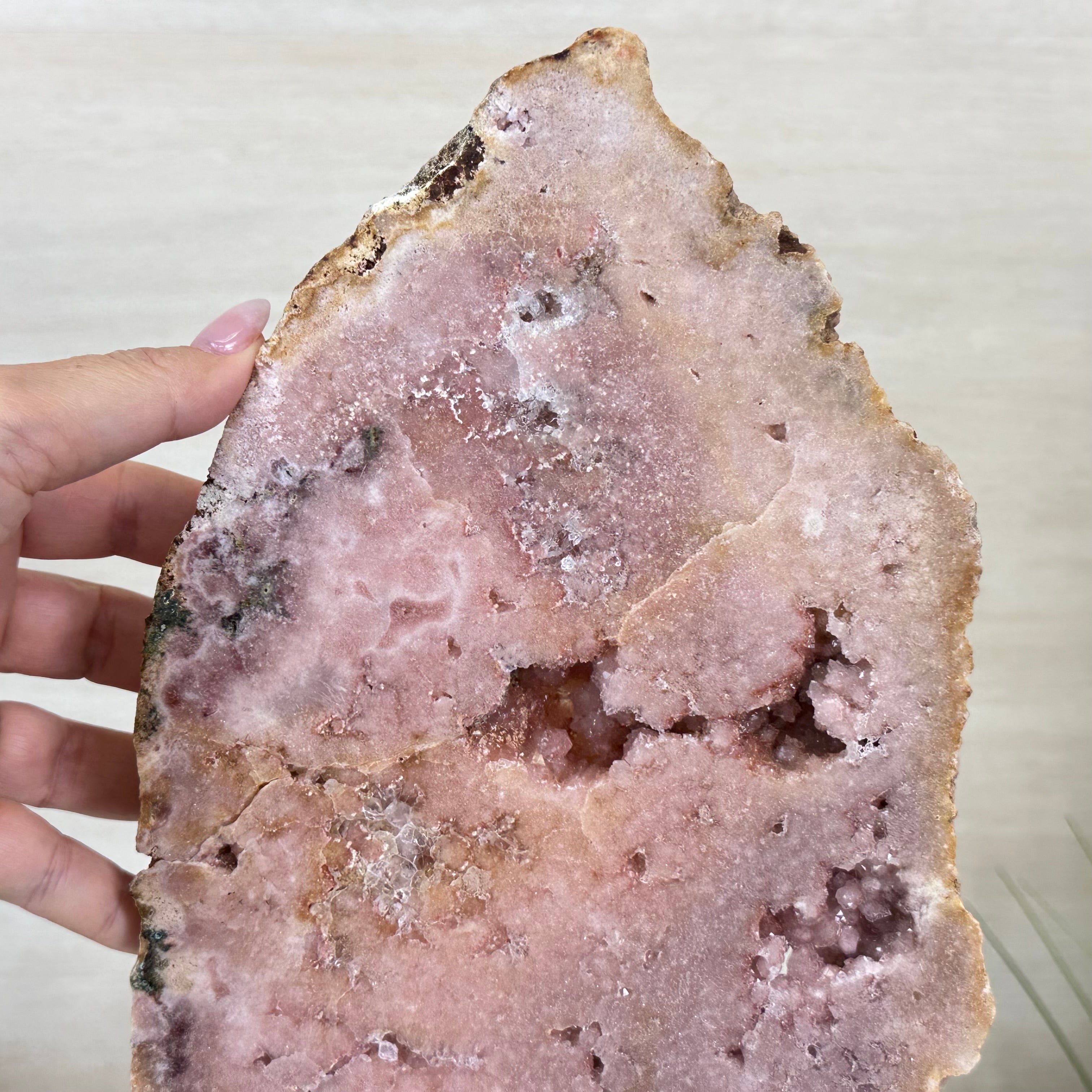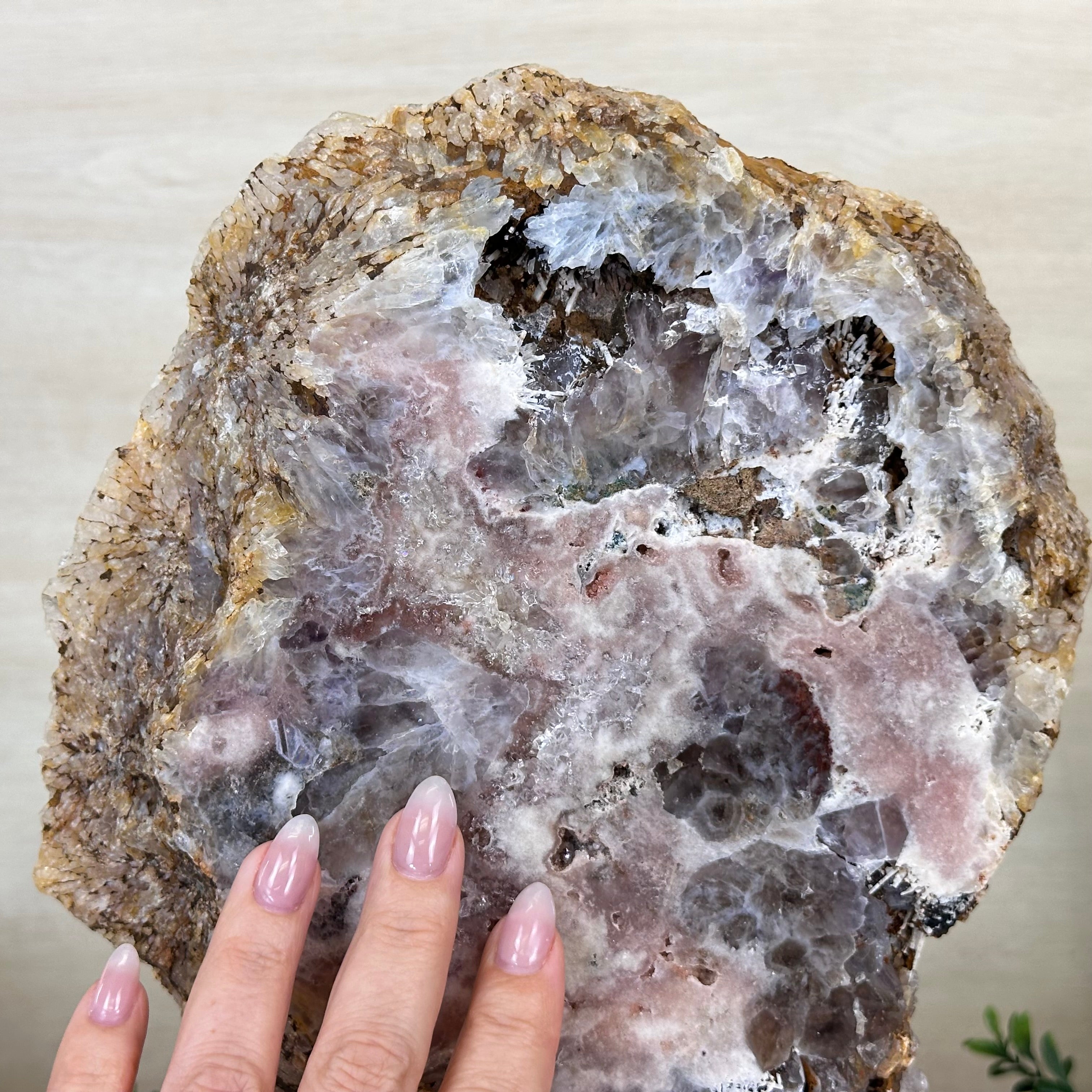 Pink Amethyst is a striking gemstone known for its beautiful pale pink color. It is part of the Amethyst family, offering a unique twist on the classic violet hues. Our Pink Amethyst Slices feature stunning natural patterns and rich tones that can transform your space. These slices are a perfect addition to any home or office décor, bringing the natural beauty of Brazilian gemstones into your environment.