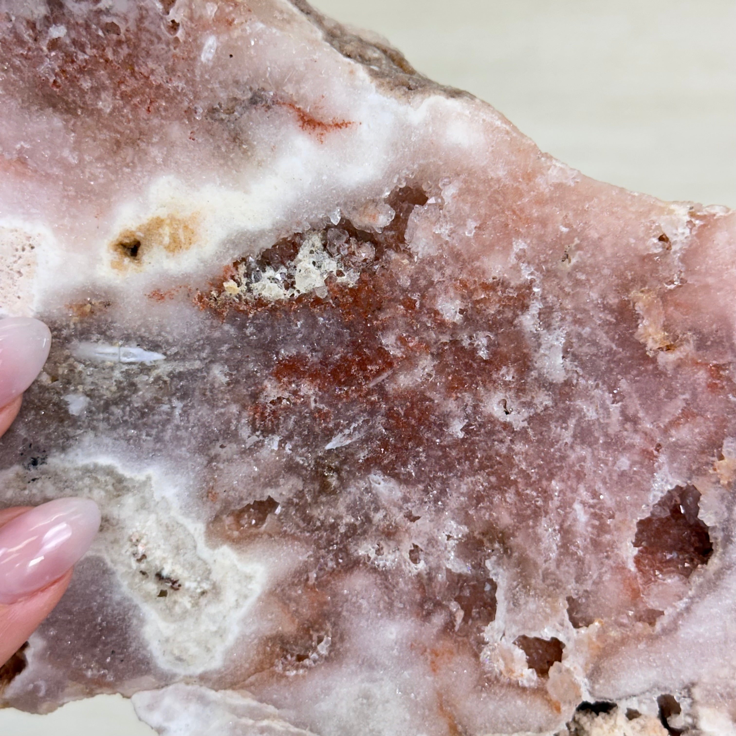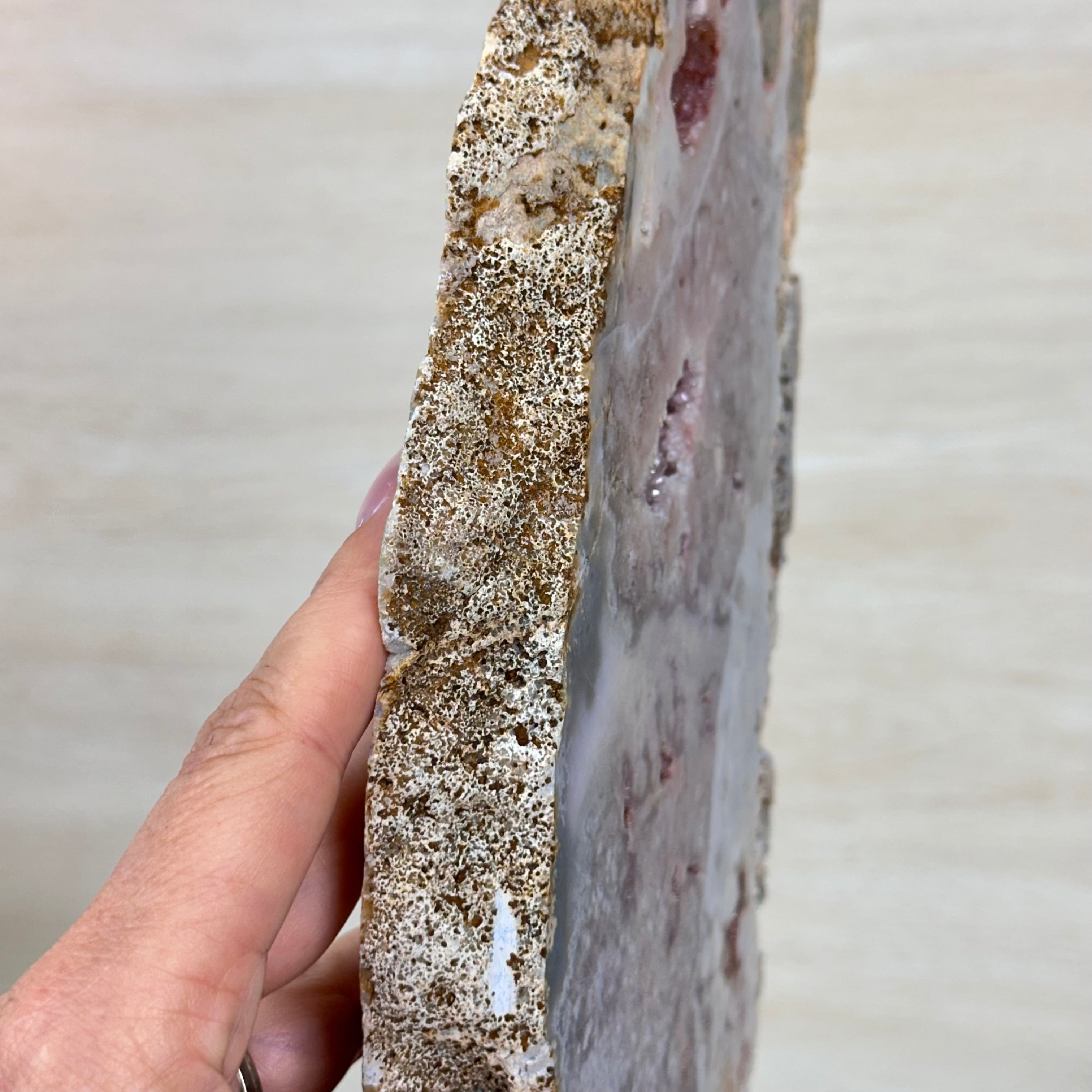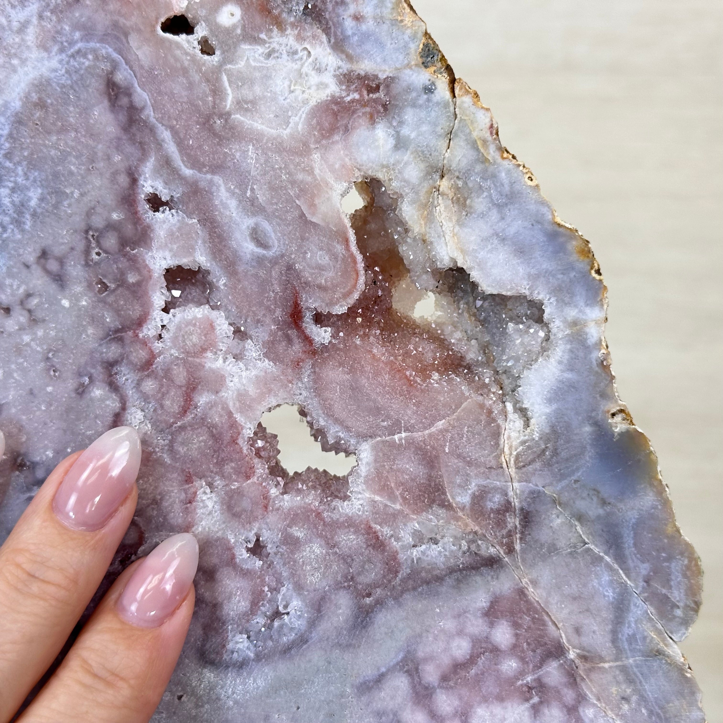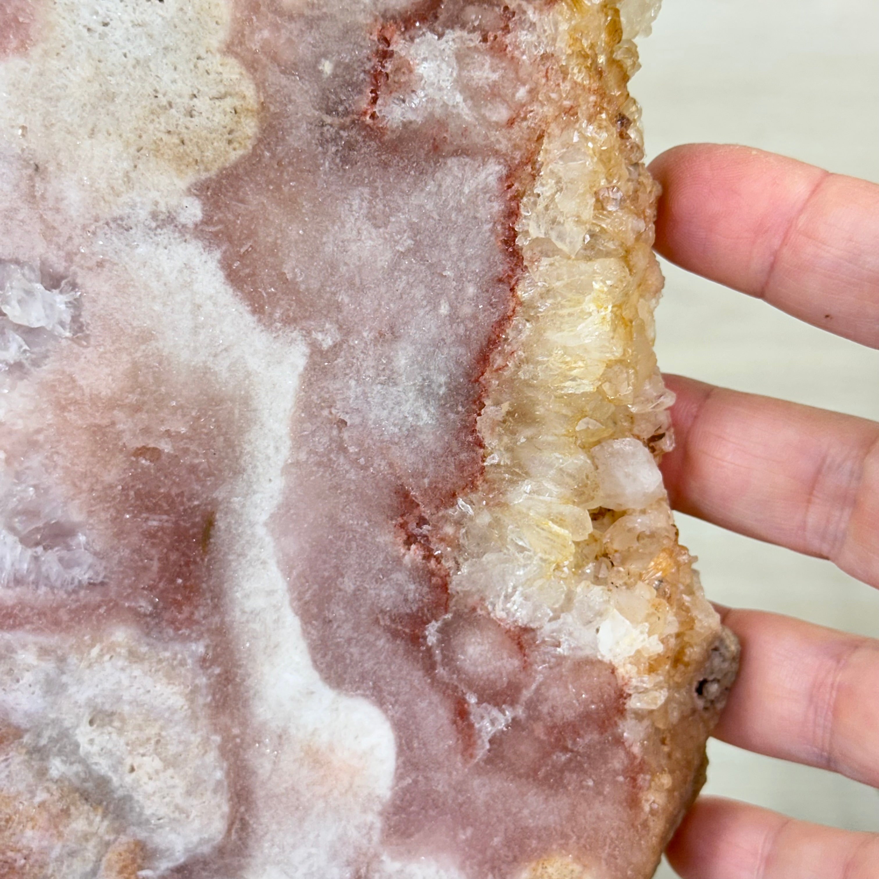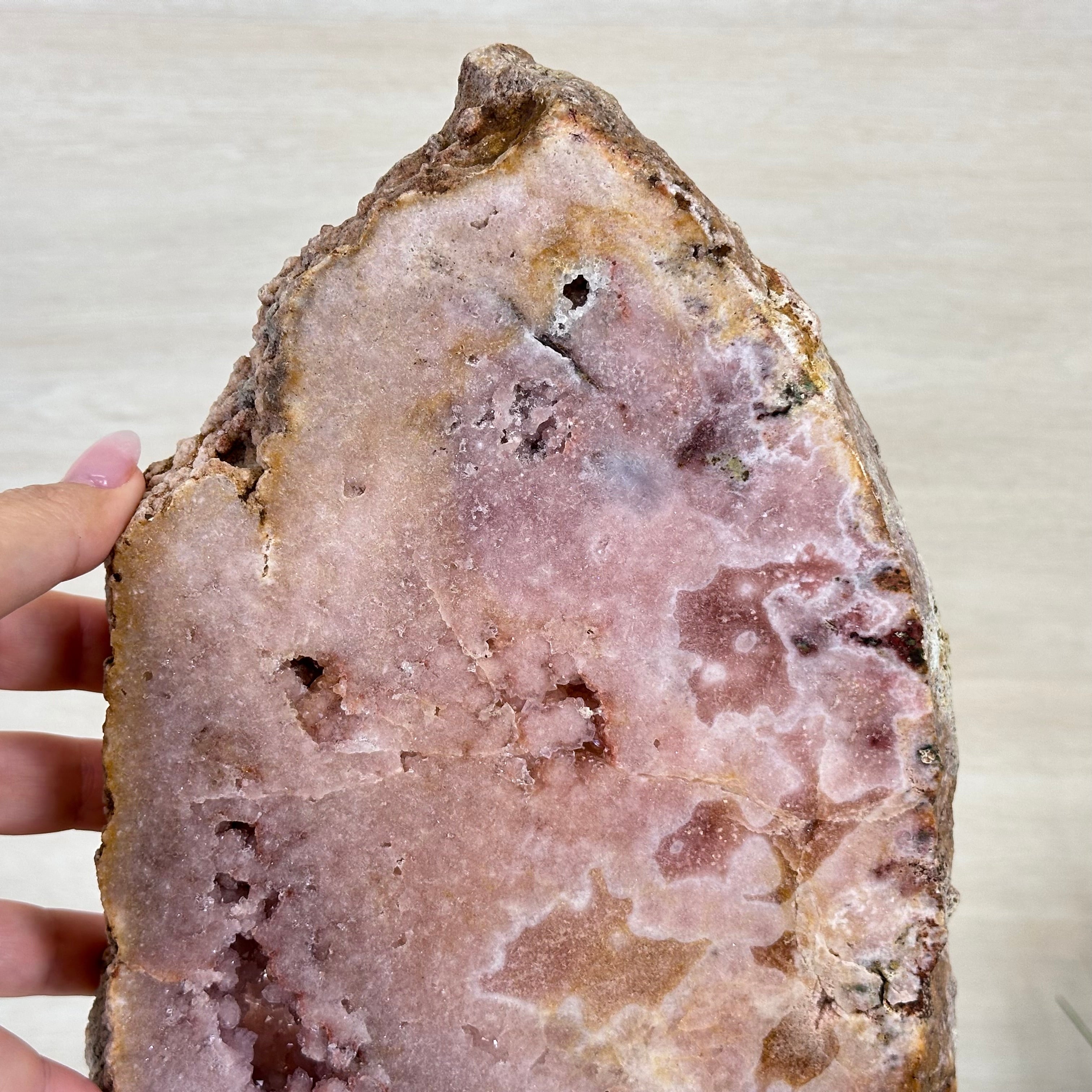 Pink Amethyst is a striking gemstone known for its beautiful pale pink color. It is part of the Amethyst family, offering a unique twist on the classic violet hues. Our Pink Amethyst Slices feature stunning natural patterns and rich tones that can transform your space. These slices are a perfect addition to any home or office décor, bringing the natural beauty of Brazilian gemstones into your environment.
