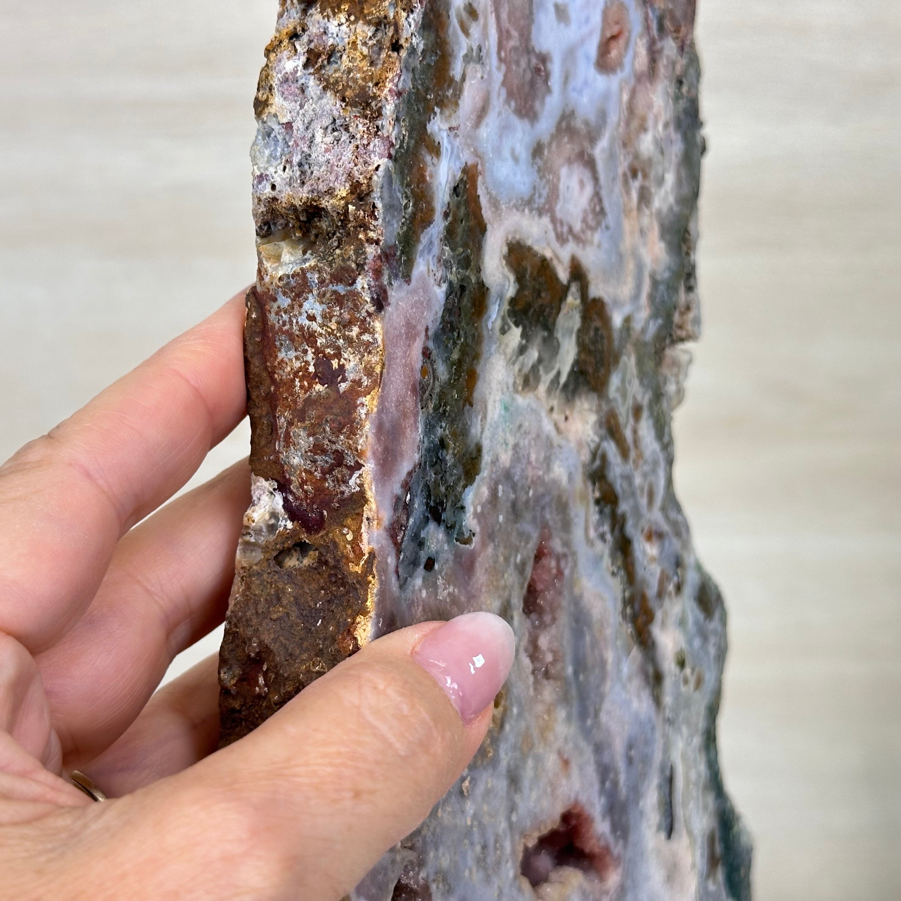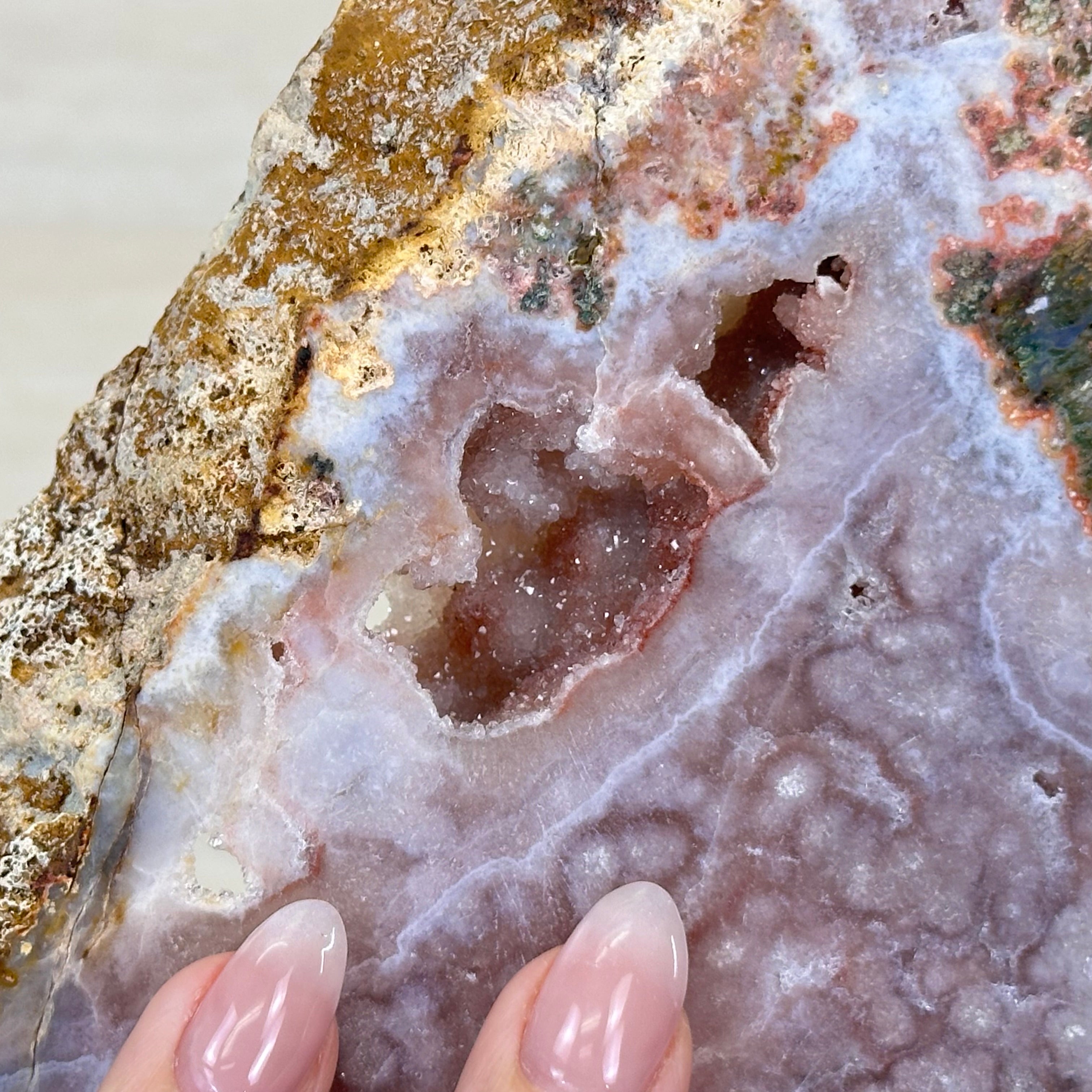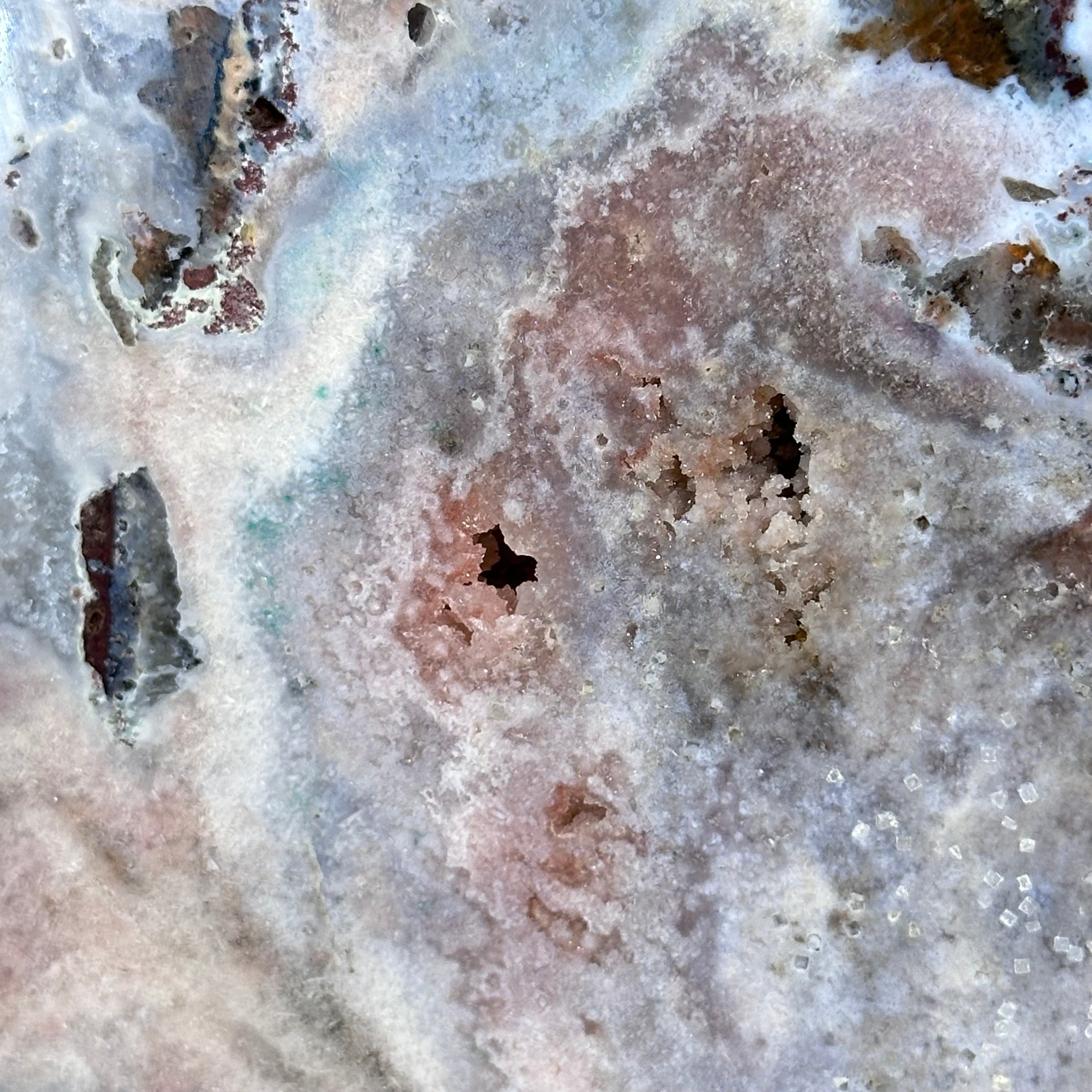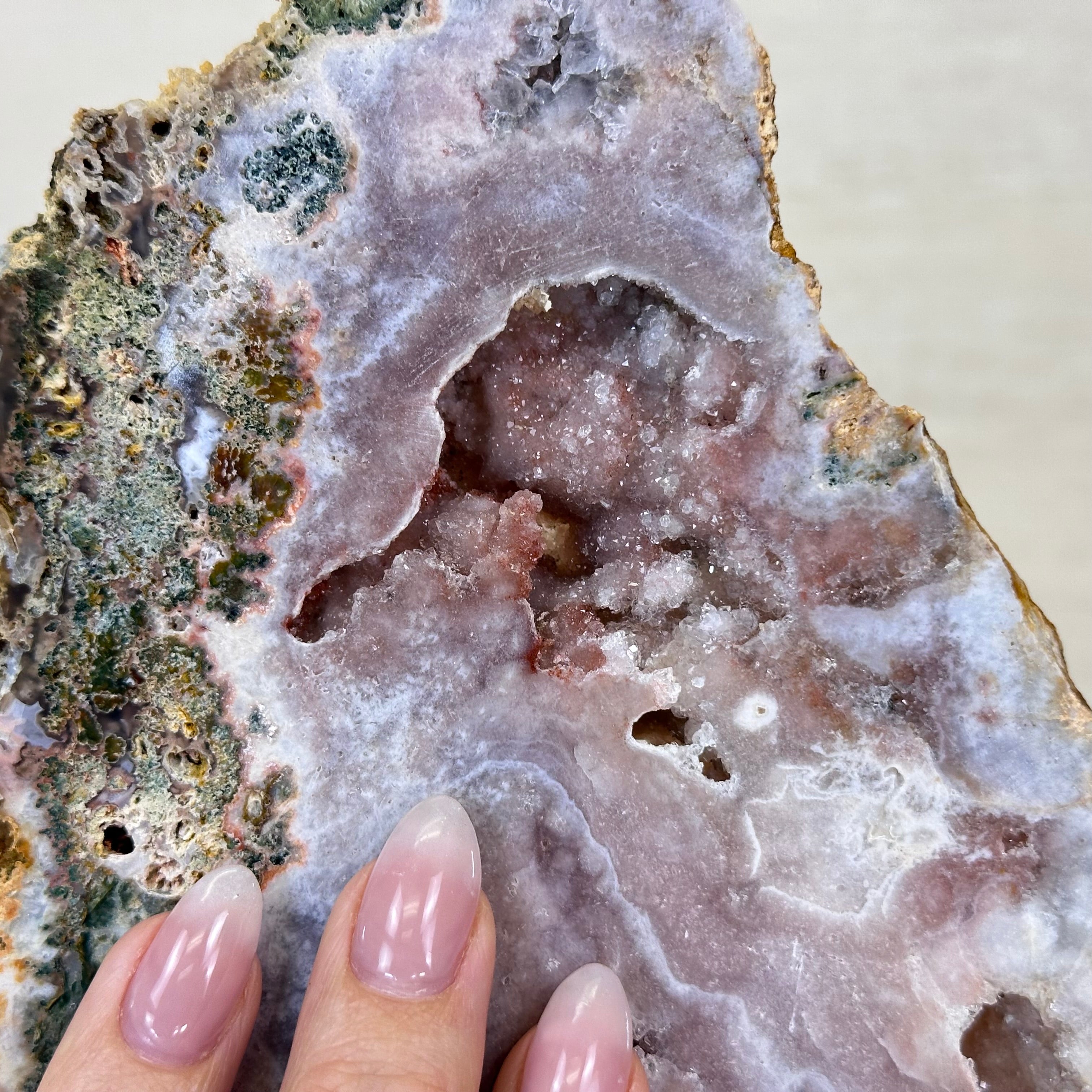 Pink Amethyst is a striking gemstone known for its beautiful pale pink color. It is part of the Amethyst family, offering a unique twist on the classic violet hues. Our Pink Amethyst Slices feature stunning natural patterns and rich tones that can transform your space. These slices are a perfect addition to any home or office décor, bringing the natural beauty of Brazilian gemstones into your environment.