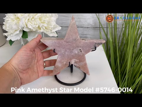This is a Natural Polished Brazilian Pink Amethyst Star on a metal stand. With its polished edges and natural crystals shining through you'll enjoy this piece for years to come.