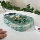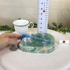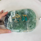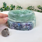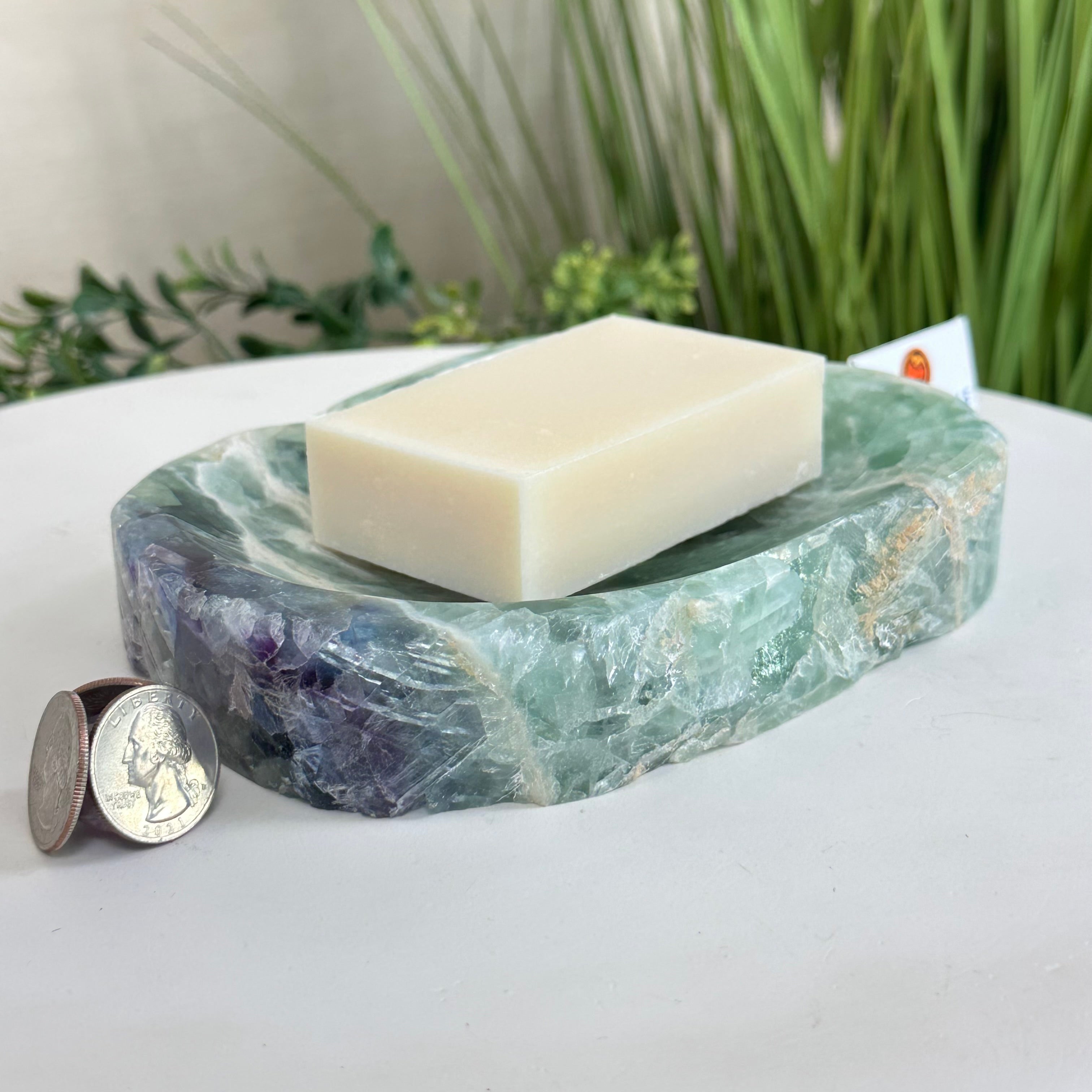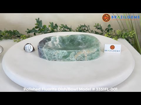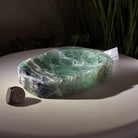Elegant and versatile, this Fluorite decorative bowl is handcrafted from natural Brazilian stone and polished to reveal bright green tones. Use it as a soap dish, jewelry and ring holder, or a decorative catch-all for small items like crystals, keys, or loose change. Its smooth, durable surface makes it ideal for bathroom countertops, bedside tables, or entryway décor. Its edges are rough and not polished.